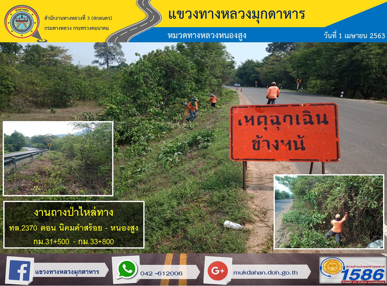 โครงการทางหลวงปลอดภัย ขับขี่สบายตา หน่วยงานในสังกัดแขวง 1 เม.ย. 63