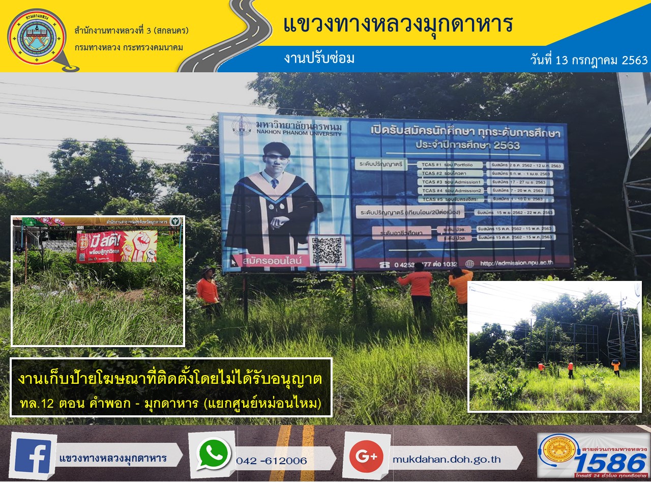 ข้อมูลภาพกิจกรรม : โครงการทางหลวงปลอดภัย ขับขี่สบายตา หน่วยงานในสังกัดแขวง 13 ก.ค. 63