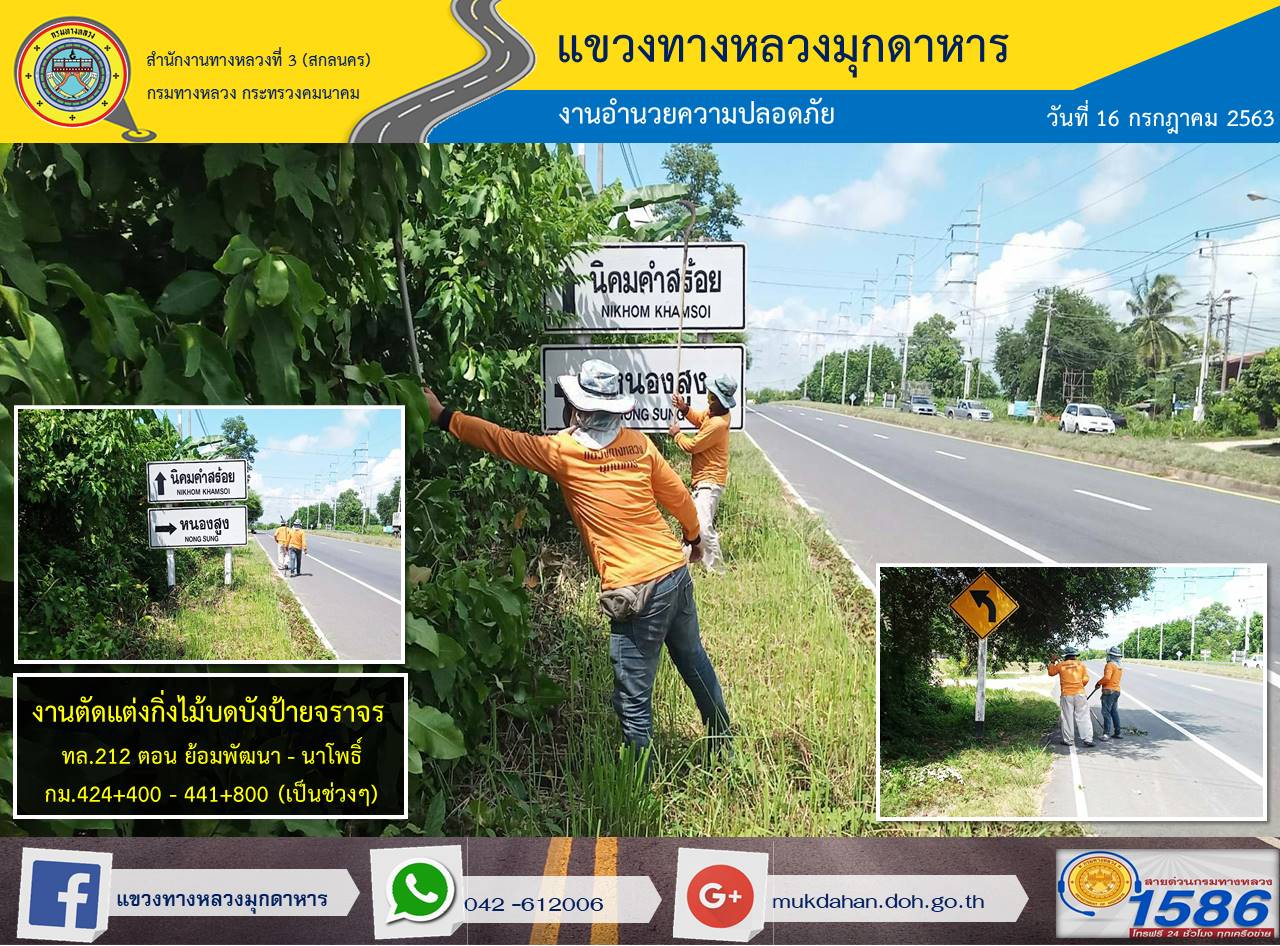 ข้อมูลภาพกิจกรรม : โครงการทางหลวงปลอดภัย ขับขี่สบายตา หน่วยงานในสังกัดแขวง 16 ก.ค. 63