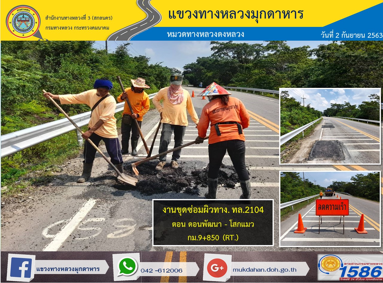 โครงการทางหลวงปลอดภัย ขับขี่สบายตา หน่วยงานในสังกัดแขวง 2 ก.ย. 63