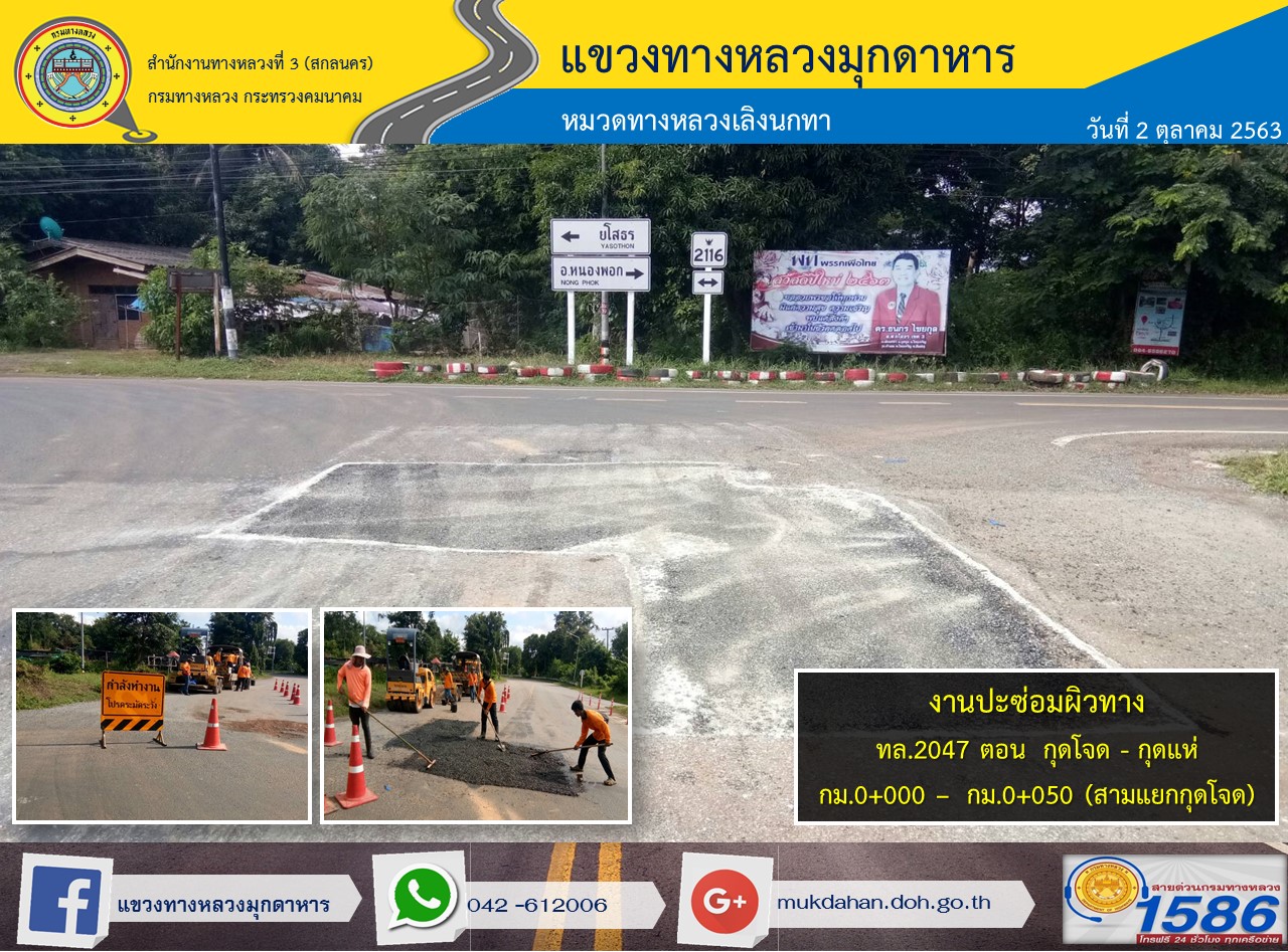 โครงการทางหลวงปลอดภัย ขับขี่สบายตา หน่วยงานในสังกัดแขวง 2 ต.ค. 63