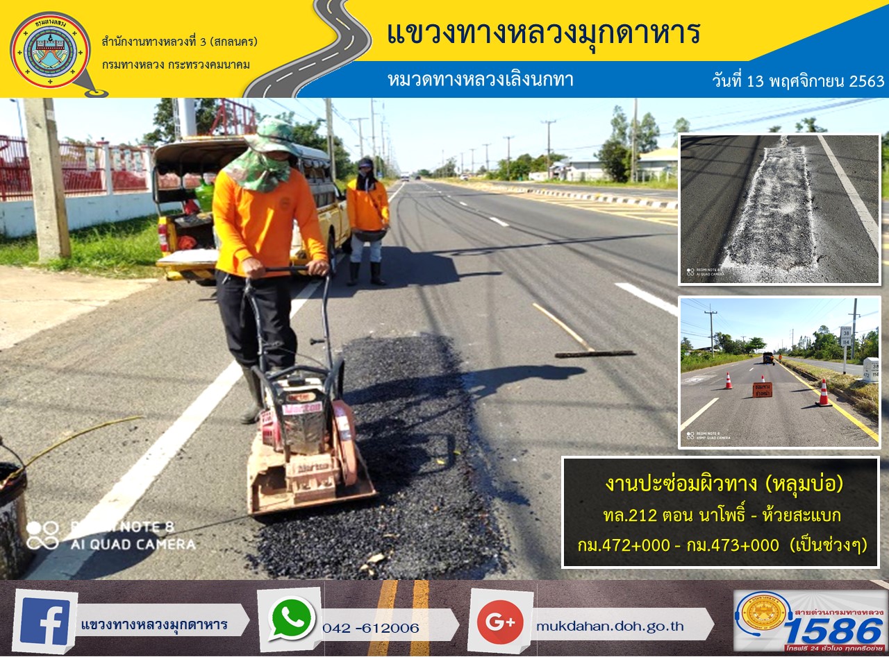 โครงการทางหลวงปลอดภัย ขับขี่สบายตา หน่วยงานในสังกัดแขวง 13 พ.ย. 63