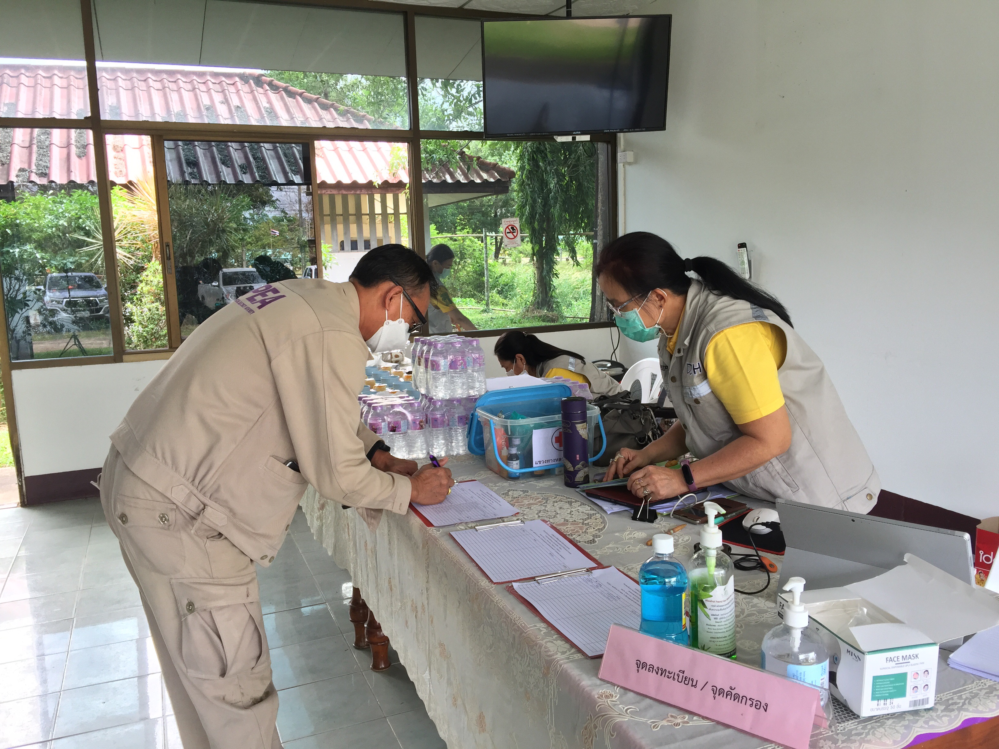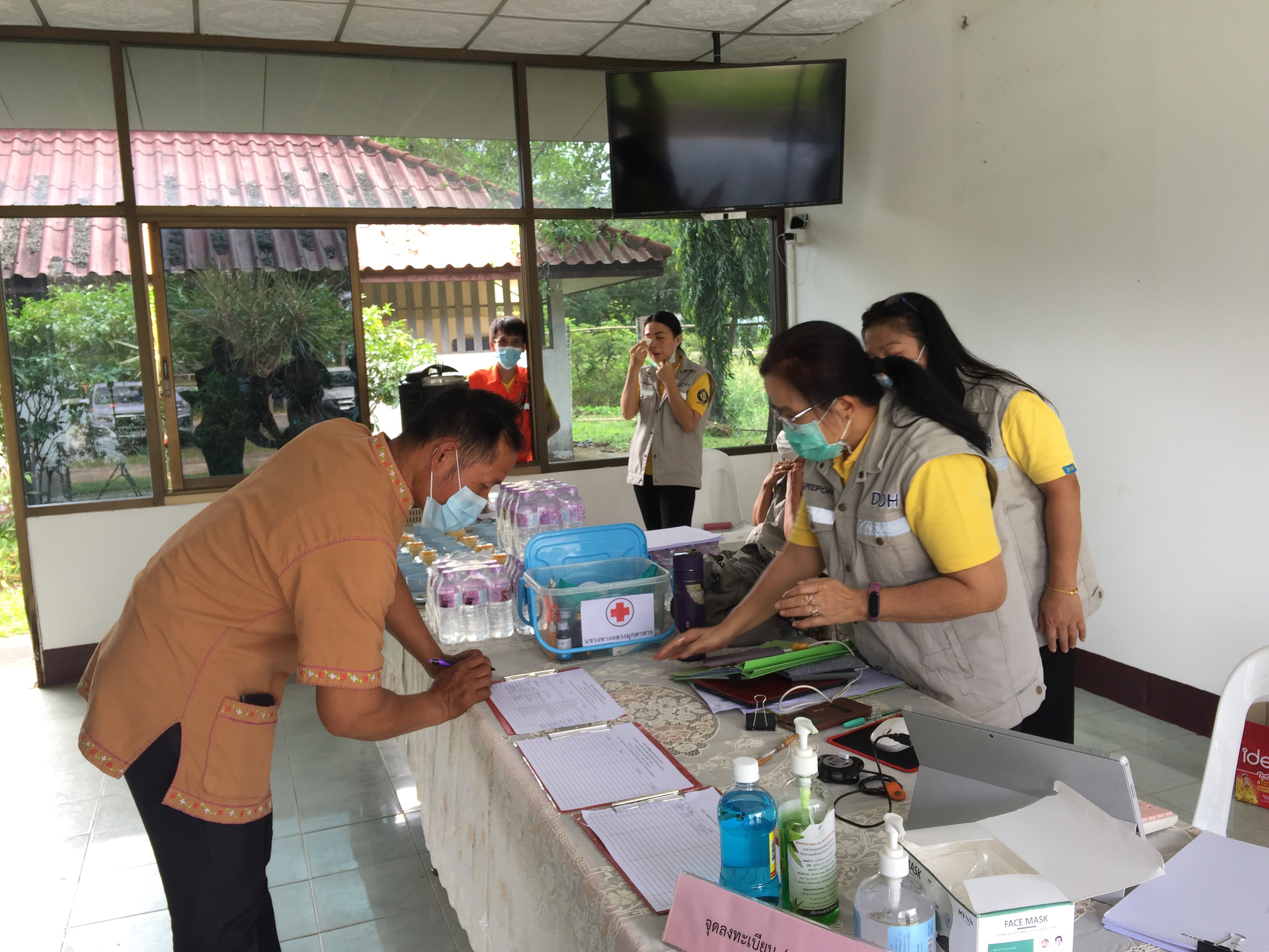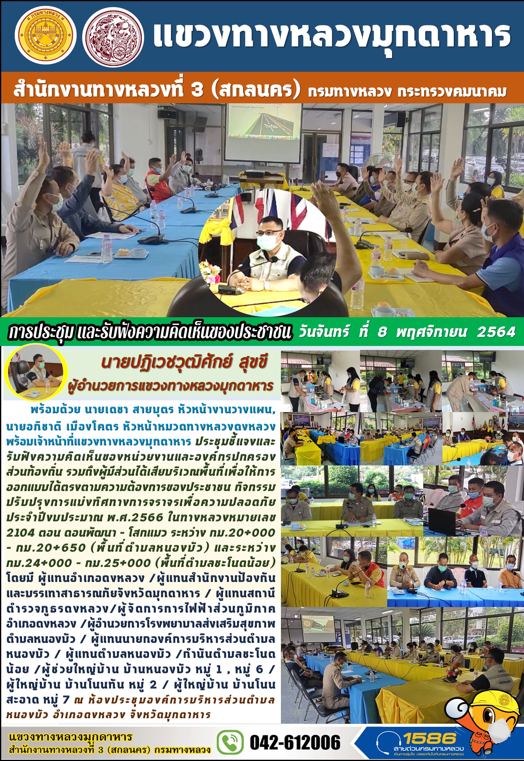 แขวงทางหลวงมุกดาหาร โดย นายปฏิเวชวุฒิศักย์ สุขขี ผู้อำนวยการแขวงทางหลวงมุกดาหาร พร้อมด้วย นายเดชา สายบุตร หัวหน้างานวางแผน, นายอภิชาติ เมืองโคตร หัวหน้าหมวดทางหลวงดงหลวง พร้อมเจ้าหน้าที่แขวงทางหลวงมุกดาหาร