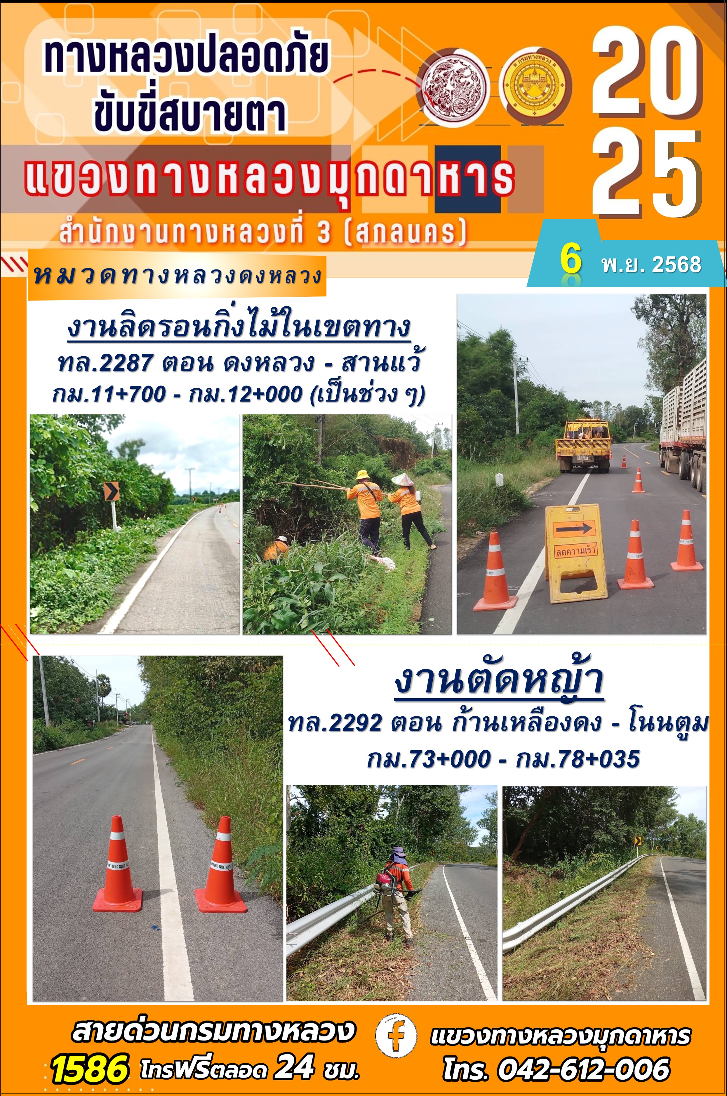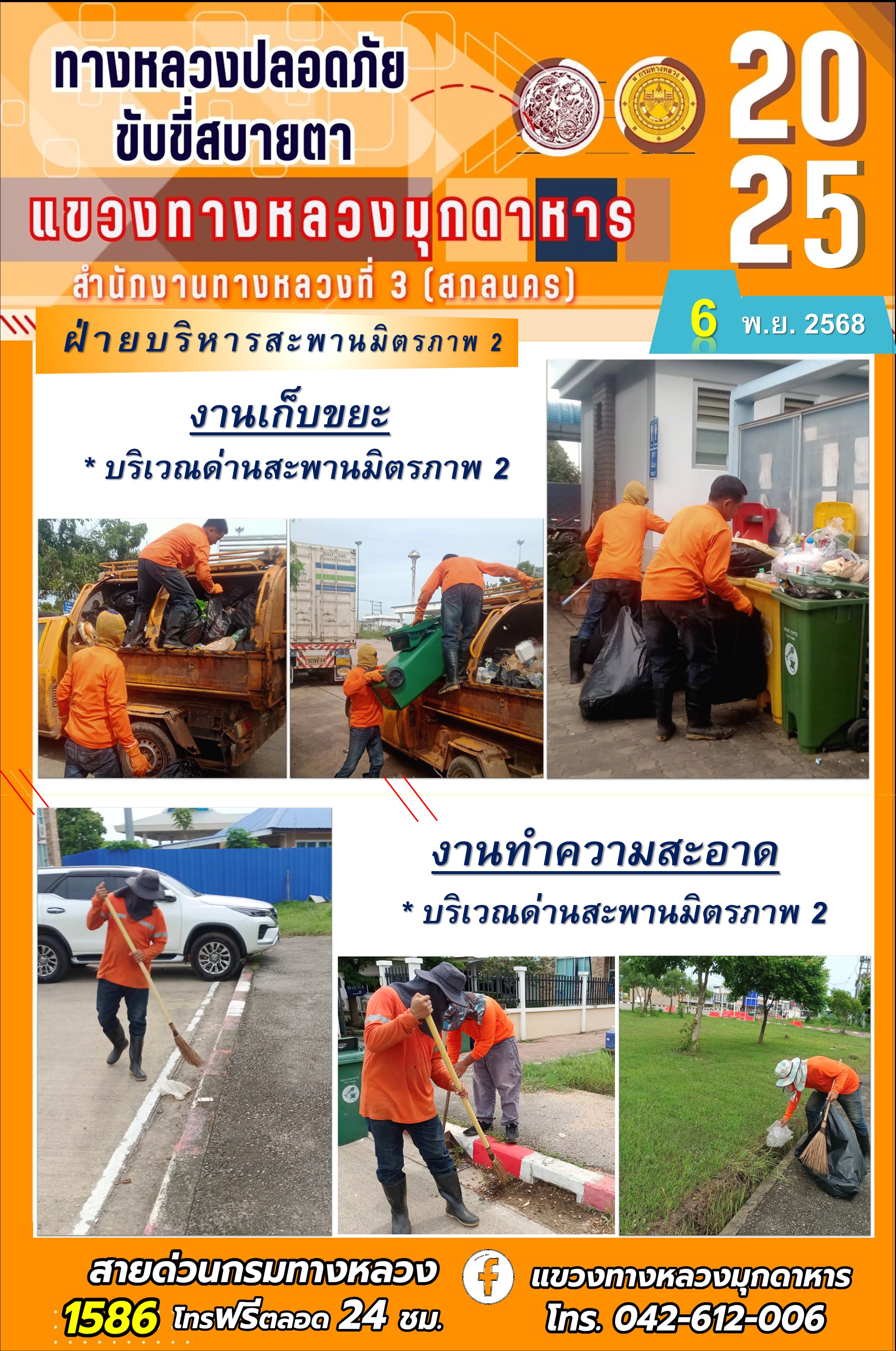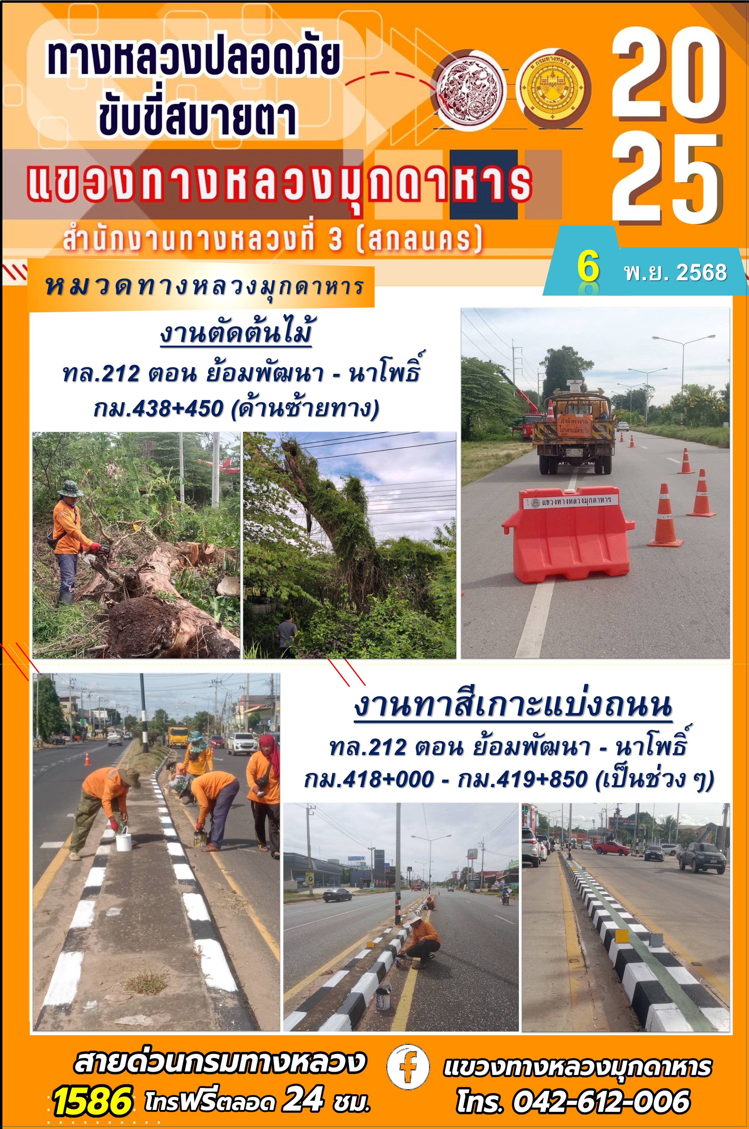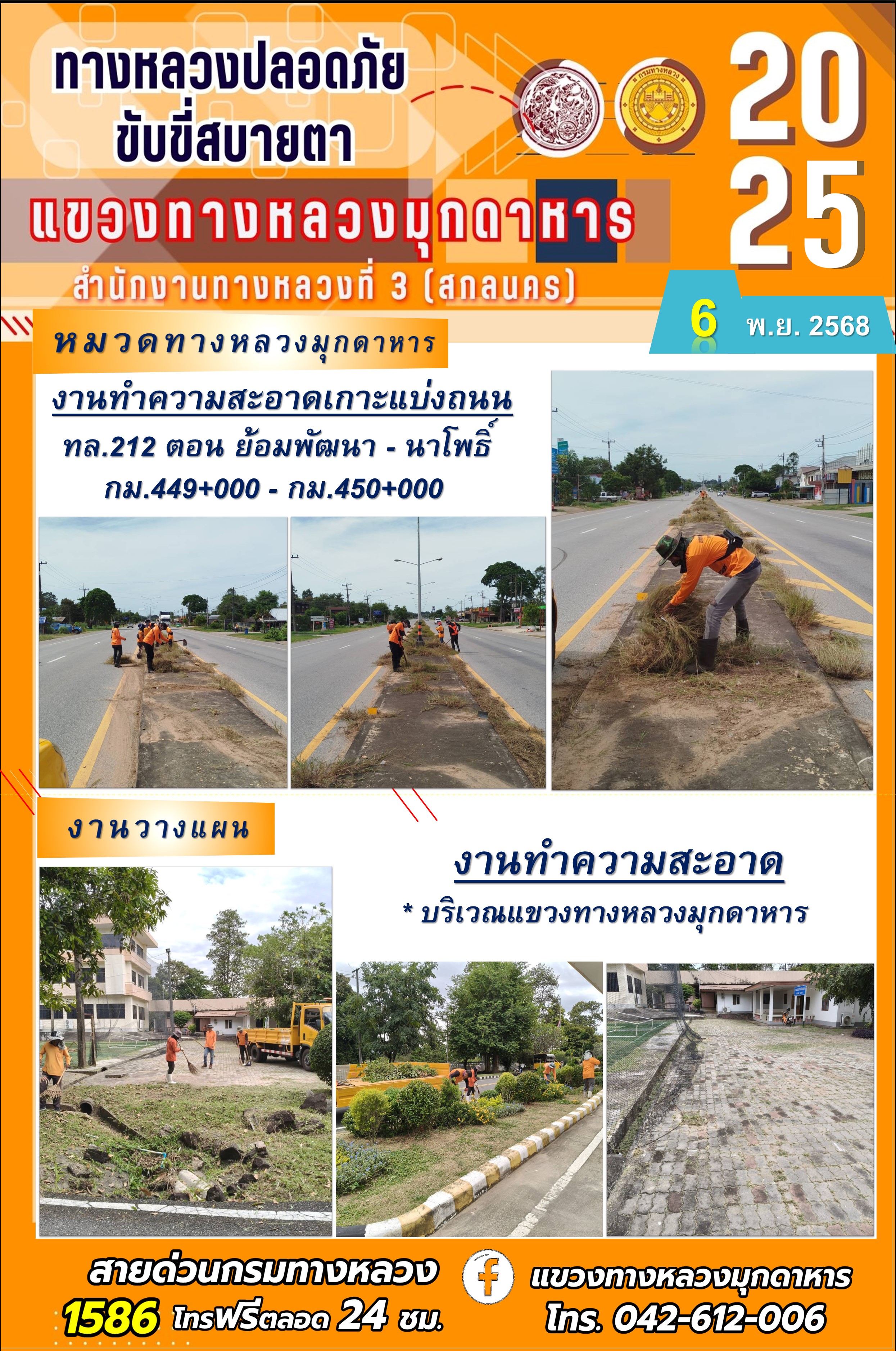ประจำวันที่ 6.11.2568 โครงการทางหลวงปลอดภัย ขับขี่สบายตา หน่วยงานในสังกัดแขวงทางหลวงมุกดาหาร
