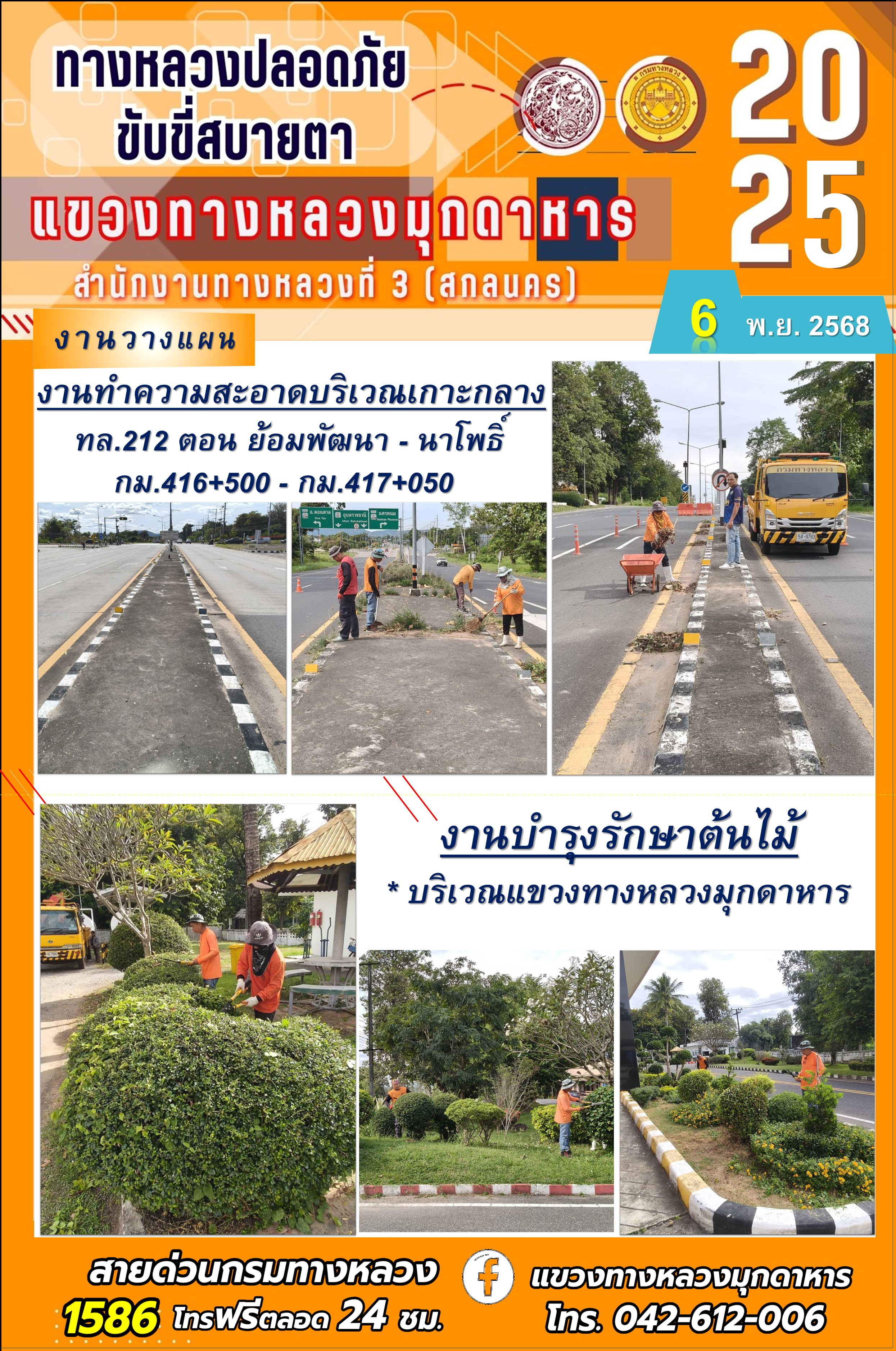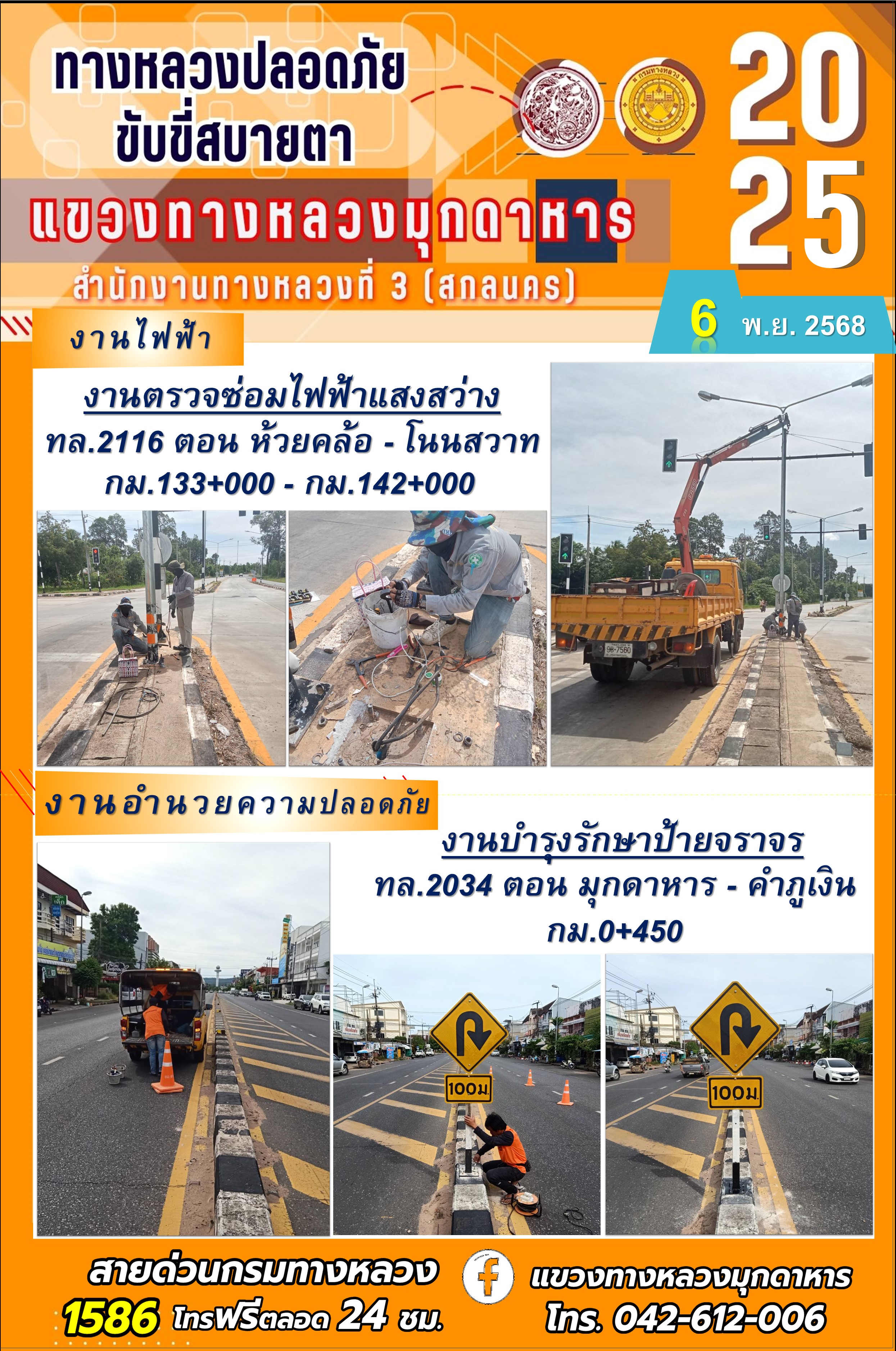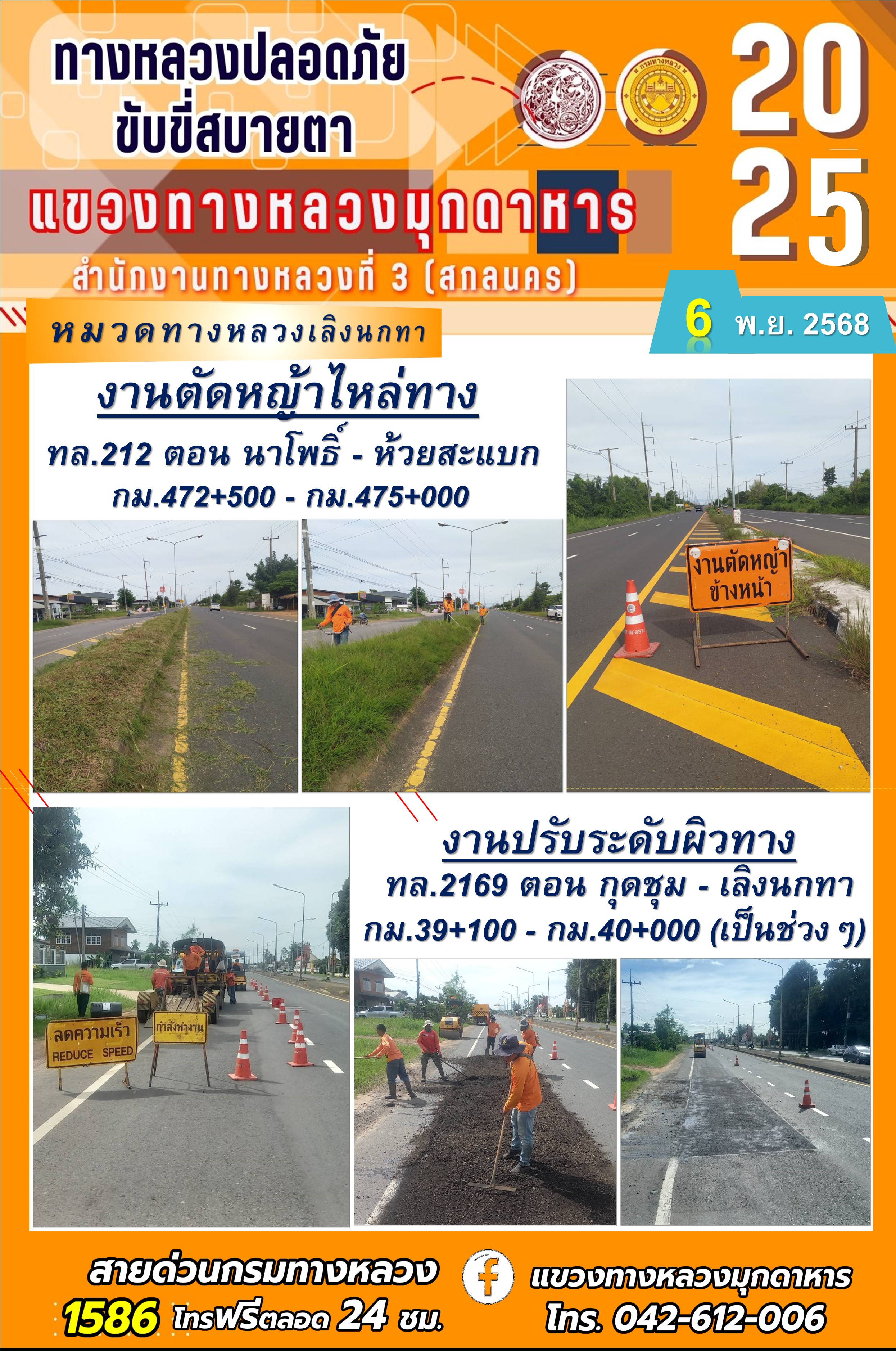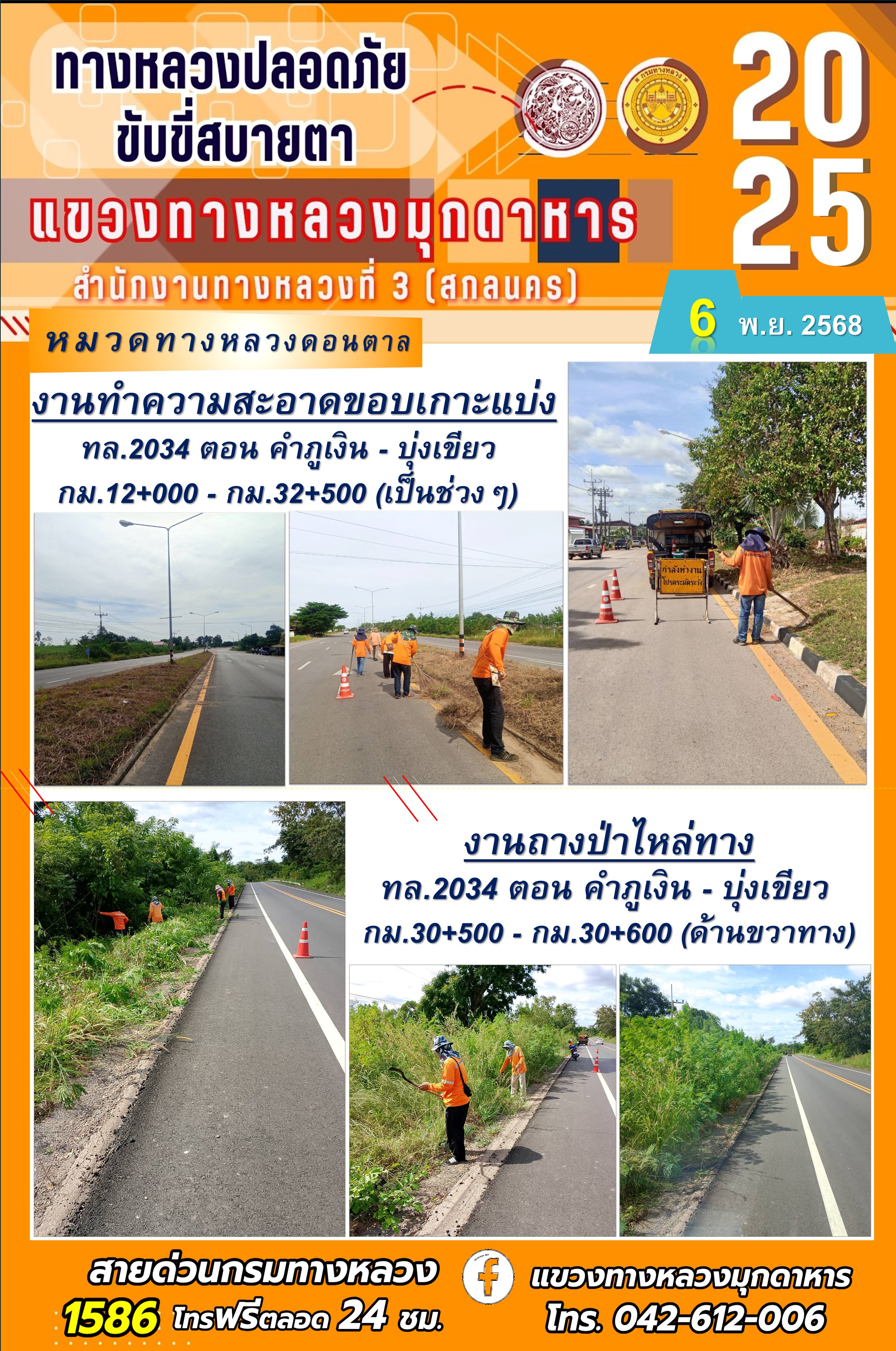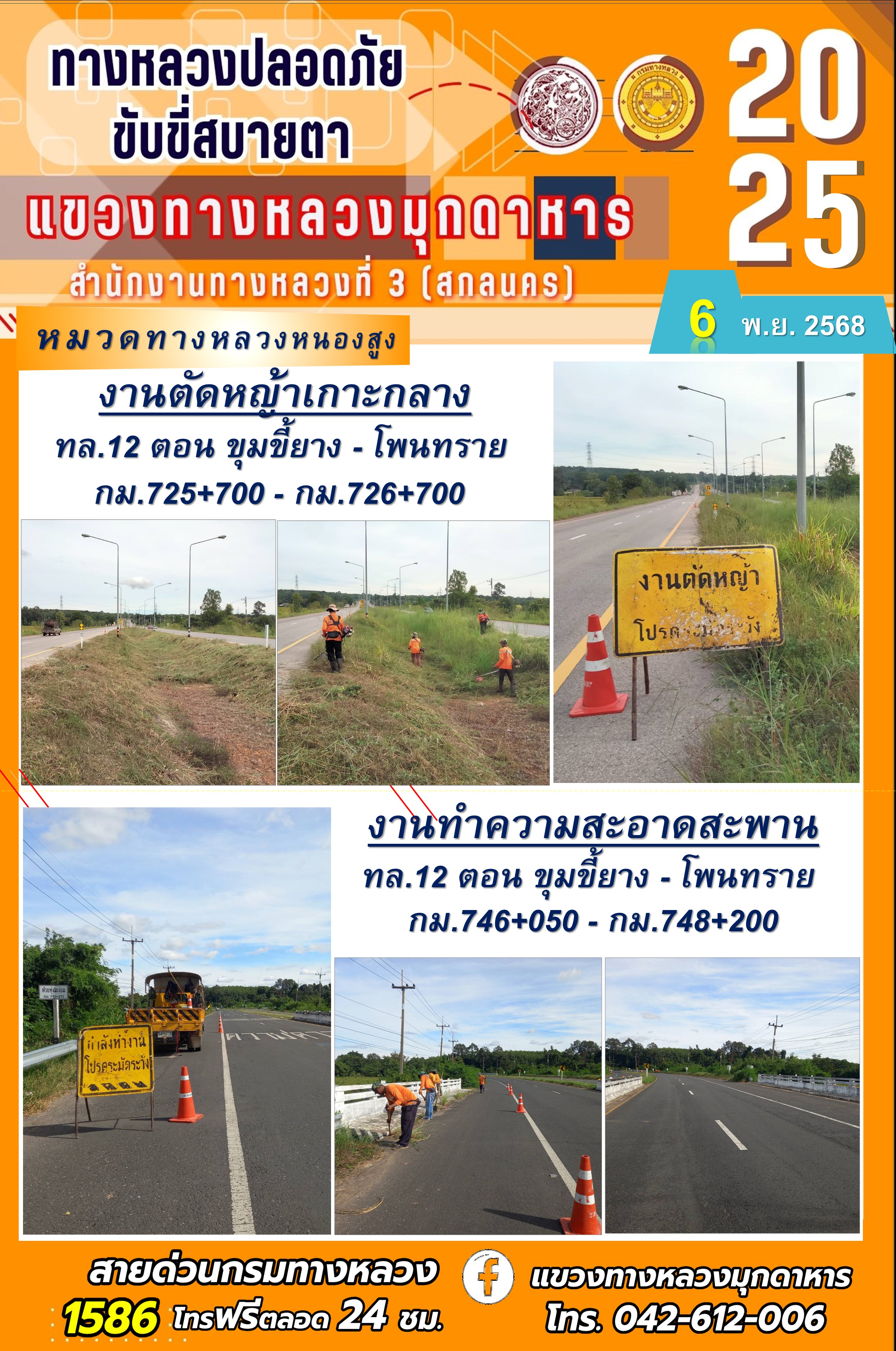 ประจำวันที่ 6.11.2568 โครงการทางหลวงปลอดภัย ขับขี่สบายตา หน่วยงานในสังกัดแขวงทางหลวงมุกดาหาร