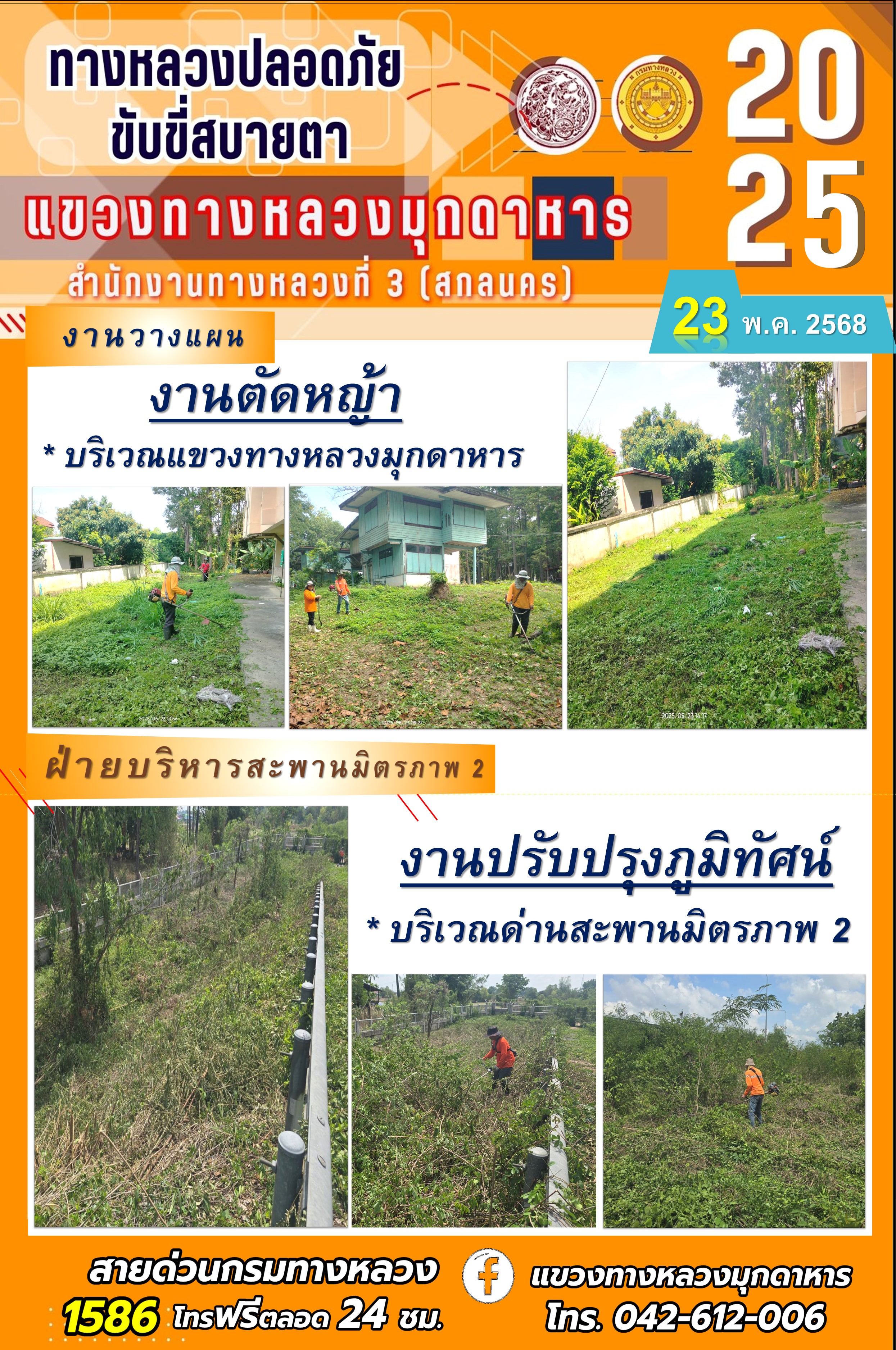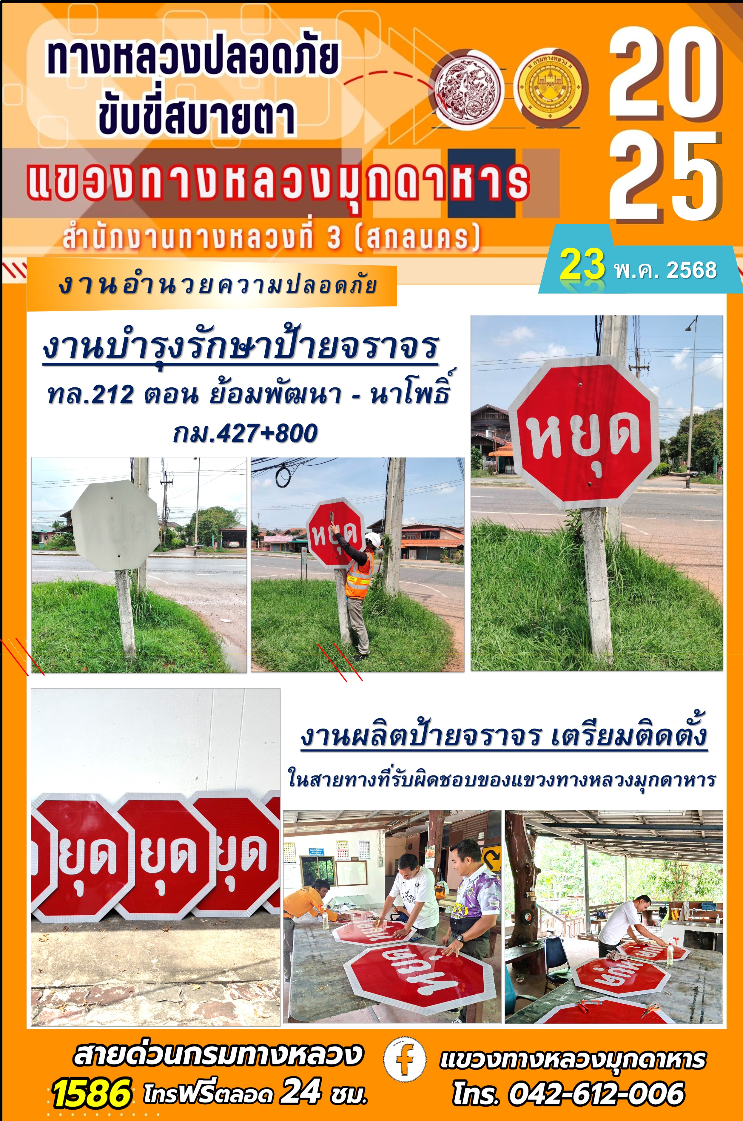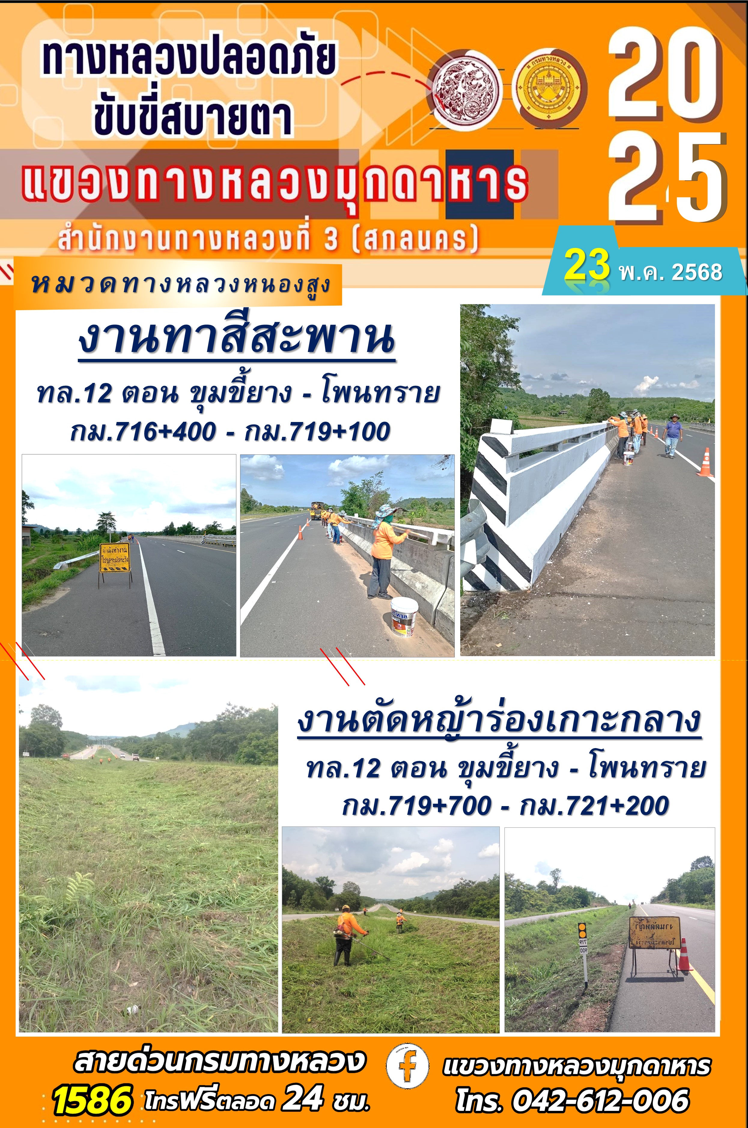 ข้อมูลภาพกิจกรรม : ประจำวันที่ 11.11.2568 โครงการทางหลวงปลอดภัย ขับขี่สบายตา หน่วยงานในสังกัดแขวงทางหลวงมุกดาหาร