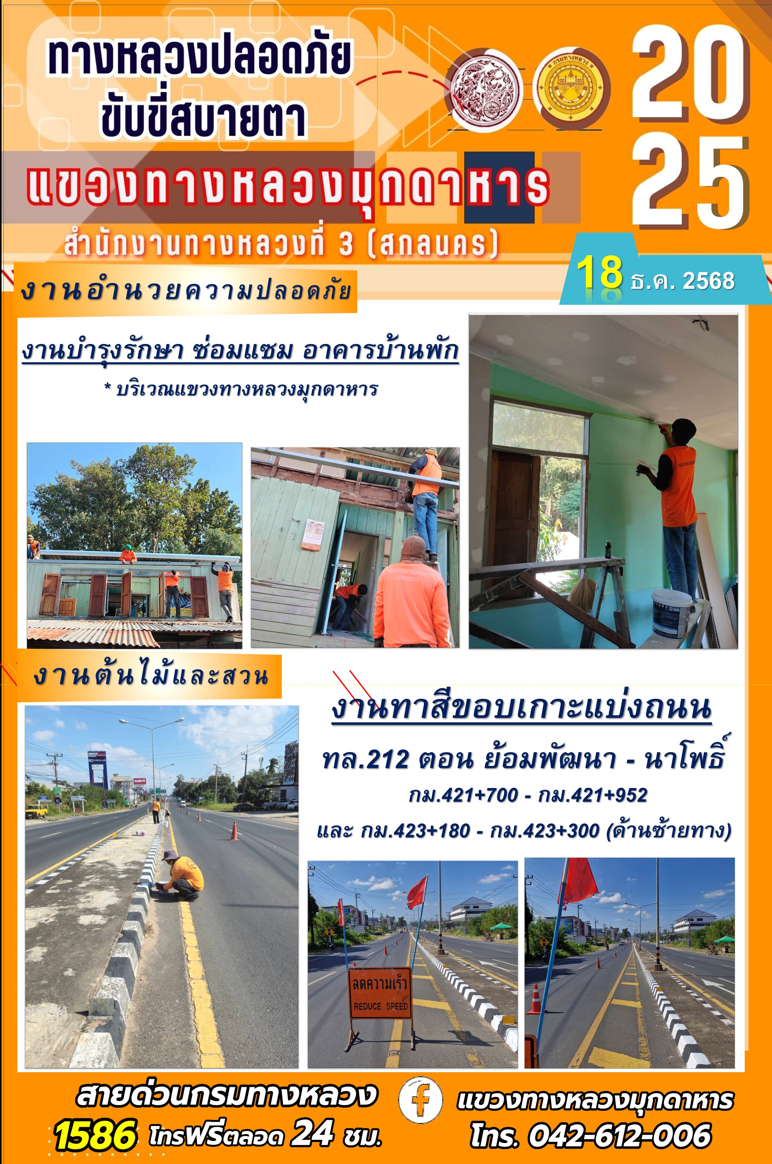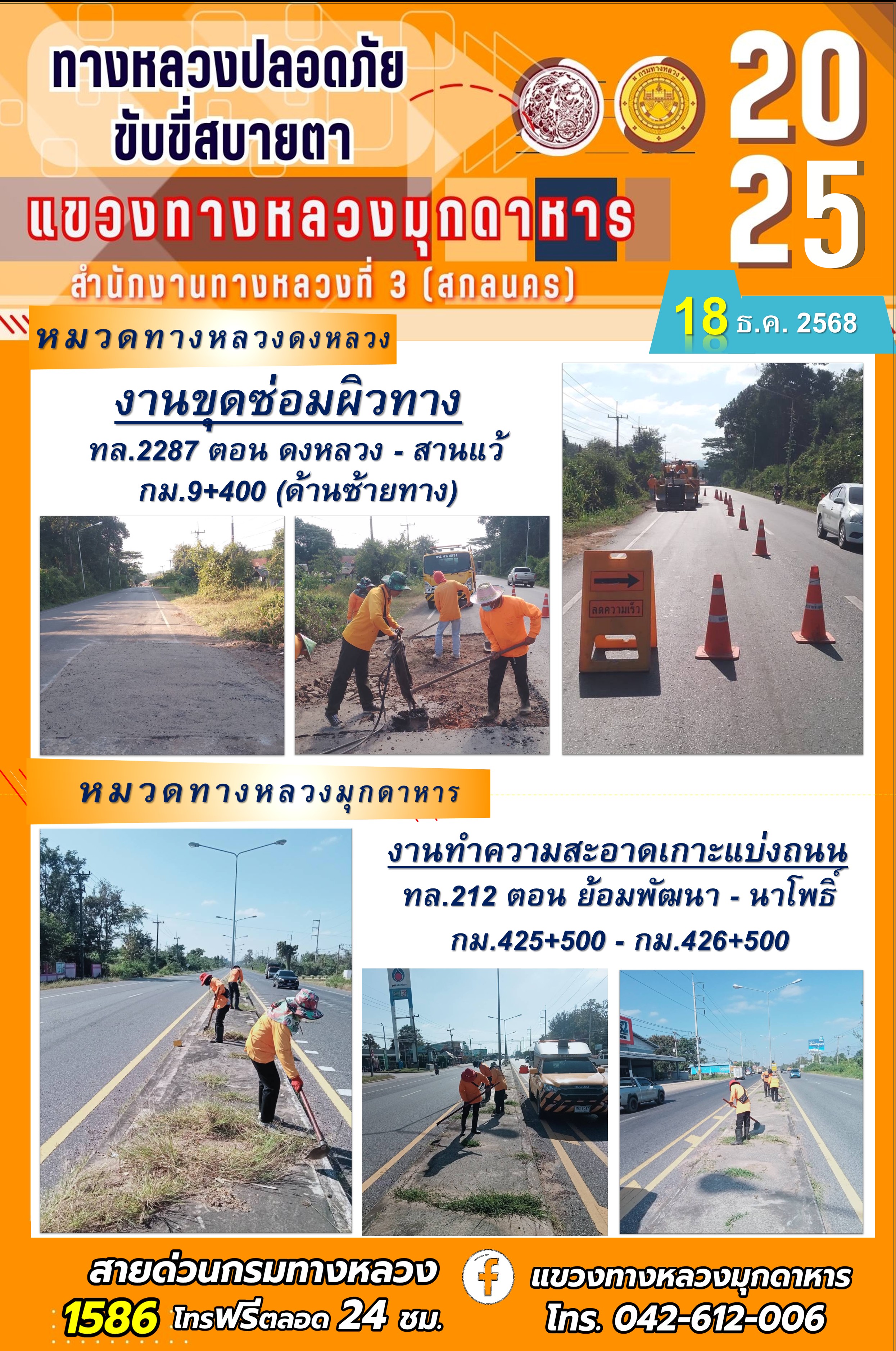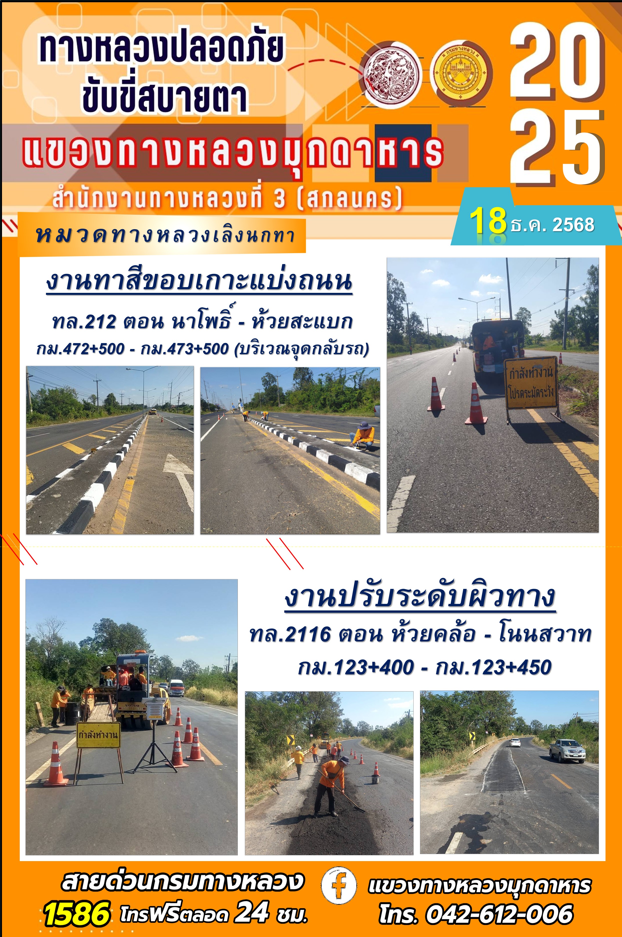 ประจำวันที่ 18.12.2568 โครงการทางหลวงปลอดภัย ขับขี่สบายตา หน่วยงานในสังกัดแขวงทางหลวง