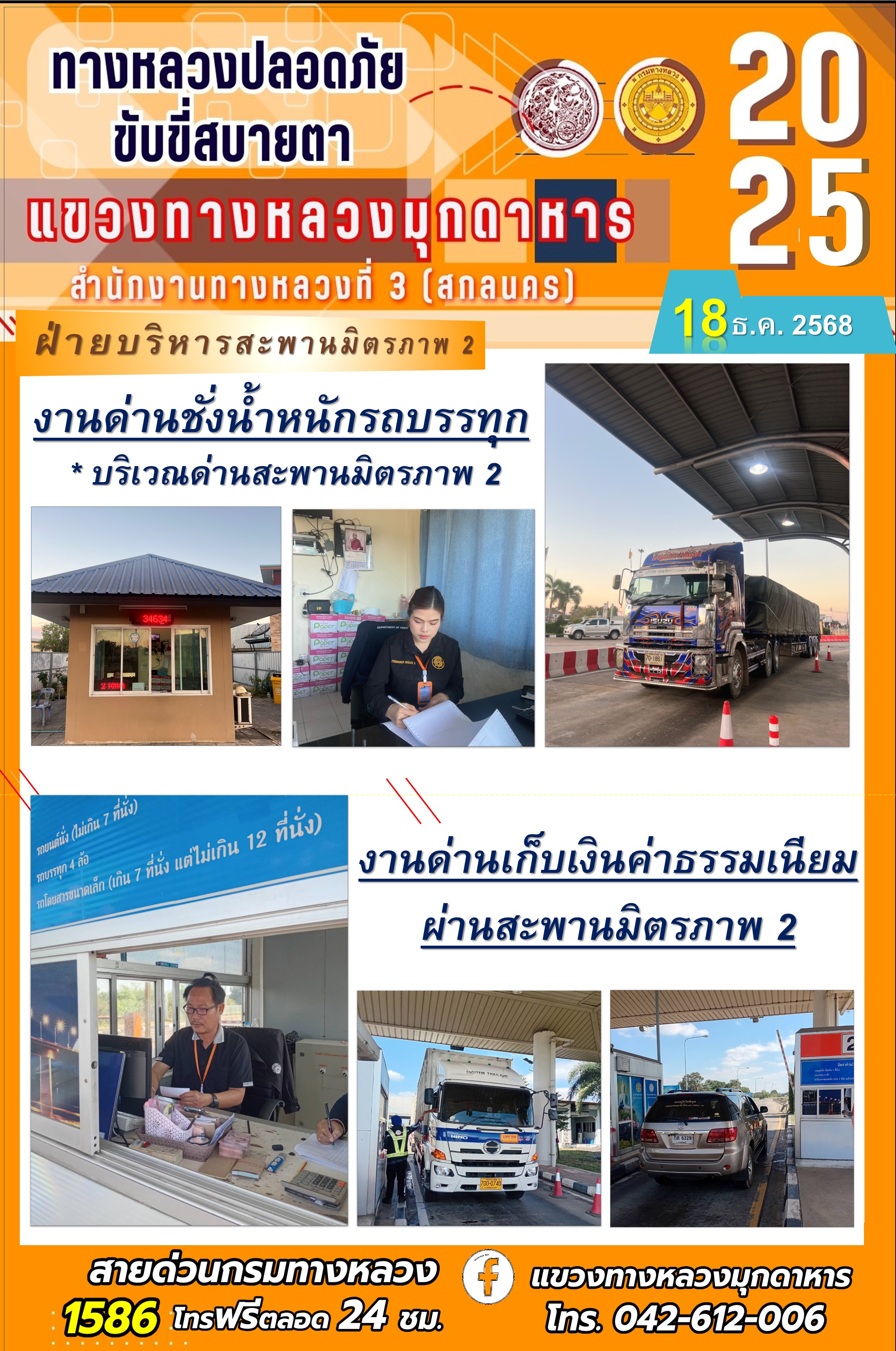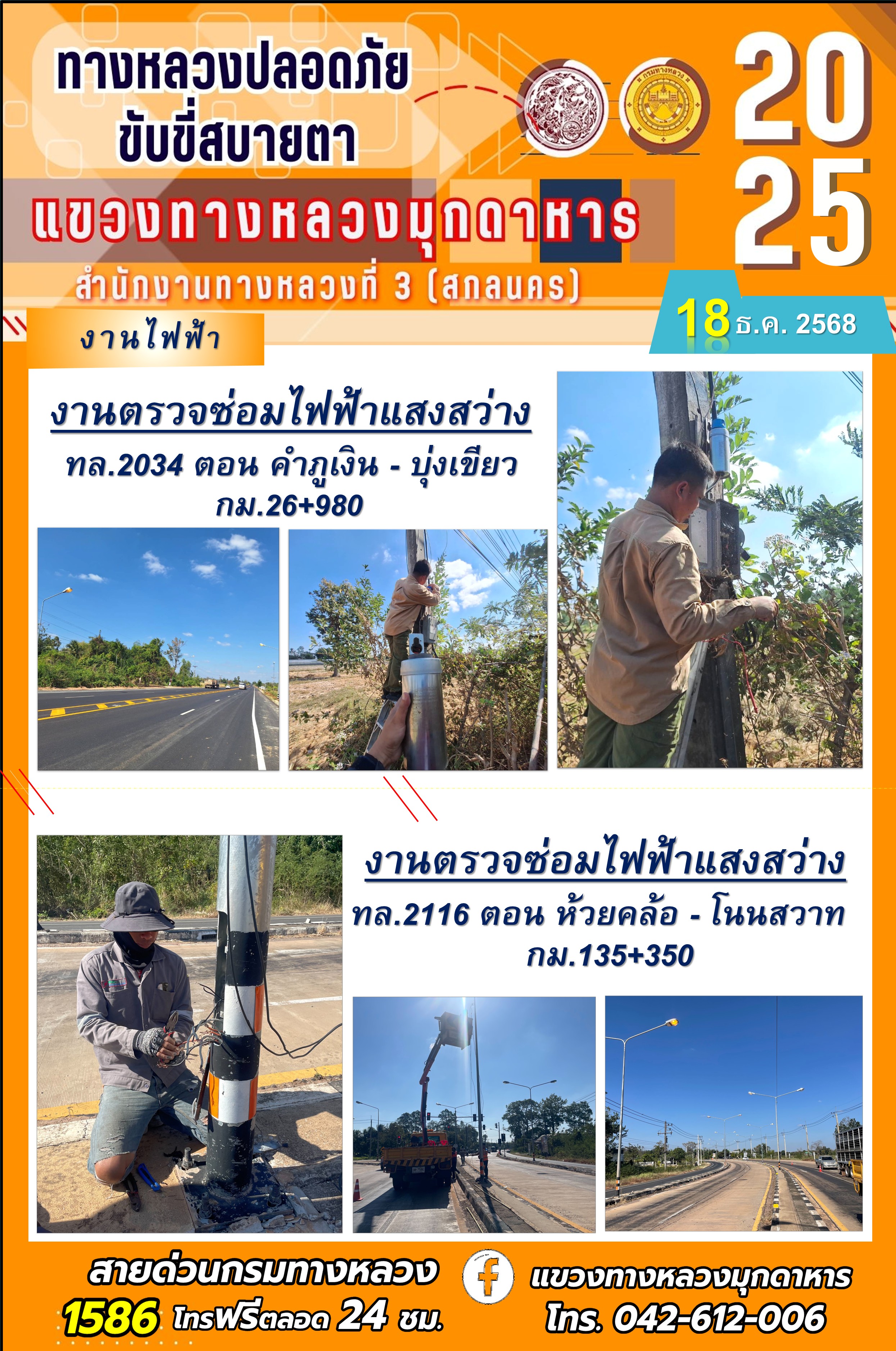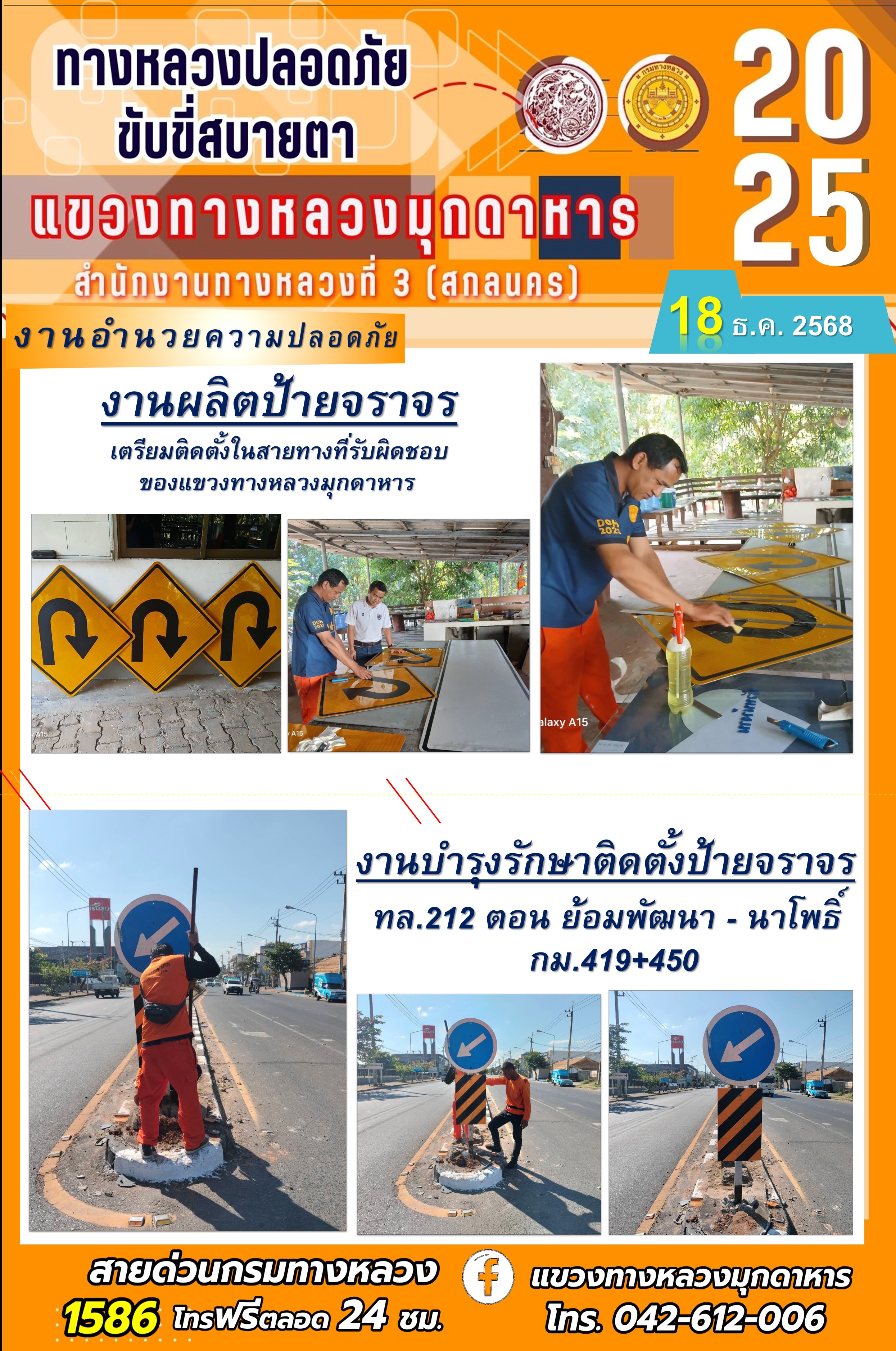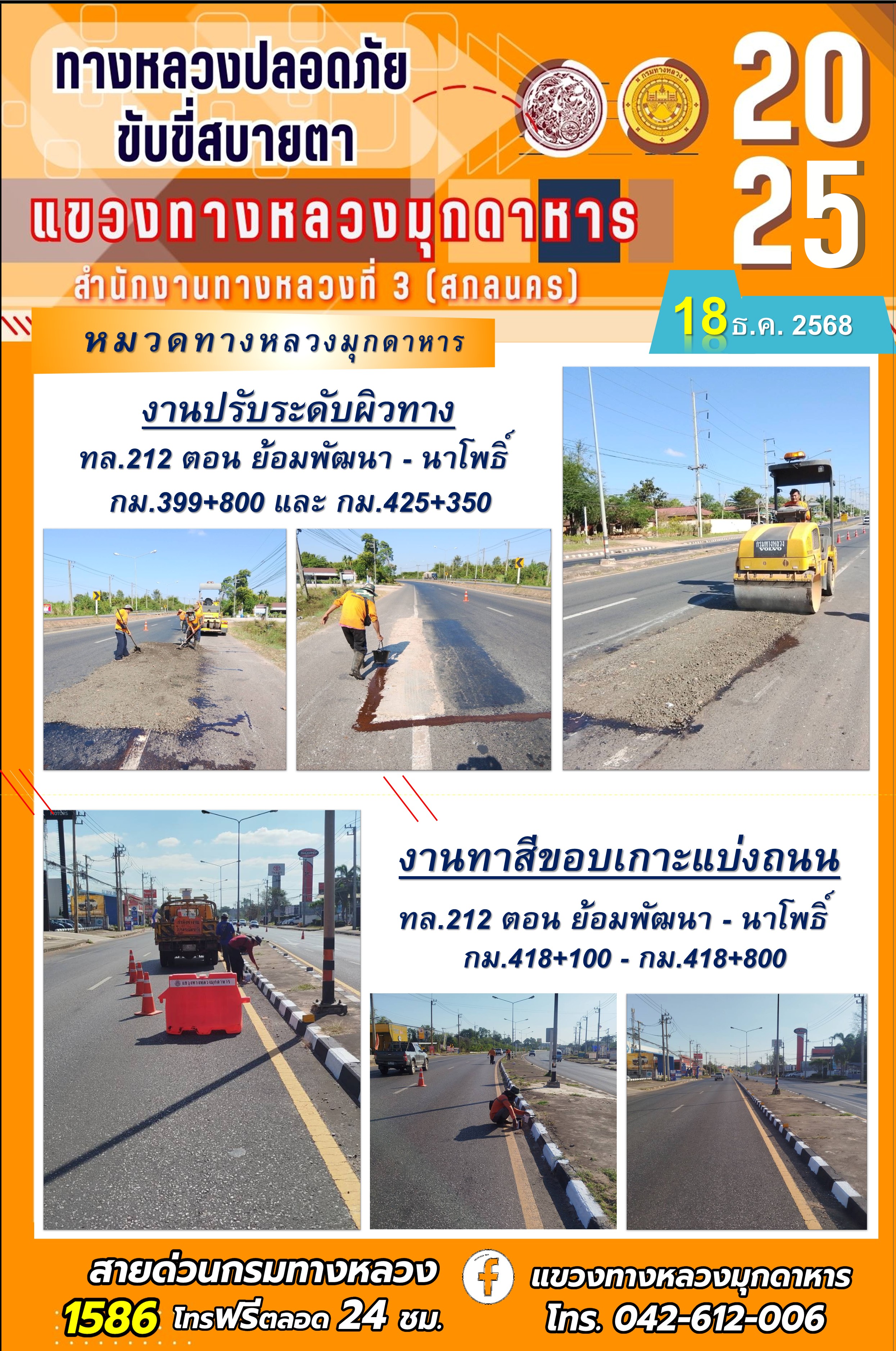 ประจำวันที่ 18.12.2568 โครงการทางหลวงปลอดภัย ขับขี่สบายตา หน่วยงานในสังกัดแขวงทางหลวง