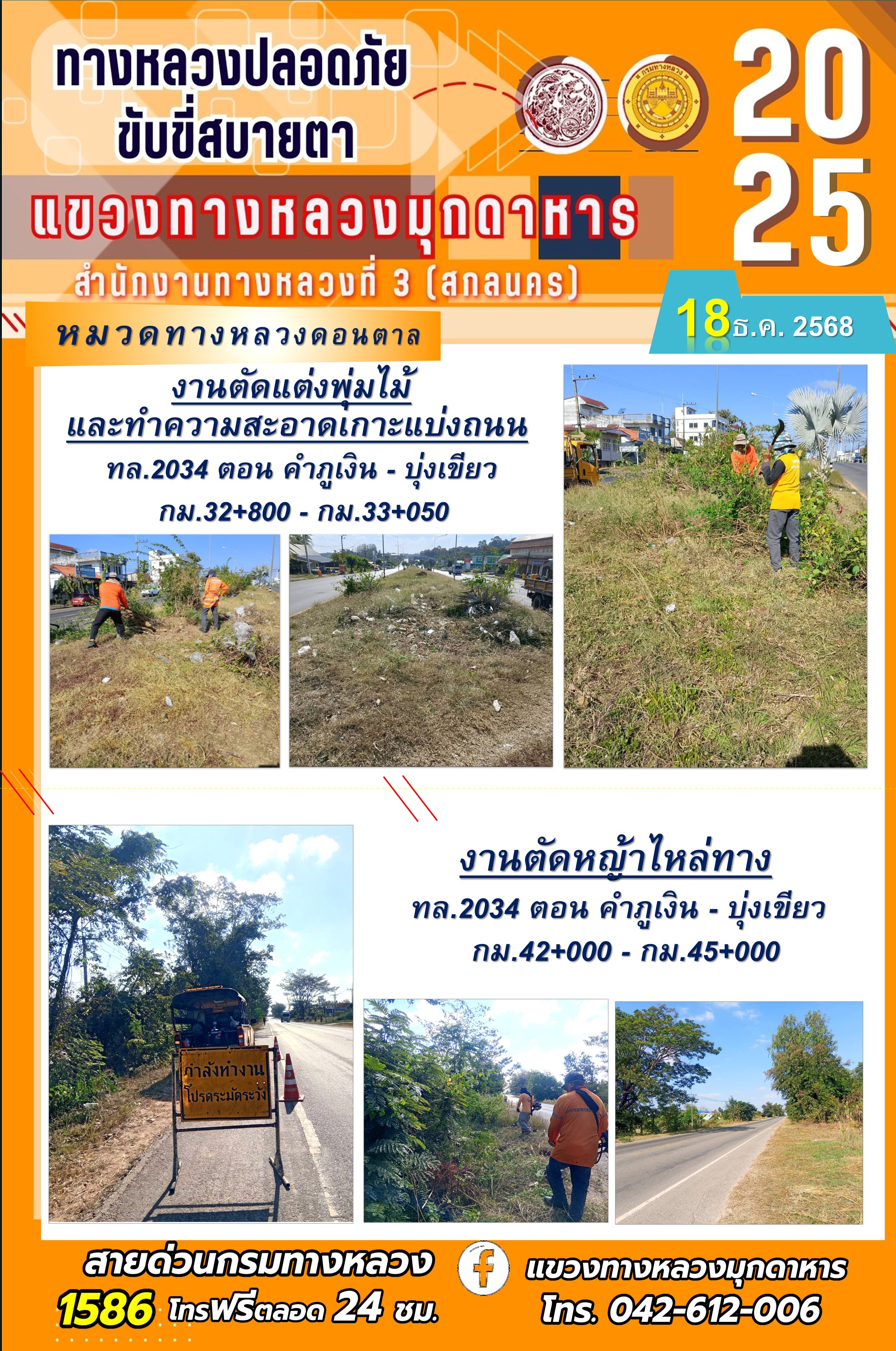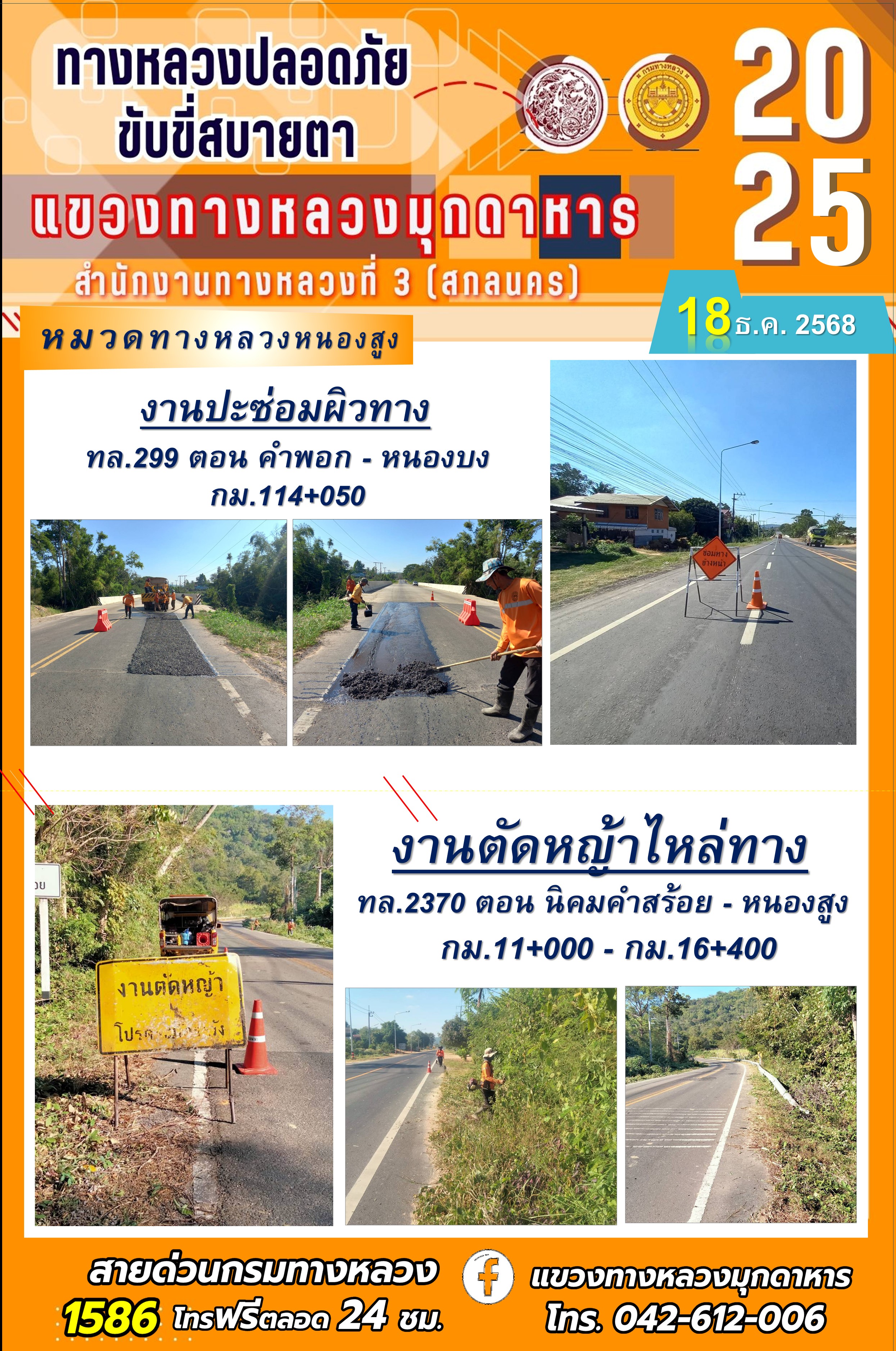 ข้อมูลภาพกิจกรรม : ประจำวันที่ 18.12.2568 โครงการทางหลวงปลอดภัย ขับขี่สบายตา หน่วยงานในสังกัดแขวงทางหลวง