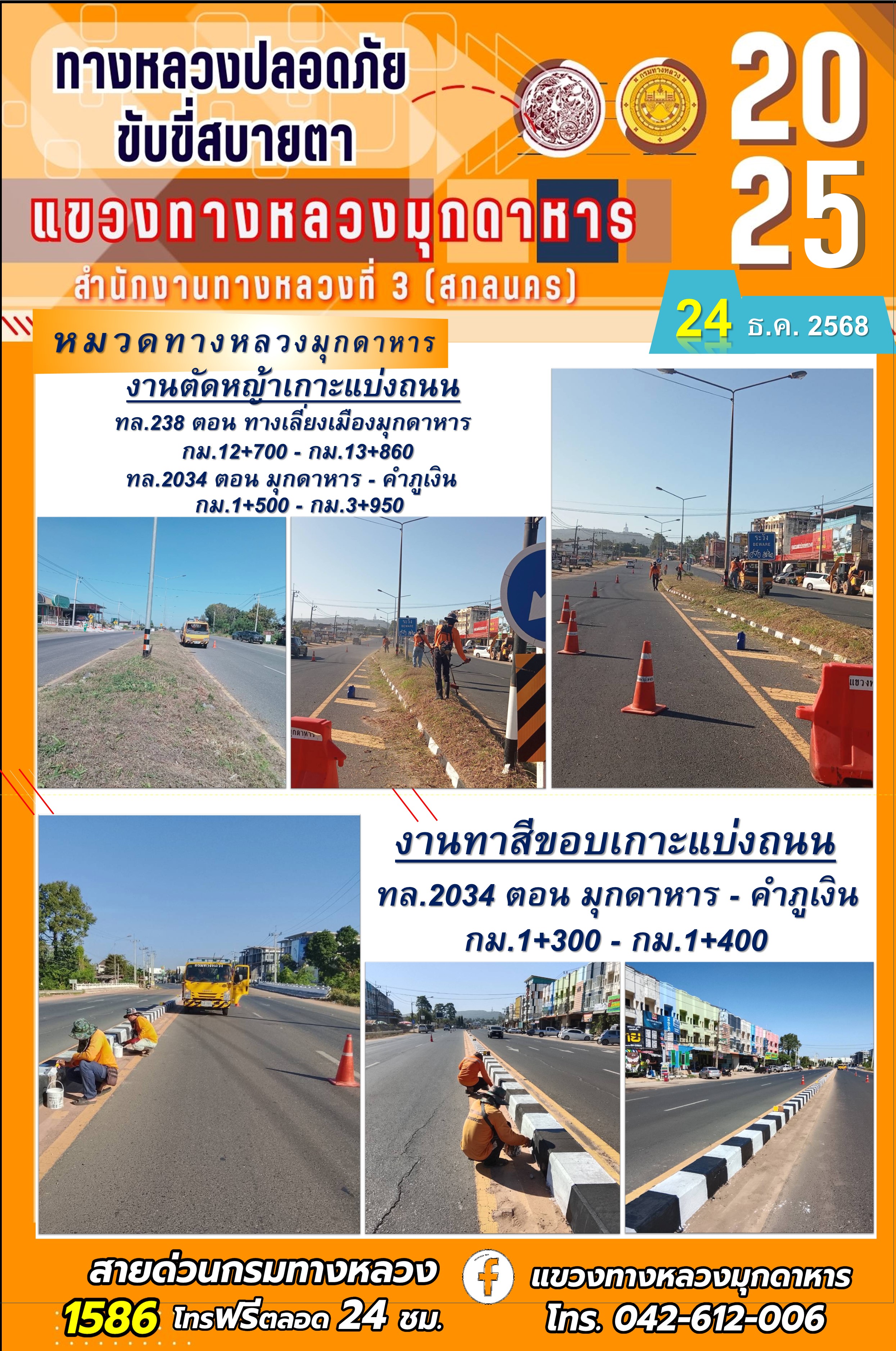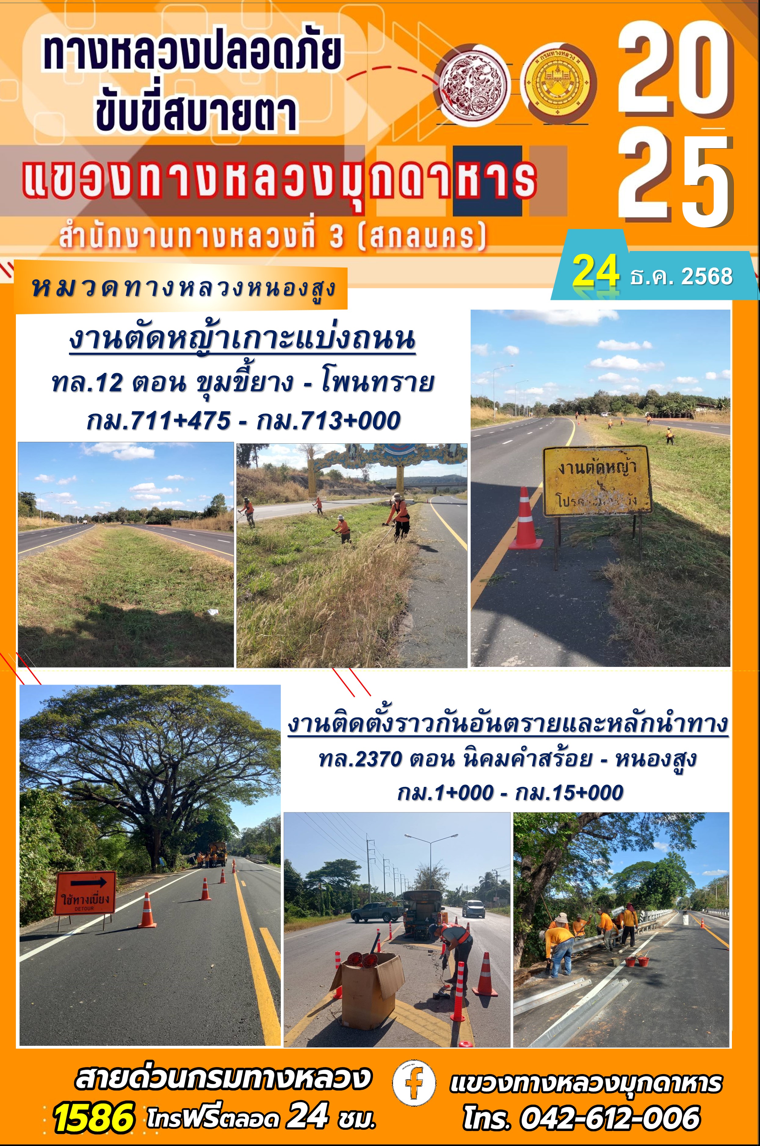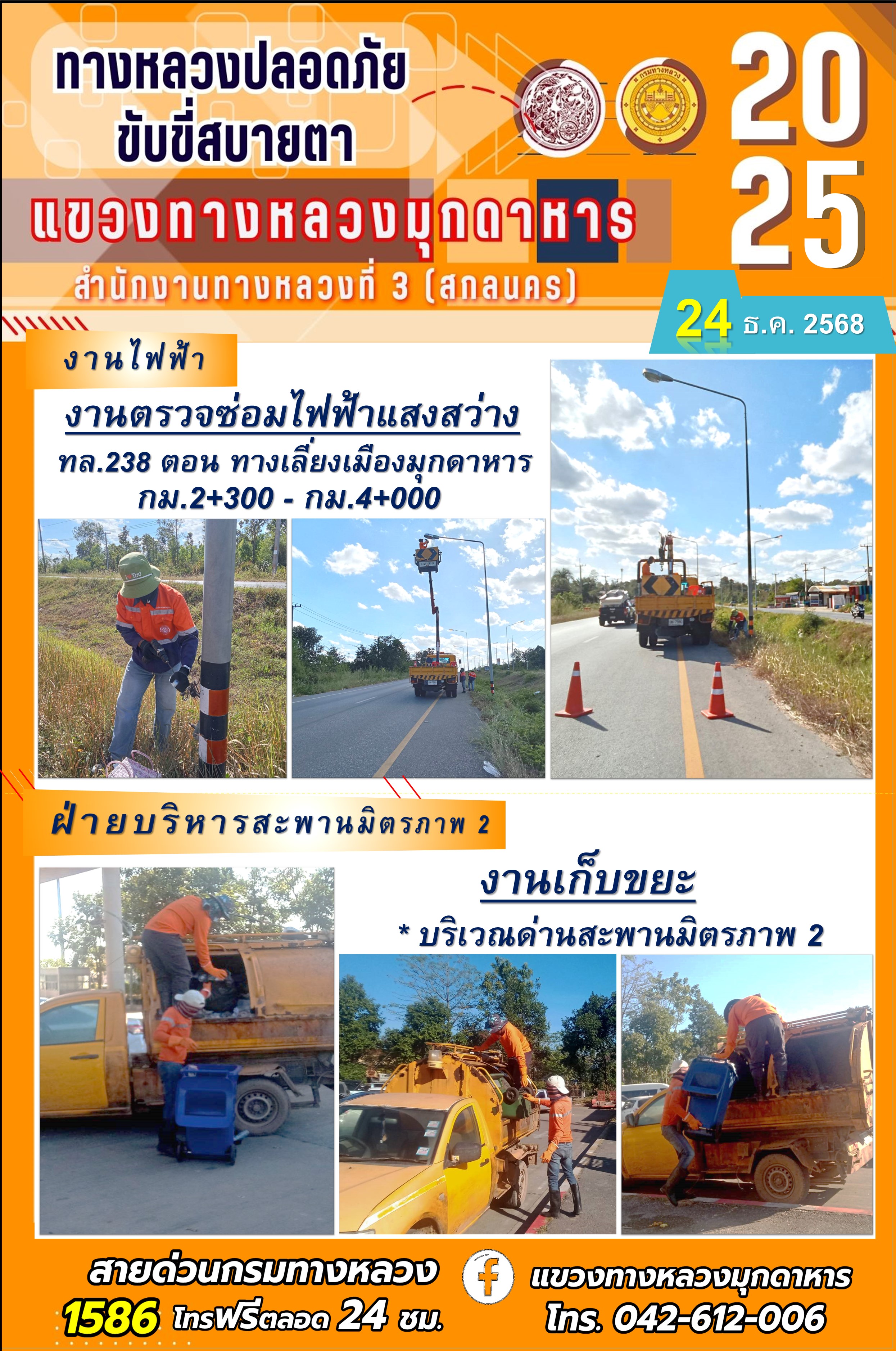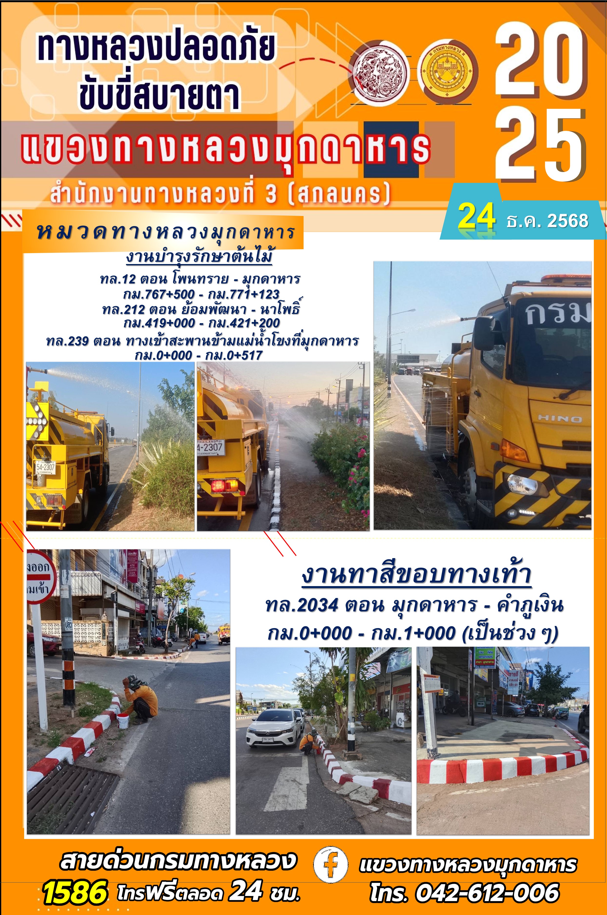 ประจำวันที่ 24.12.2568 โครงการทางหลวงปลอดภัย ขับขี่สบายตา หน่วยงานในสังกัดแขวงทางหลวง