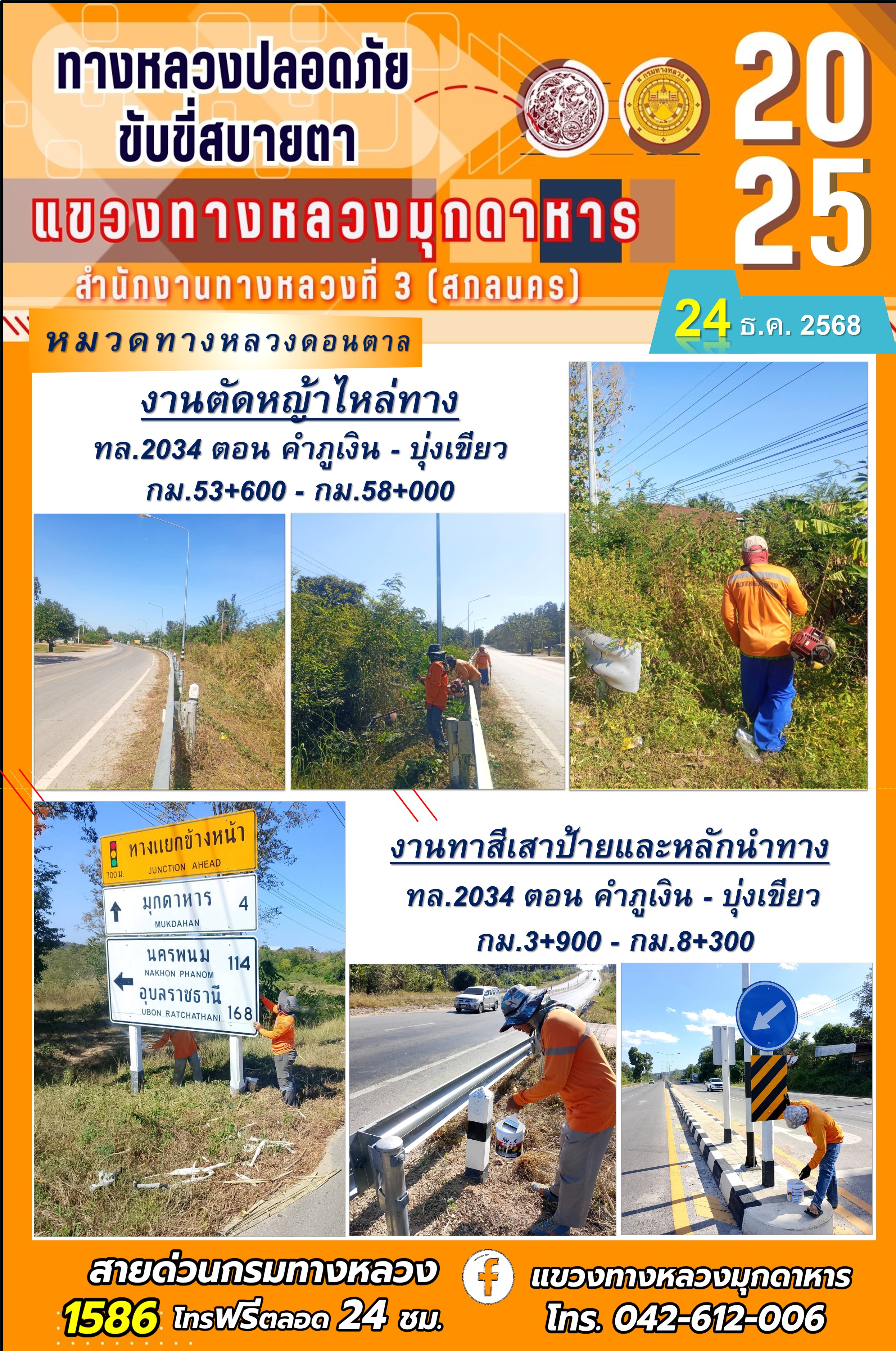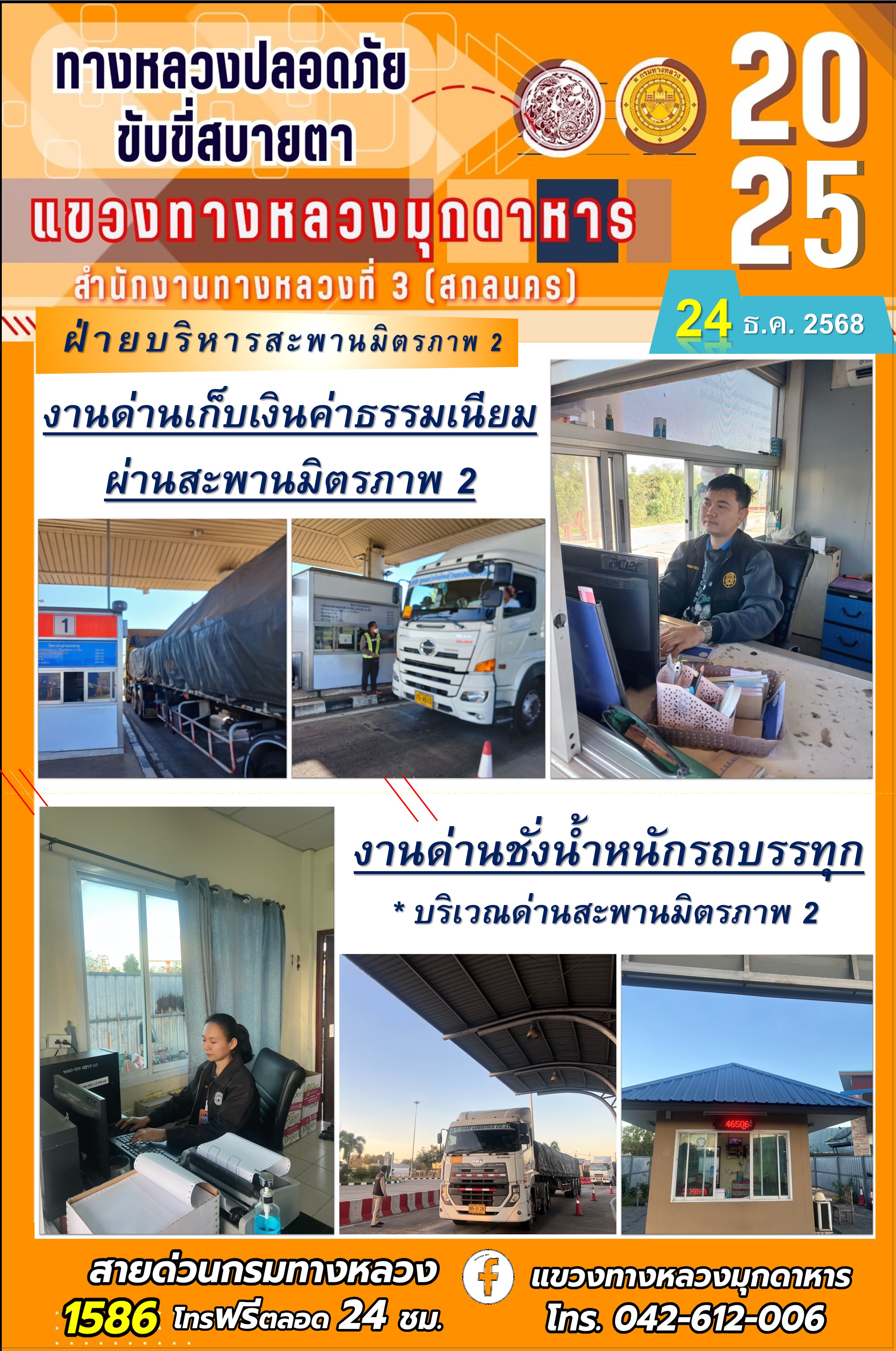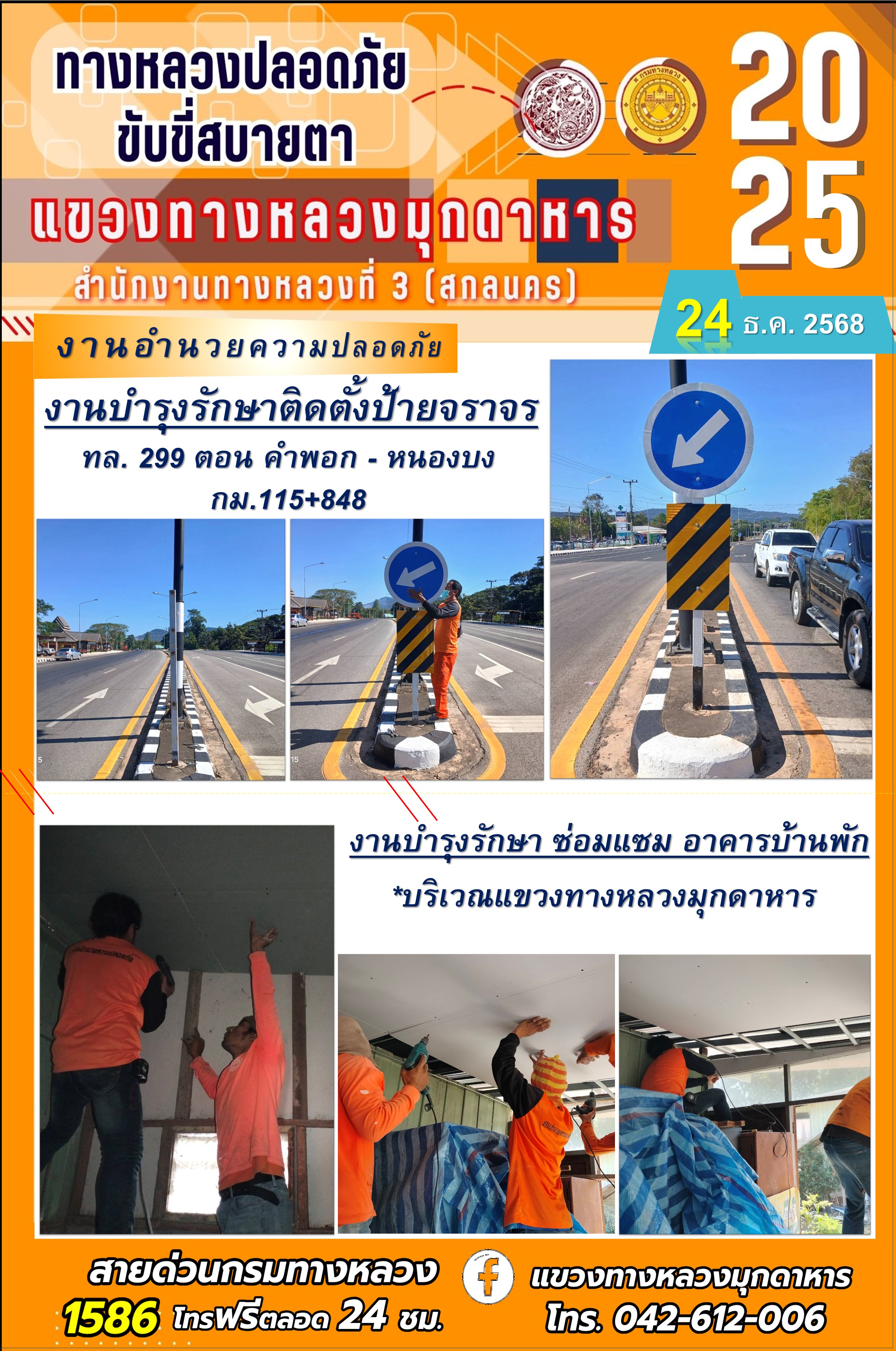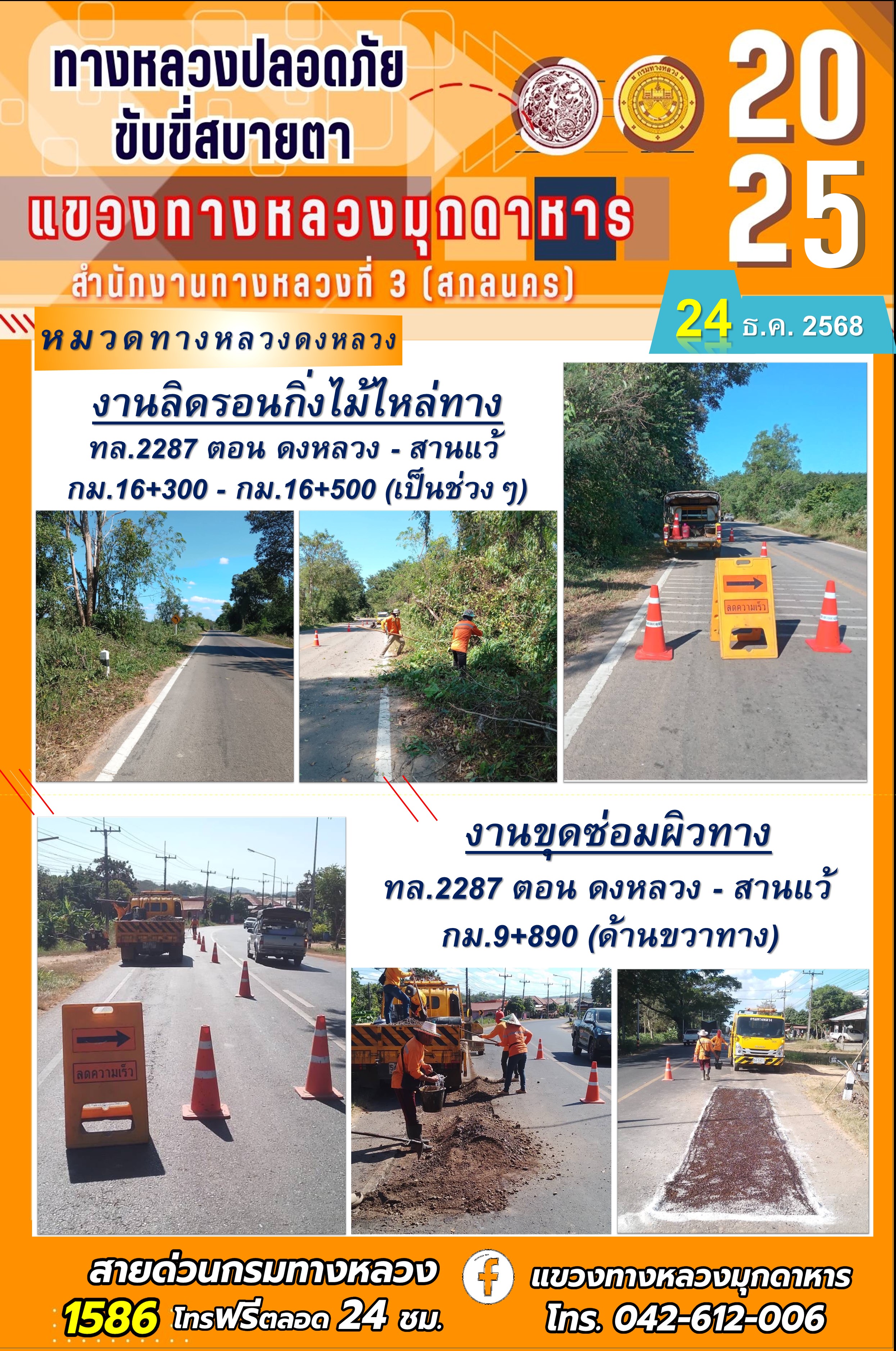 ประจำวันที่ 24.12.2568 โครงการทางหลวงปลอดภัย ขับขี่สบายตา หน่วยงานในสังกัดแขวงทางหลวง