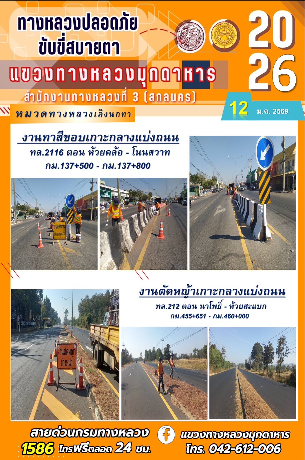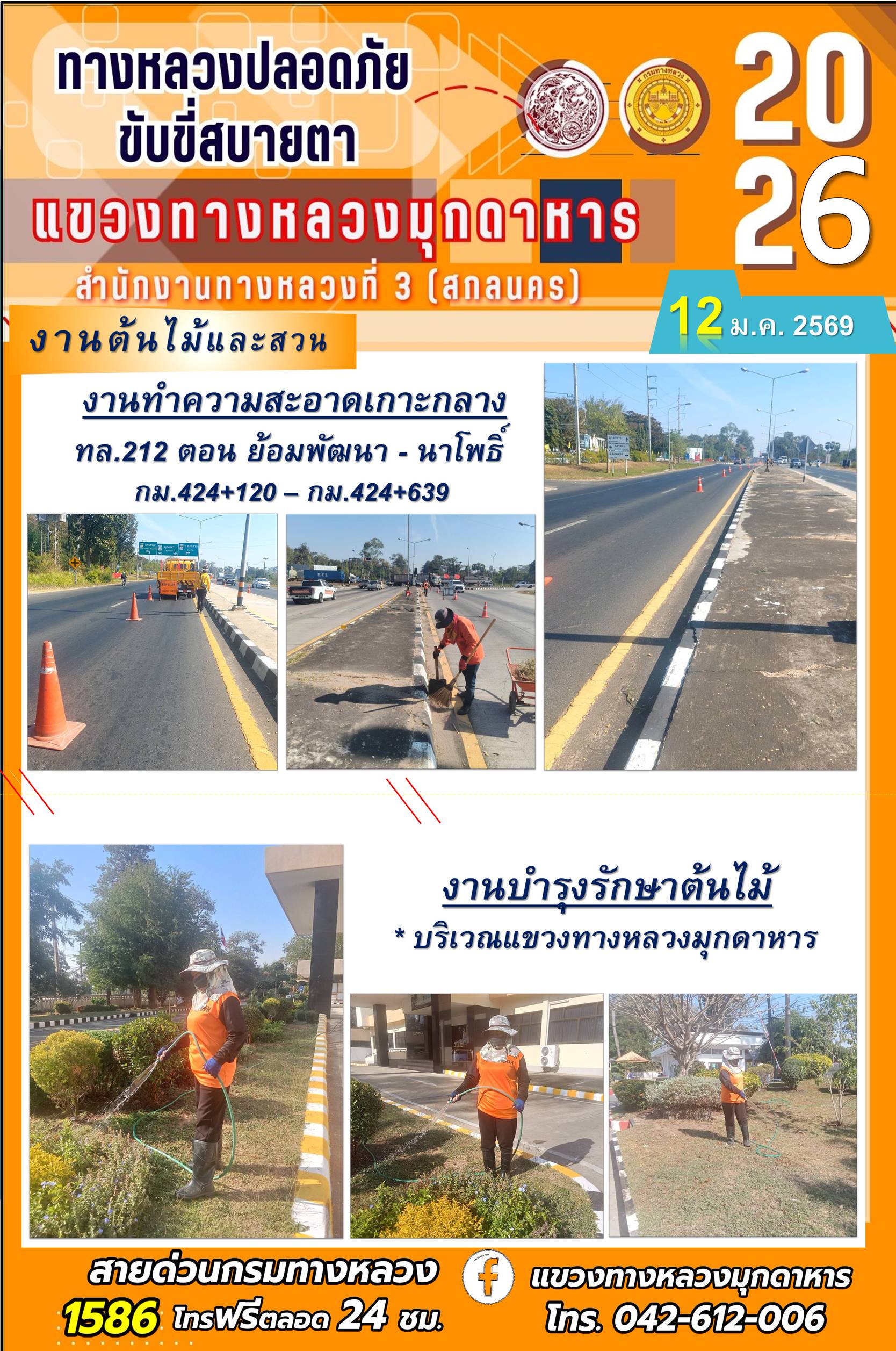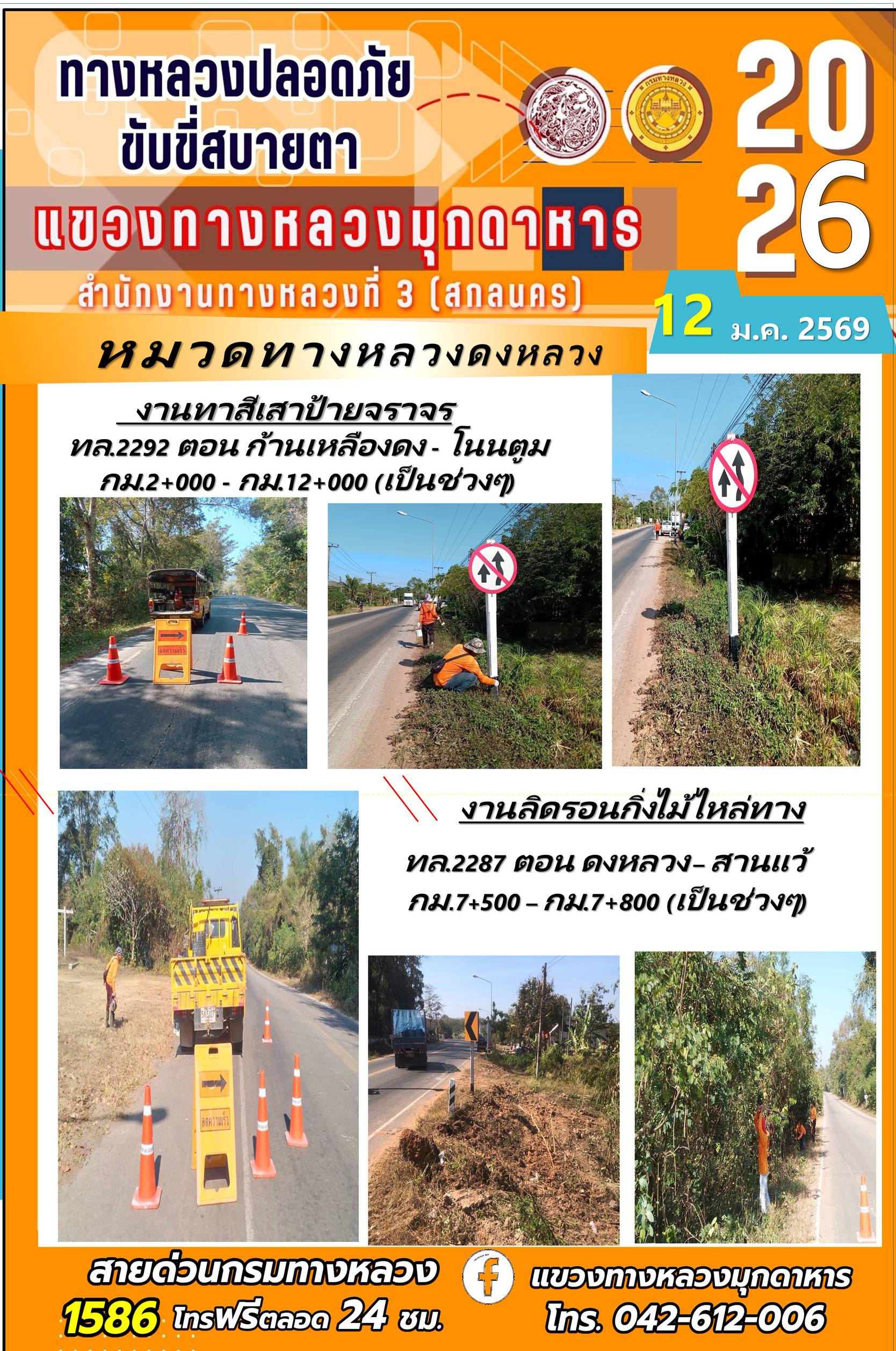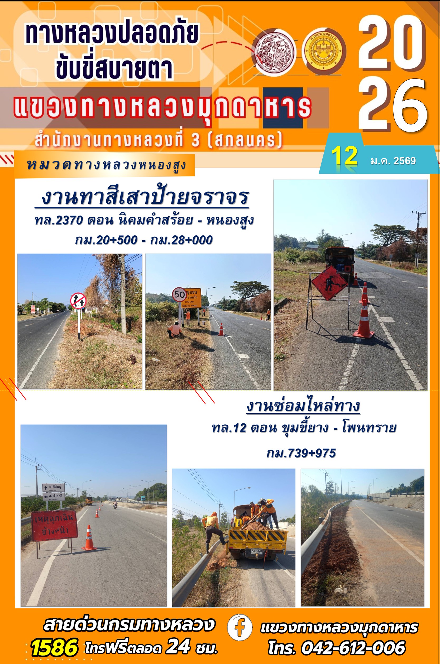 ประจำวันที่ 12 มกราคม 2569 โครงการทางหลวงปลอดภัย ขับขี่สบายตา หน่วยงานในสังกัดแขวงทางหลวง