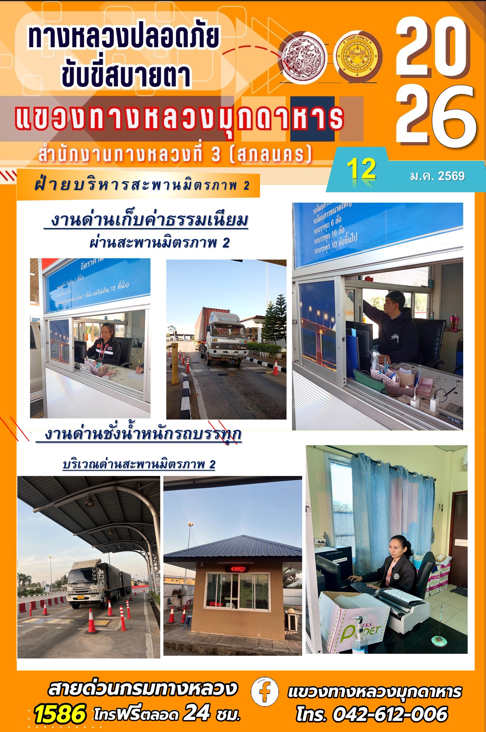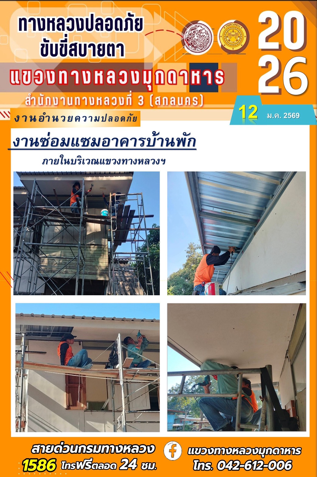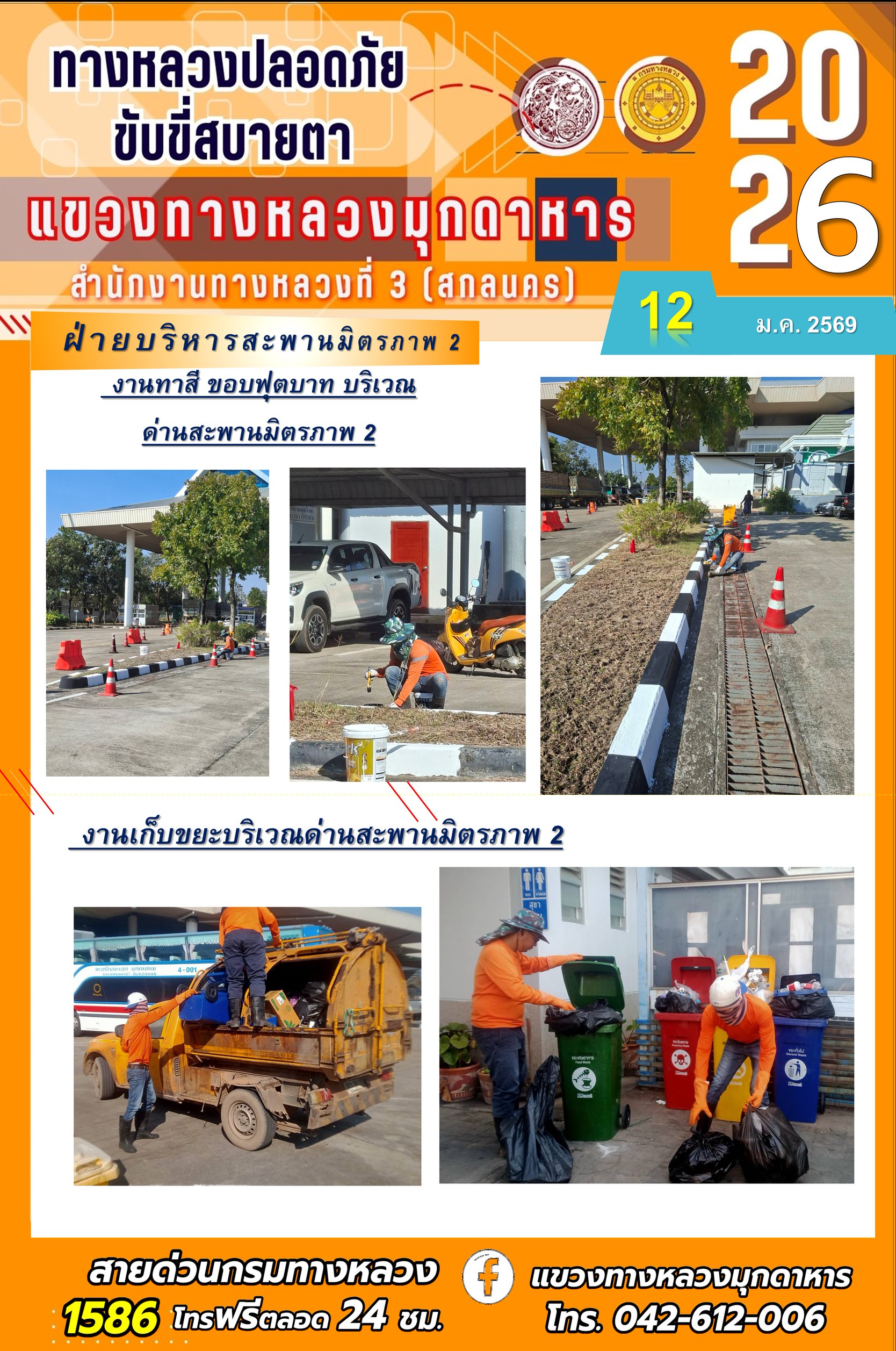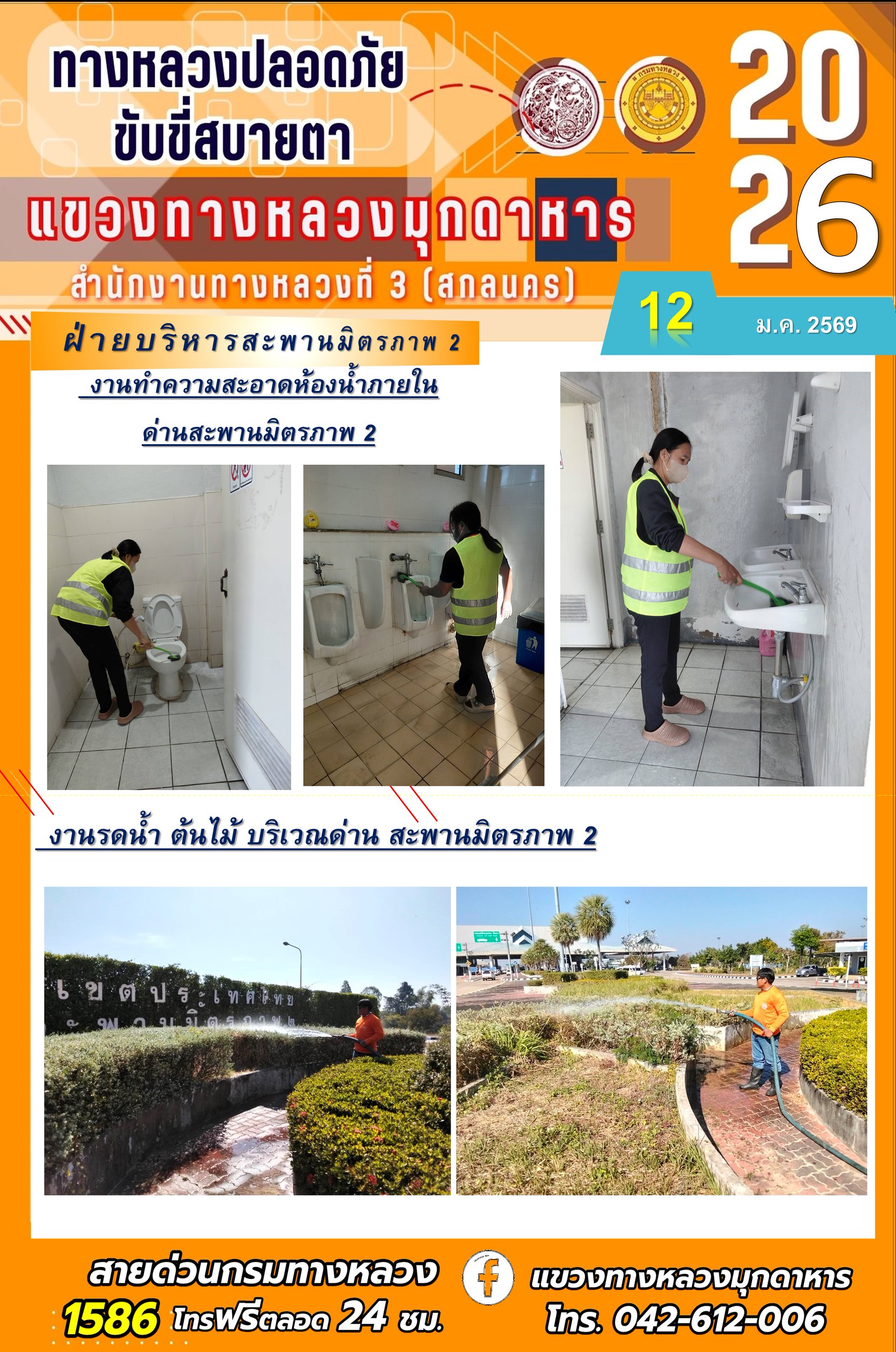 ประจำวันที่ 12 มกราคม 2569 โครงการทางหลวงปลอดภัย ขับขี่สบายตา หน่วยงานในสังกัดแขวงทางหลวง