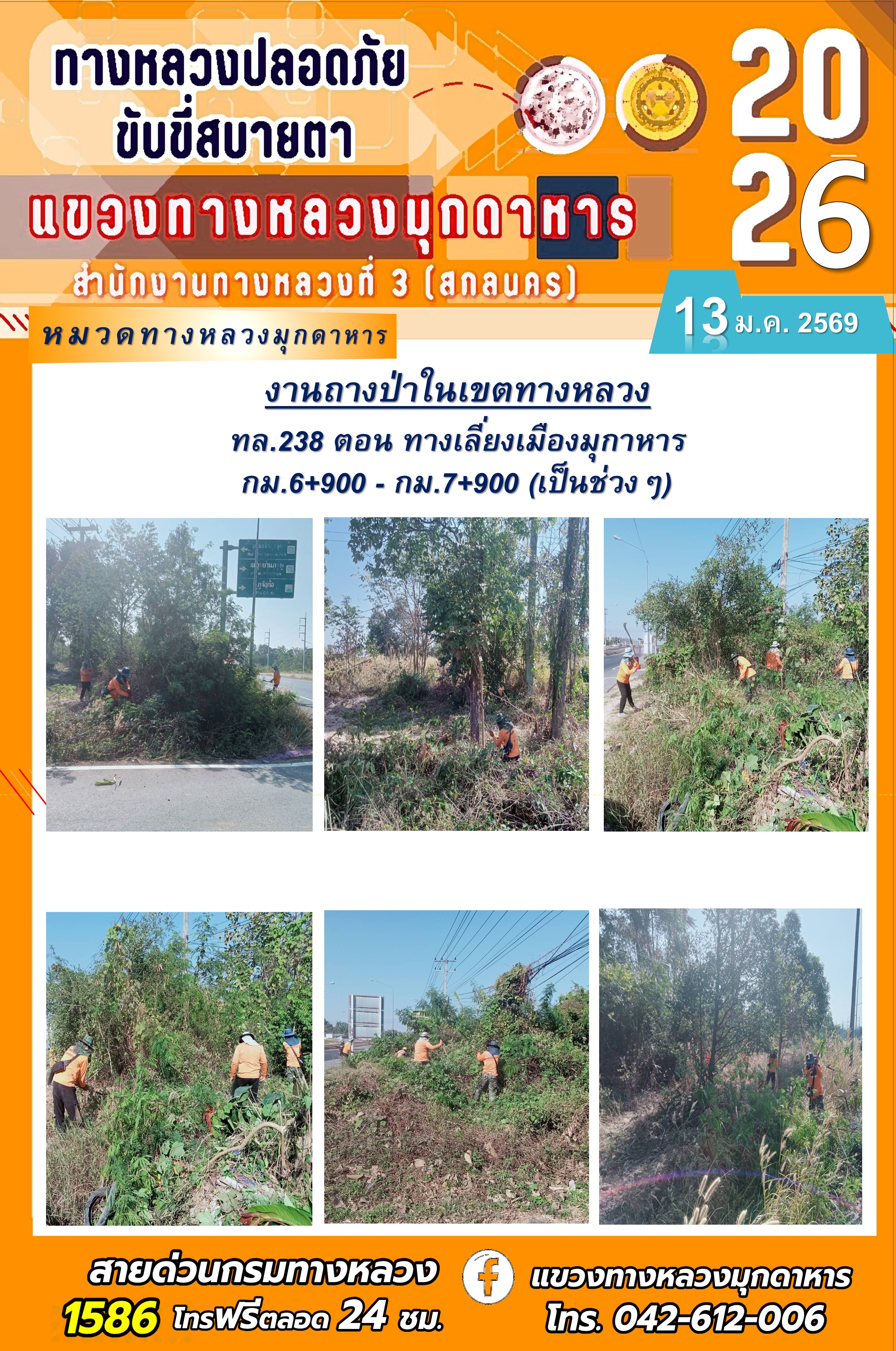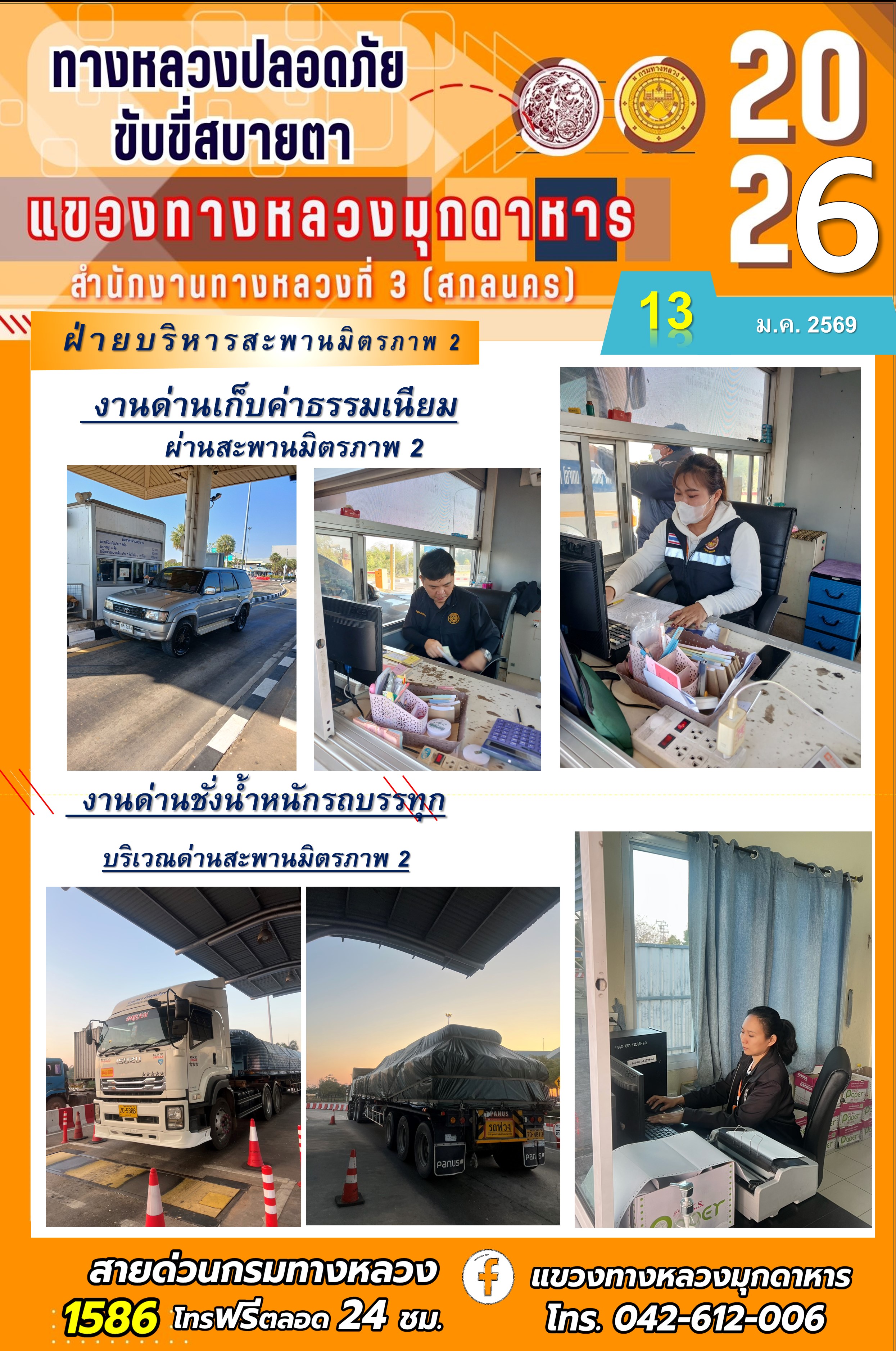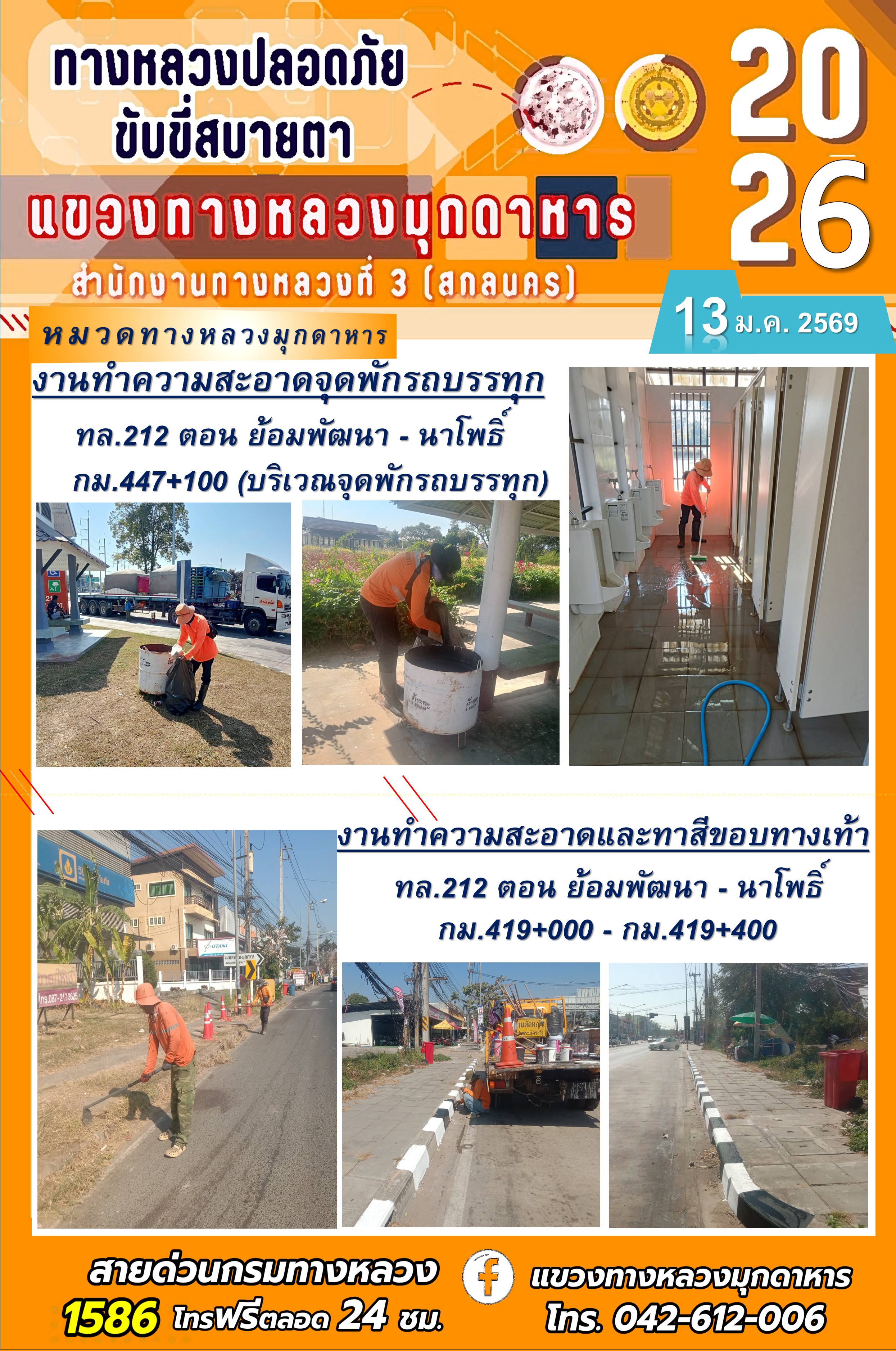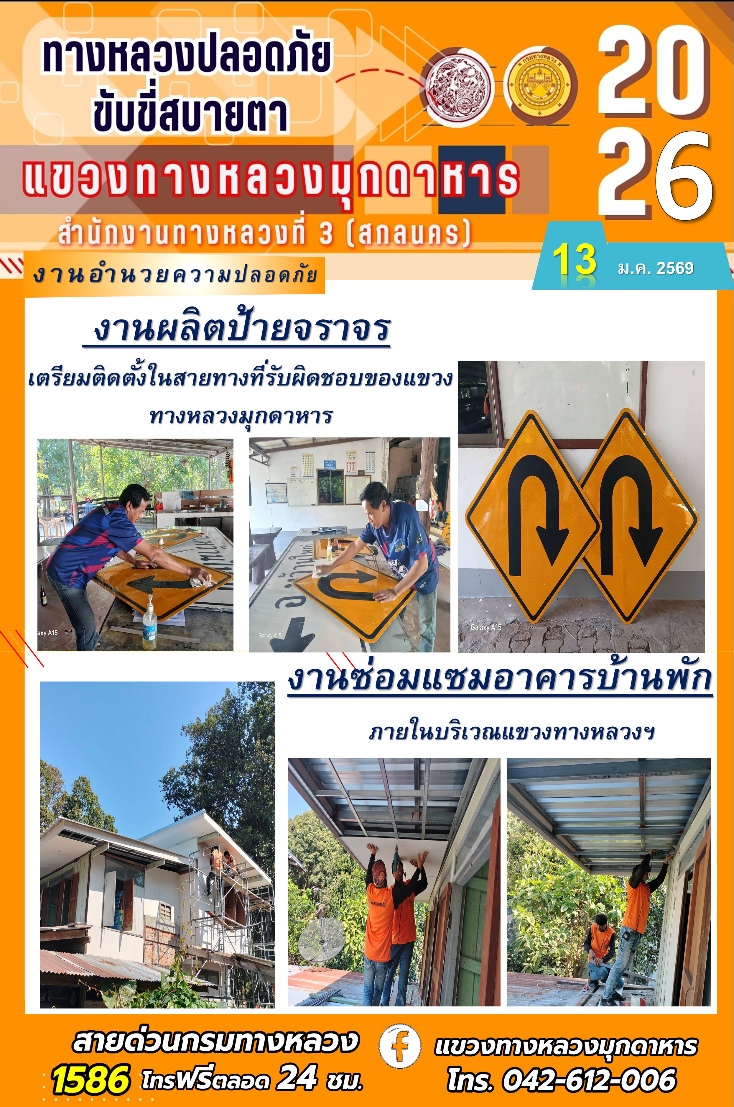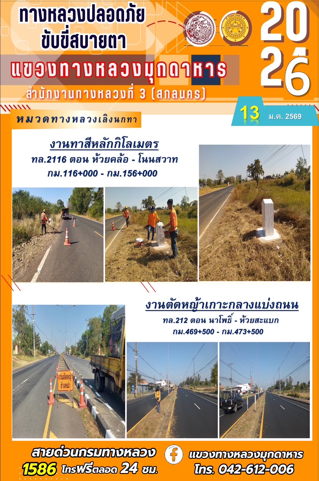 ประจำวันที่ 13 มกราคม 2569 โครงการทางหลวงปลอดภัย ขับขี่สบายตา หน่วยงานในสังกัดแขวงทางหลวง