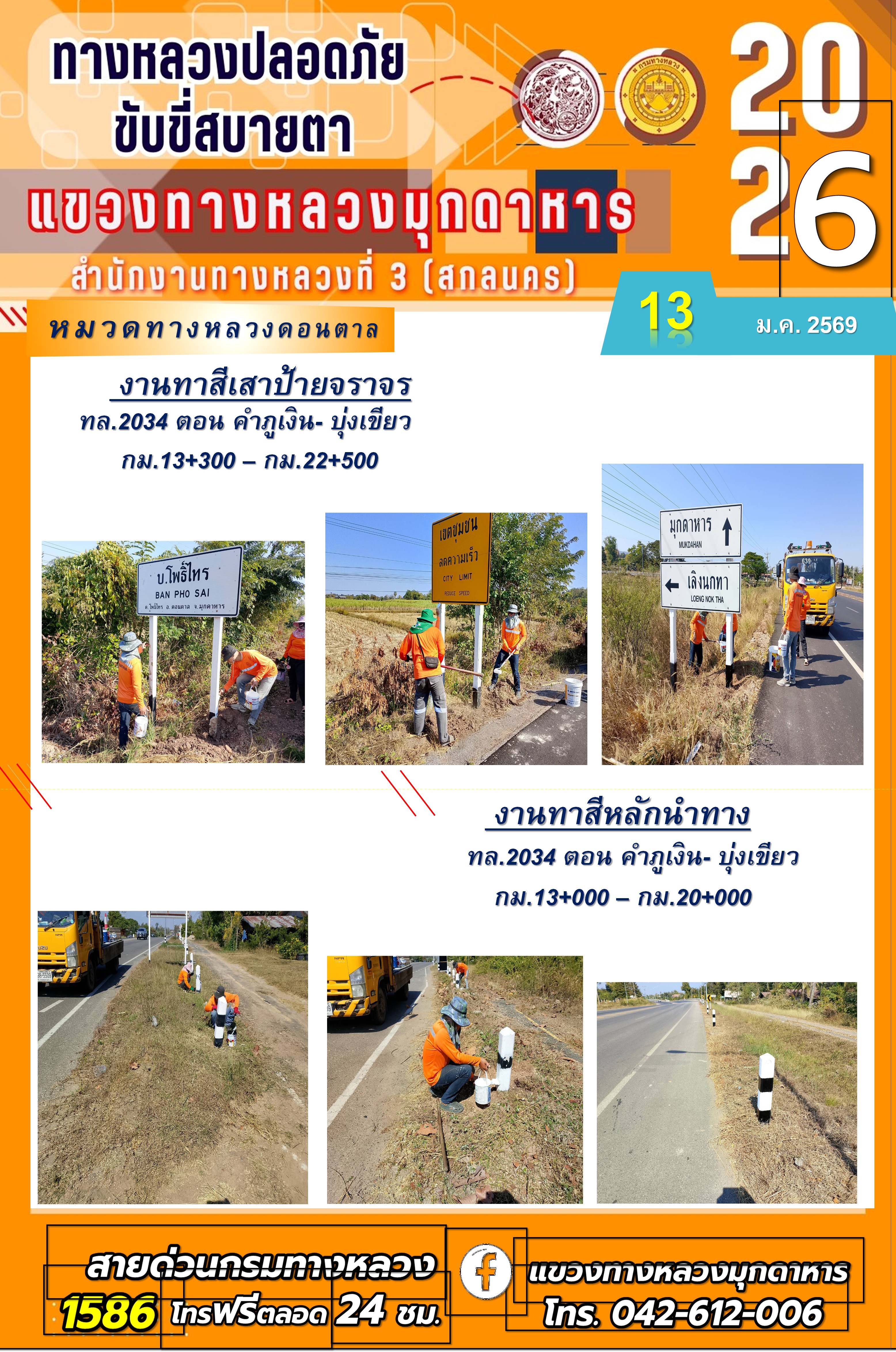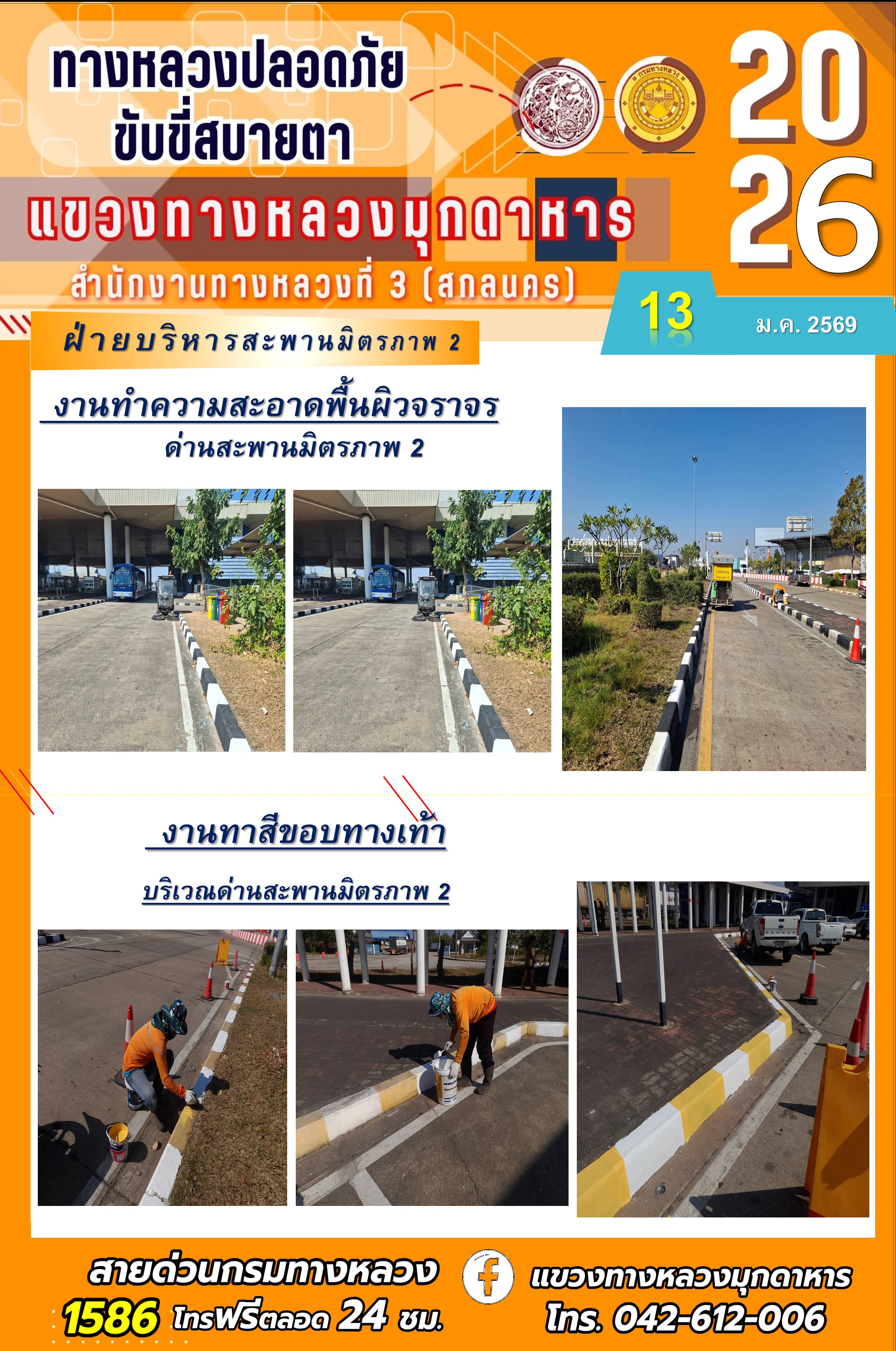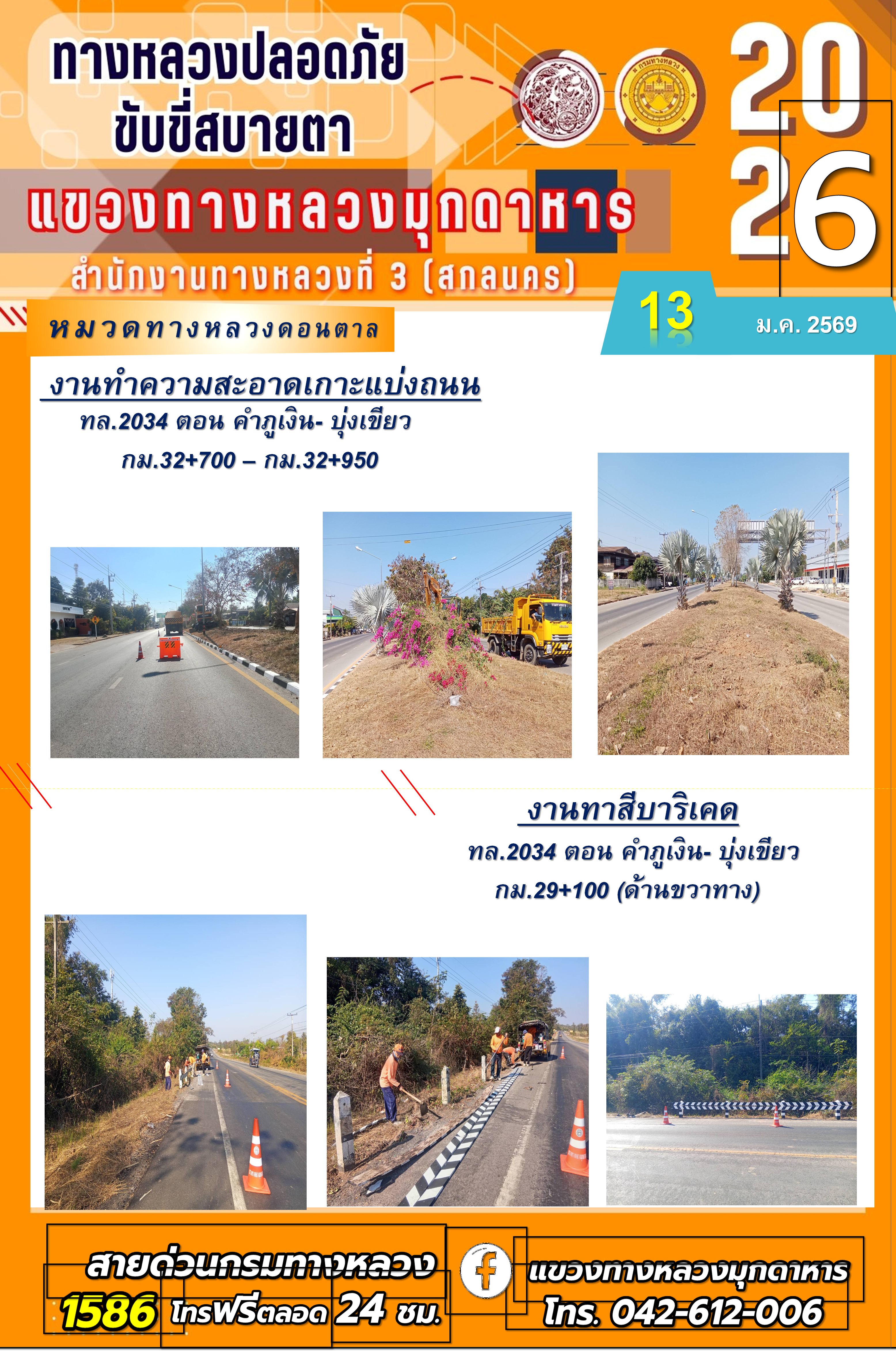 ข้อมูลภาพกิจกรรม : ประจำวันที่ 13 มกราคม 2569 โครงการทางหลวงปลอดภัย ขับขี่สบายตา หน่วยงานในสังกัดแขวงทางหลวง