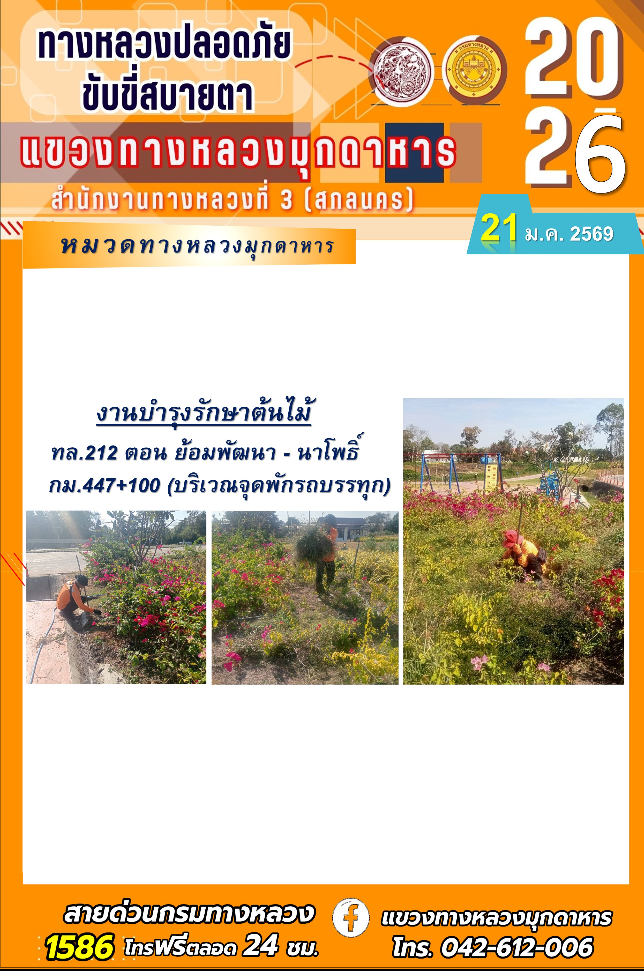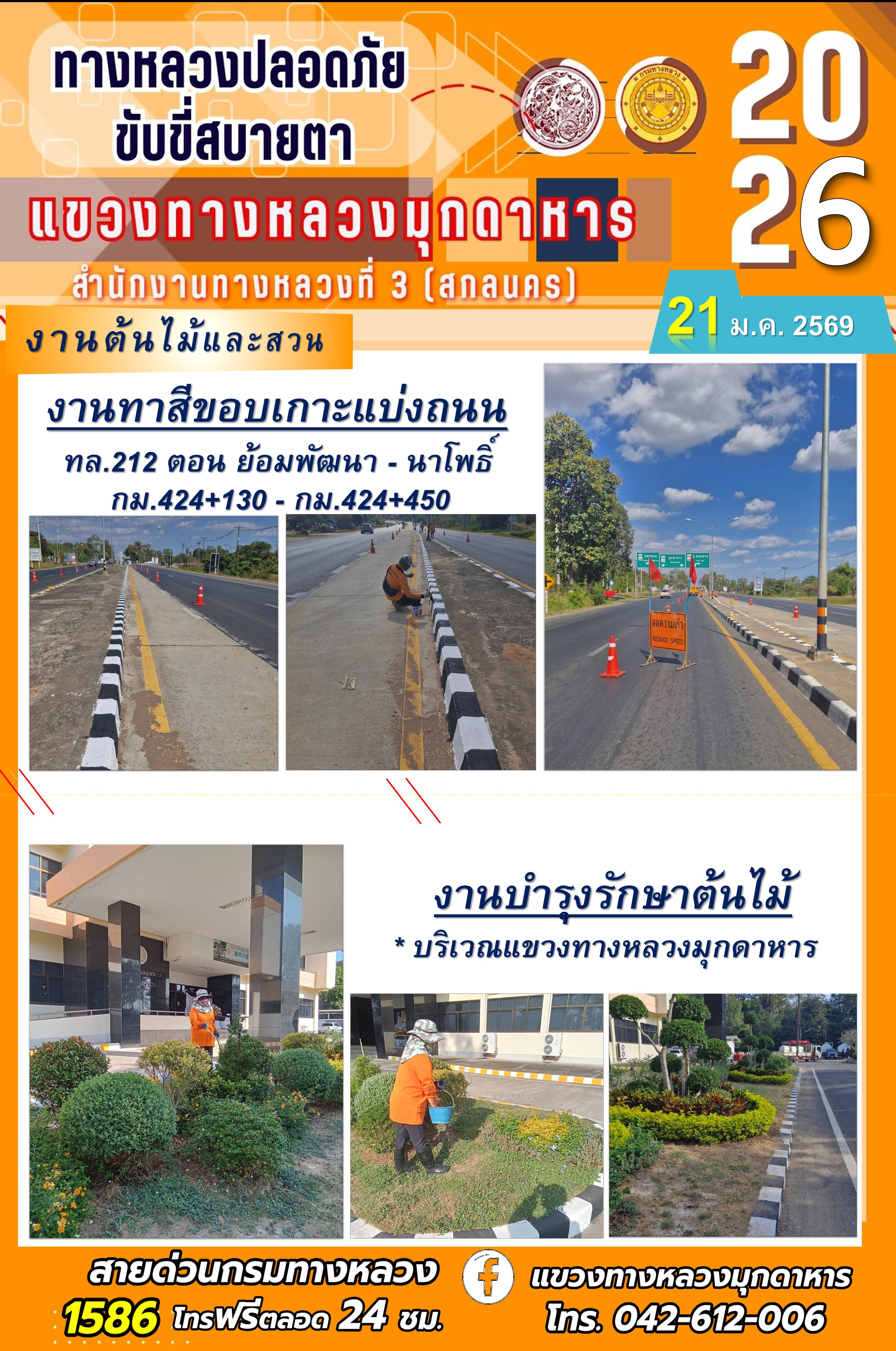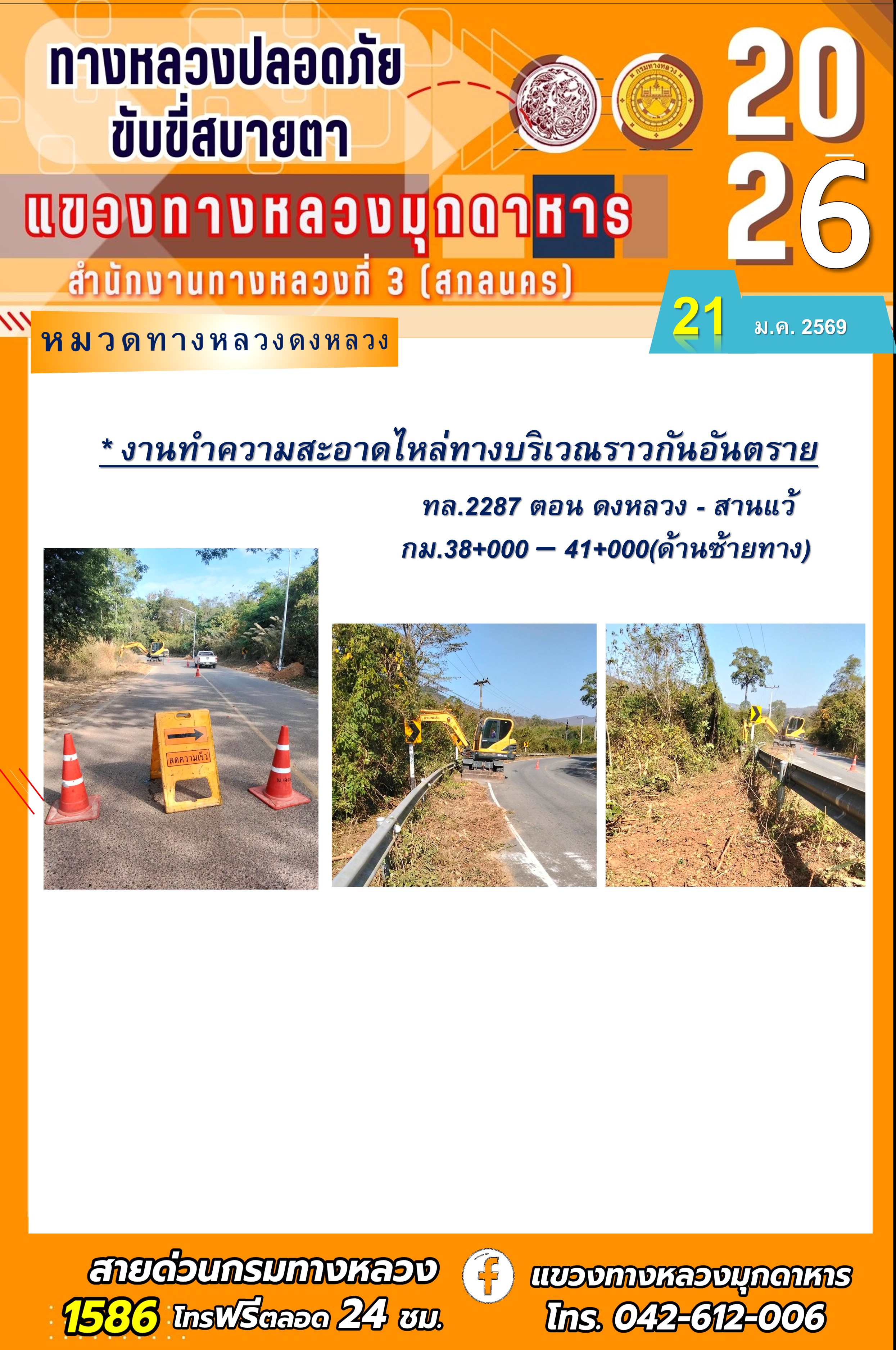 ประจำวันที่ 21 มกราคม 2569 โครงการทางหลวงปลอดภัย ขับขี่สบายตา หน่วยงานในสังกัดแขวงทางหลวง