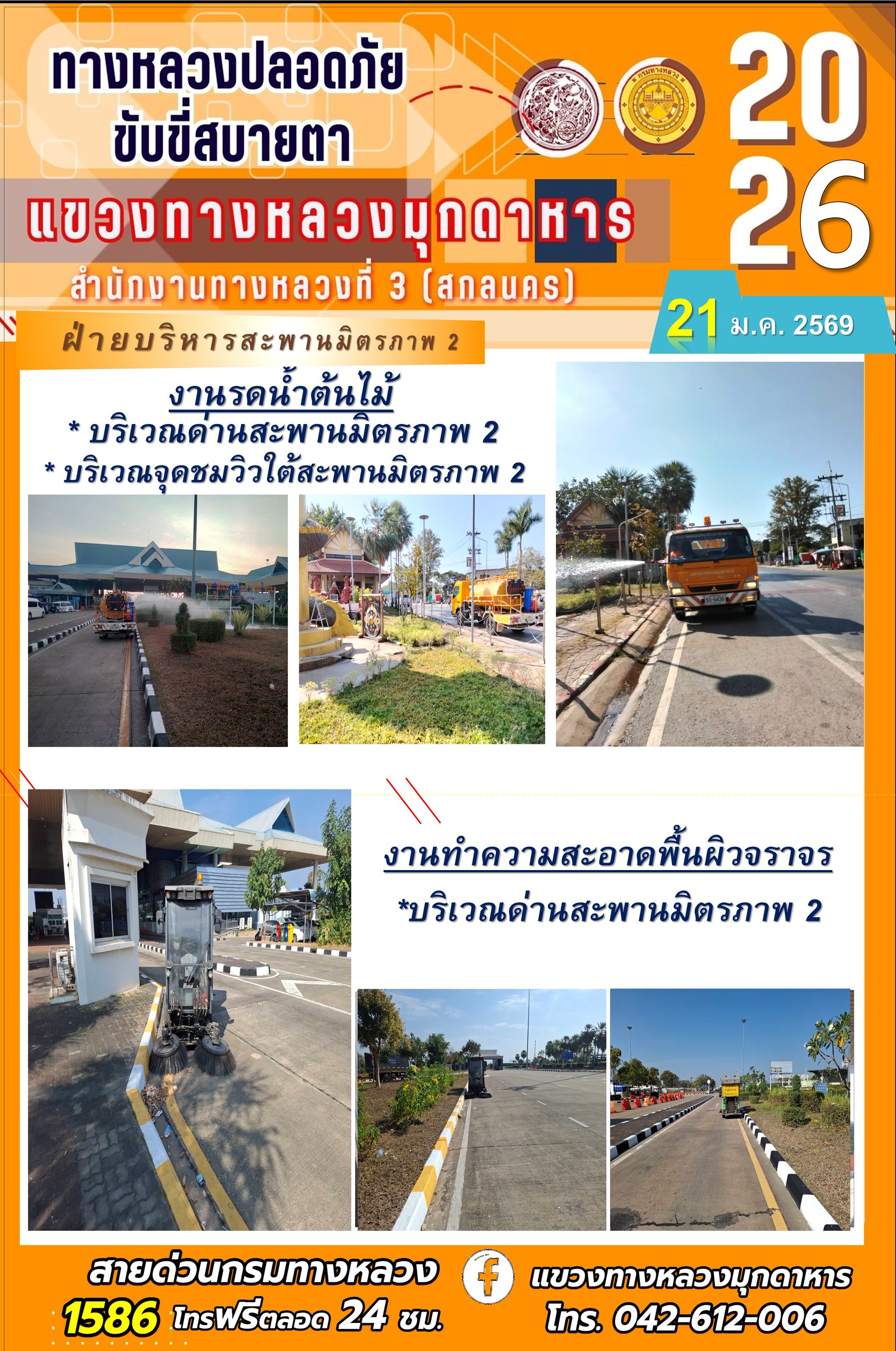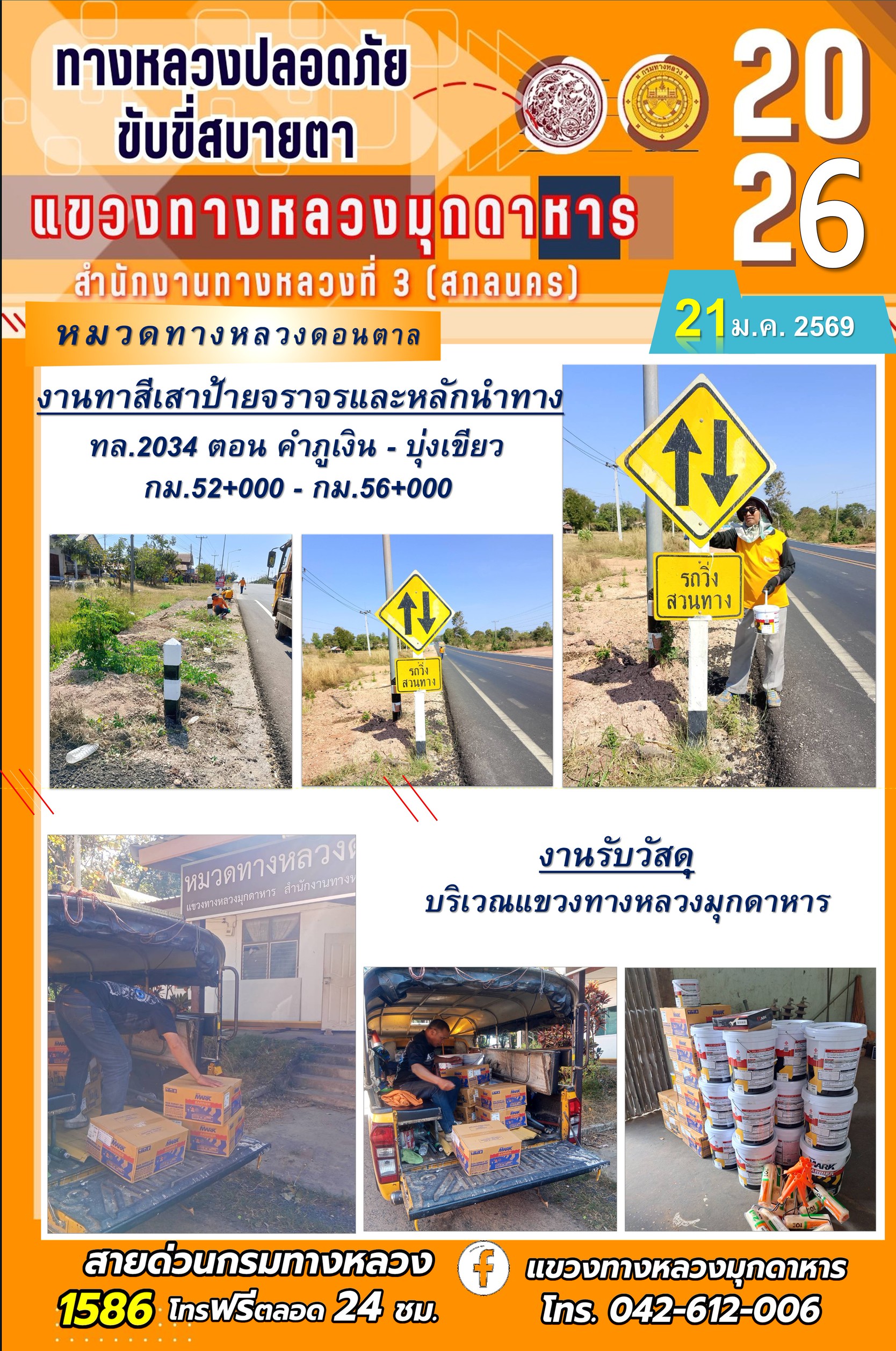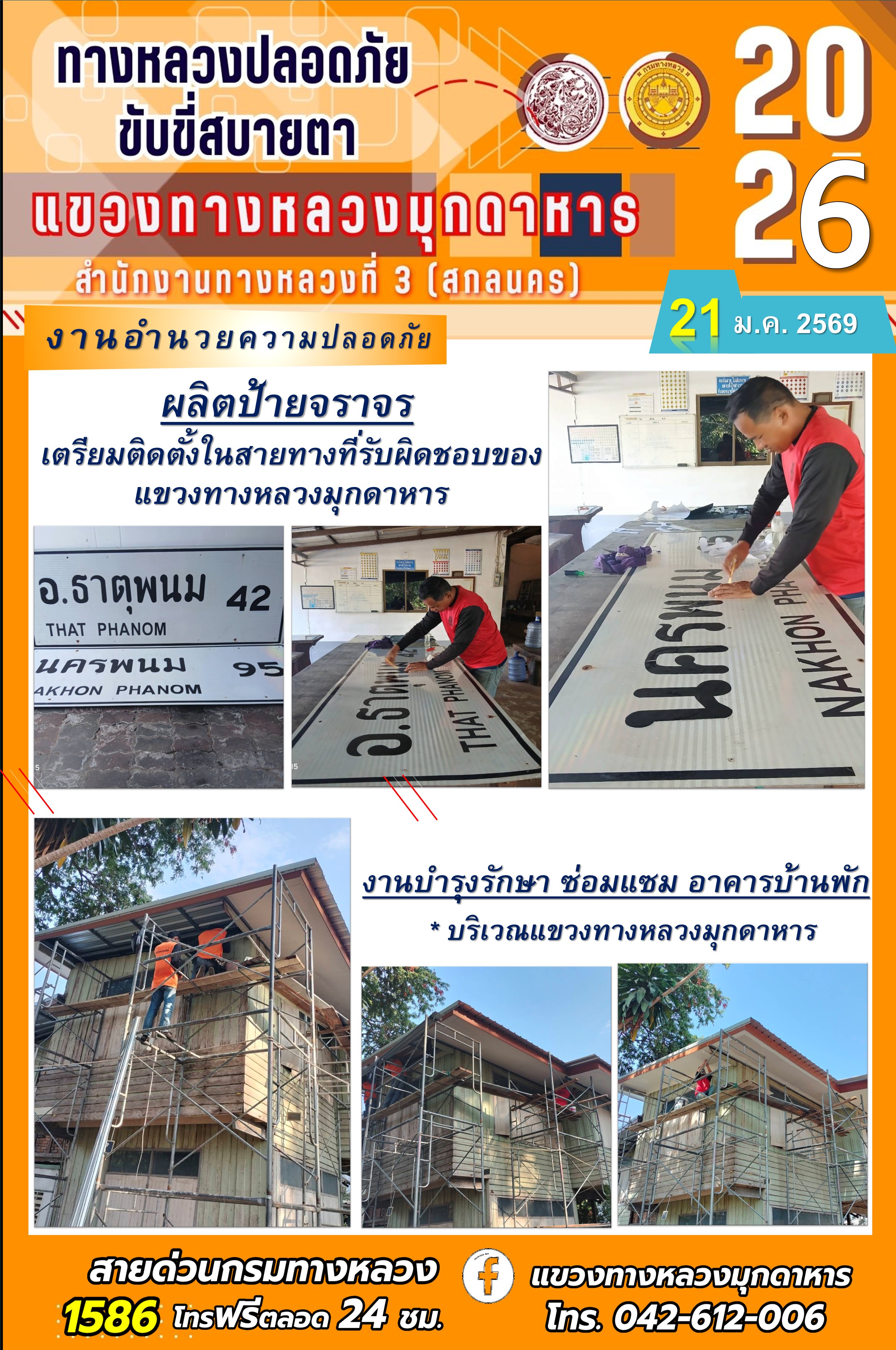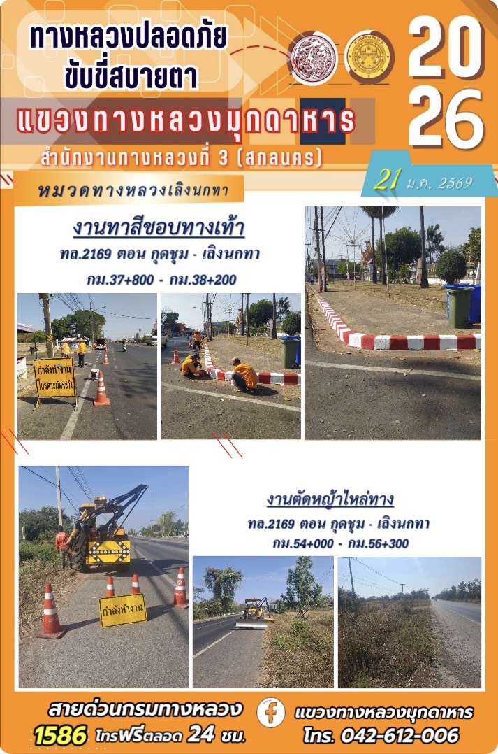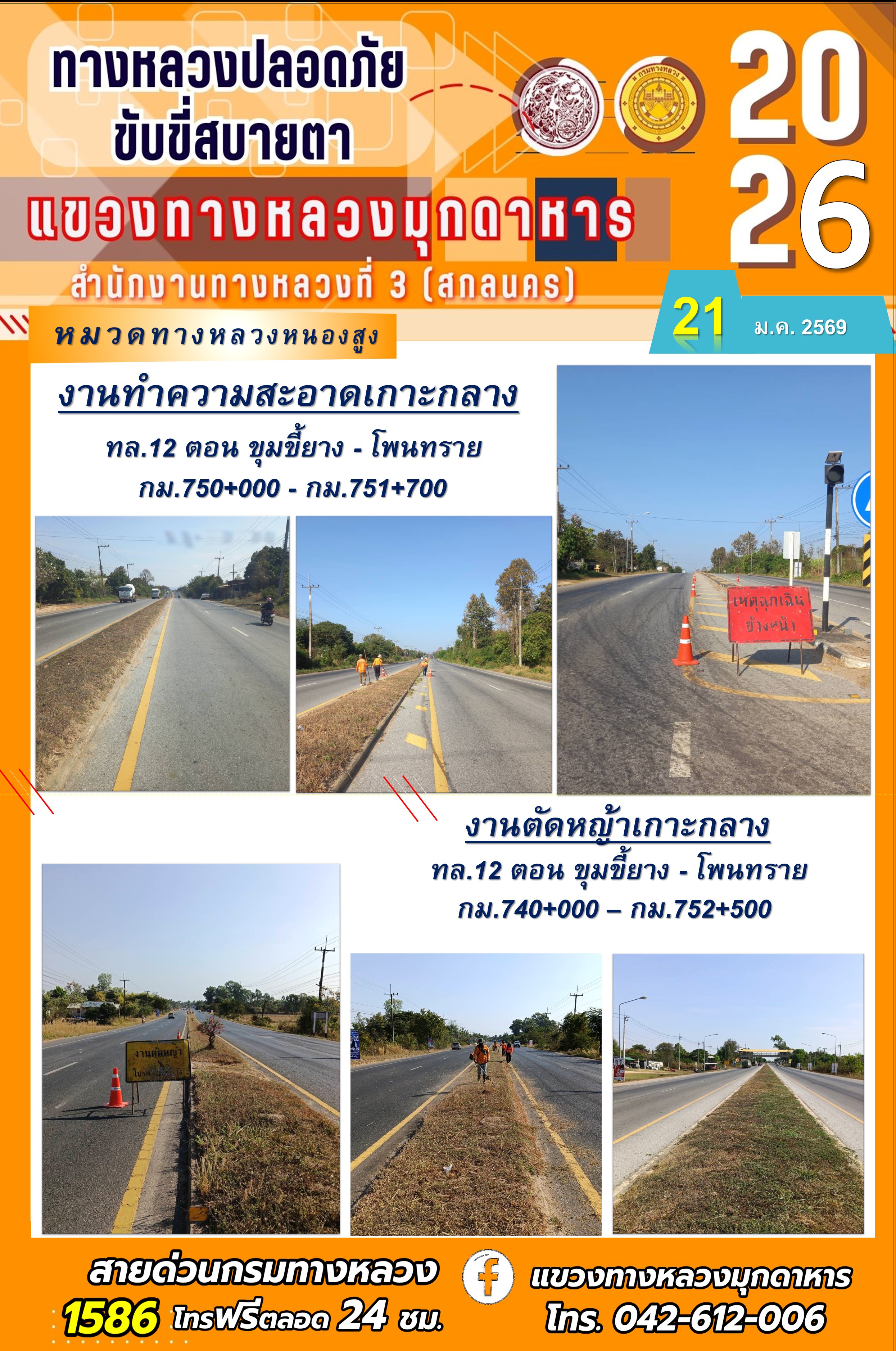ข้อมูลภาพกิจกรรม : ประจำวันที่ 21 มกราคม 2569 โครงการทางหลวงปลอดภัย ขับขี่สบายตา หน่วยงานในสังกัดแขวงทางหลวง