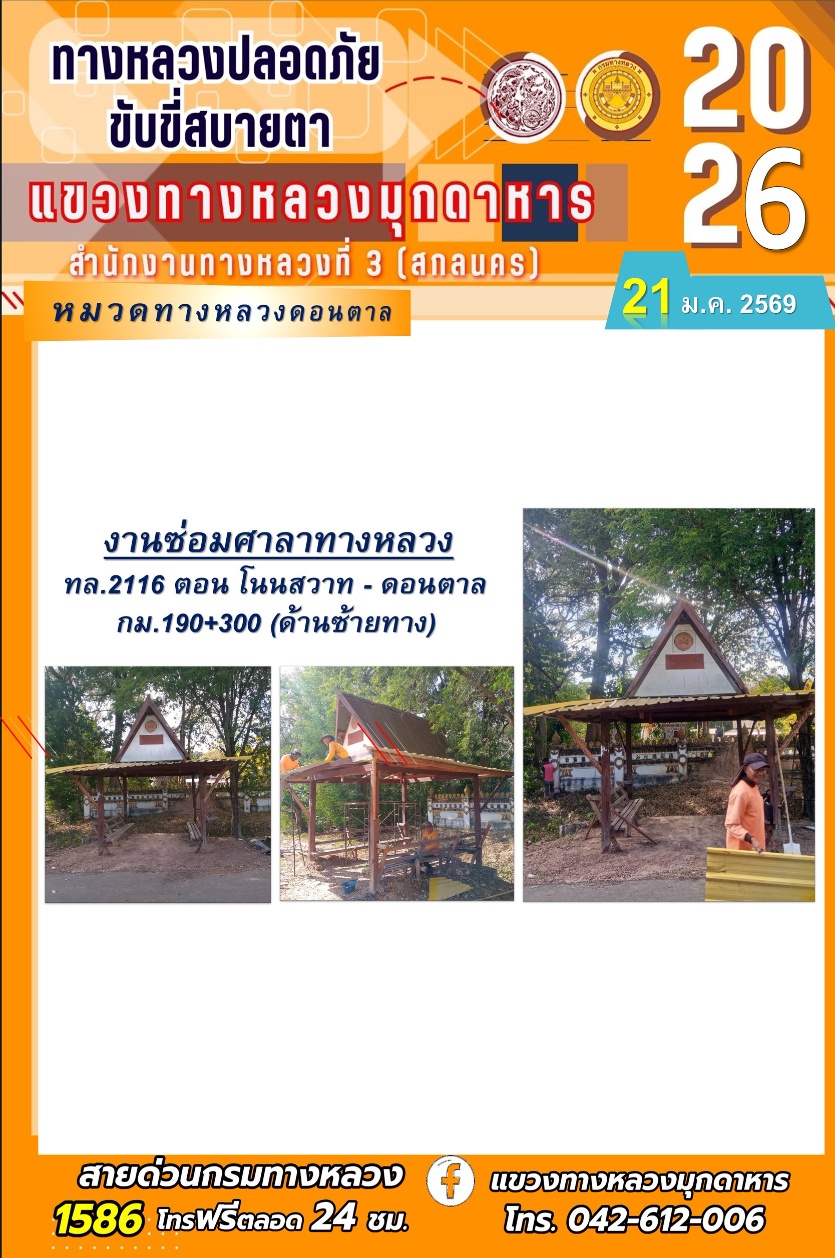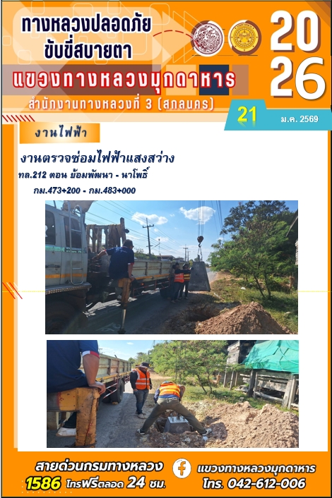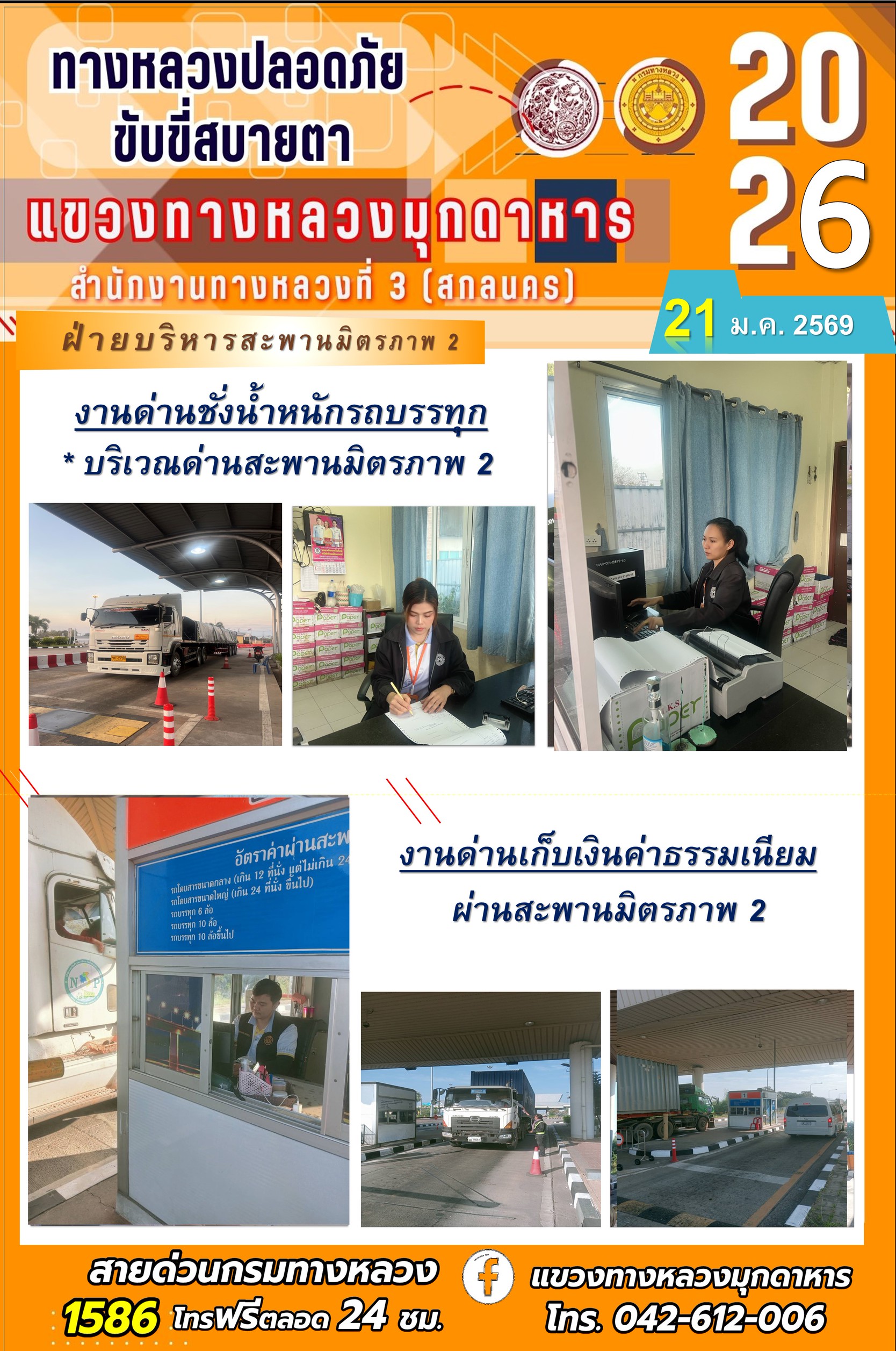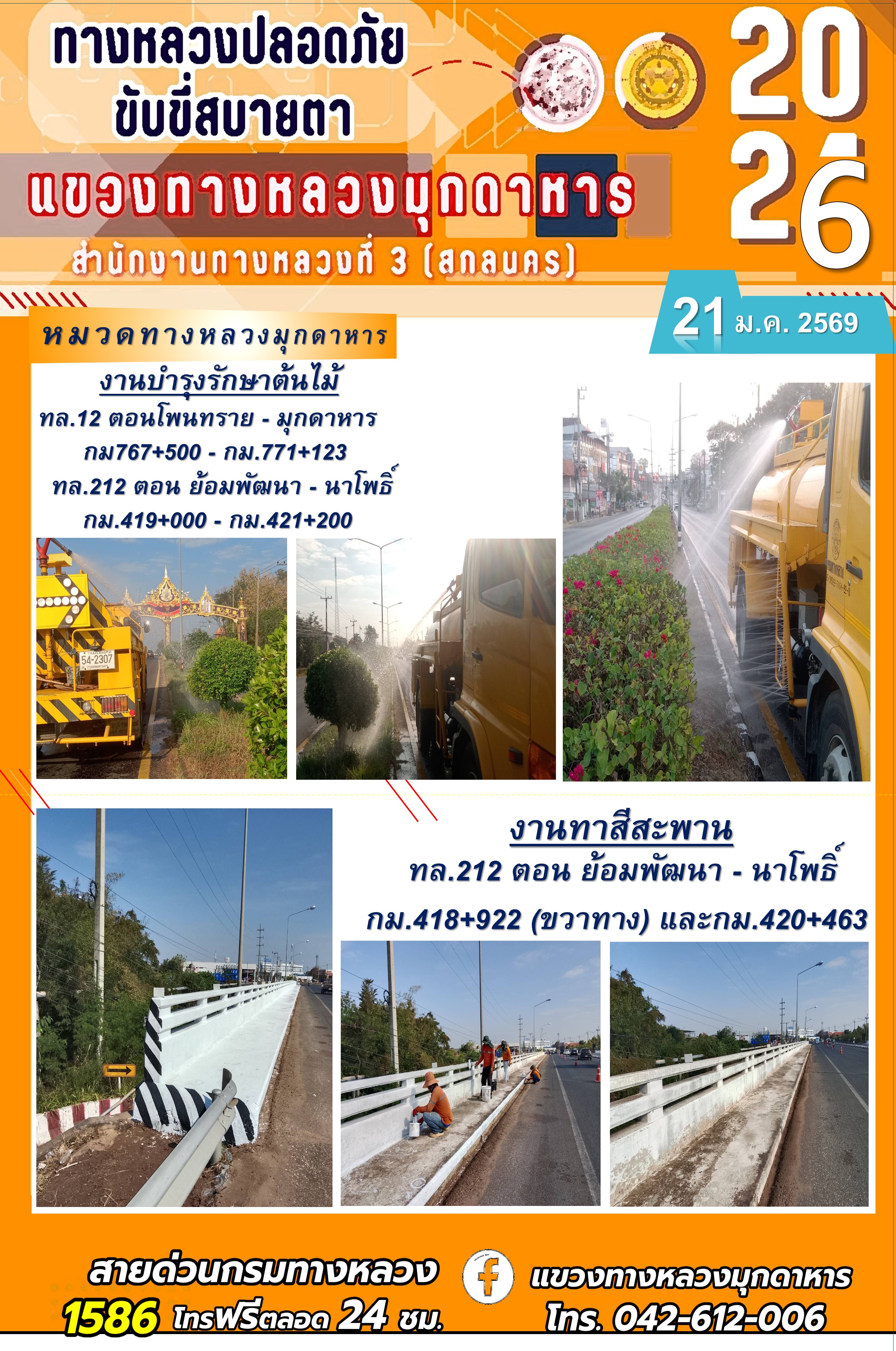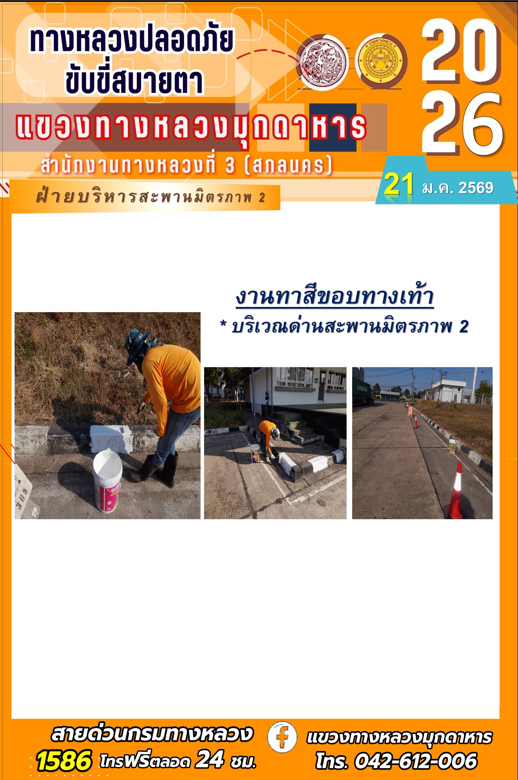 ข้อมูลภาพกิจกรรม : ประจำวันที่ 21 มกราคม 2569 โครงการทางหลวงปลอดภัย ขับขี่สบายตา หน่วยงานในสังกัดแขวงทางหลวง