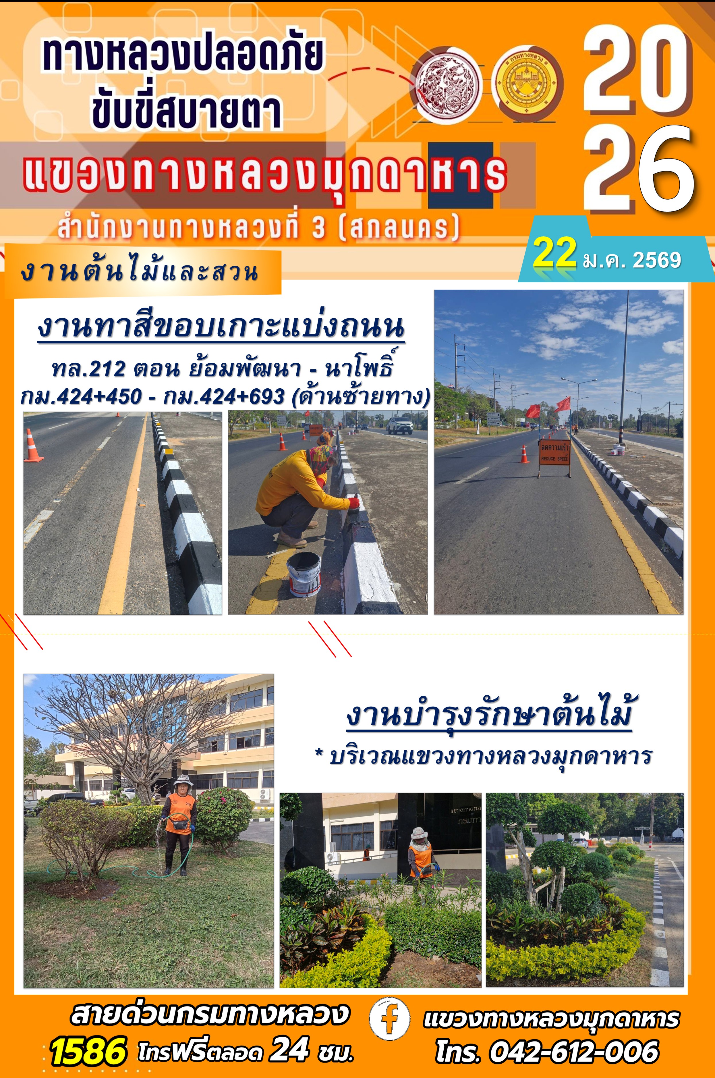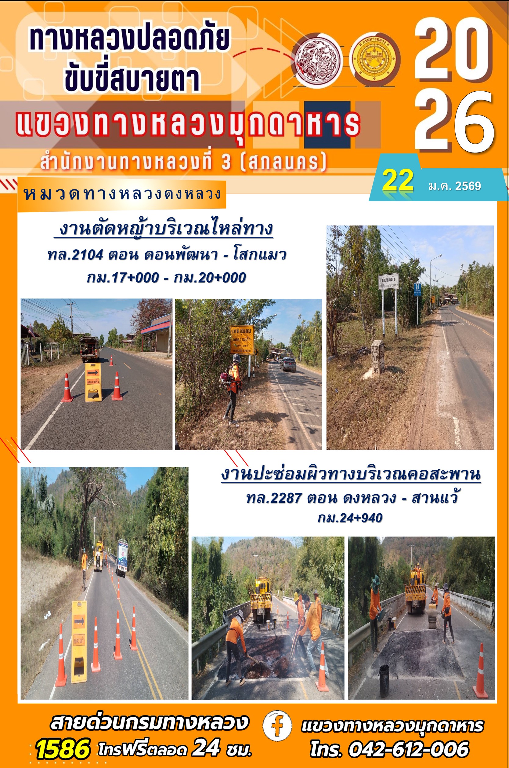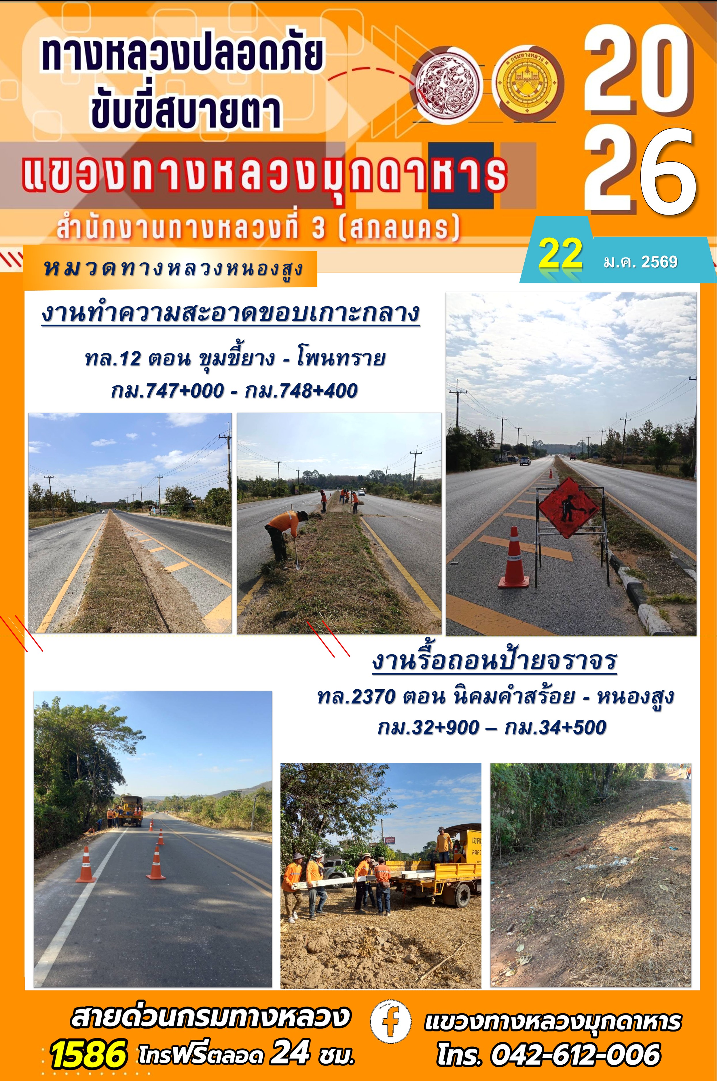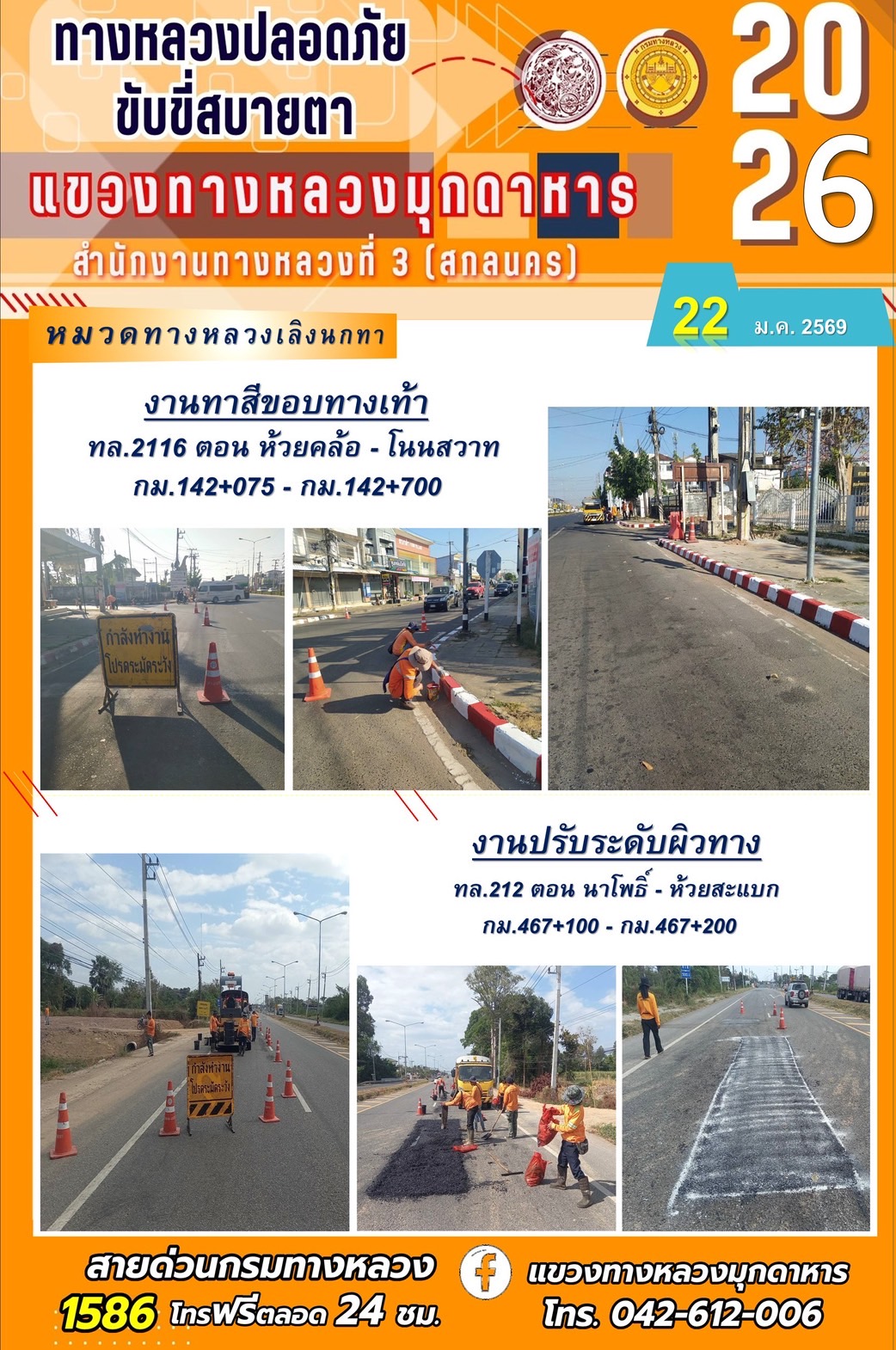 ประจำวันที่ 22 มกราคม 2569 โครงการทางหลวงปลอดภัย ขับขี่สบายตา หน่วยงานในสังกัดแขวงทางหลวง