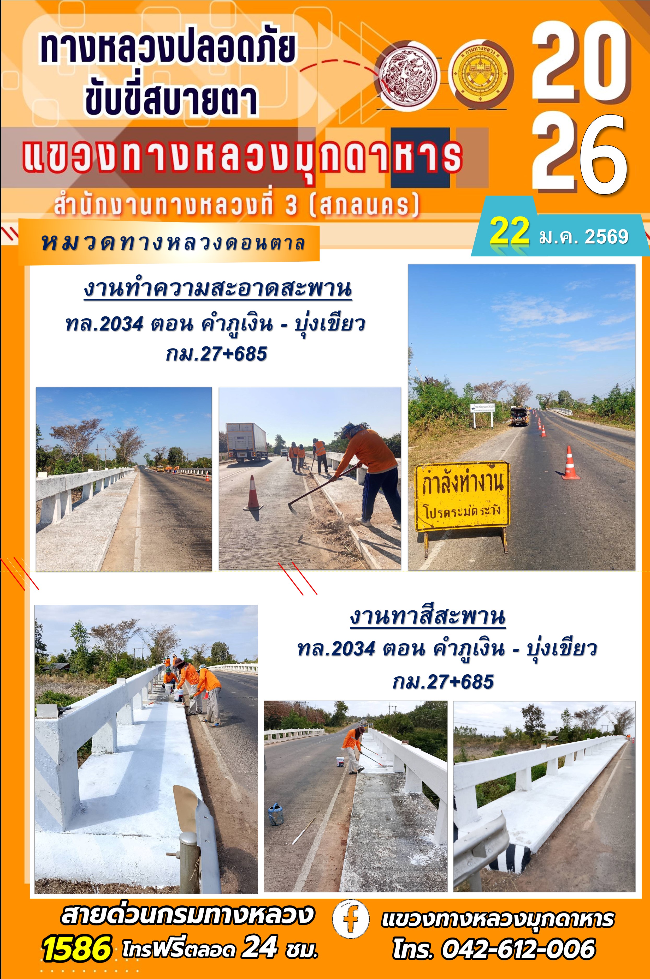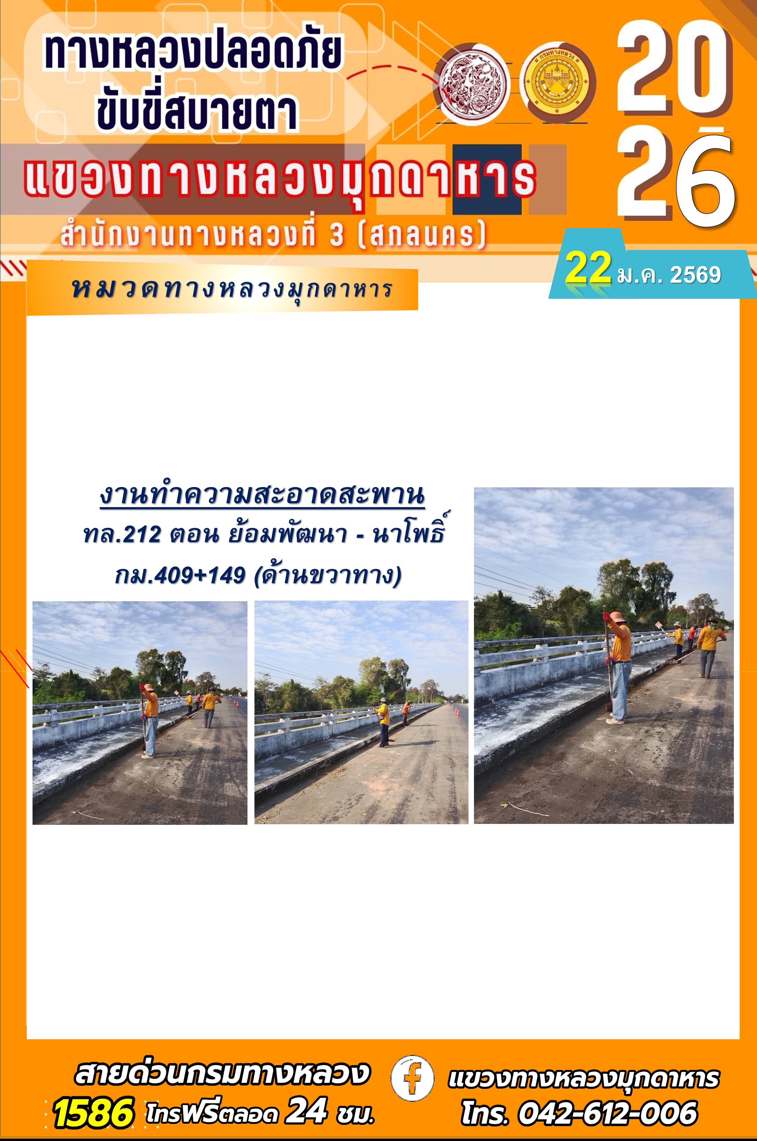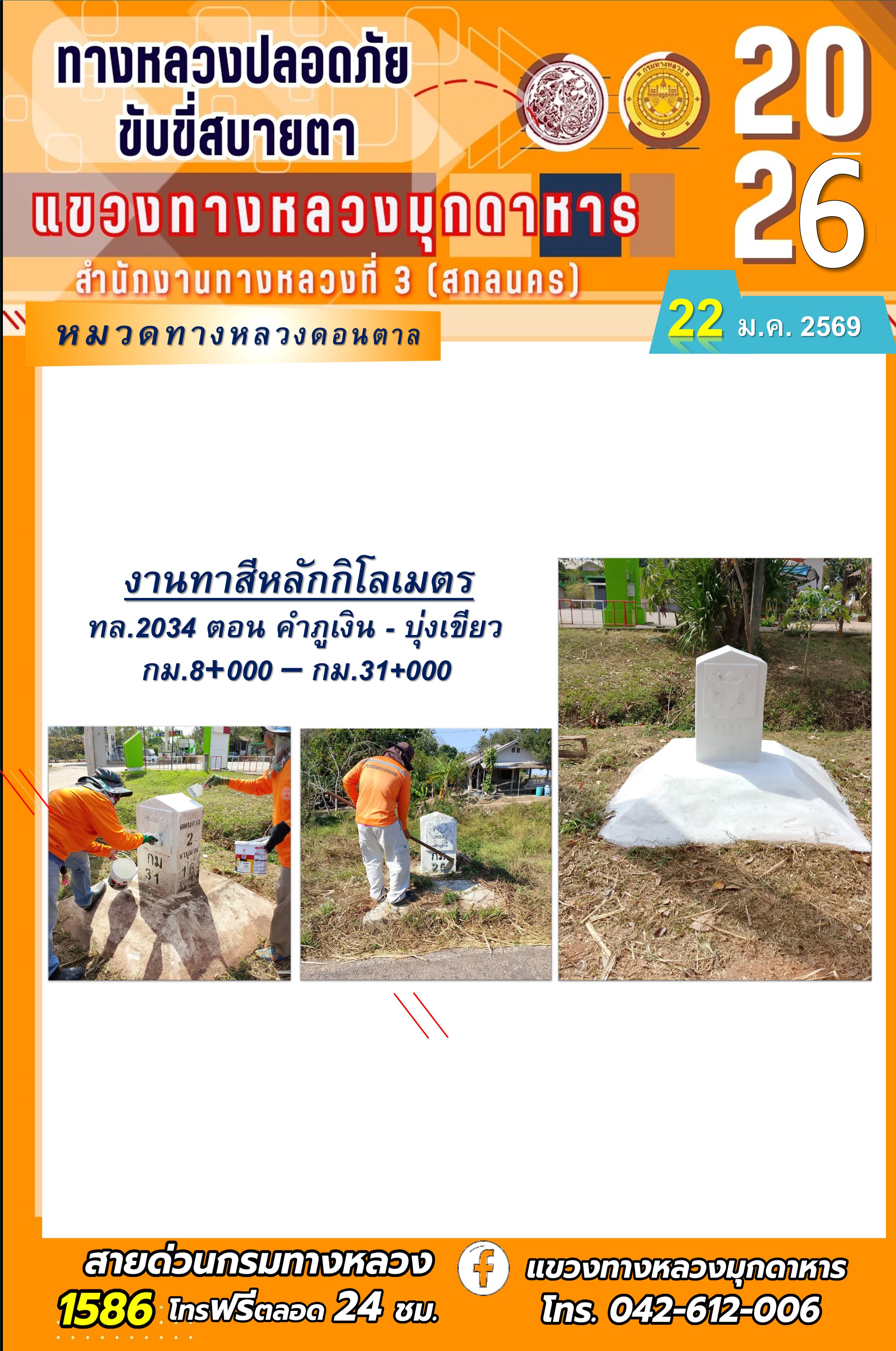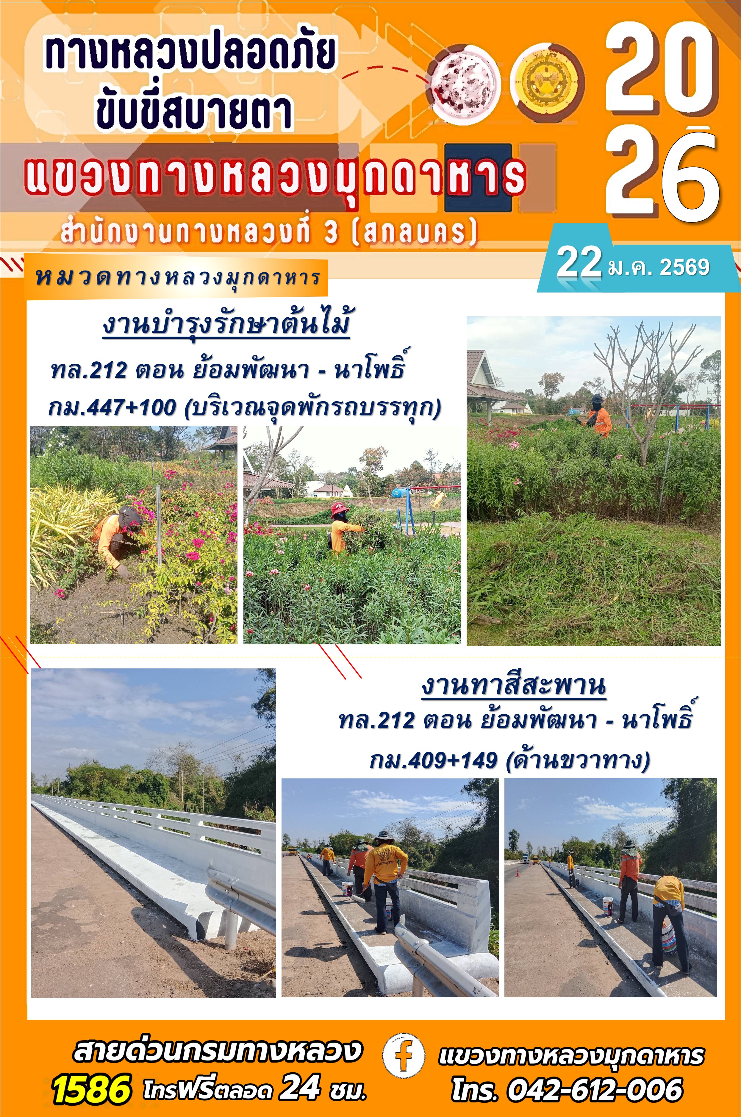 ประจำวันที่ 22 มกราคม 2569 โครงการทางหลวงปลอดภัย ขับขี่สบายตา หน่วยงานในสังกัดแขวงทางหลวง