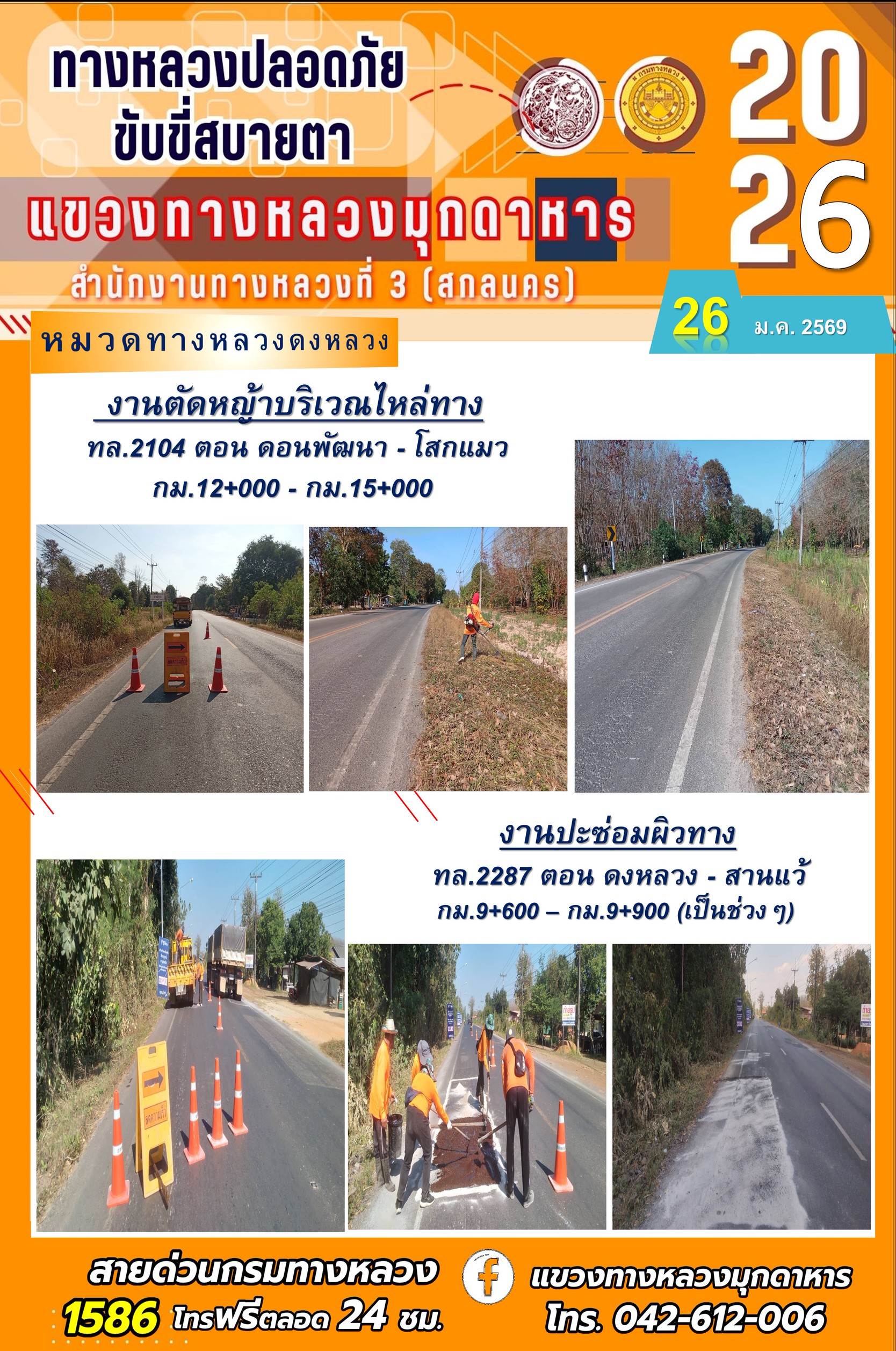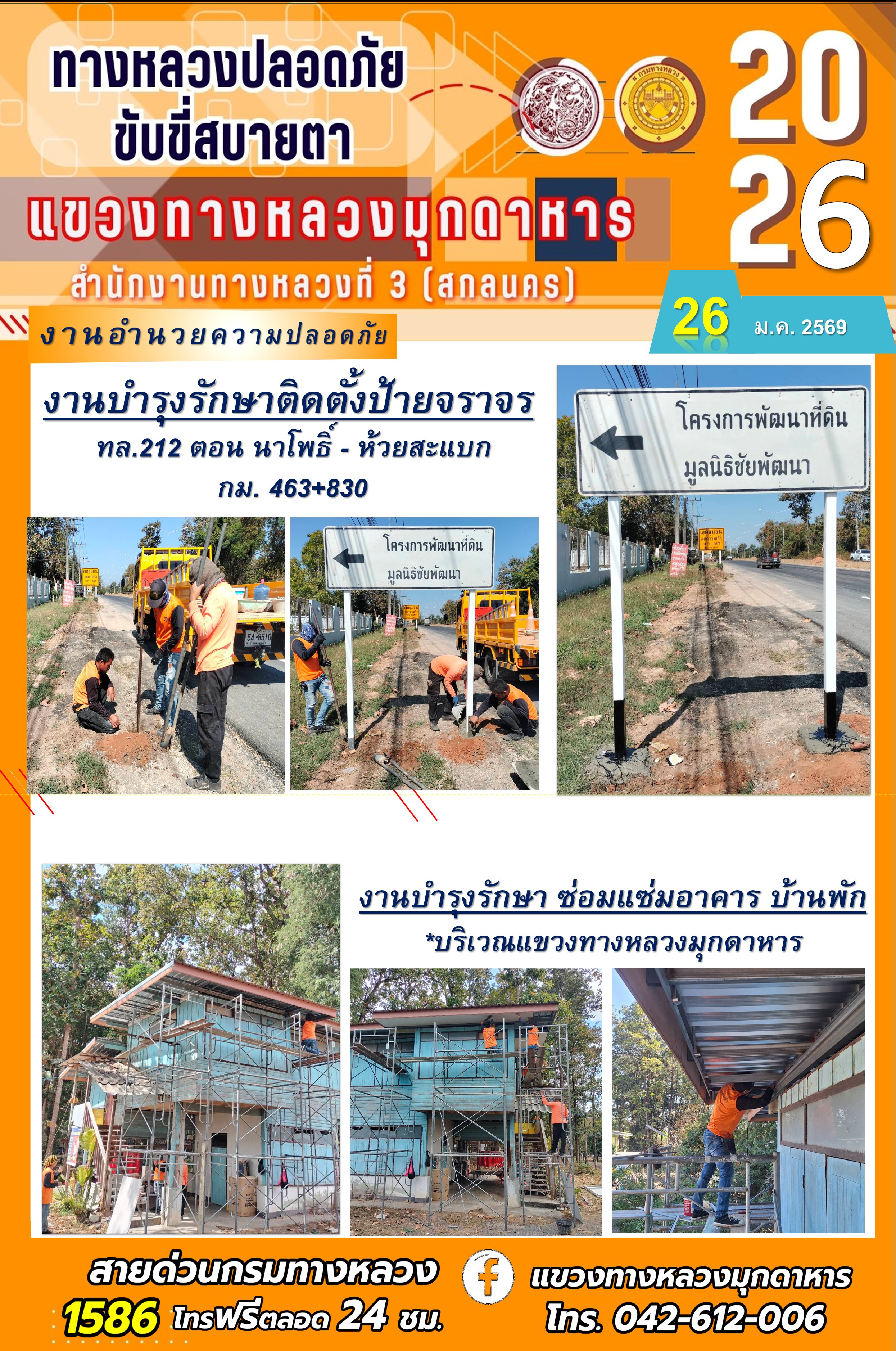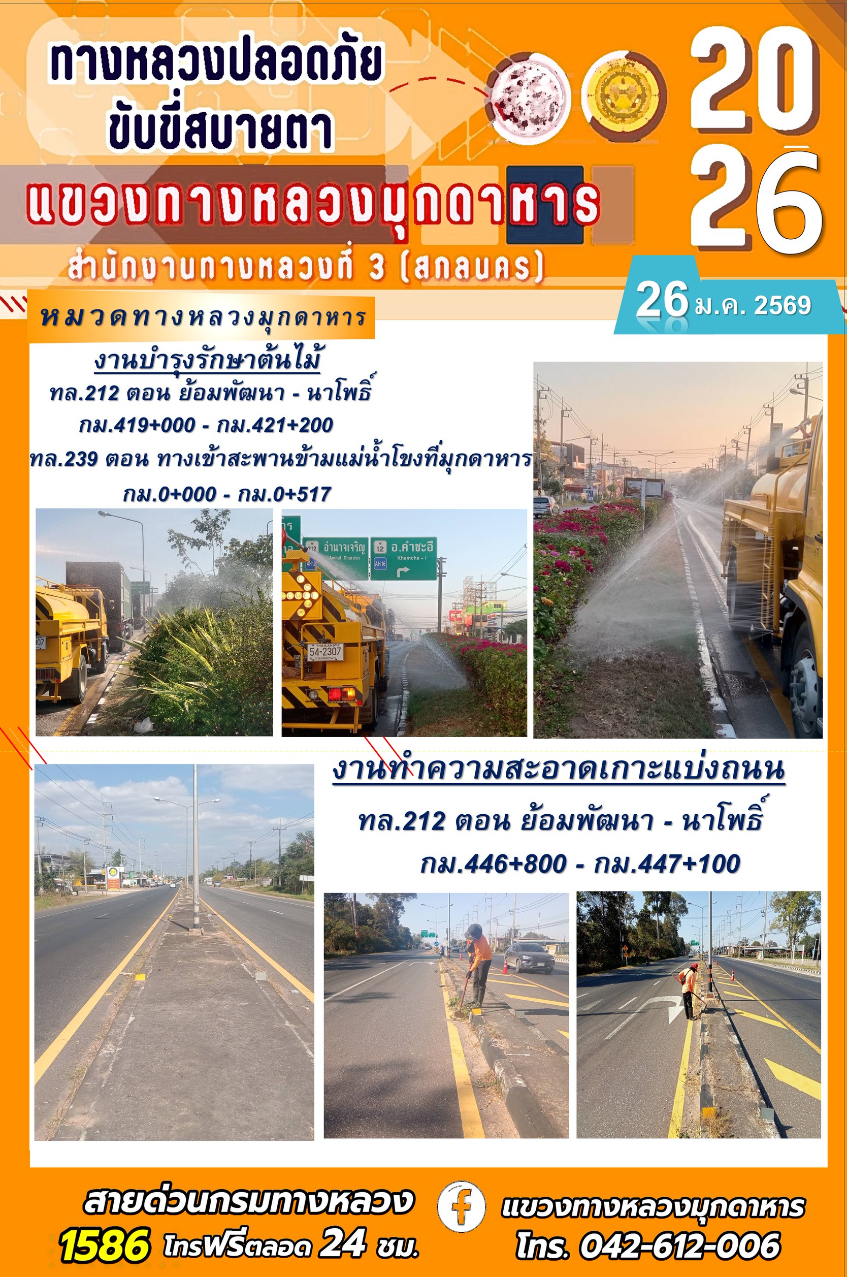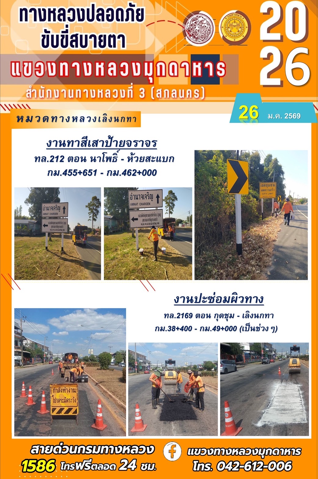 ประจำวันที่ 26 มกราคม 2569 โครงการทางหลวงปลอดภัย ขับขี่สบายตา หน่วยงานในสังกัดแขวงทางหลวง