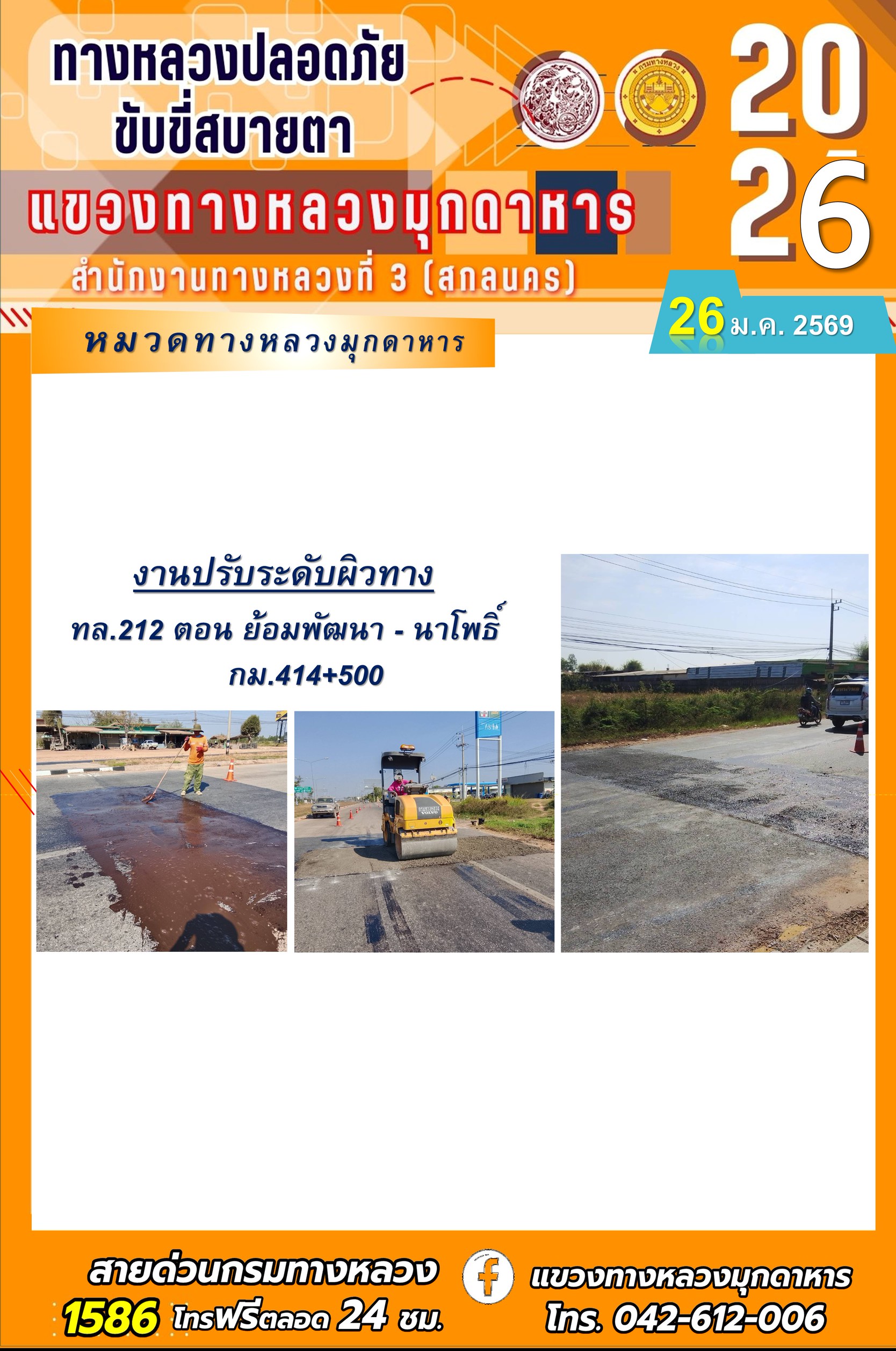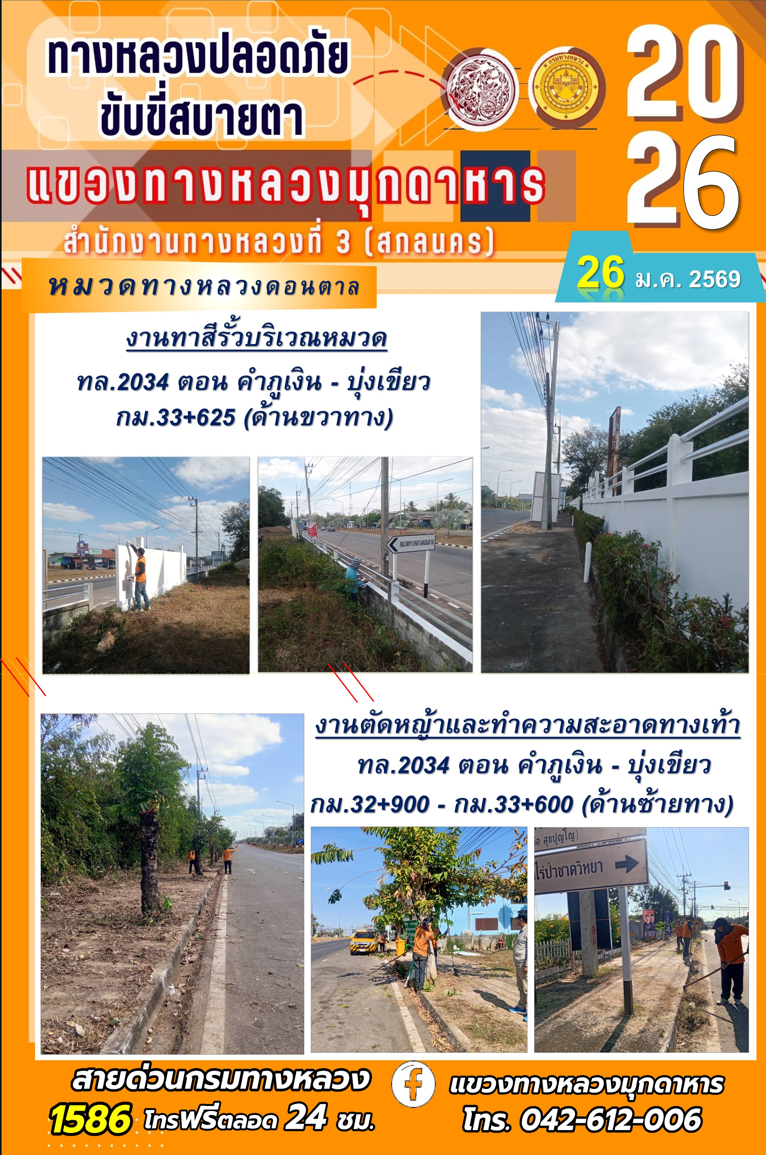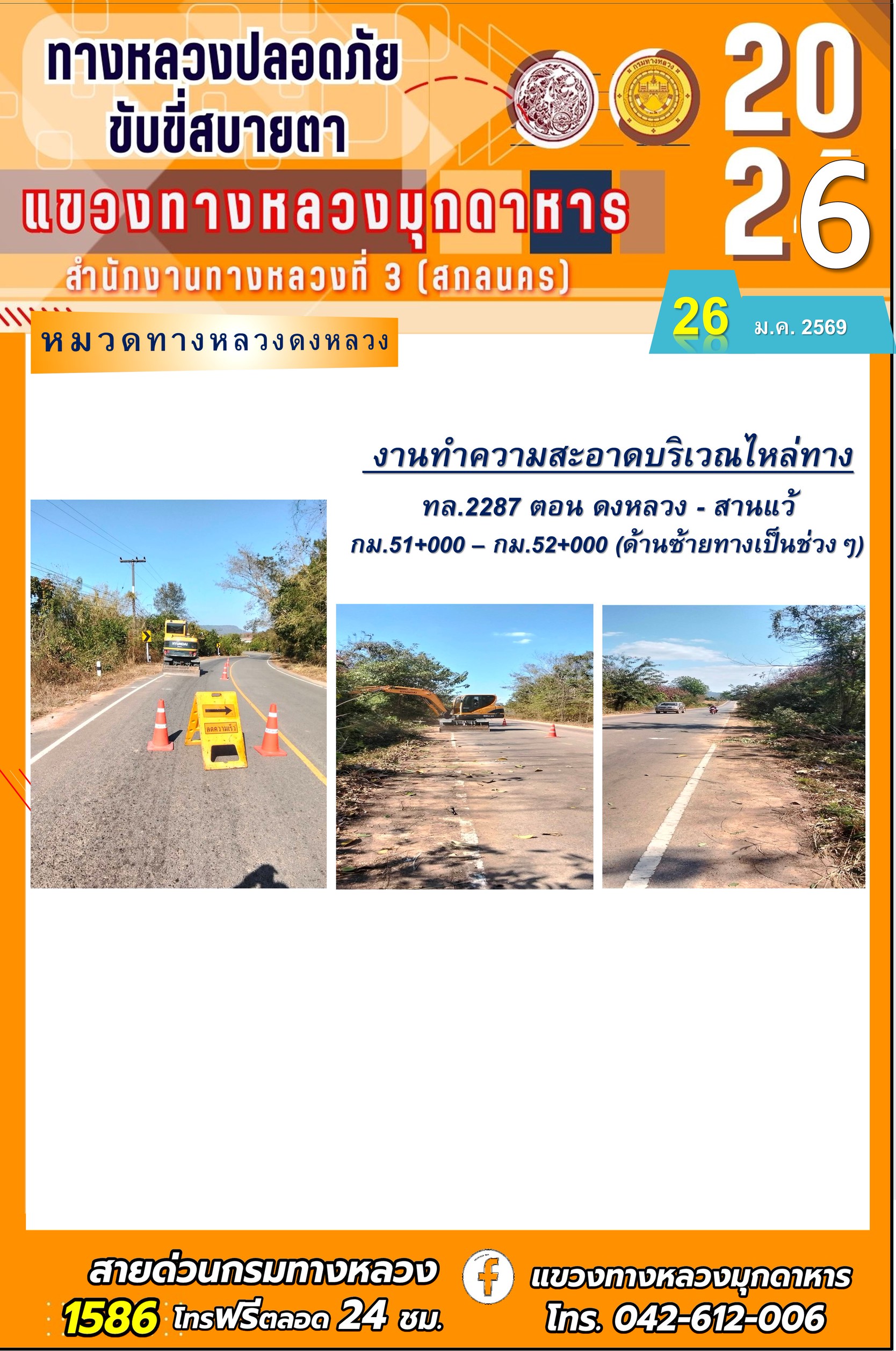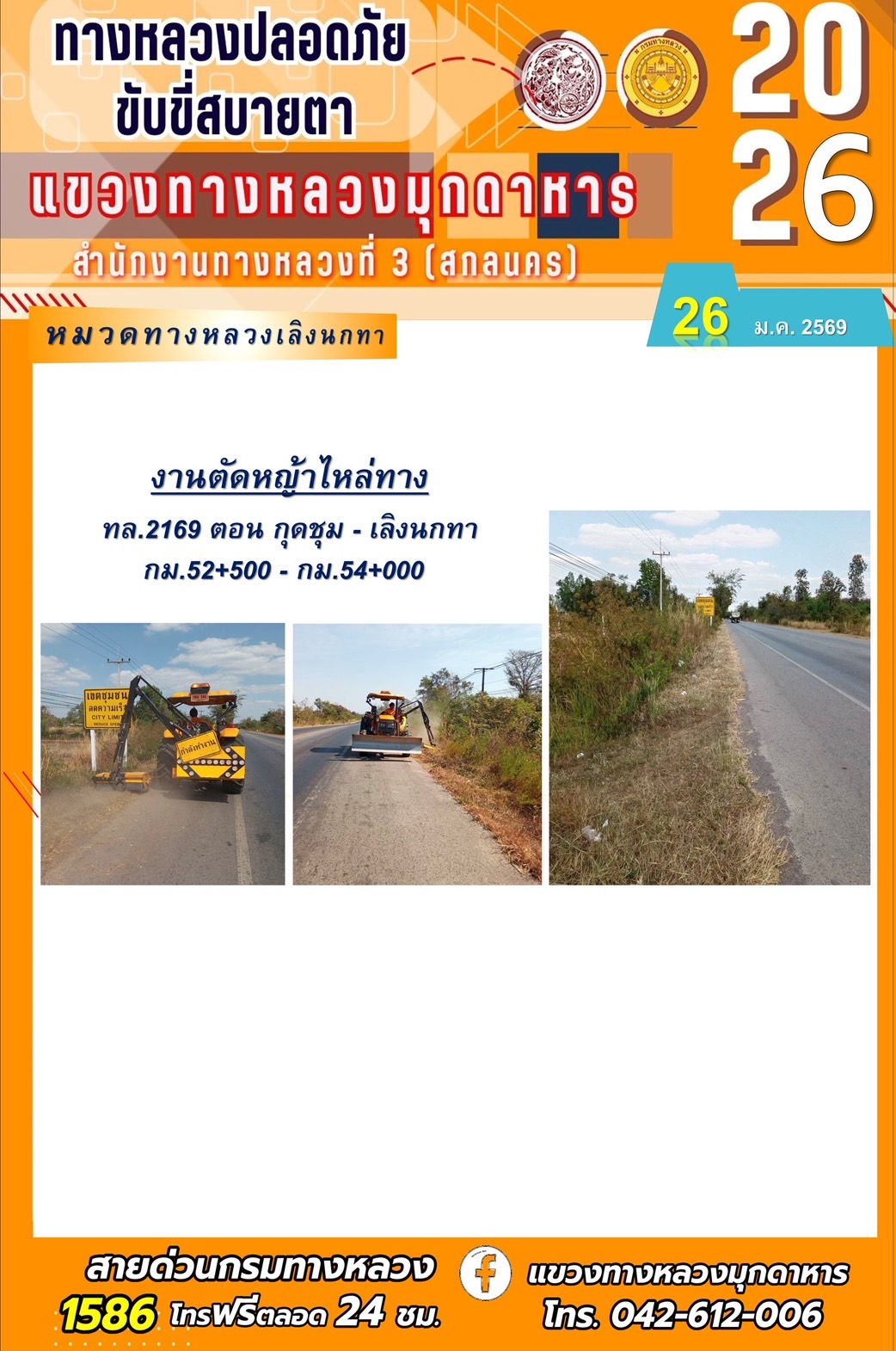 ประจำวันที่ 26 มกราคม 2569 โครงการทางหลวงปลอดภัย ขับขี่สบายตา หน่วยงานในสังกัดแขวงทางหลวง