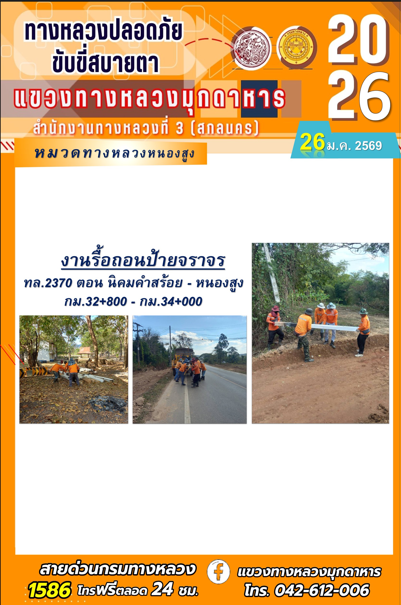 ข้อมูลภาพกิจกรรม : ประจำวันที่ 26 มกราคม 2569 โครงการทางหลวงปลอดภัย ขับขี่สบายตา หน่วยงานในสังกัดแขวงทางหลวง