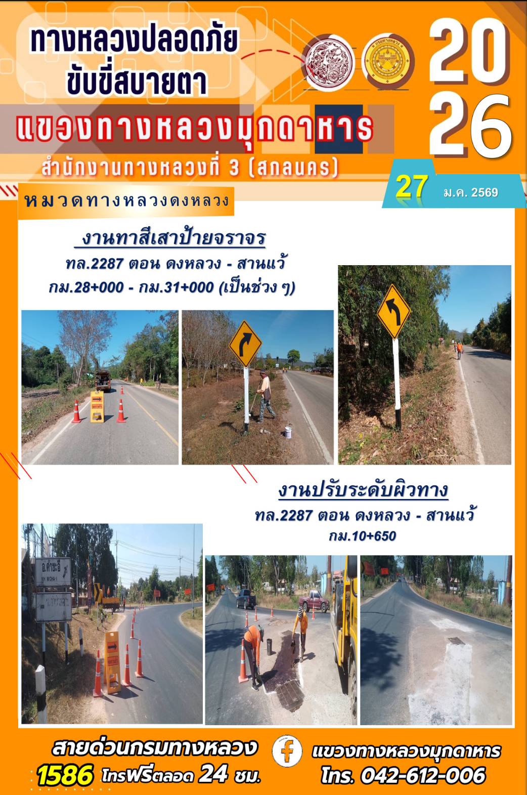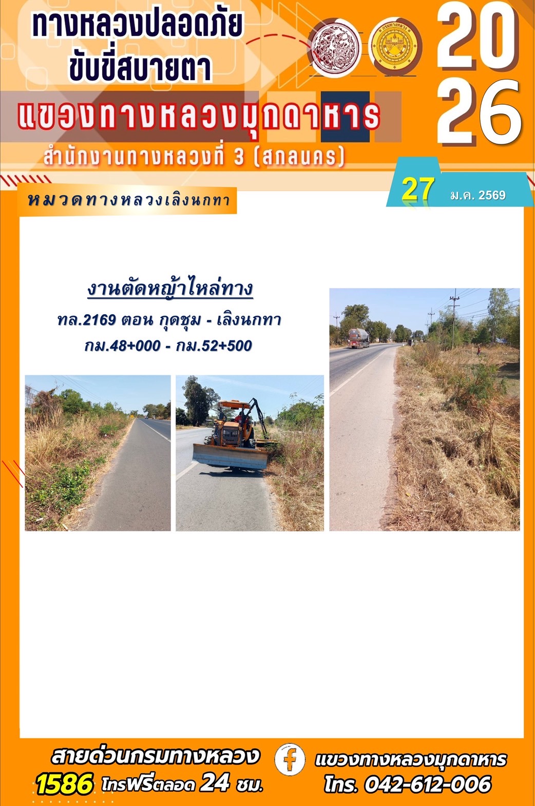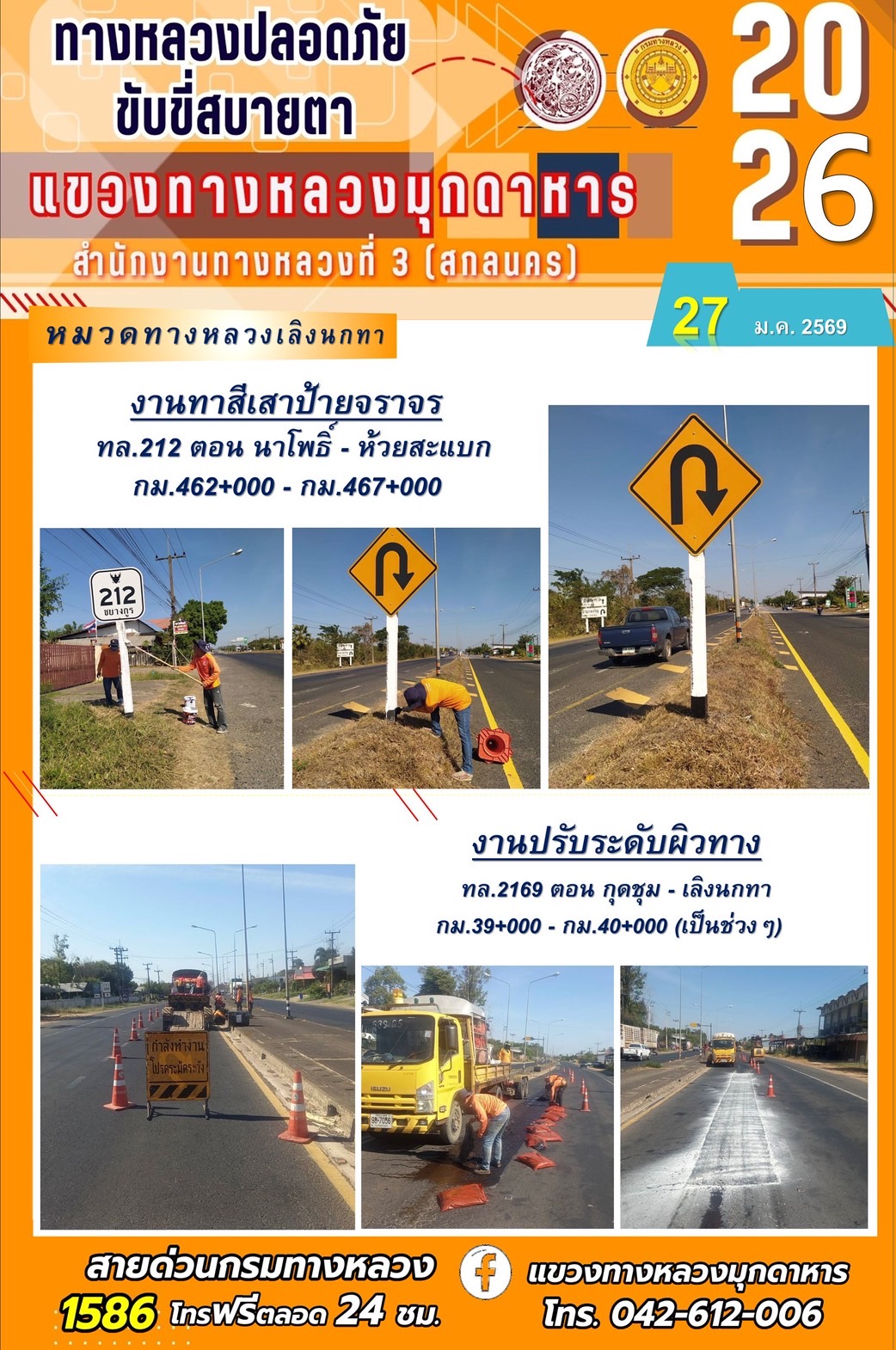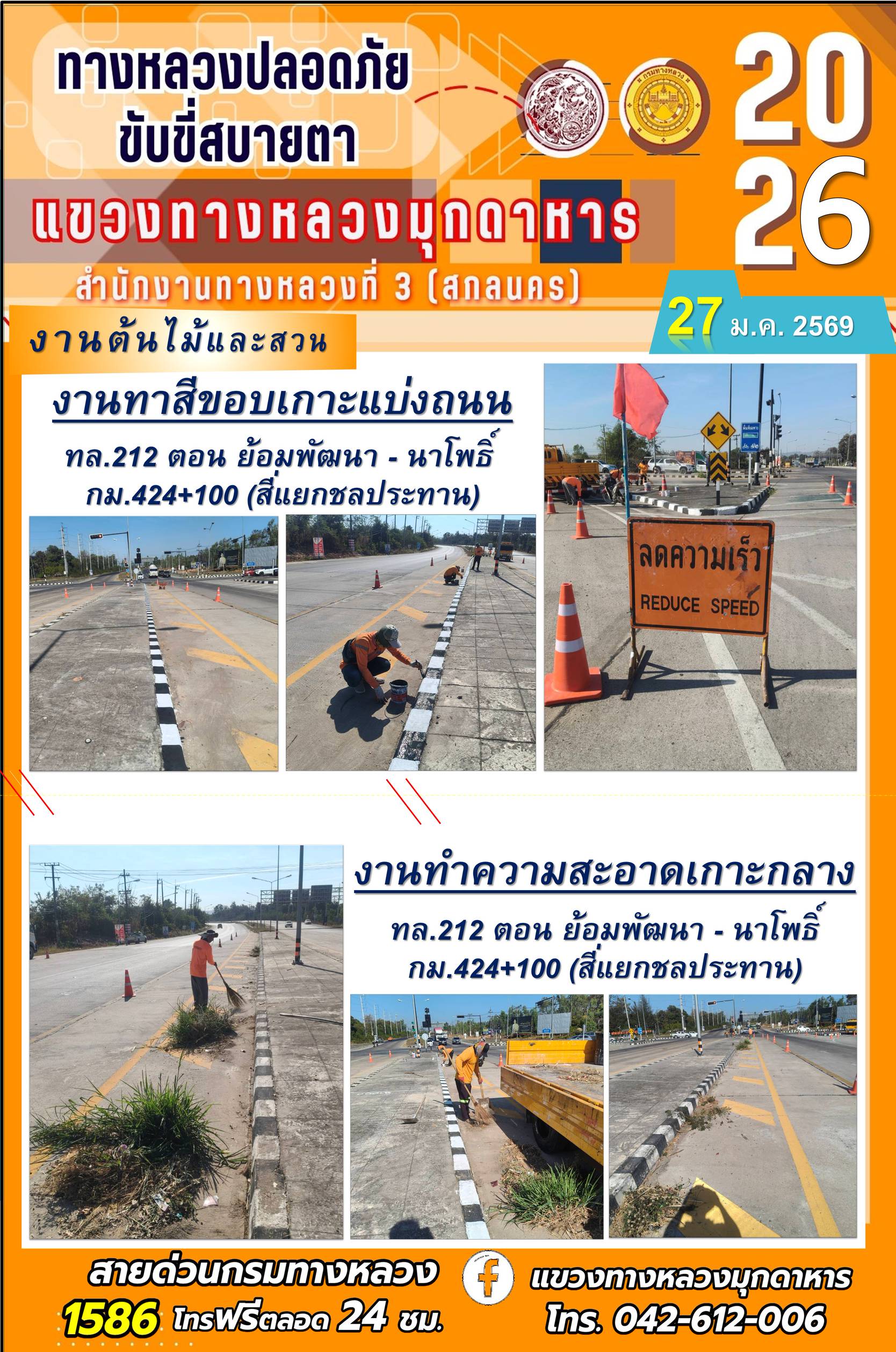 ประจำวันที่ 27 มกราคม 2569 โครงการทางหลวงปลอดภัย ขับขี่สบายตา หน่วยงานในสังกัดแขวงทางหลวง