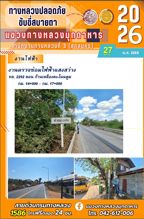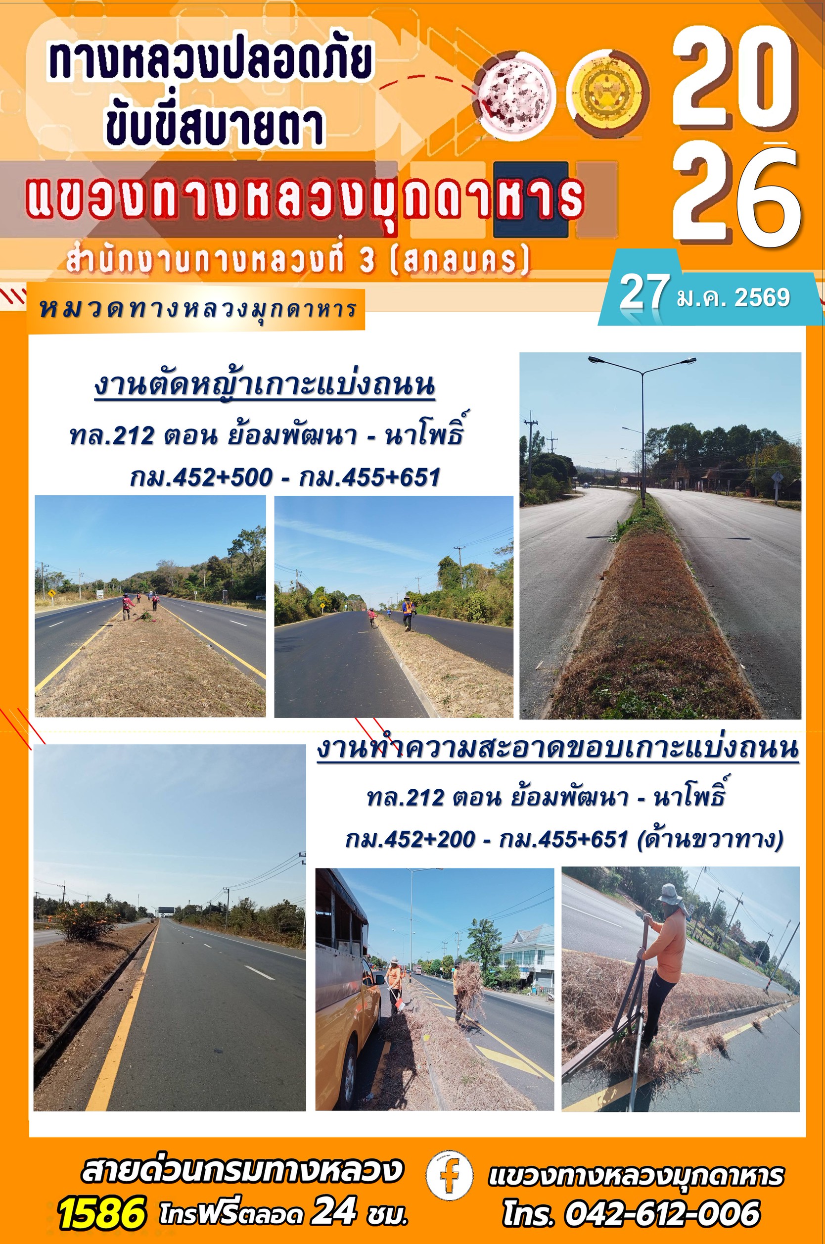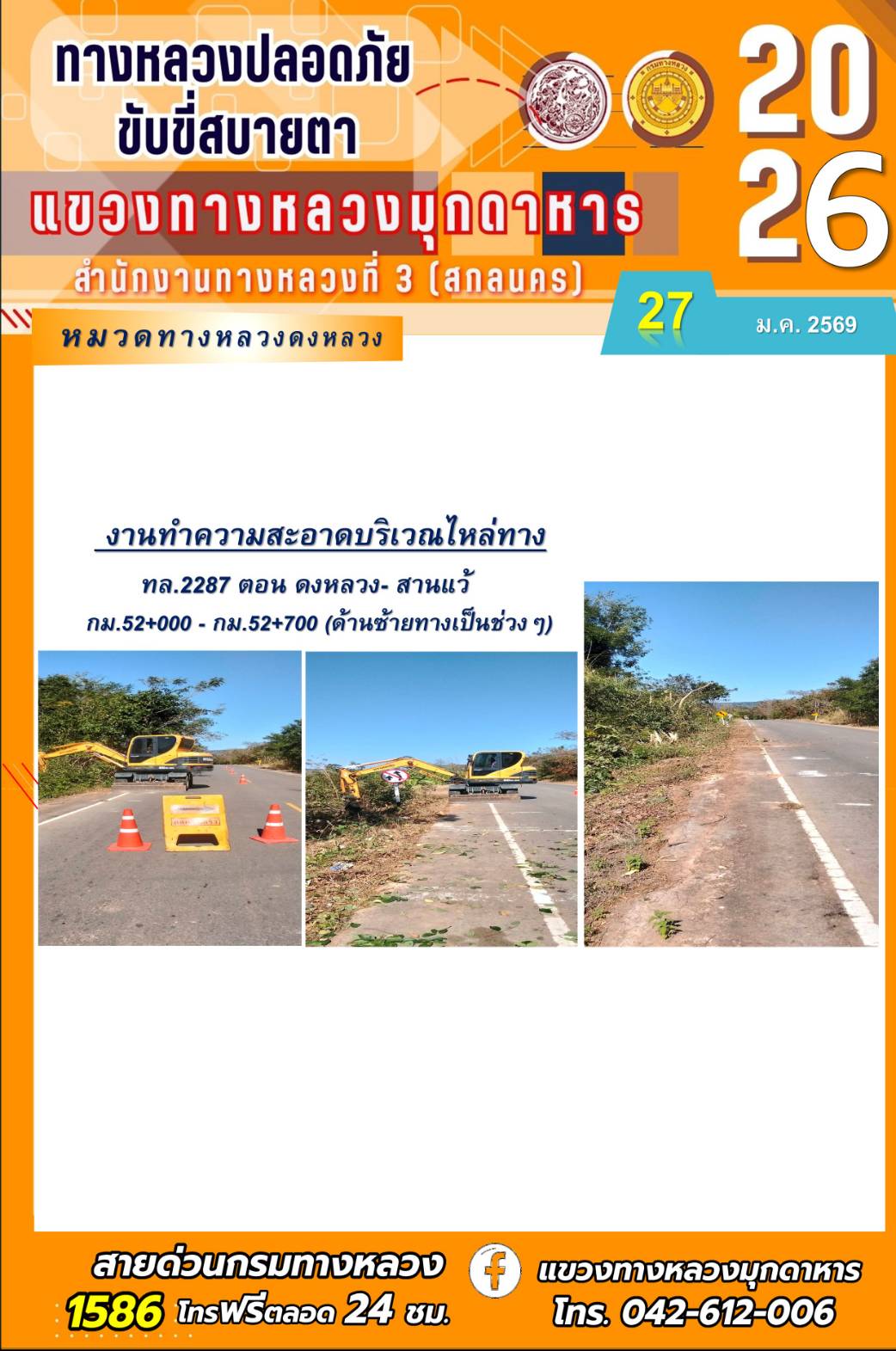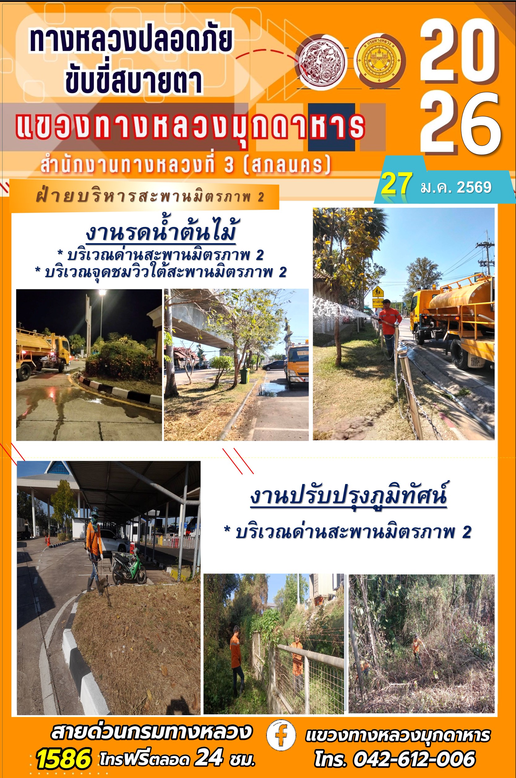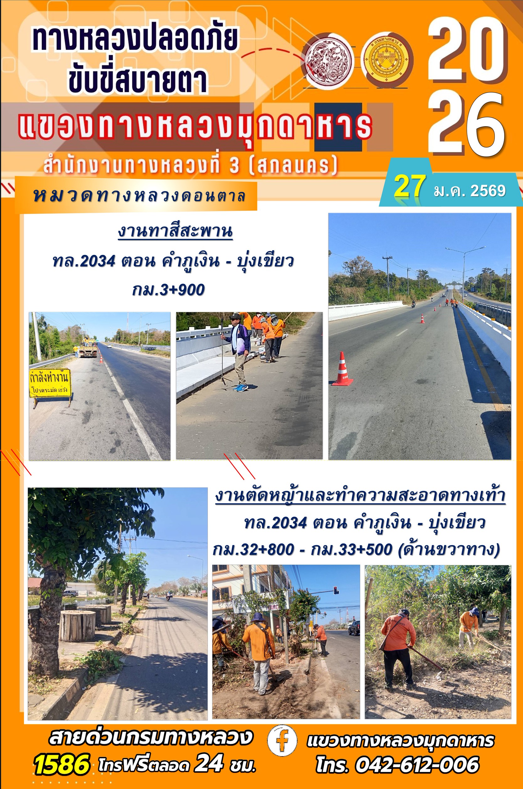 ประจำวันที่ 27 มกราคม 2569 โครงการทางหลวงปลอดภัย ขับขี่สบายตา หน่วยงานในสังกัดแขวงทางหลวง