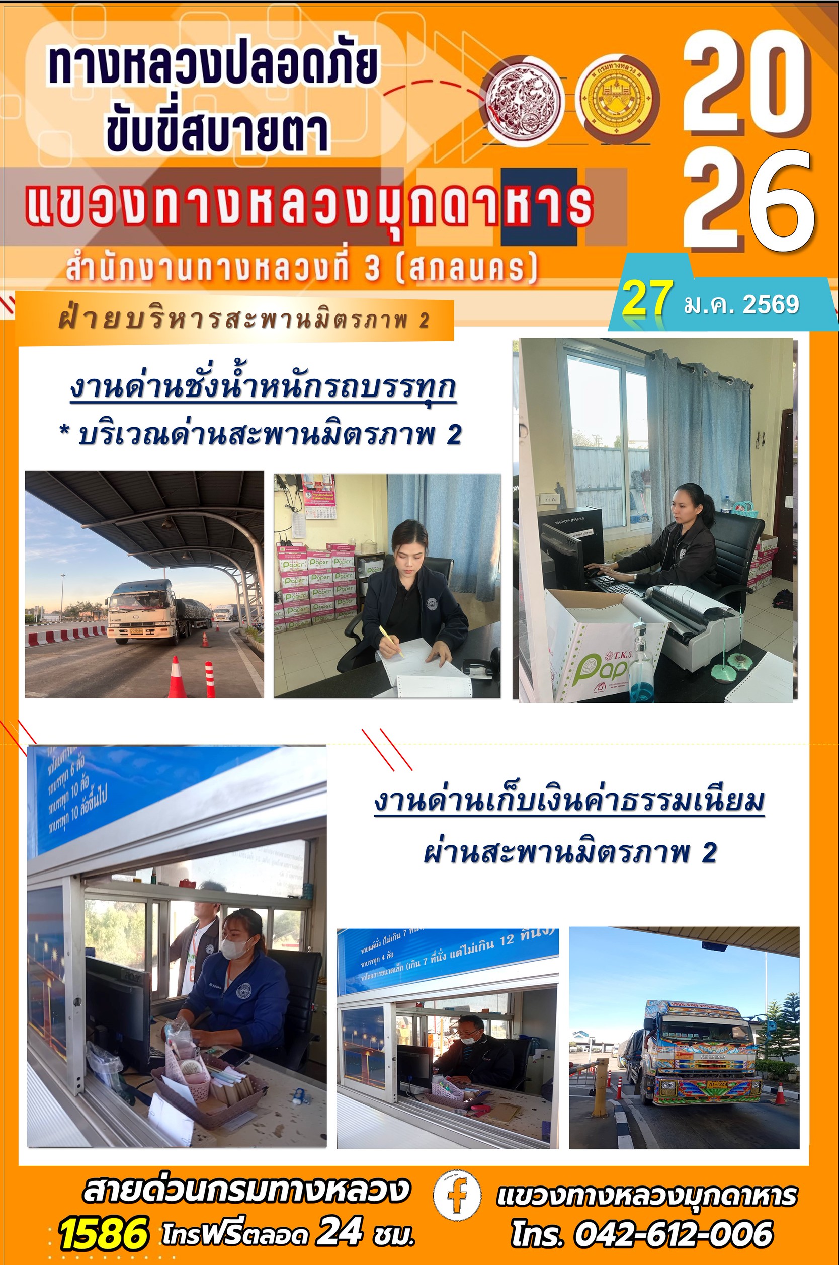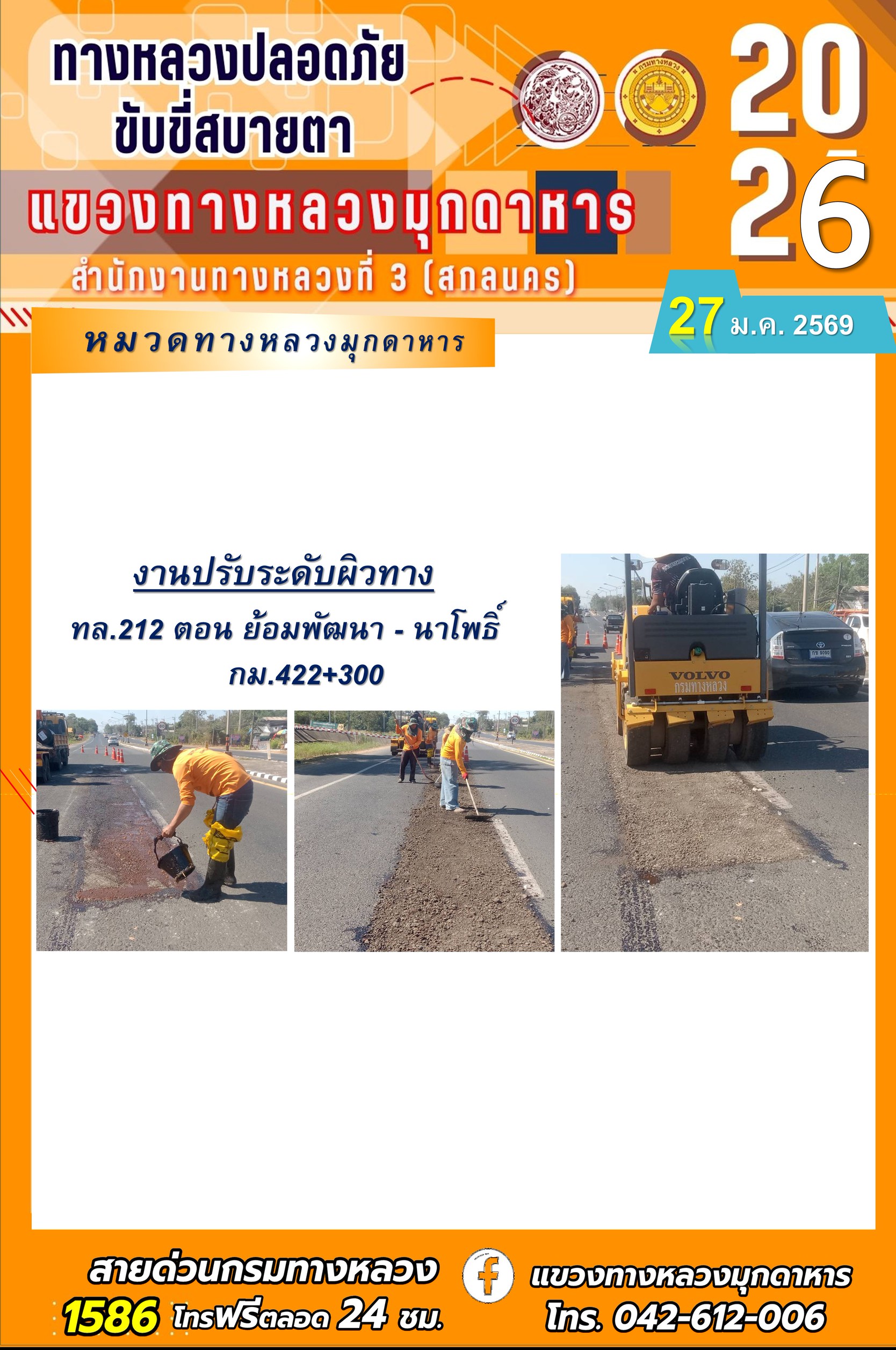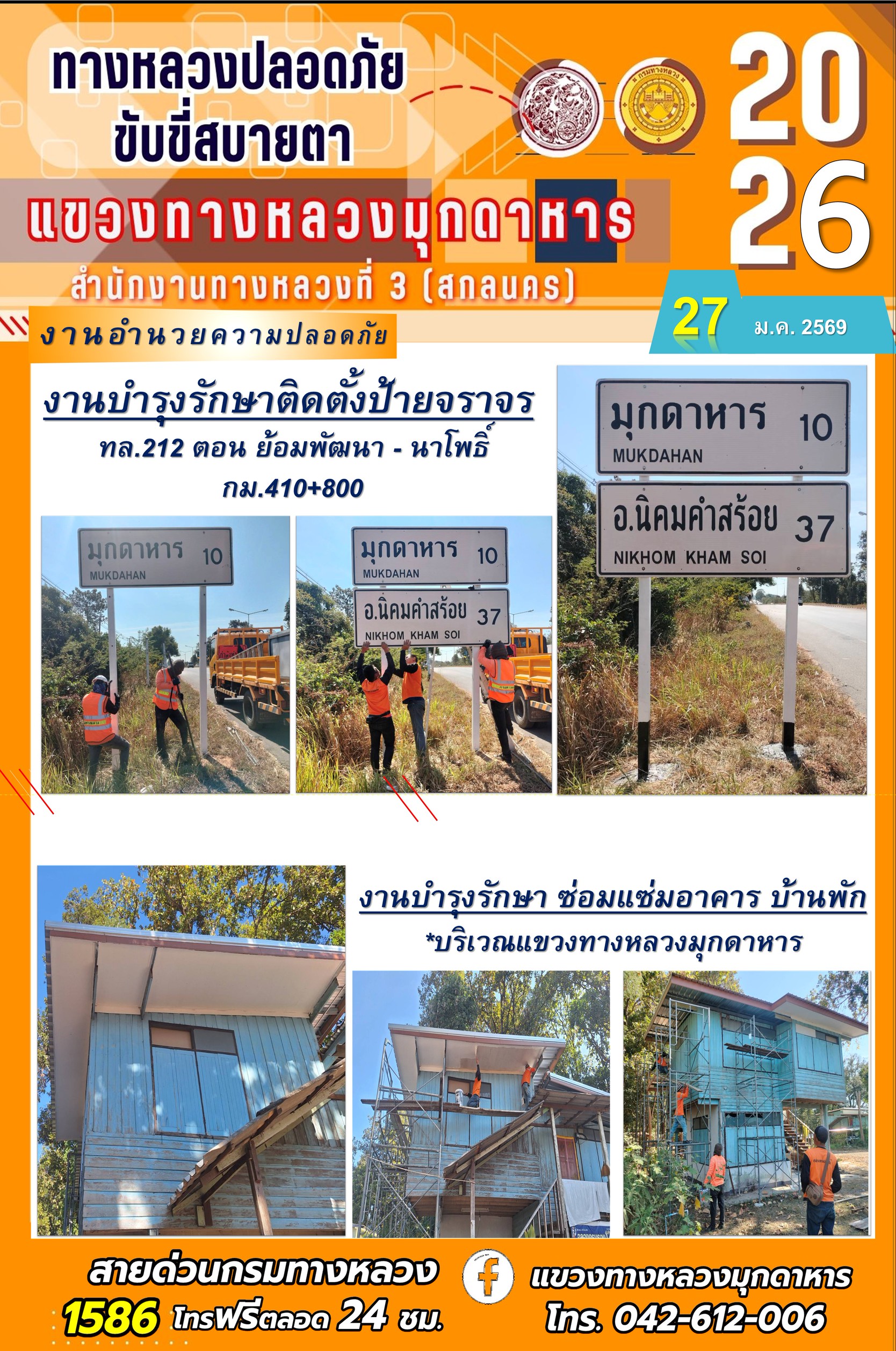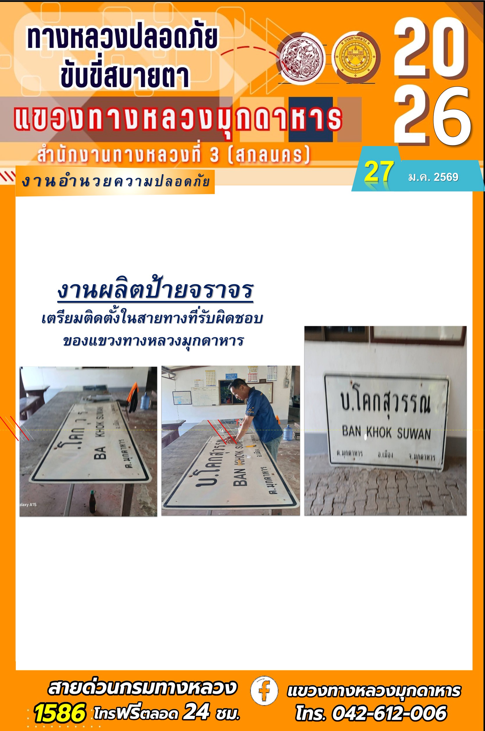 ประจำวันที่ 27 มกราคม 2569 โครงการทางหลวงปลอดภัย ขับขี่สบายตา หน่วยงานในสังกัดแขวงทางหลวง