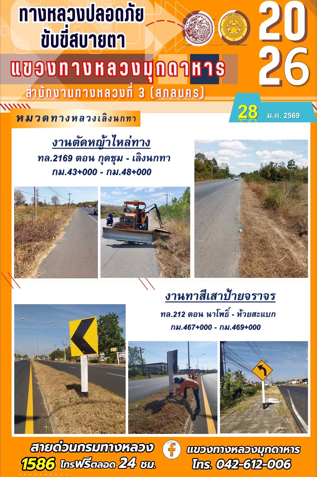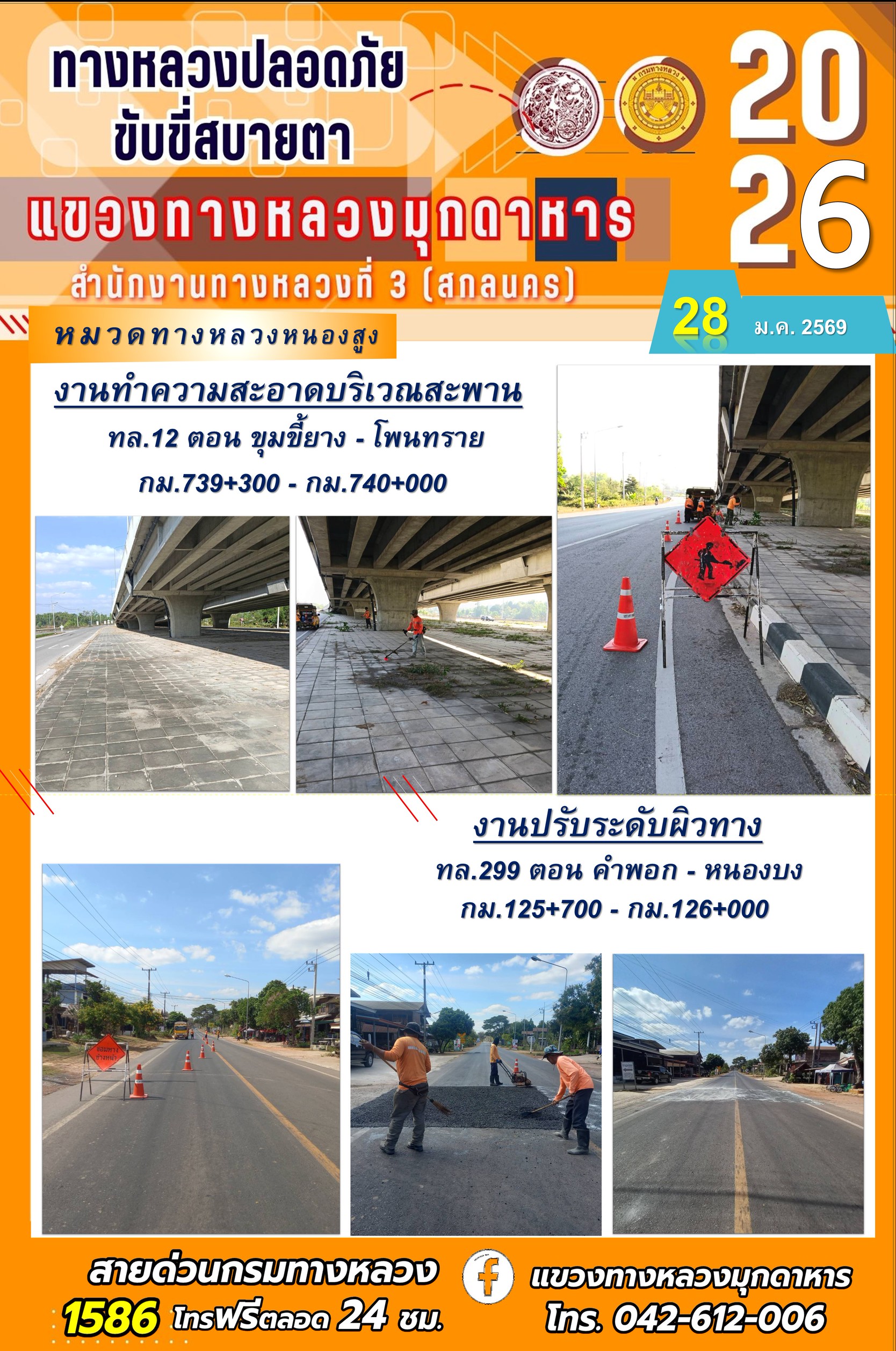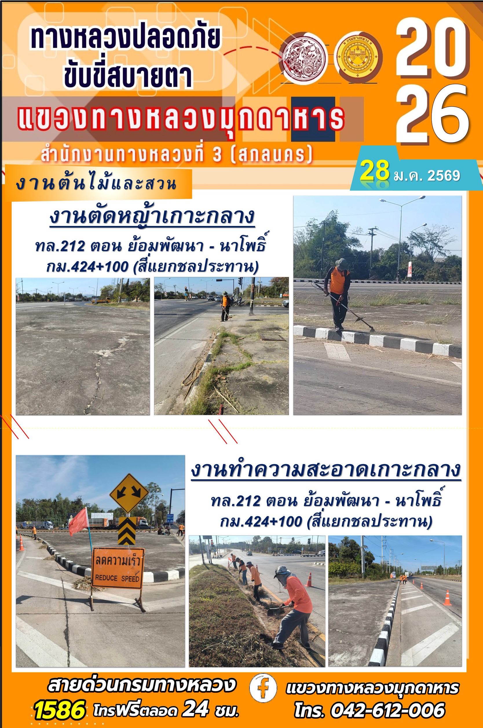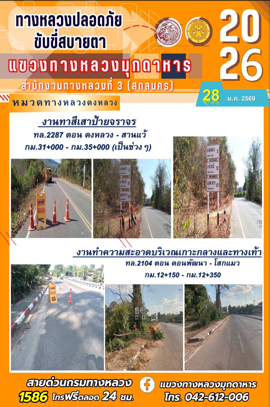 ประจำวันที่ 28 มกราคม 2569 โครงการทางหลวงปลอดภัย ขับขี่สบายตา หน่วยงานในสังกัดแขวงทางหลวง