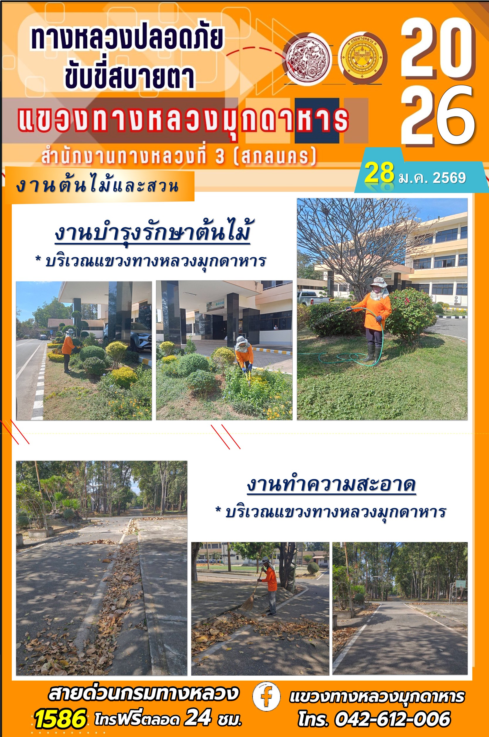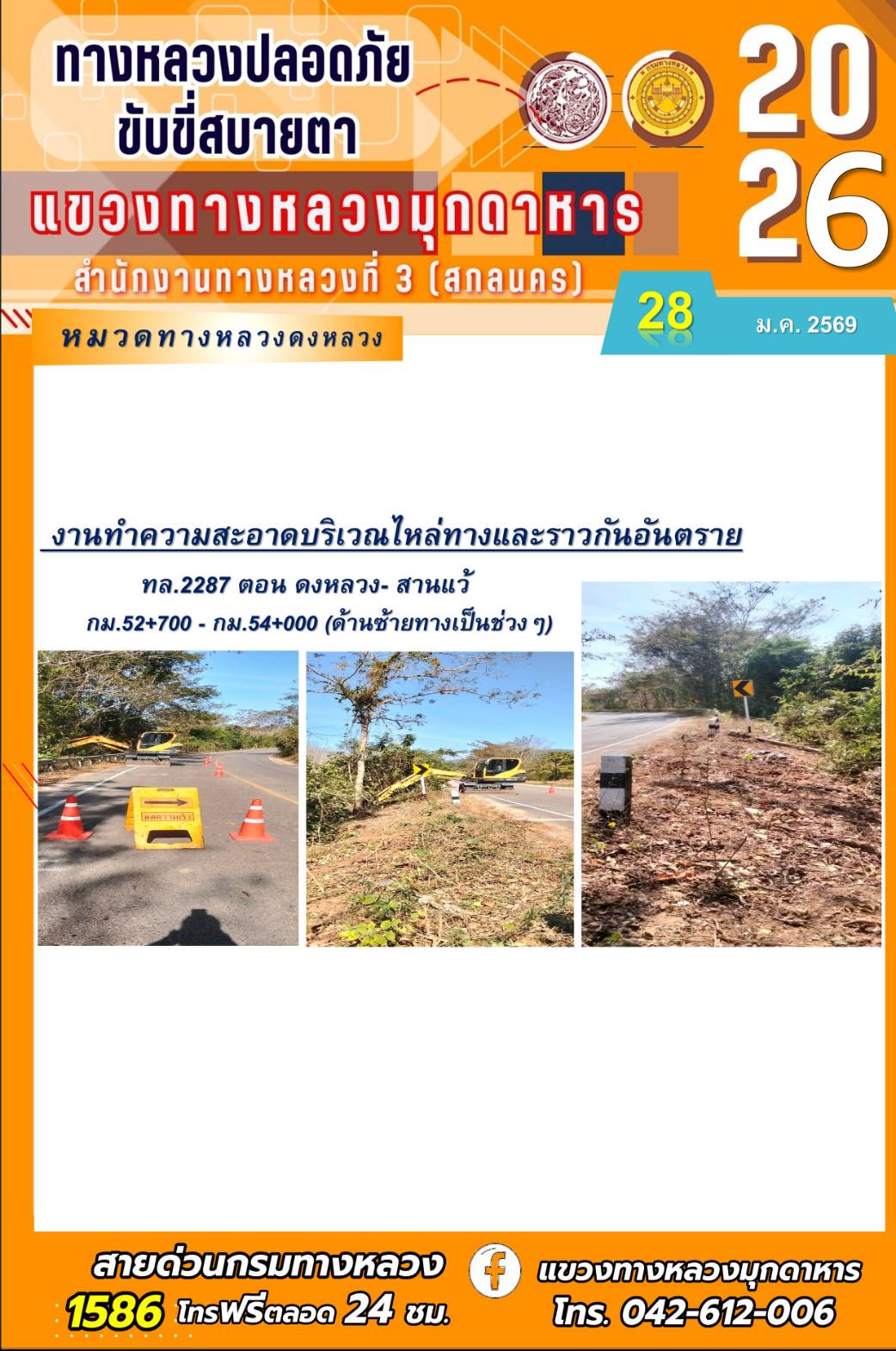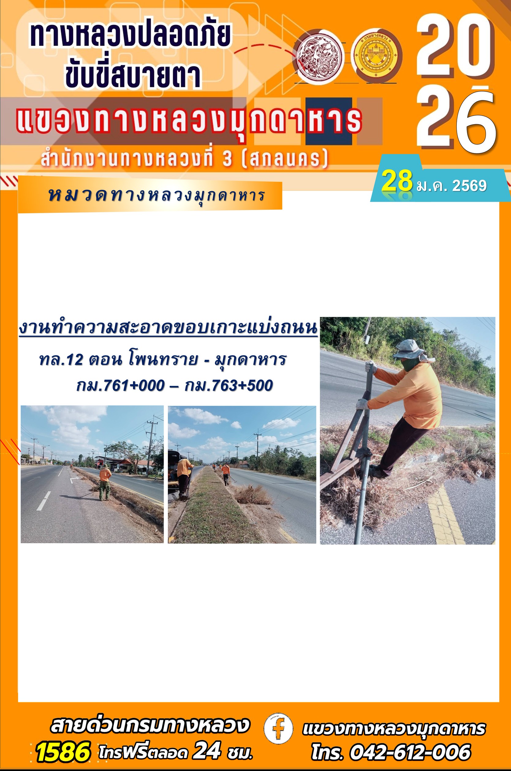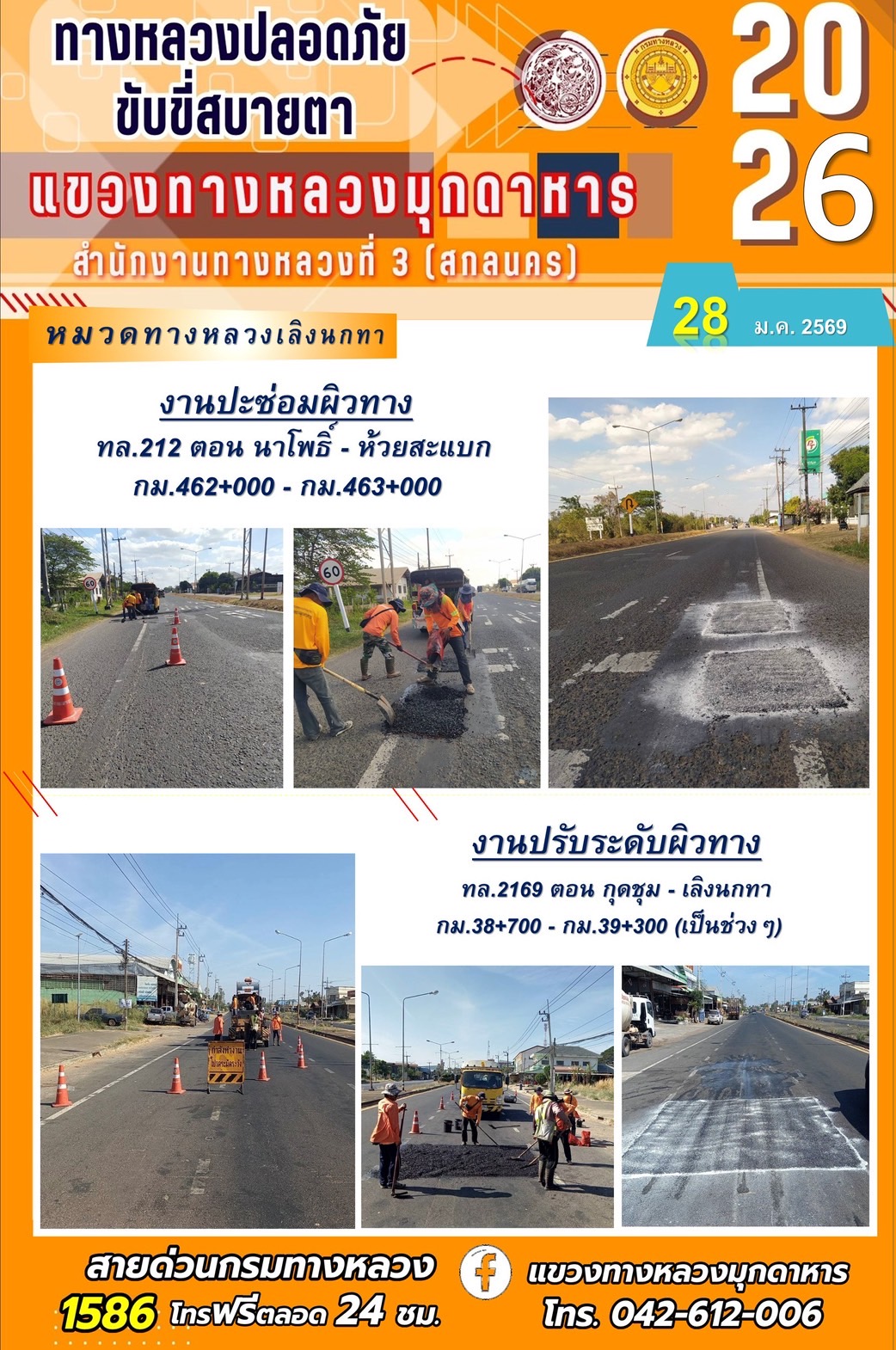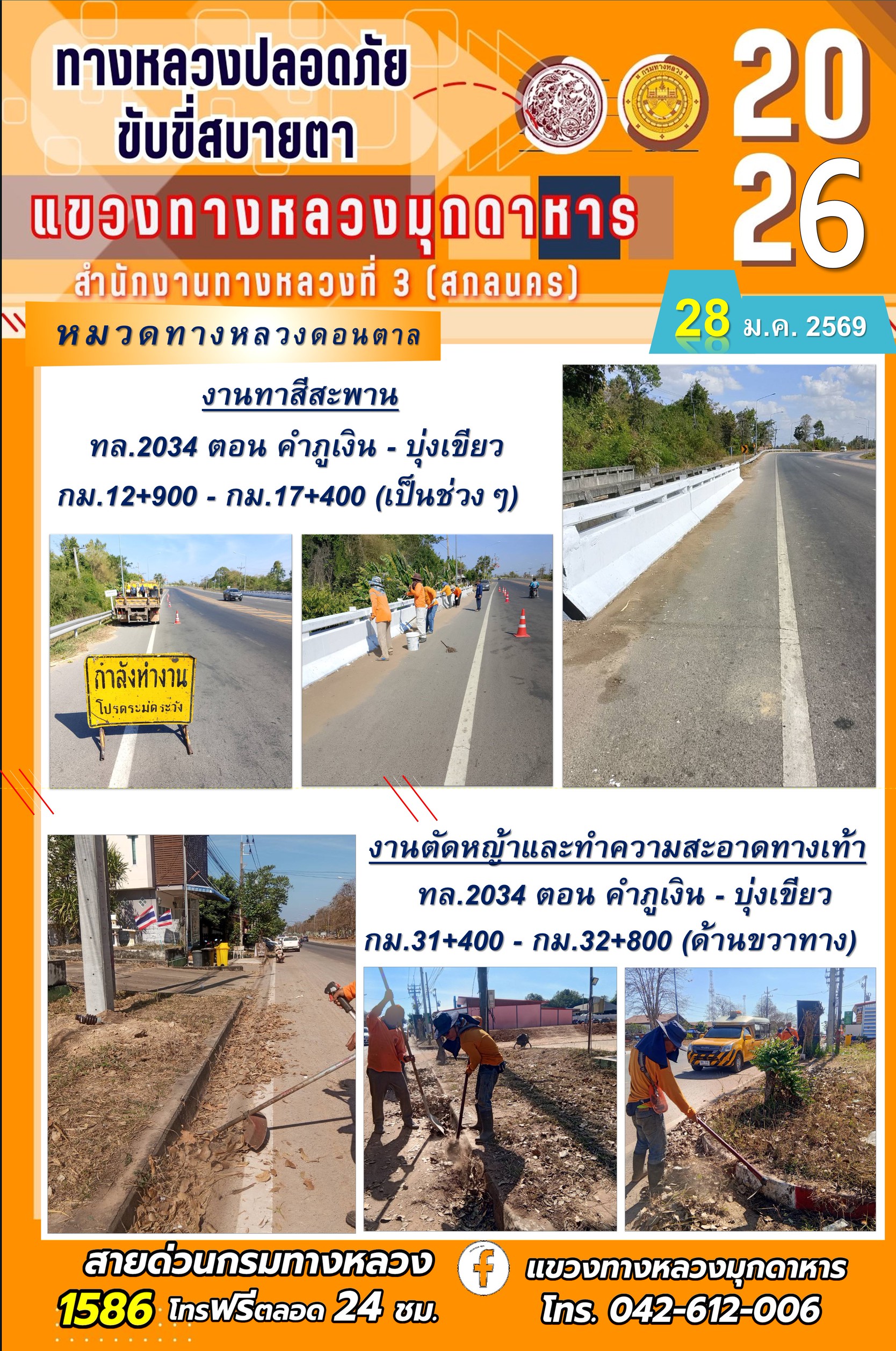 ประจำวันที่ 28 มกราคม 2569 โครงการทางหลวงปลอดภัย ขับขี่สบายตา หน่วยงานในสังกัดแขวงทางหลวง