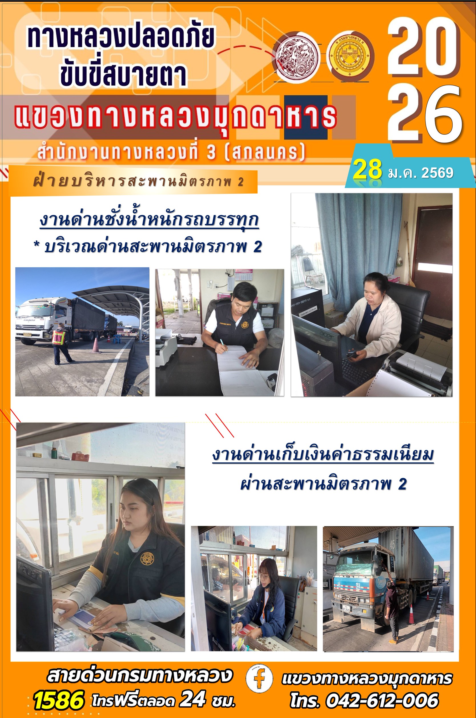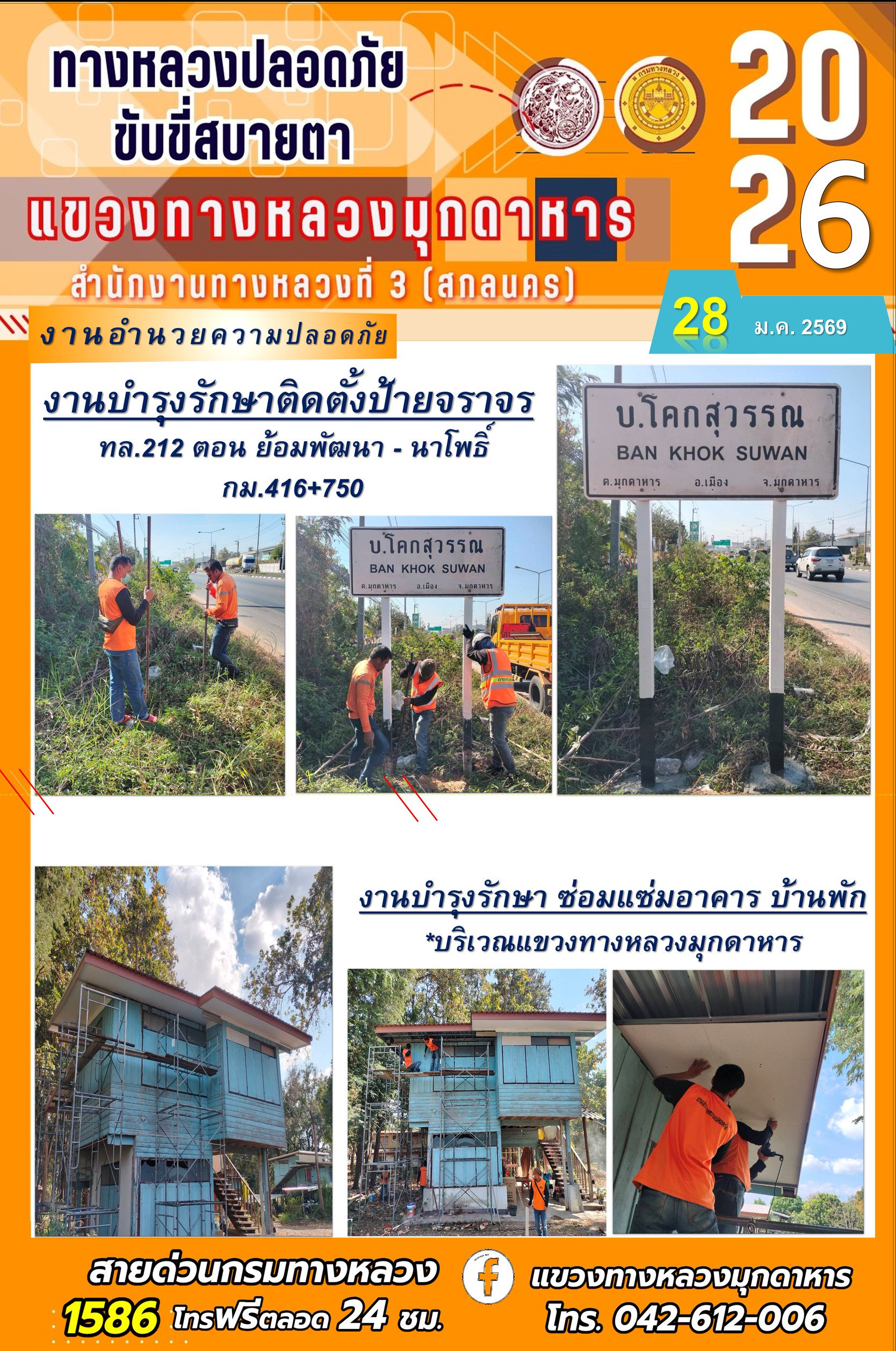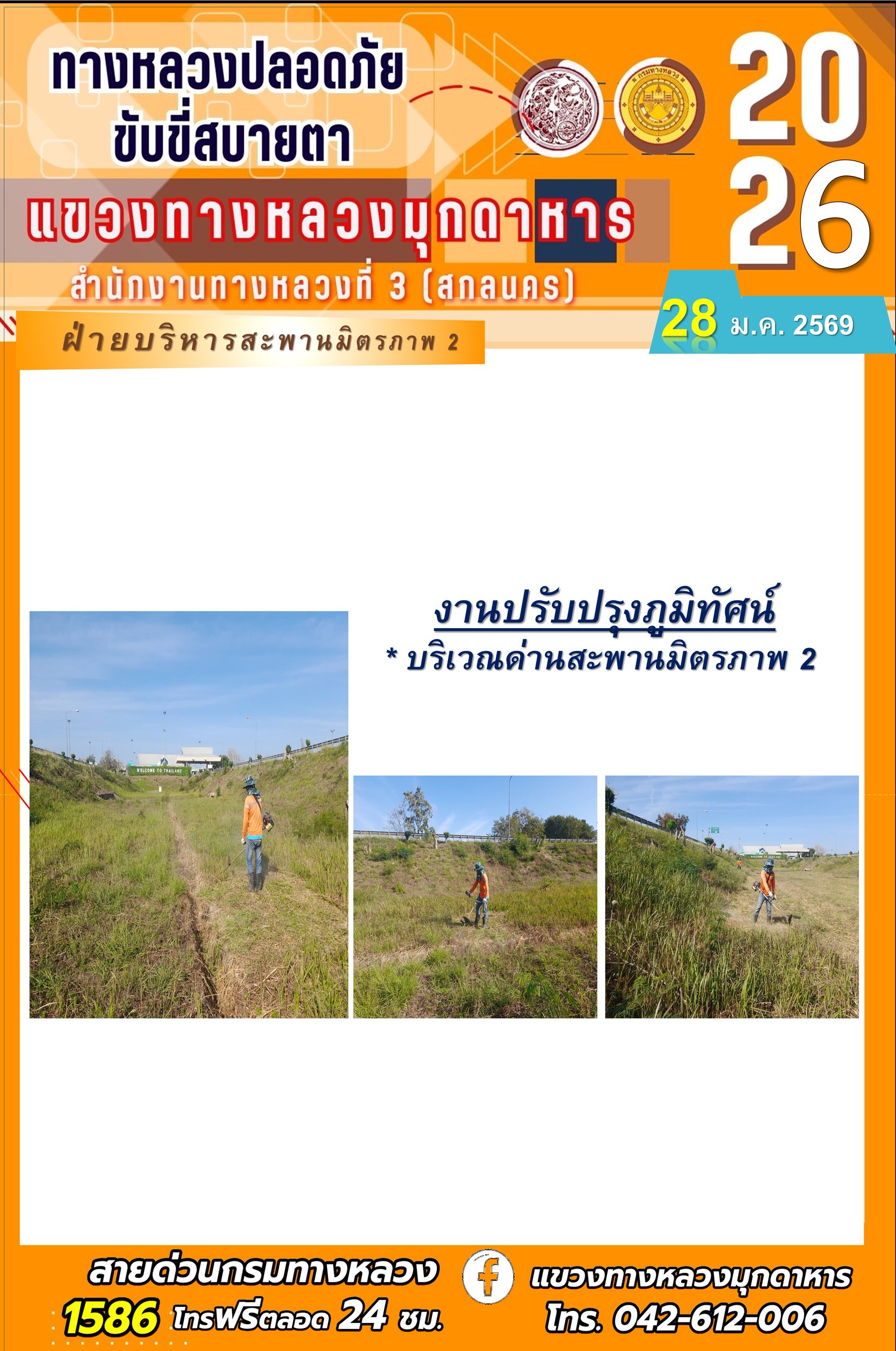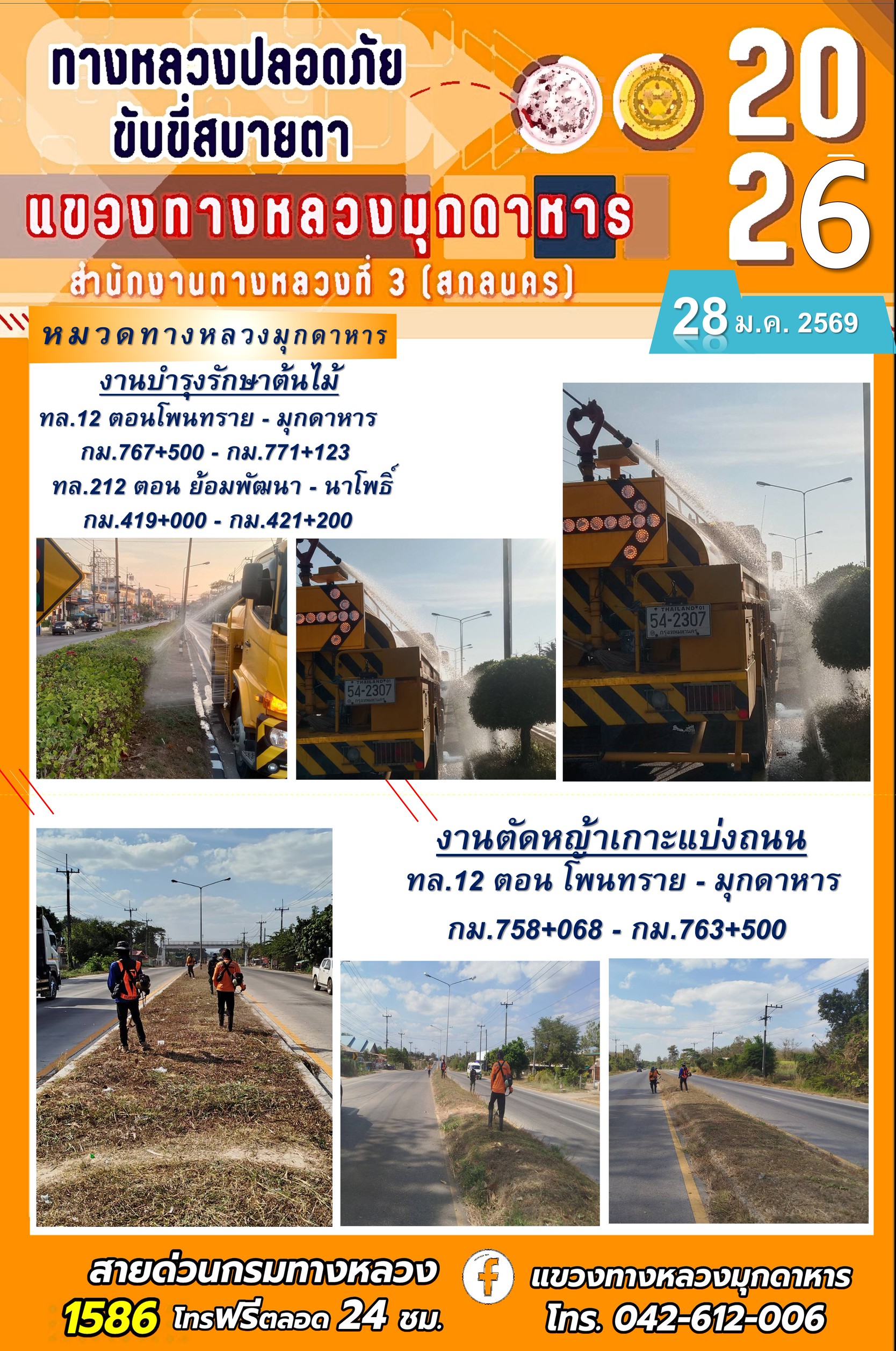 ประจำวันที่ 28 มกราคม 2569 โครงการทางหลวงปลอดภัย ขับขี่สบายตา หน่วยงานในสังกัดแขวงทางหลวง