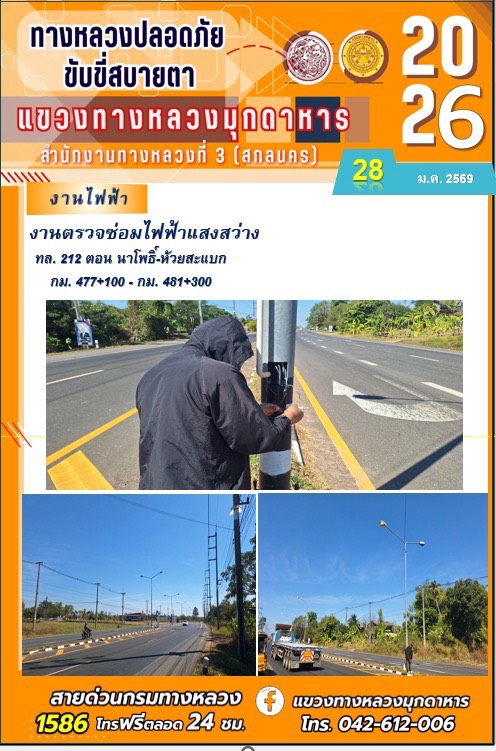 ข้อมูลภาพกิจกรรม : ประจำวันที่ 28 มกราคม 2569 โครงการทางหลวงปลอดภัย ขับขี่สบายตา หน่วยงานในสังกัดแขวงทางหลวง