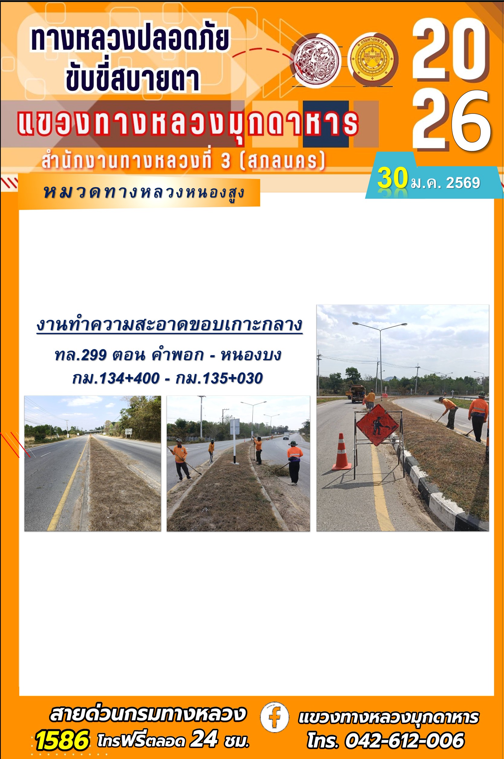 ประจำวันที่ 30 มกราคม 2569 โครงการทางหลวงปลอดภัย ขับขี่สบายตา หน่วยงานในสังกัดแขวงทางหลวง