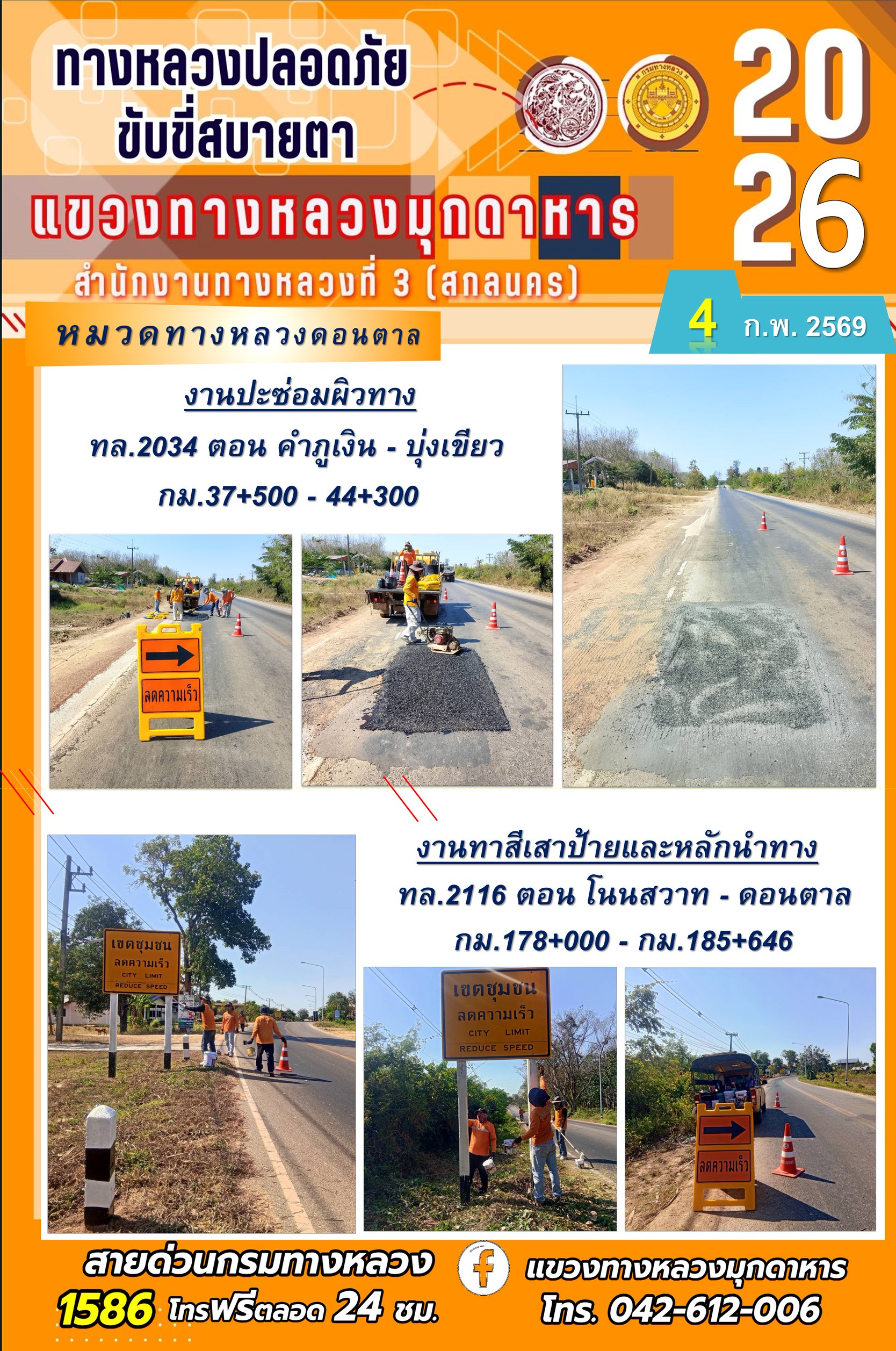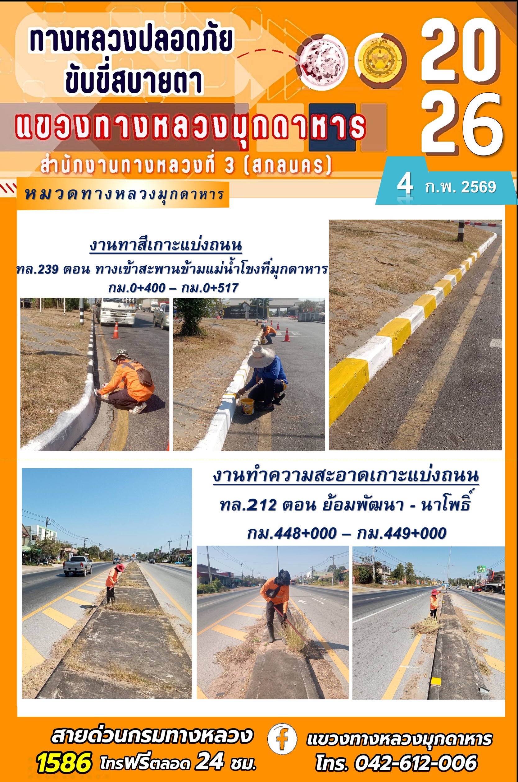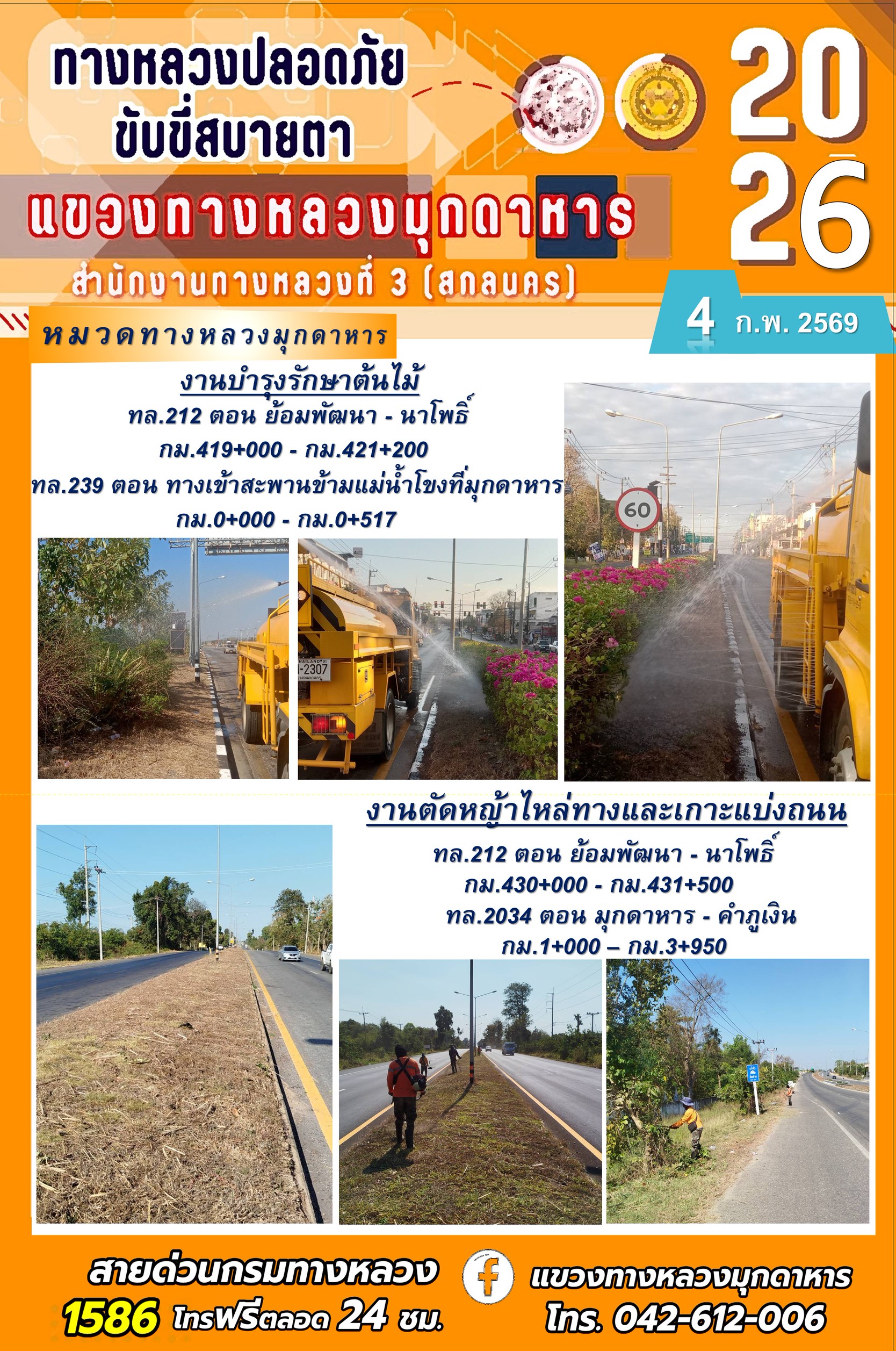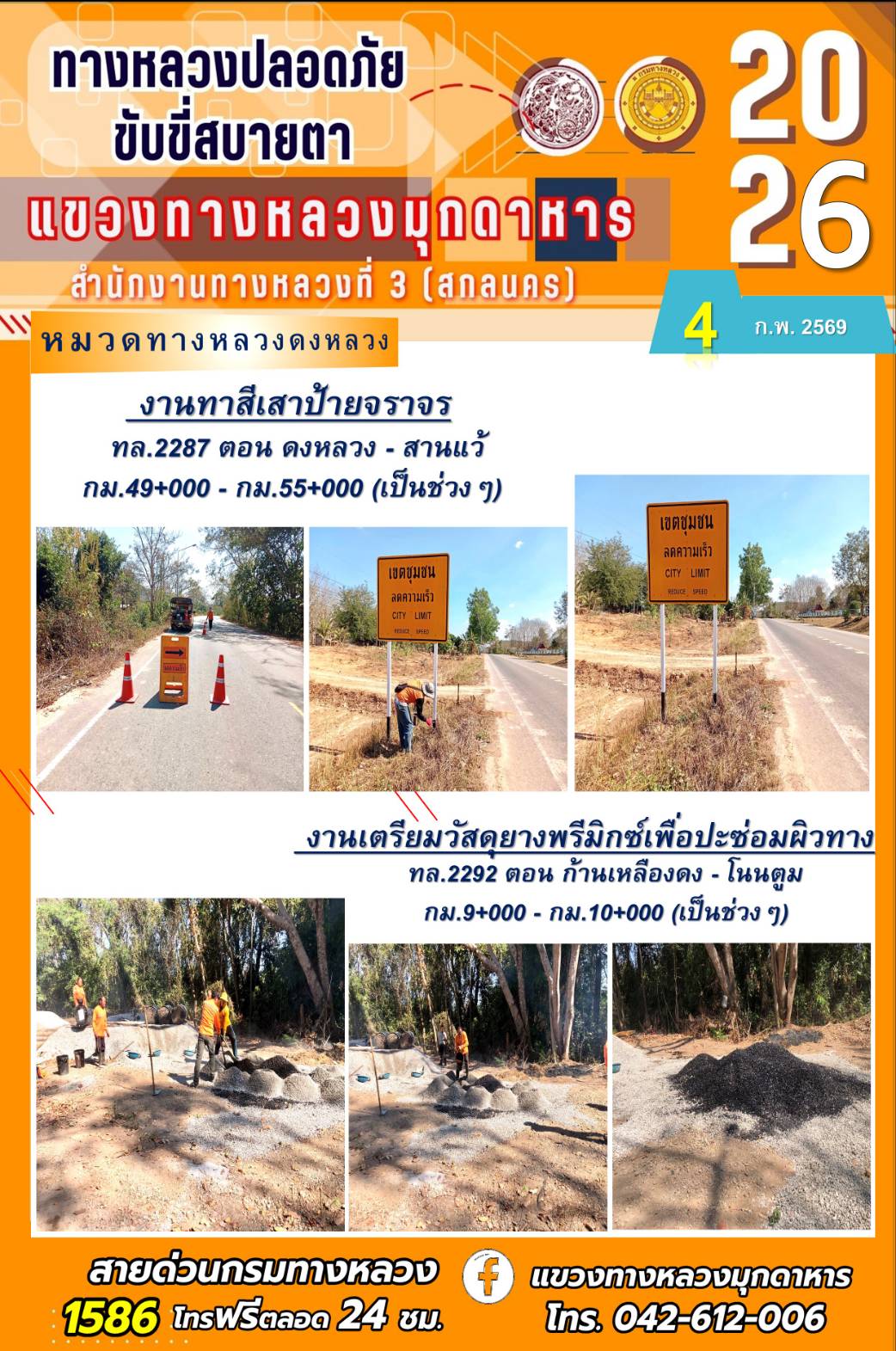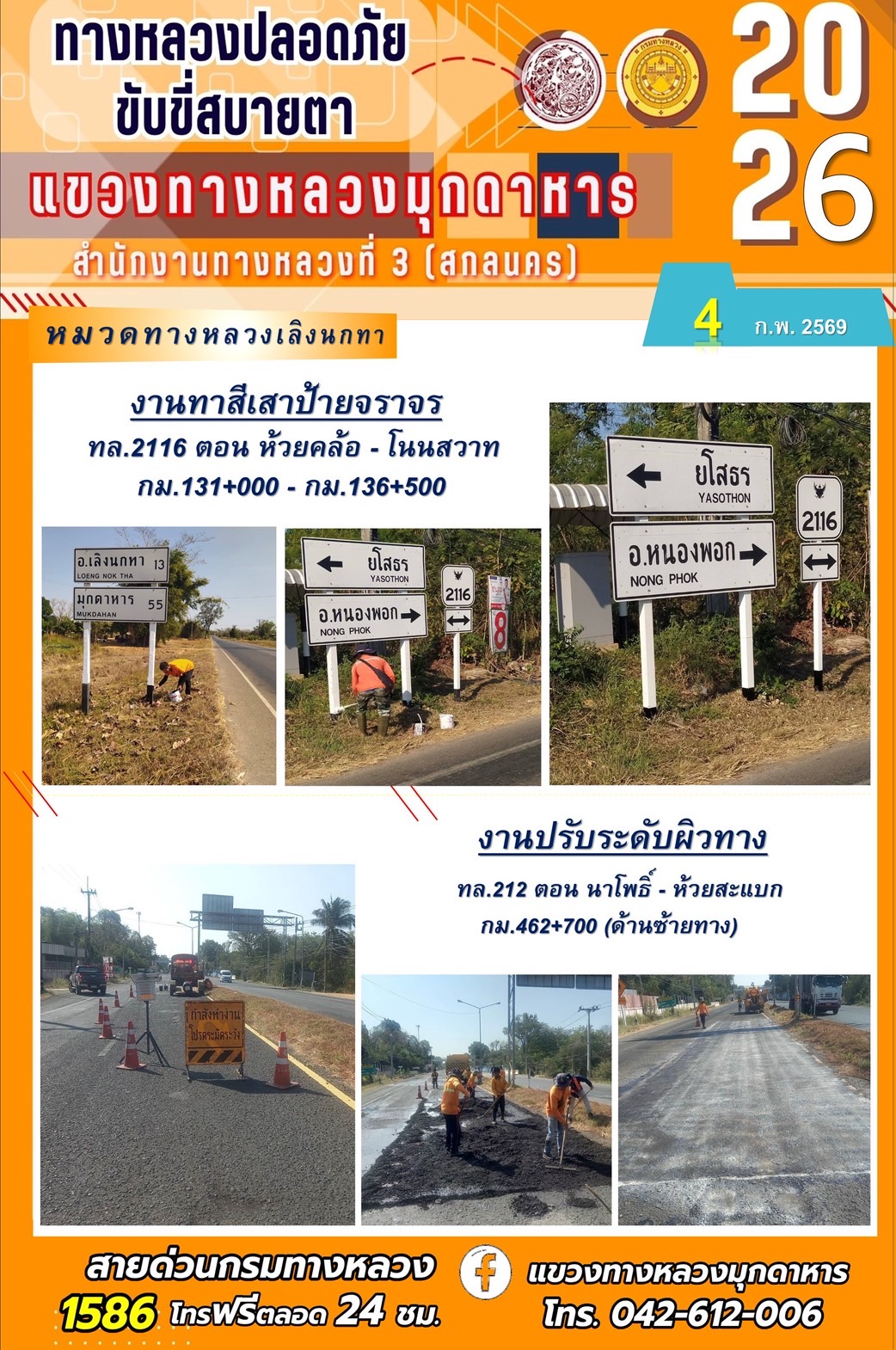 ประจำวันที่ 4 กุมภาพันธ์ 2569 โครงการทางหลวงปลอดภัย ขับขี่สบายตา หน่วยงานในสังกัดแขวงทางหลวง
