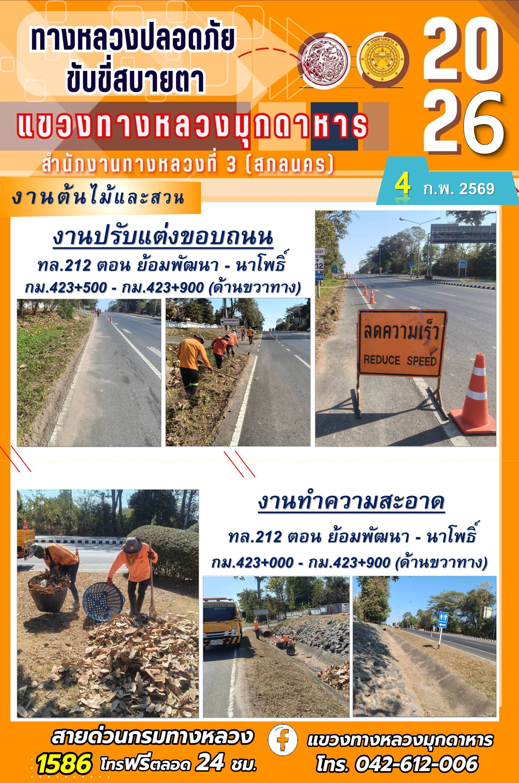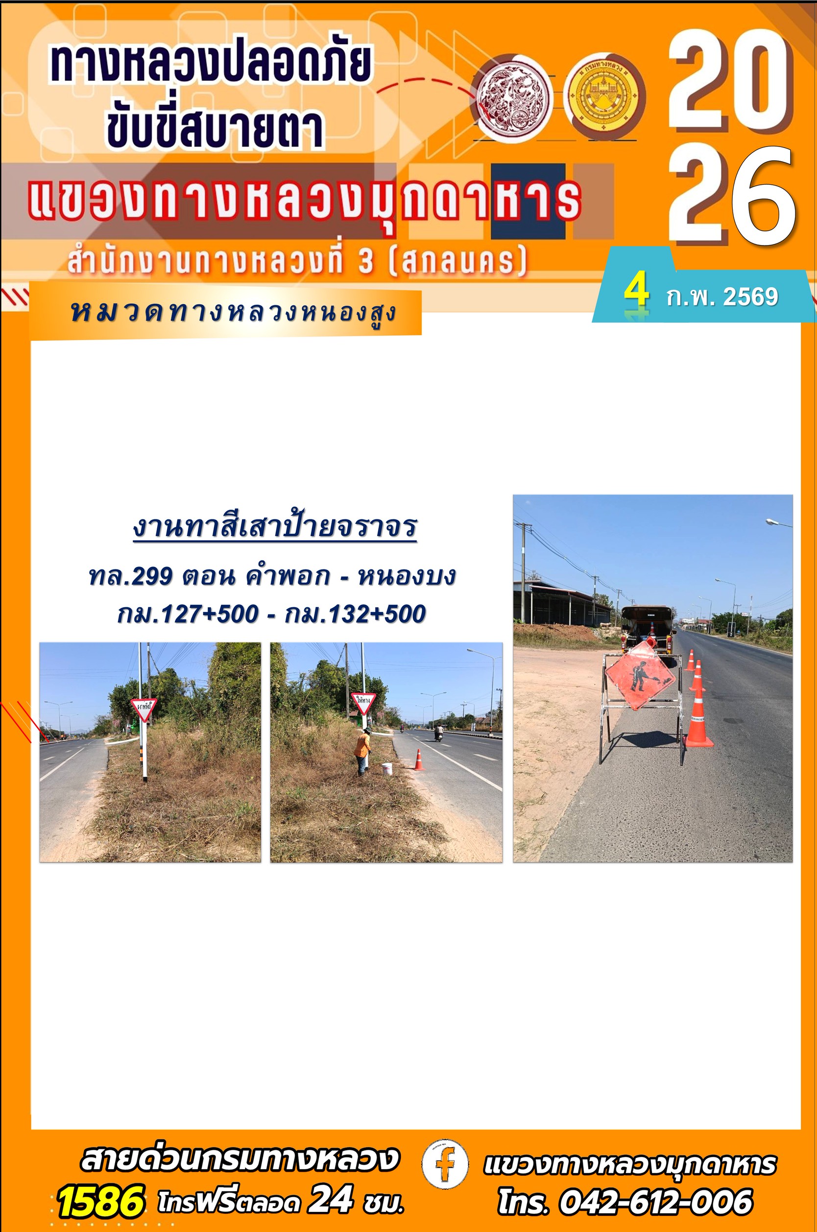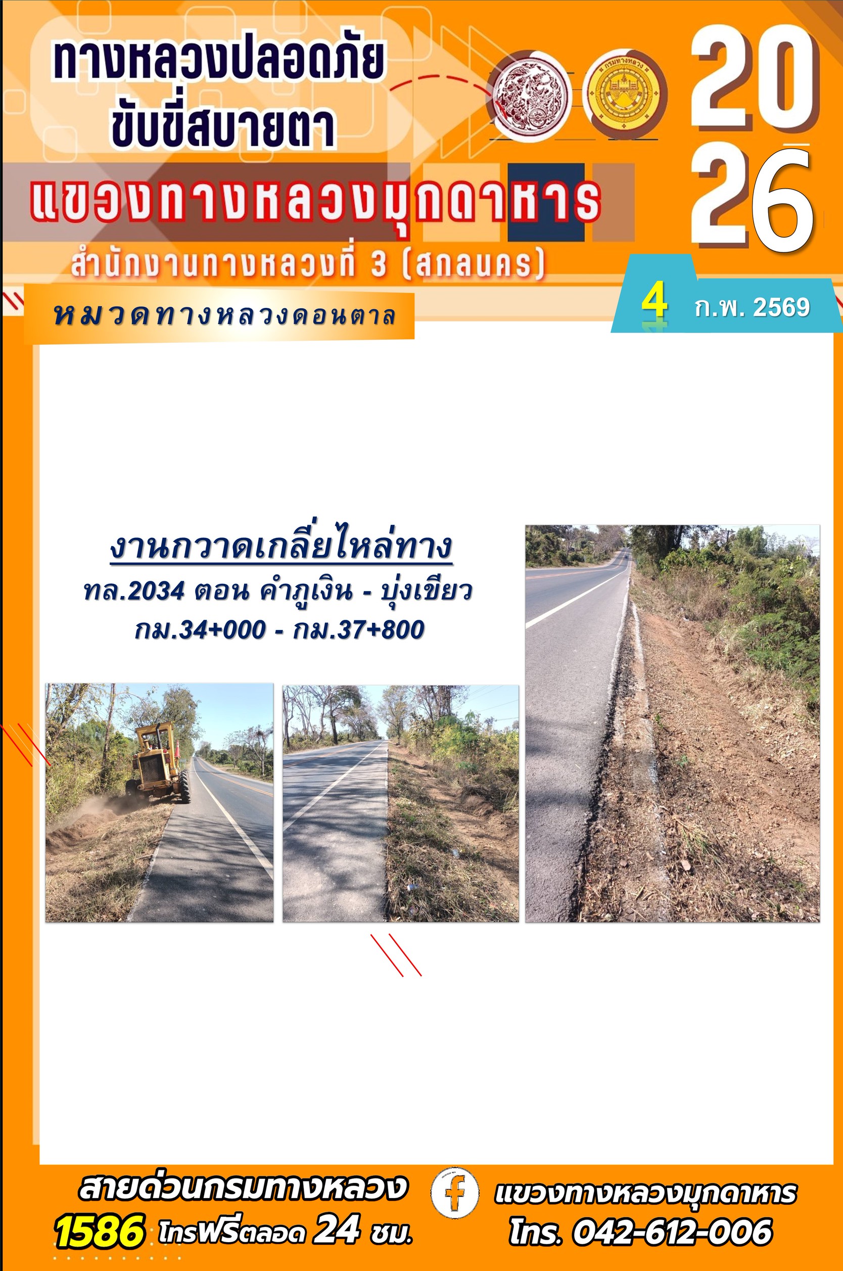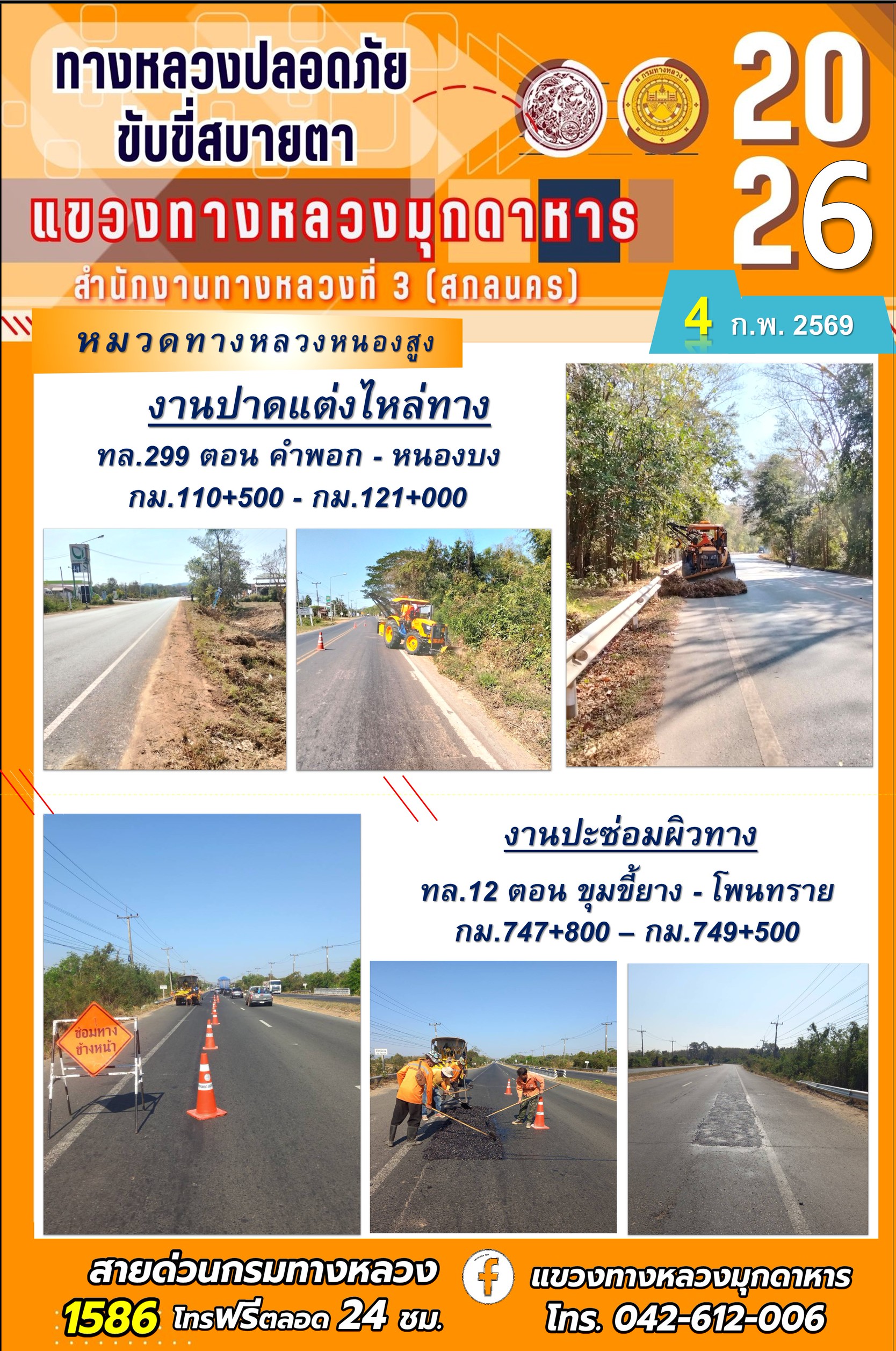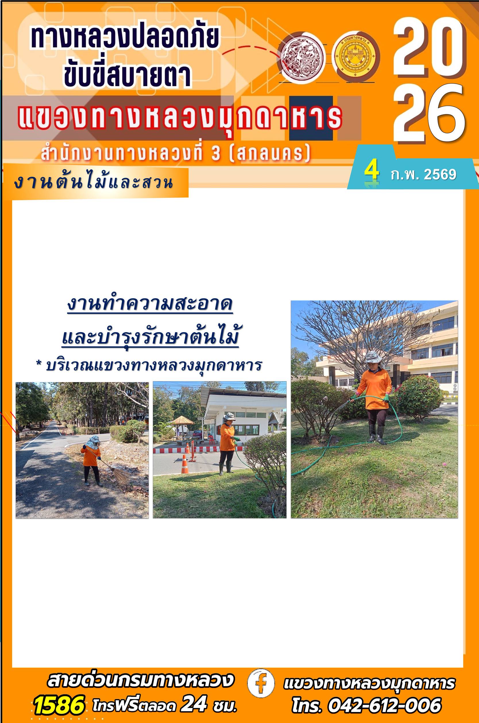 ประจำวันที่ 4 กุมภาพันธ์ 2569 โครงการทางหลวงปลอดภัย ขับขี่สบายตา หน่วยงานในสังกัดแขวงทางหลวง