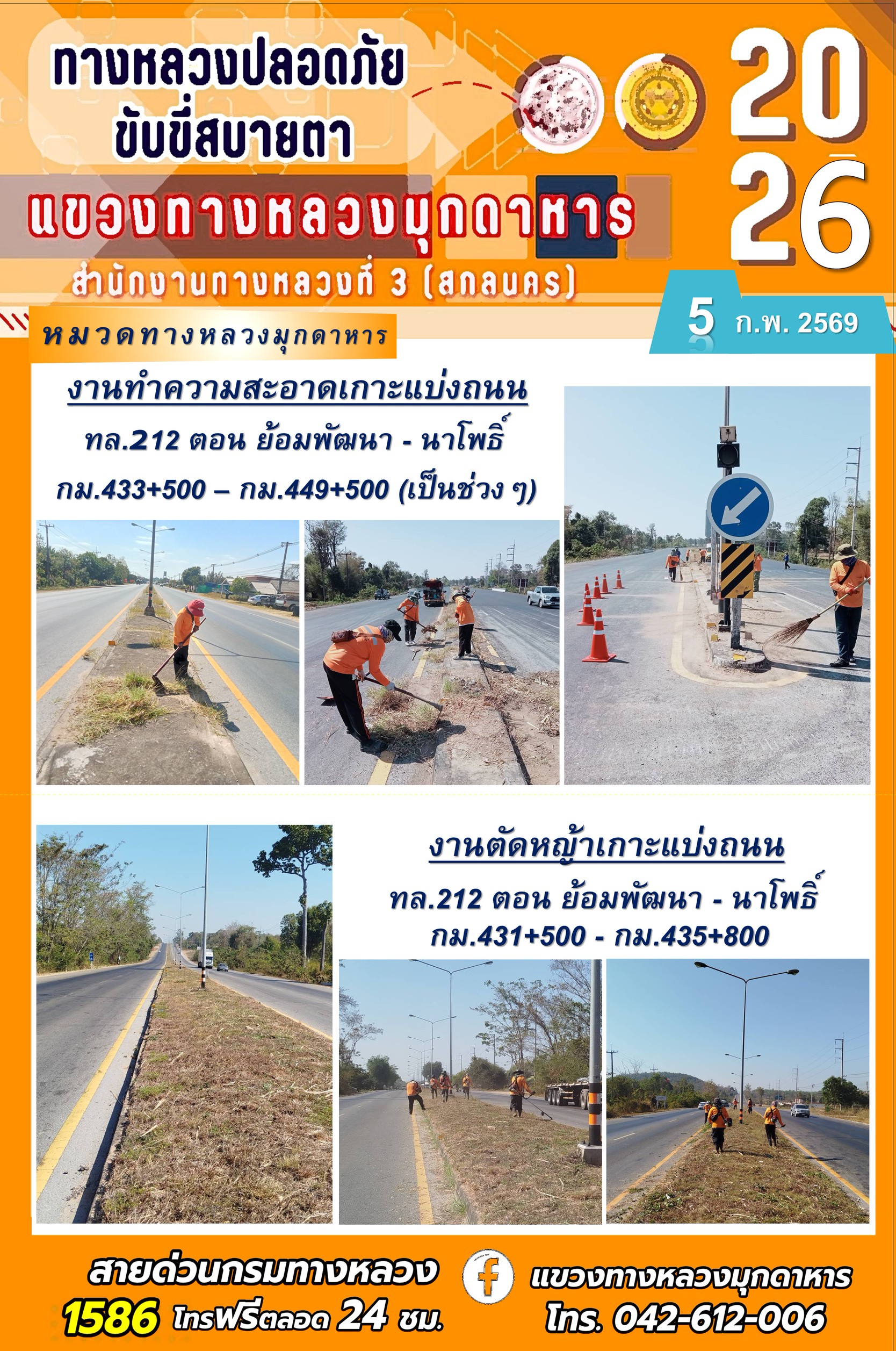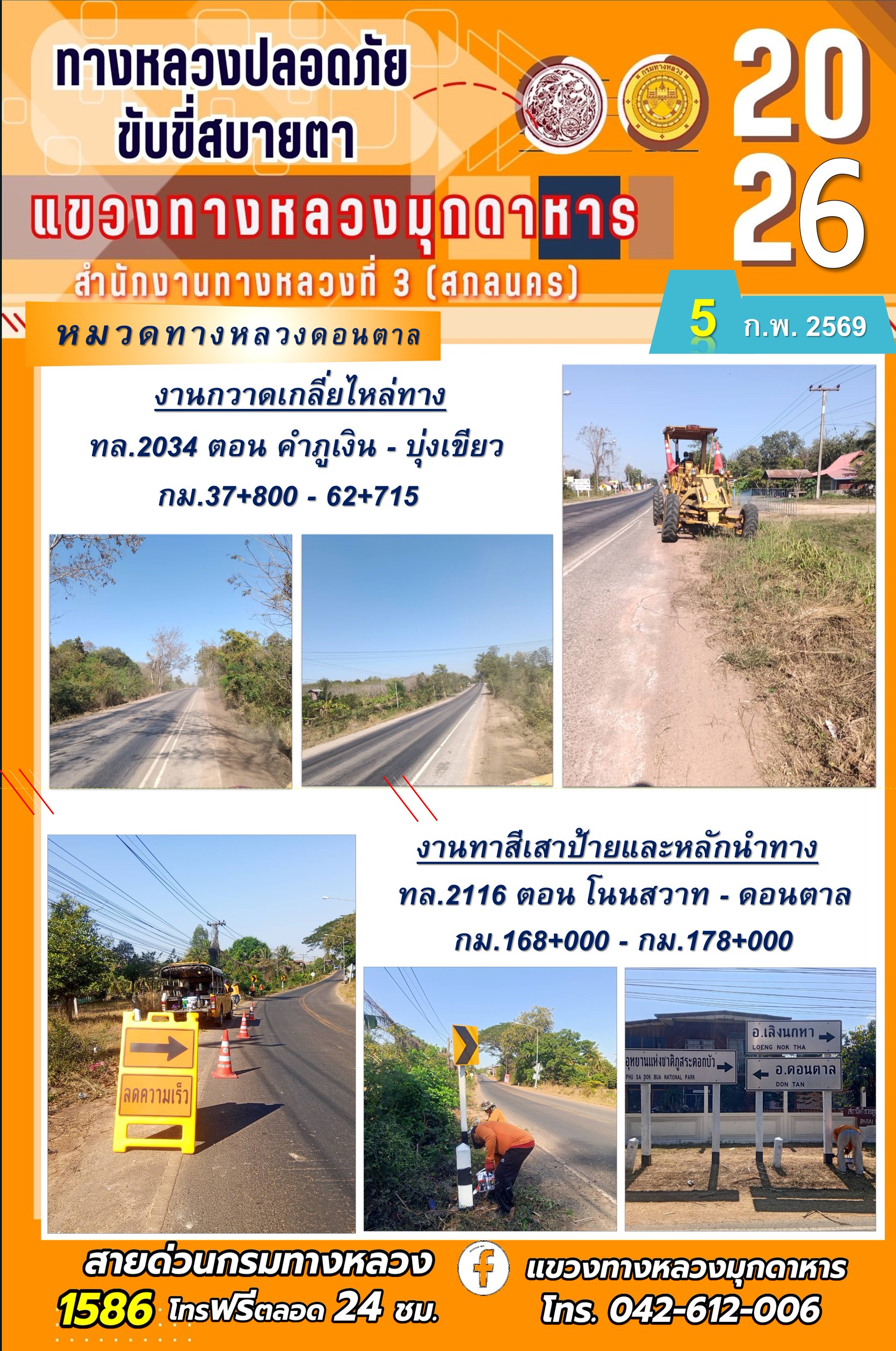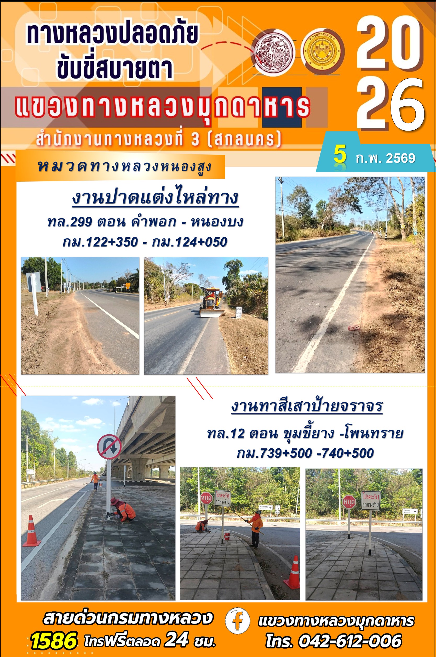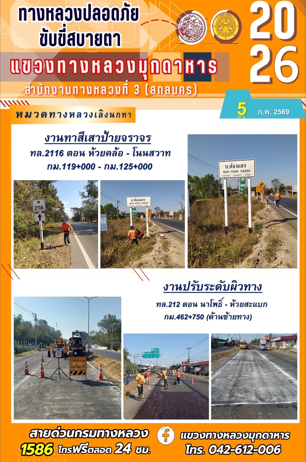 ประจำวันที่ 5 กุมภาพันธ์ 2569 โครงการทางหลวงปลอดภัย ขับขี่สบายตา หน่วยงานในสังกัดแขวงทางหลวง
