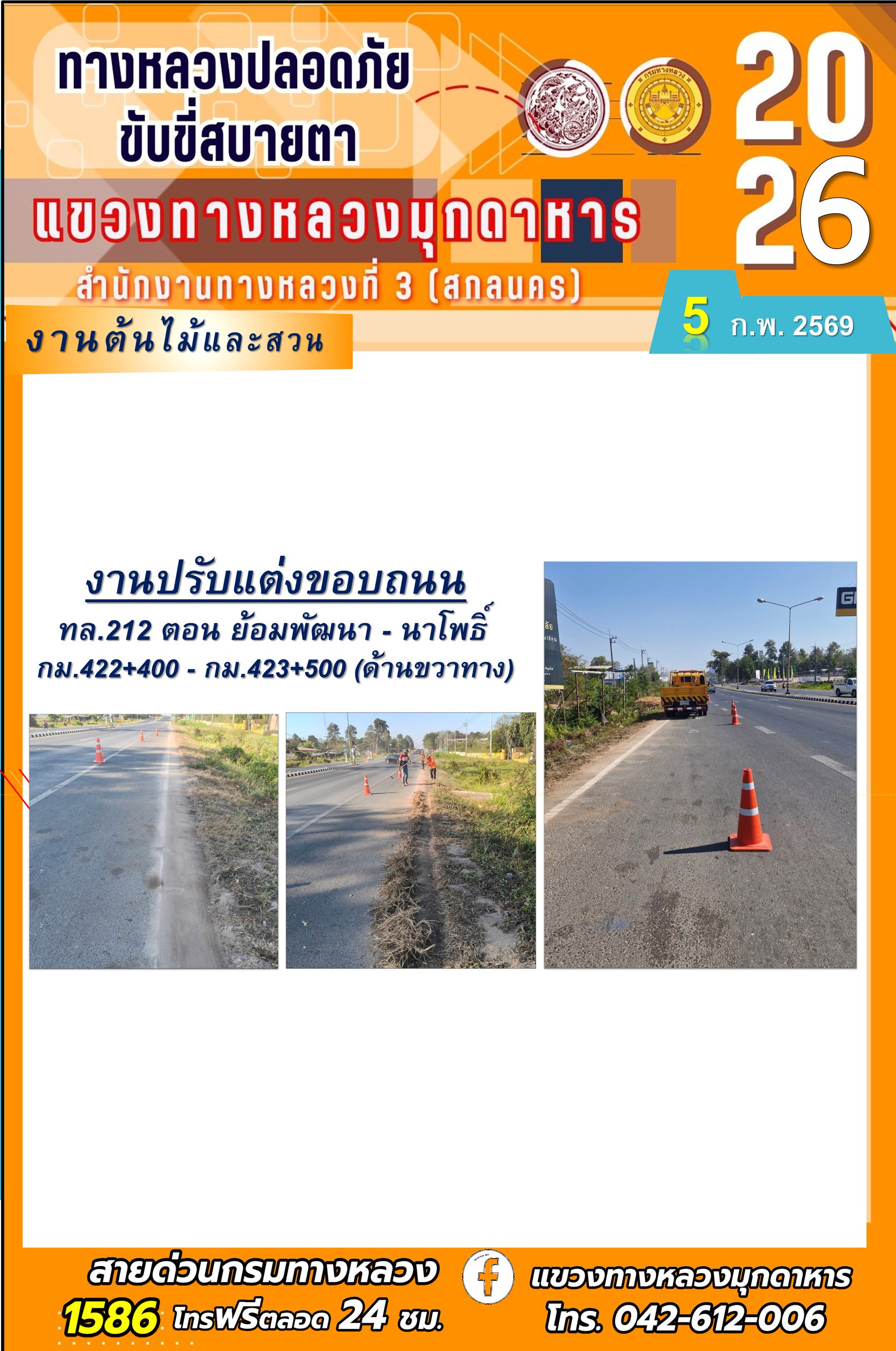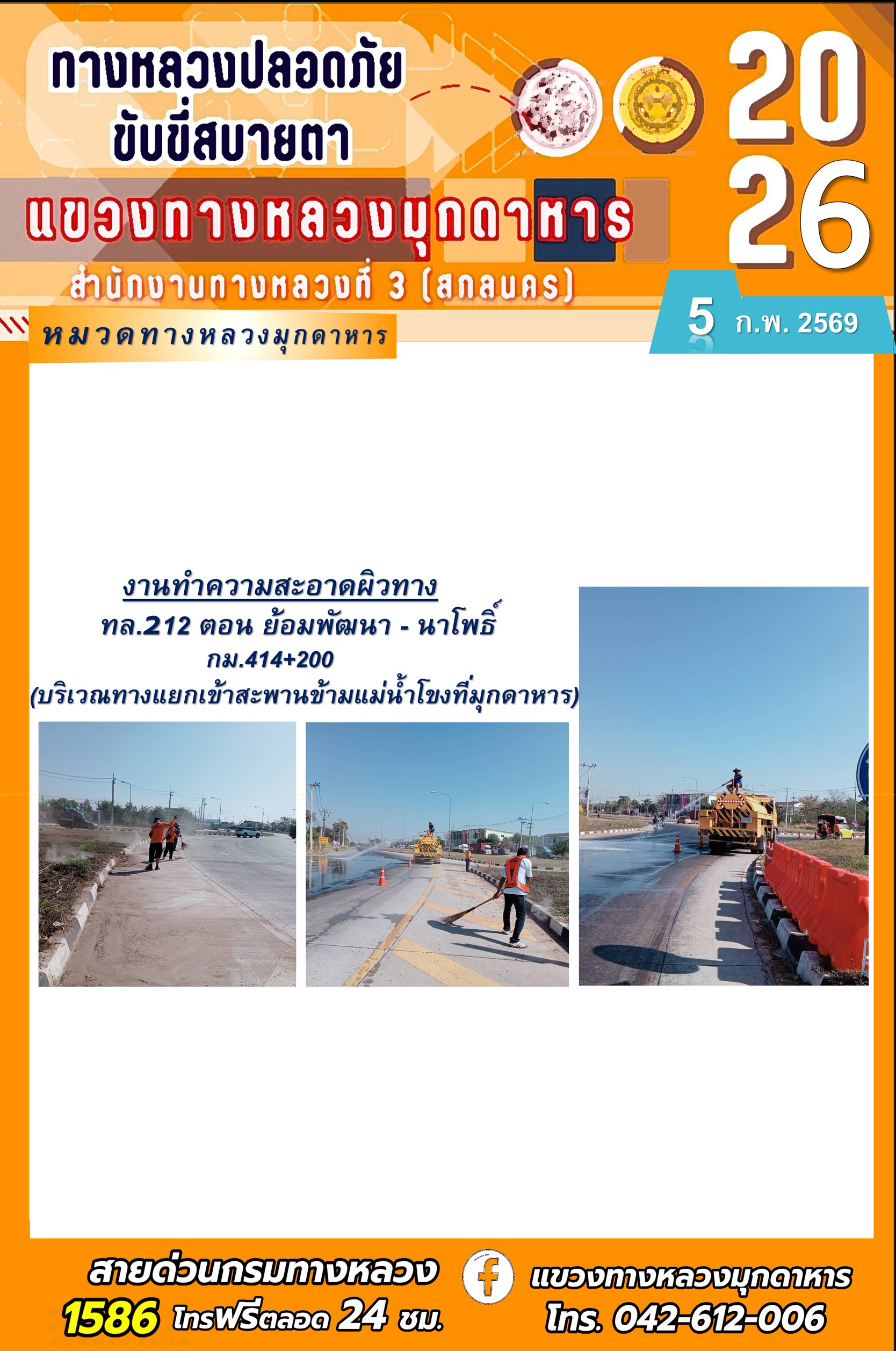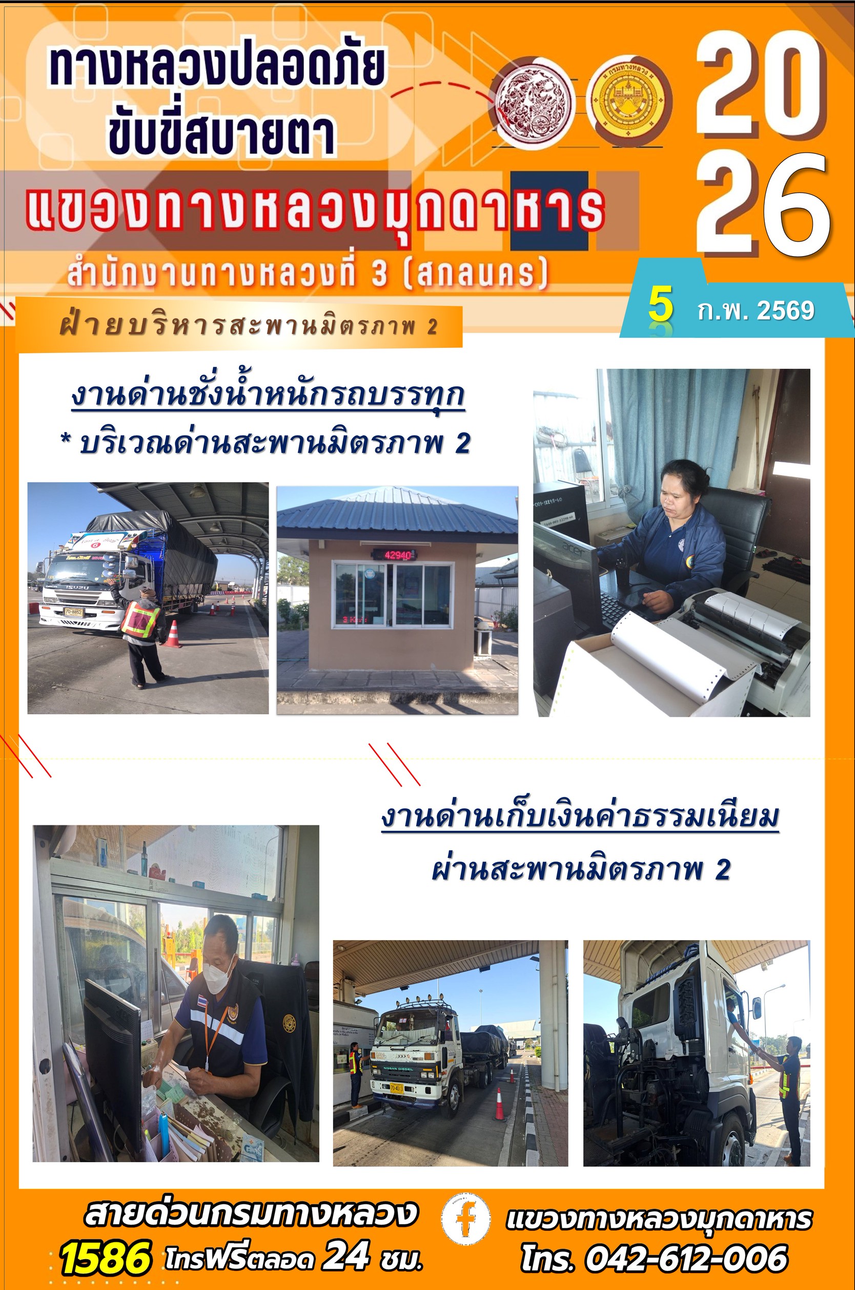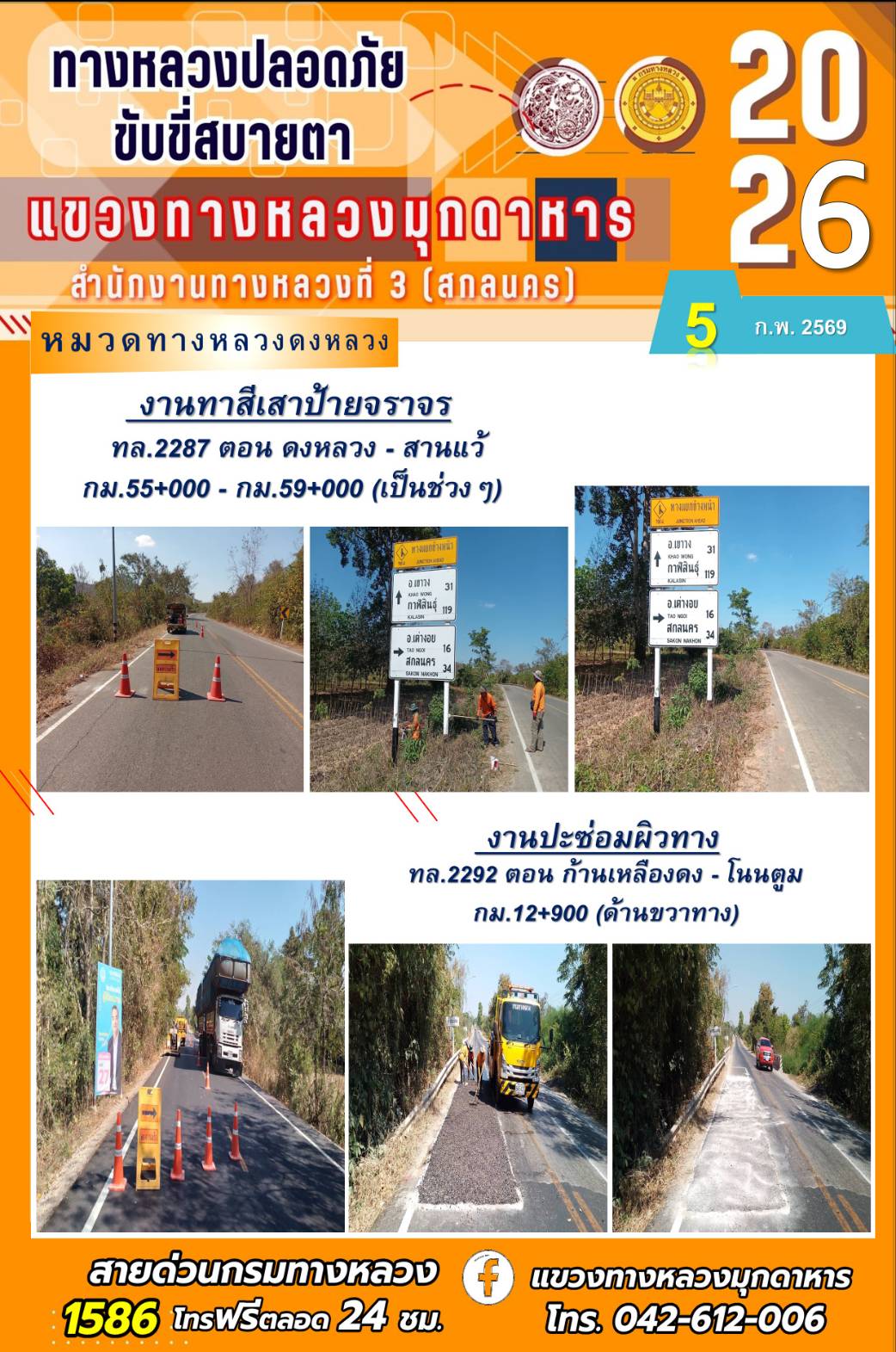 ประจำวันที่ 5 กุมภาพันธ์ 2569 โครงการทางหลวงปลอดภัย ขับขี่สบายตา หน่วยงานในสังกัดแขวงทางหลวง