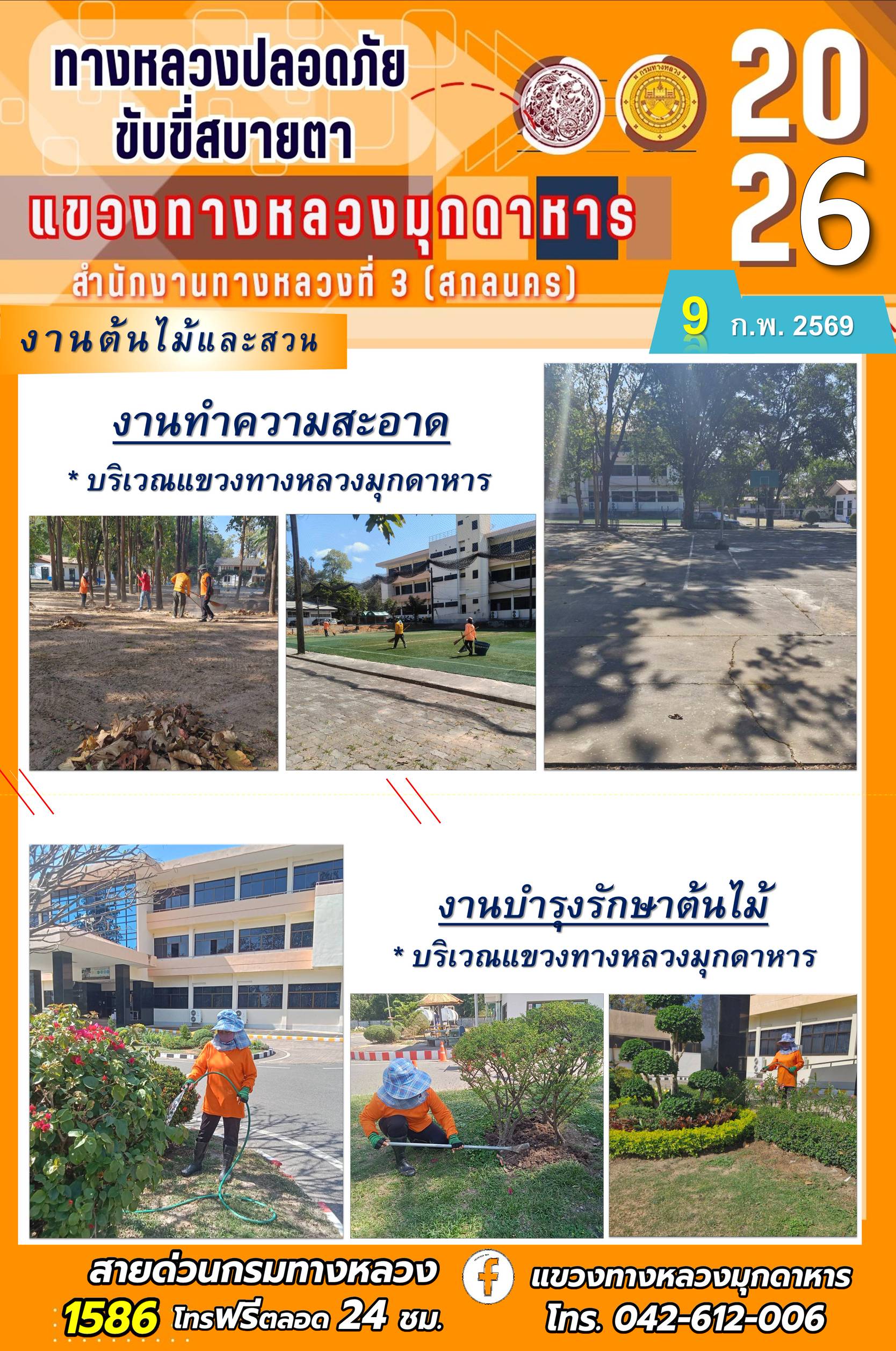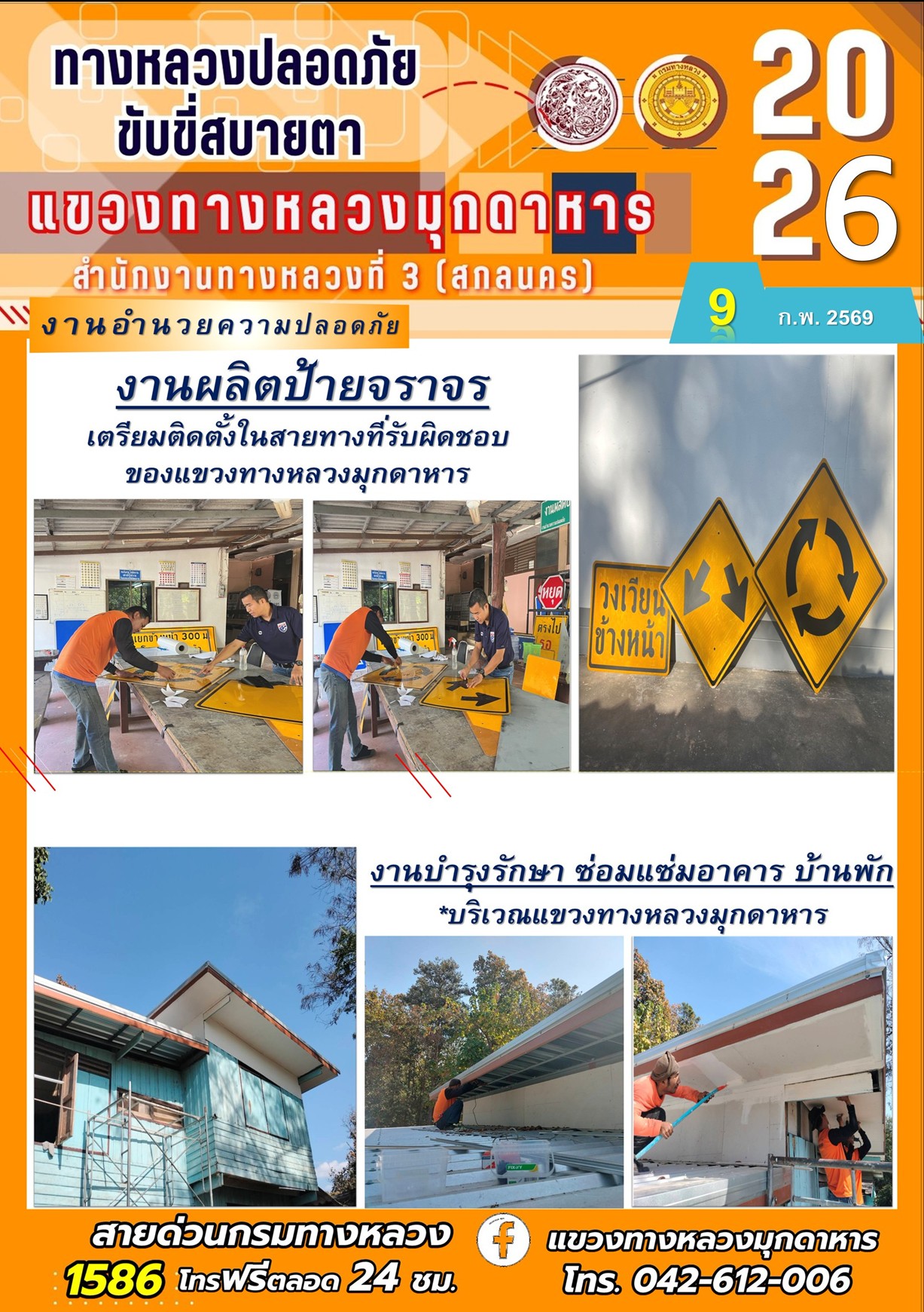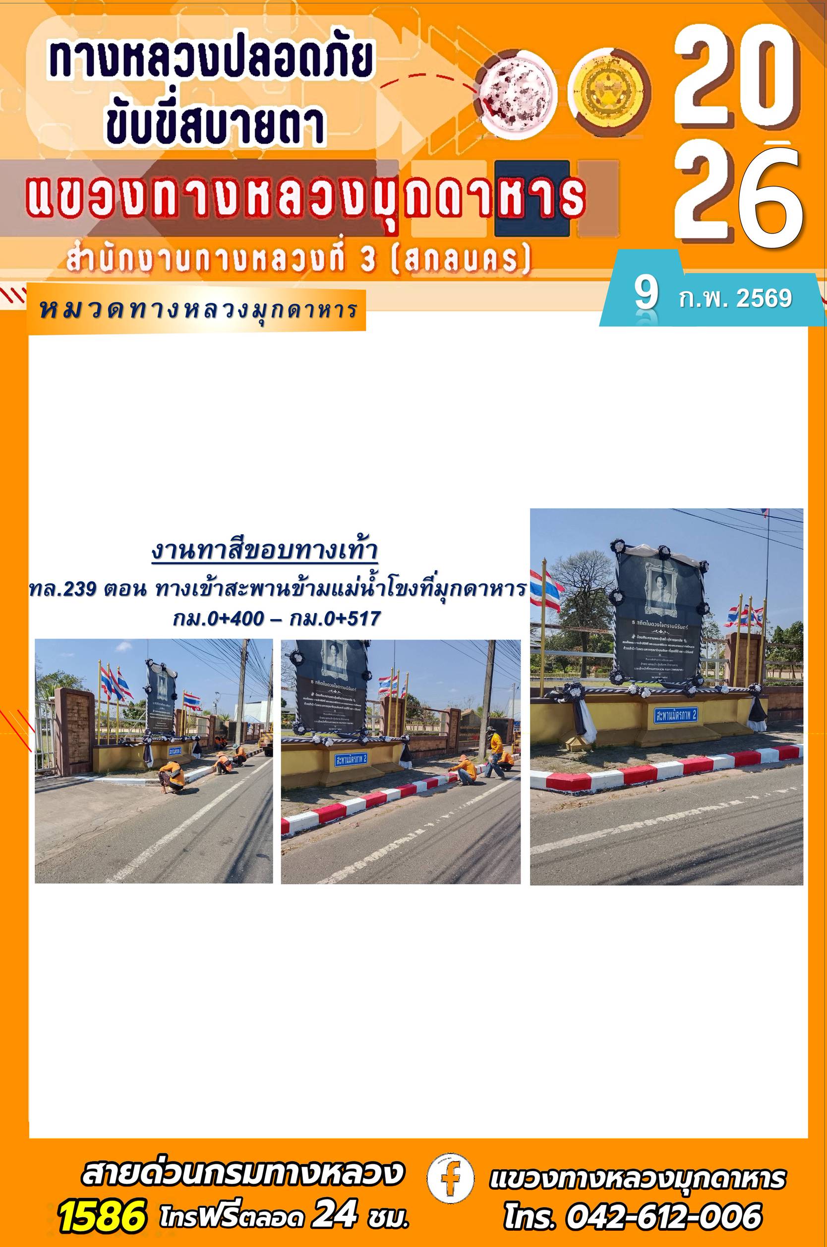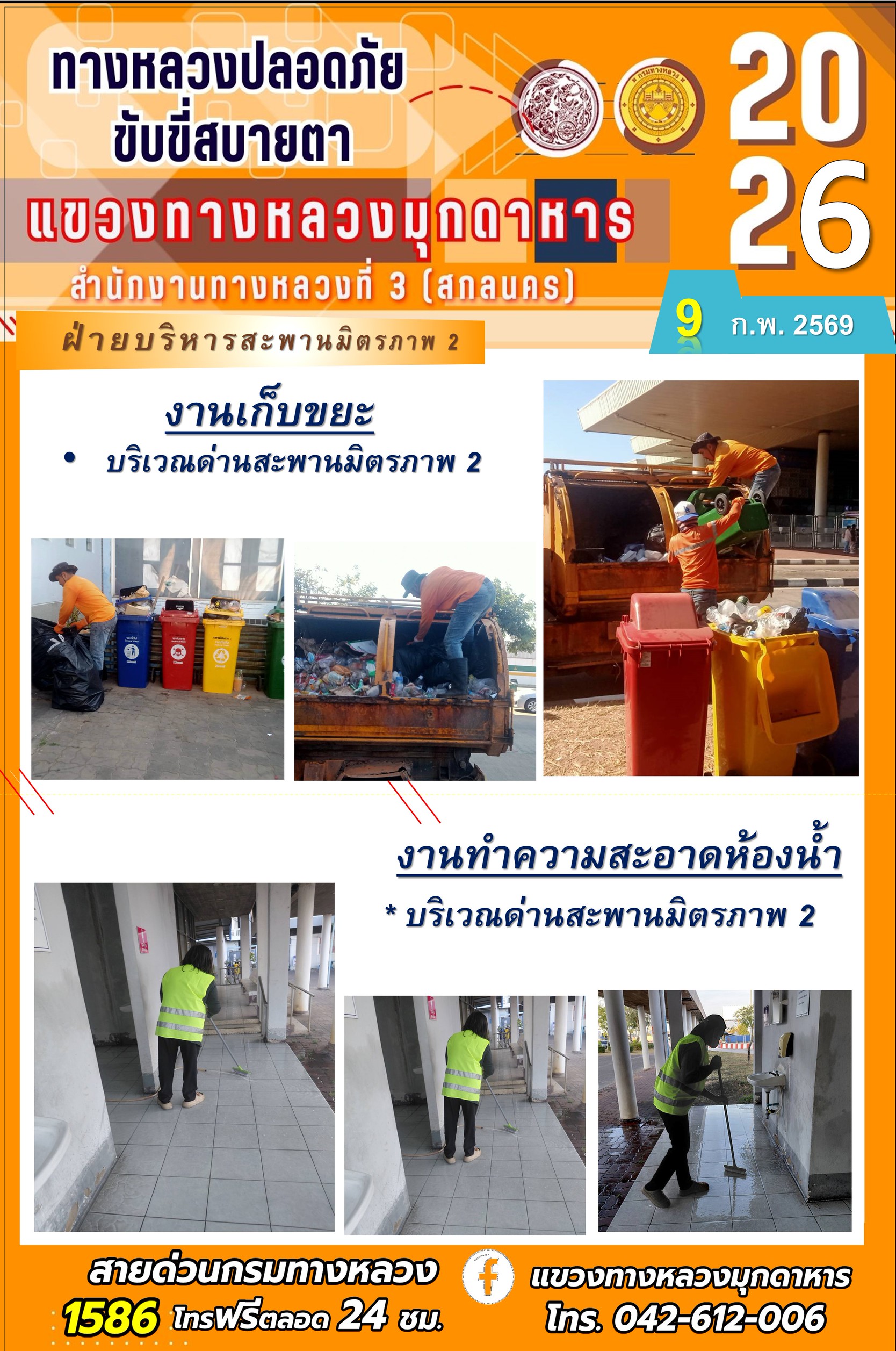 ประจำวันที่ 9 กุมภาพันธ์ 2569 โครงการทางหลวงปลอดภัย ขับขี่สบายตา หน่วยงานในสังกัดแขวงทางหลวง