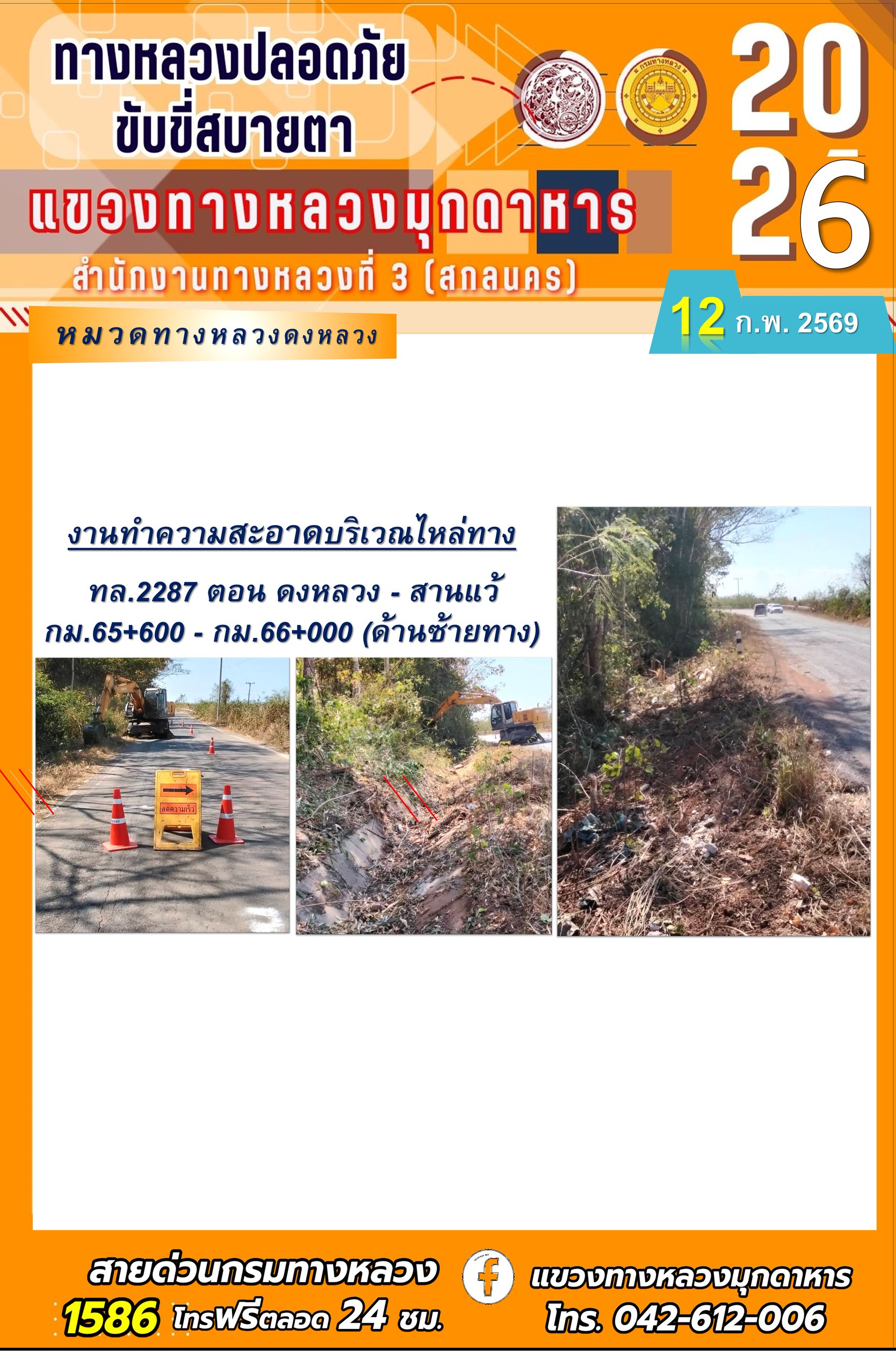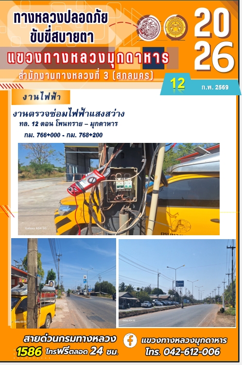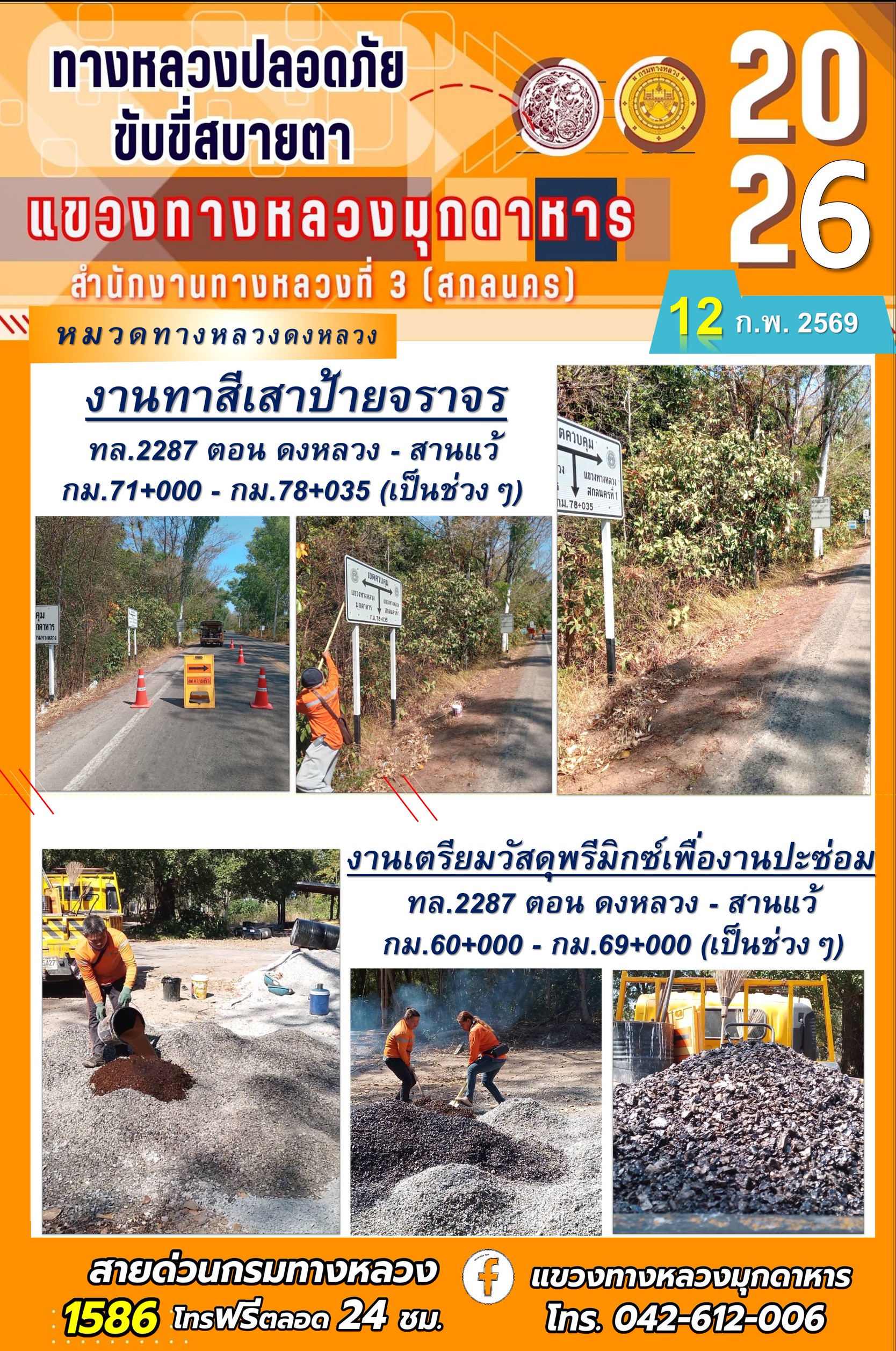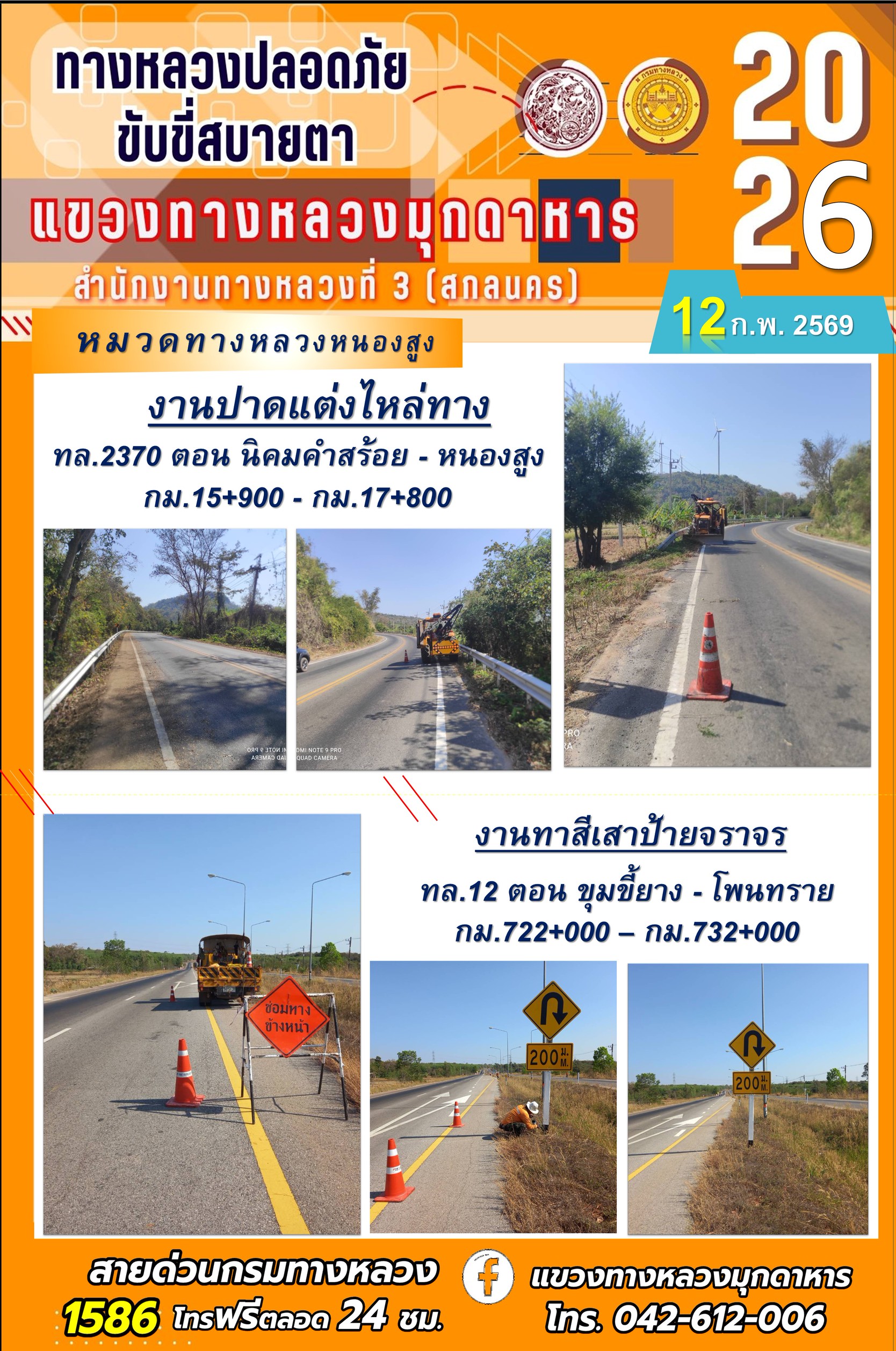 ประจำวันที่ 12 กุมภาพันธ์ 2569 โครงการทางหลวงปลอดภัย ขับขี่สบายตา หน่วยงานในสังกัดแขวงทางหลวง