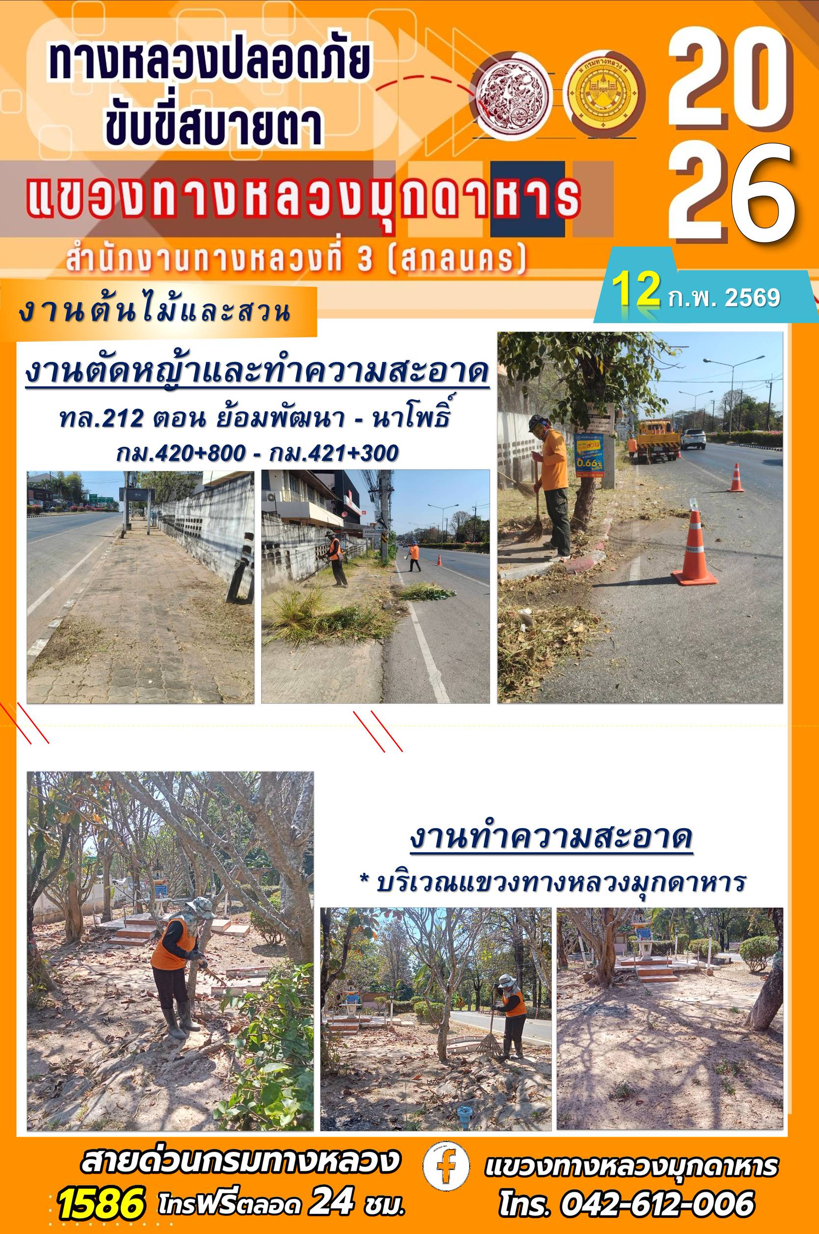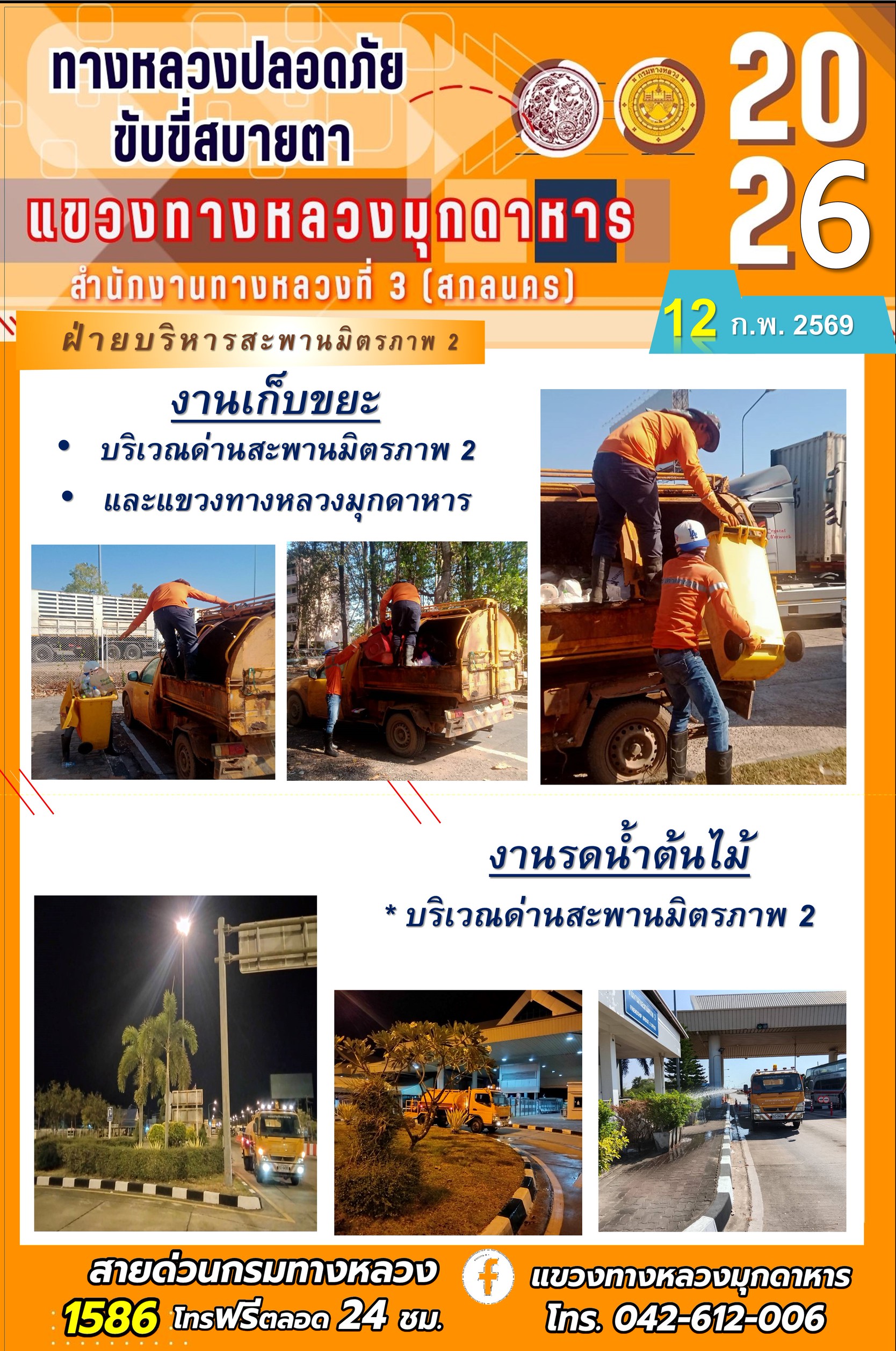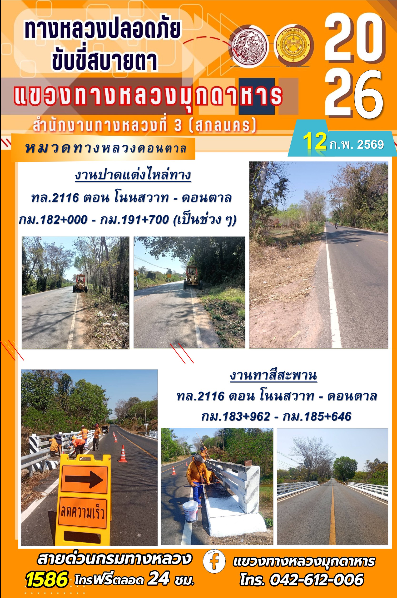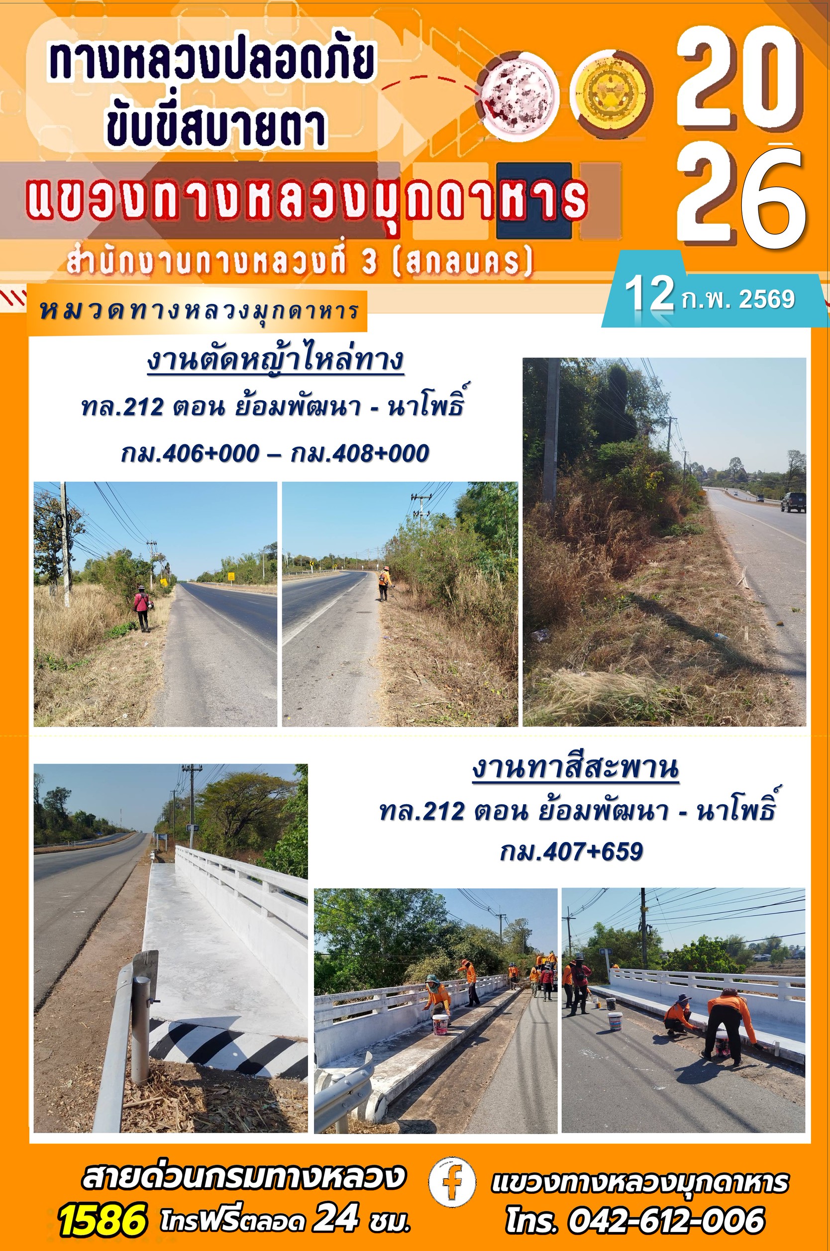 ประจำวันที่ 12 กุมภาพันธ์ 2569 โครงการทางหลวงปลอดภัย ขับขี่สบายตา หน่วยงานในสังกัดแขวงทางหลวง