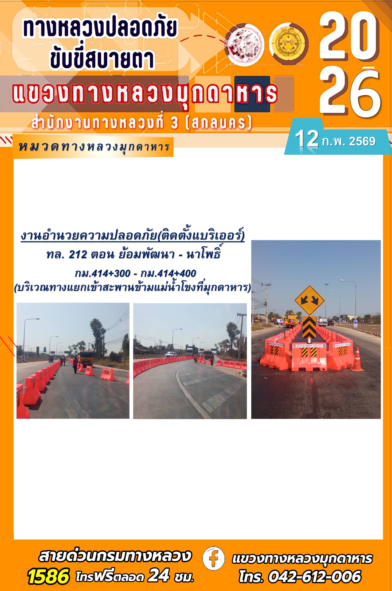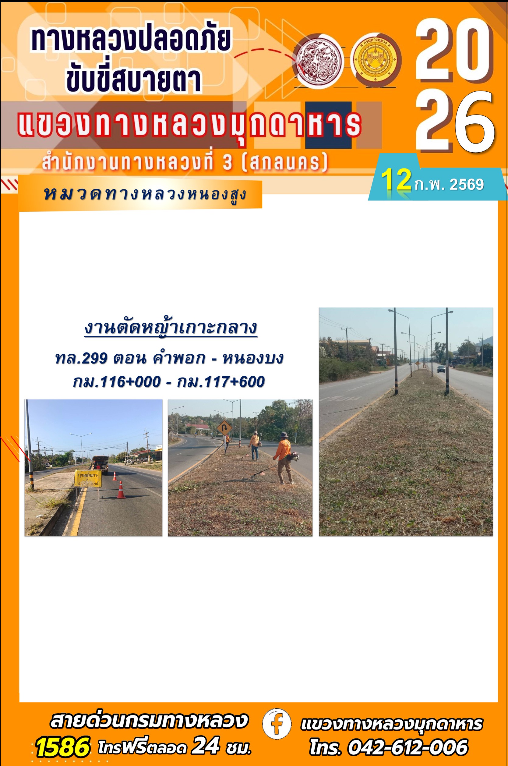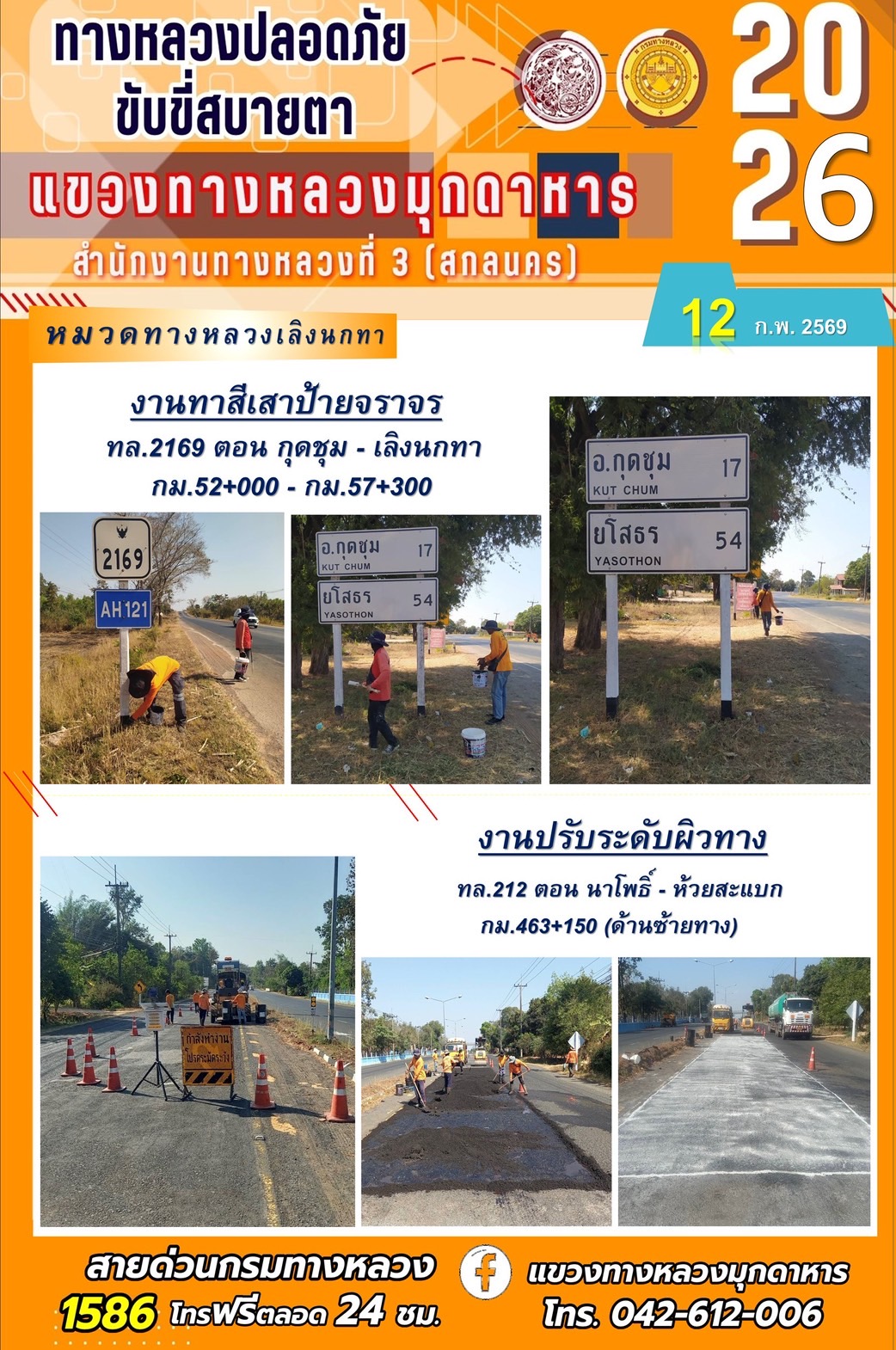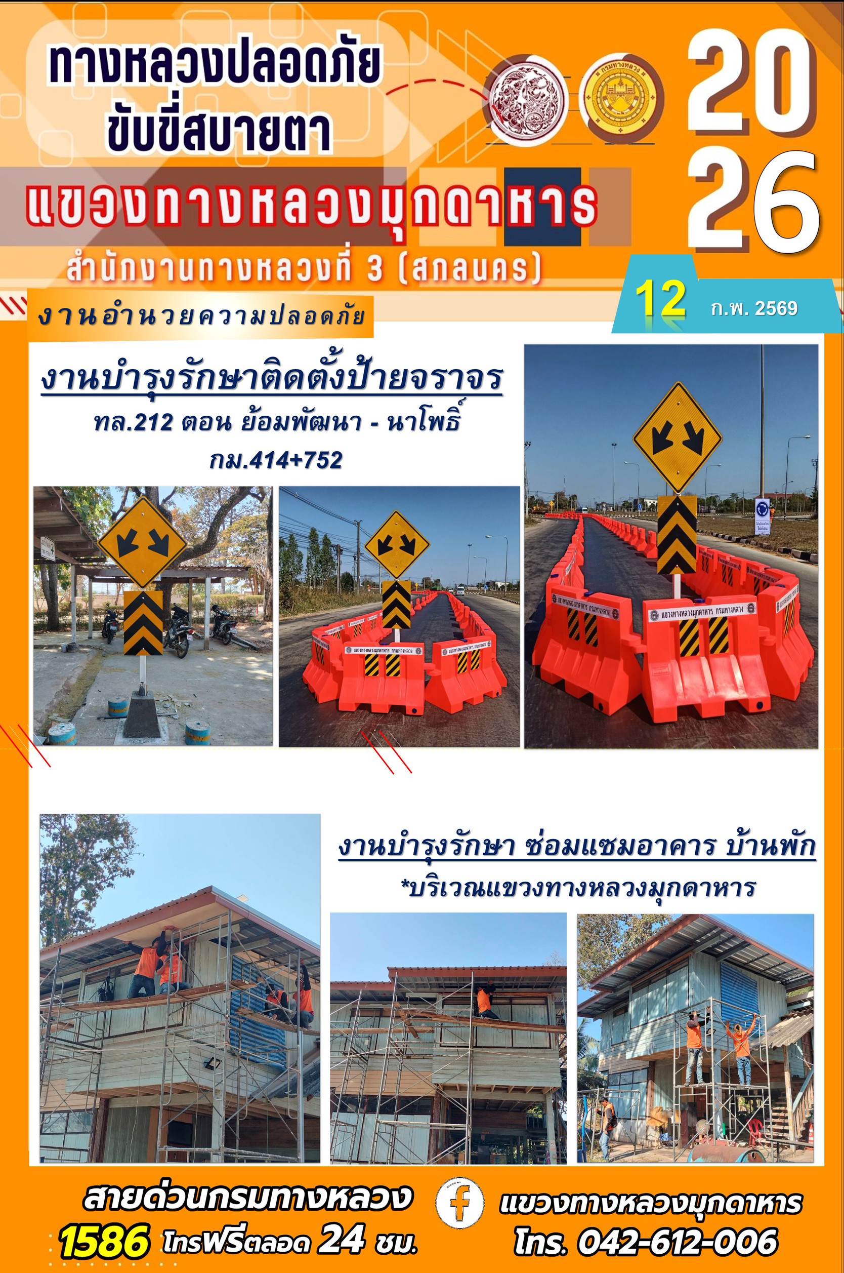 ประจำวันที่ 12 กุมภาพันธ์ 2569 โครงการทางหลวงปลอดภัย ขับขี่สบายตา หน่วยงานในสังกัดแขวงทางหลวง