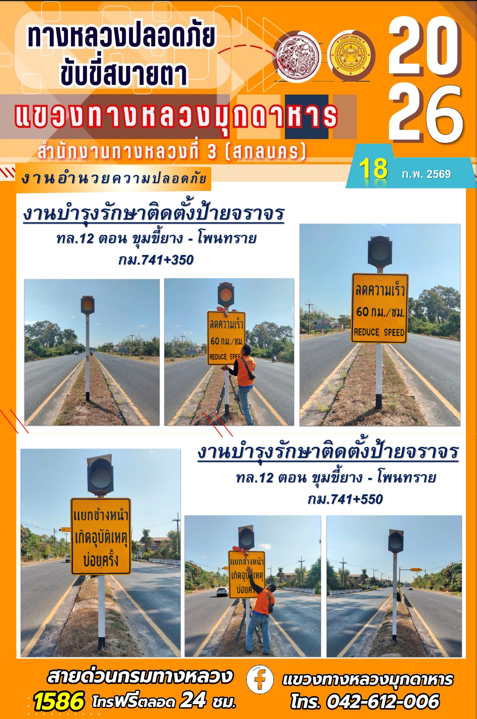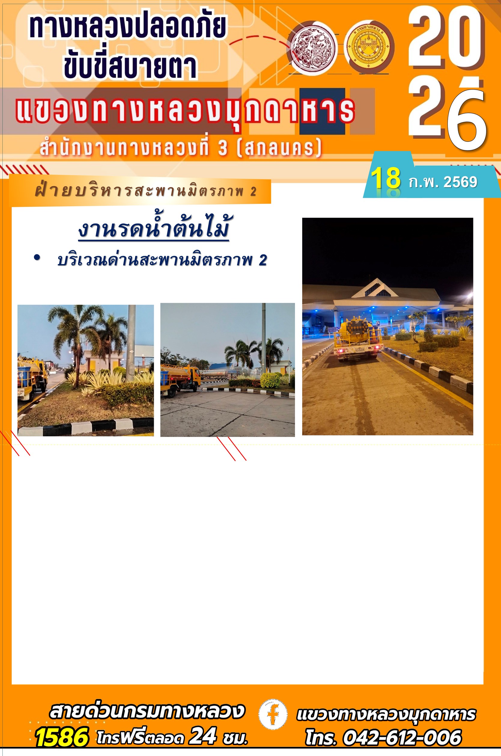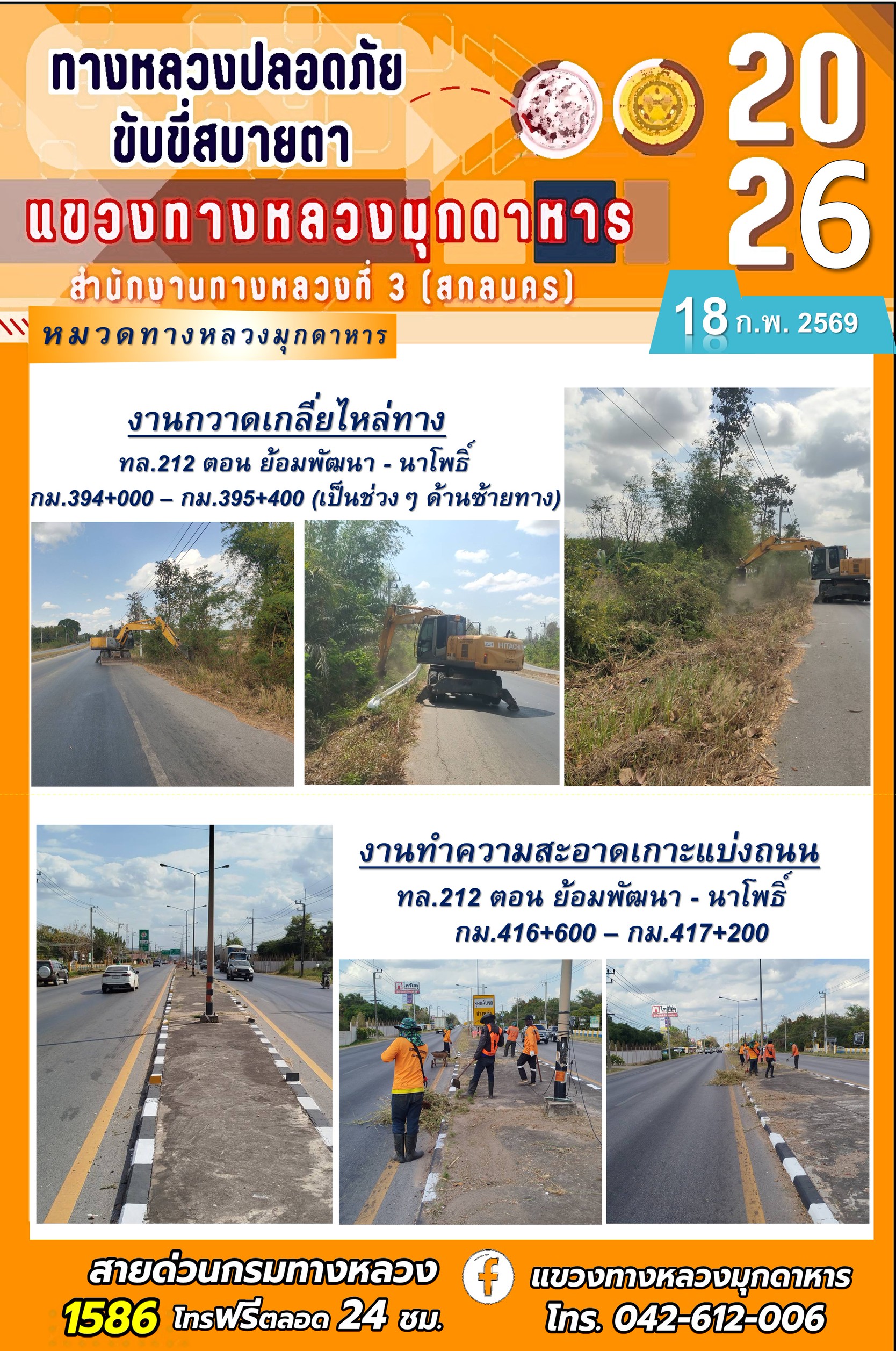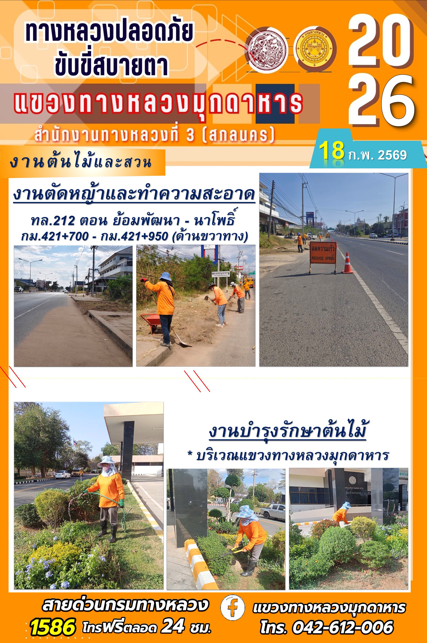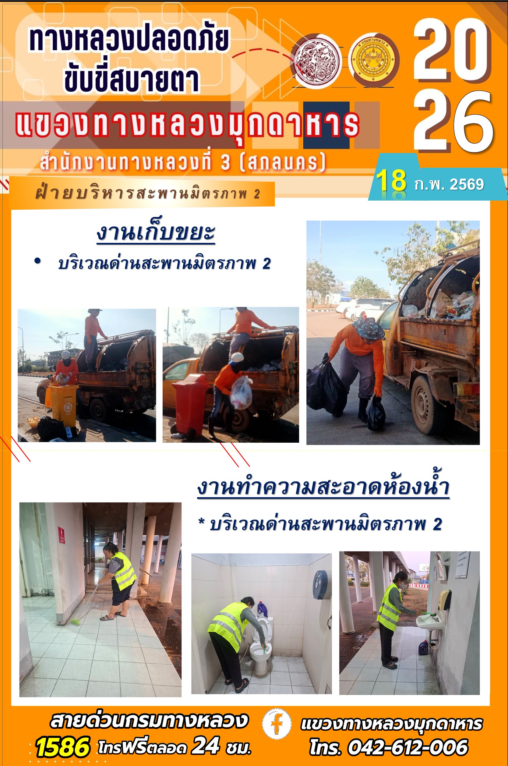 ประจำวันที่ 18 กุมภาพันธ์ 2569 โครงการทางหลวงปลอดภัย ขับขี่สบายตา หน่วยงานในสังกัดแขวงทางหลวง