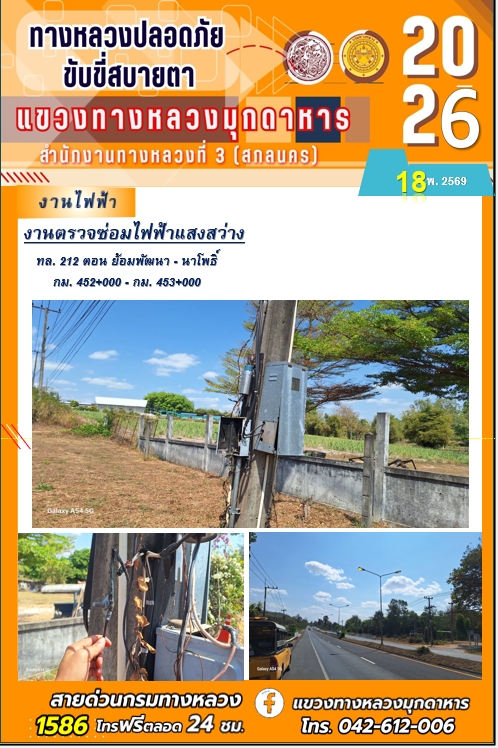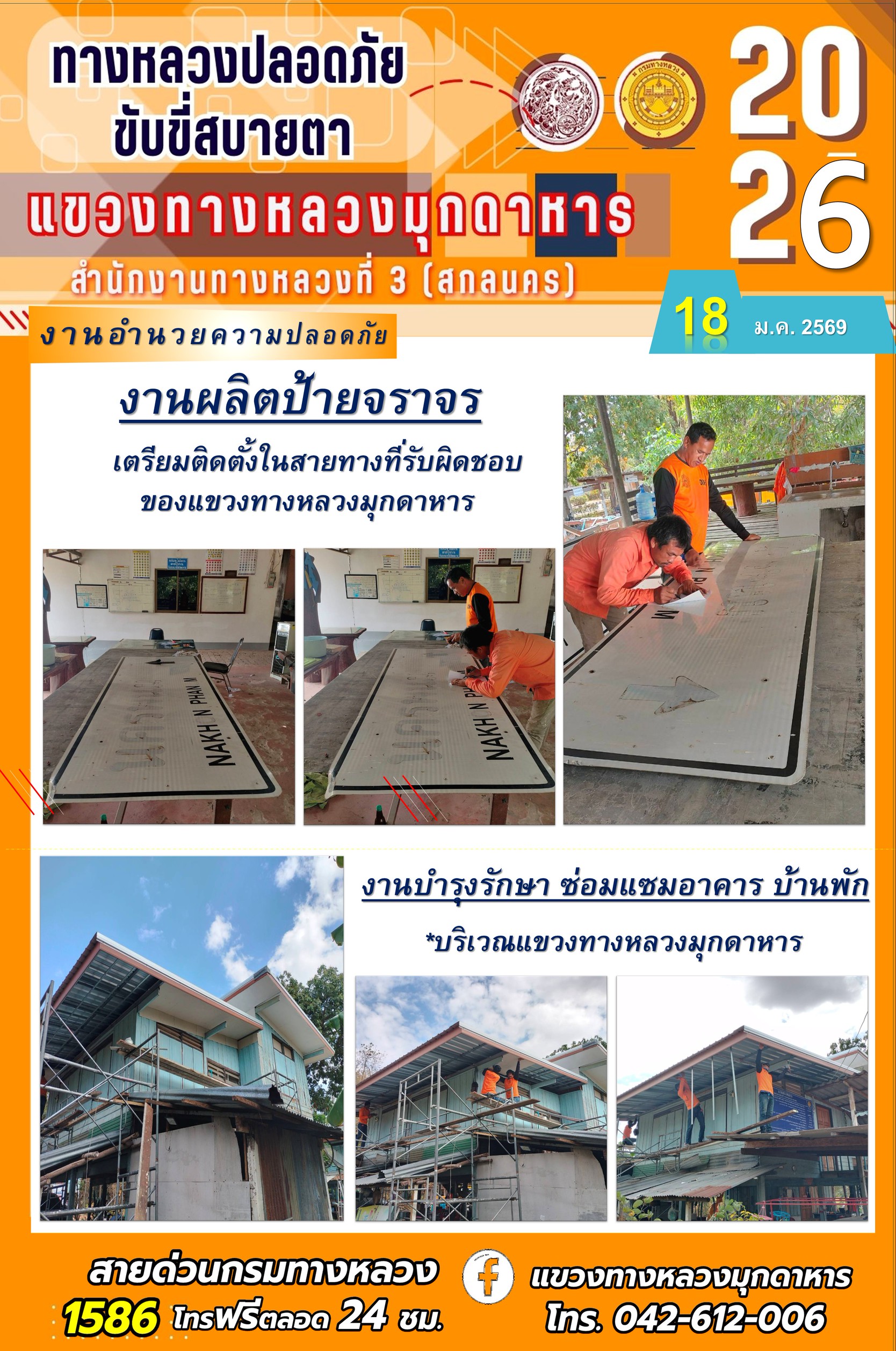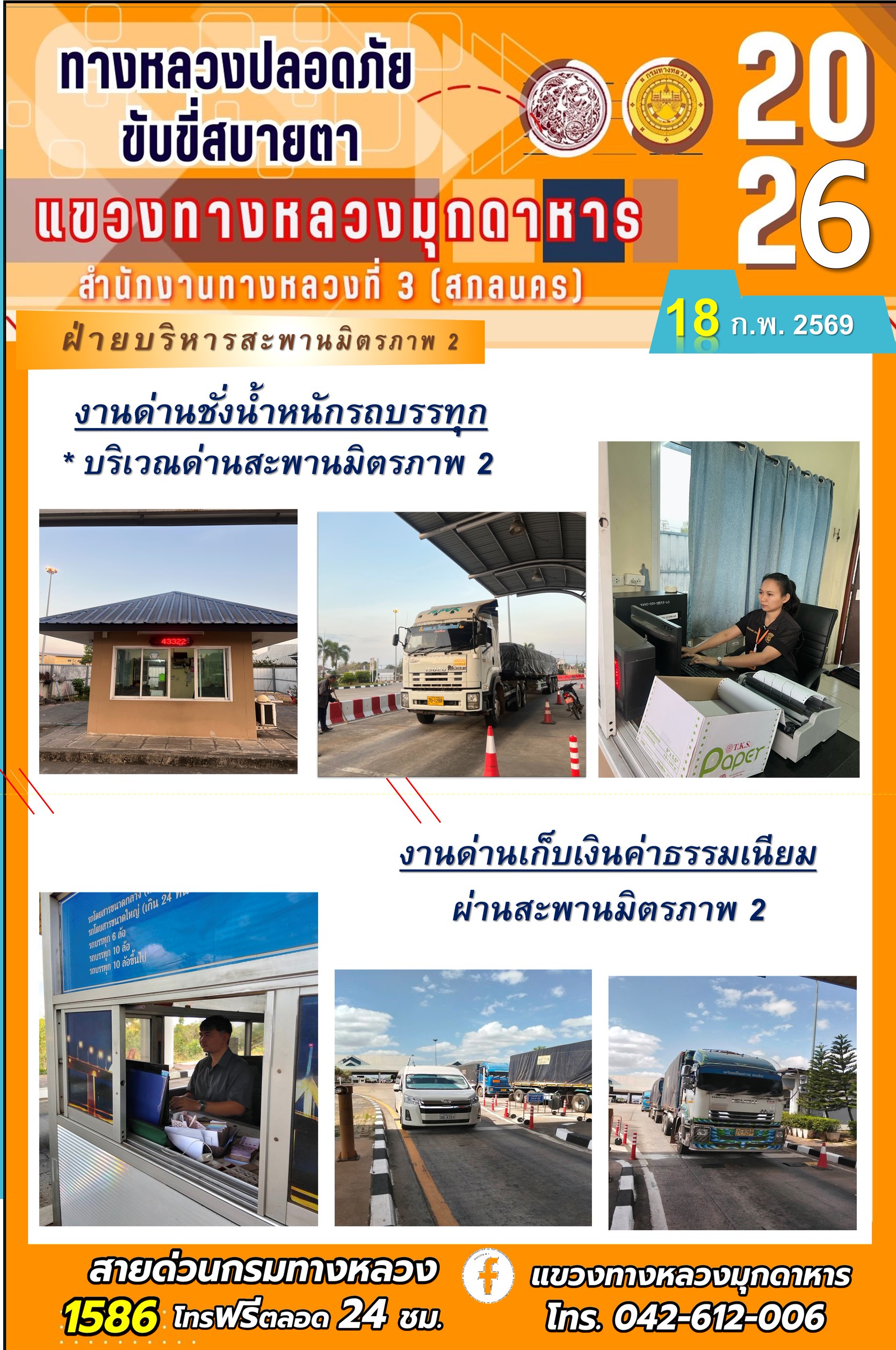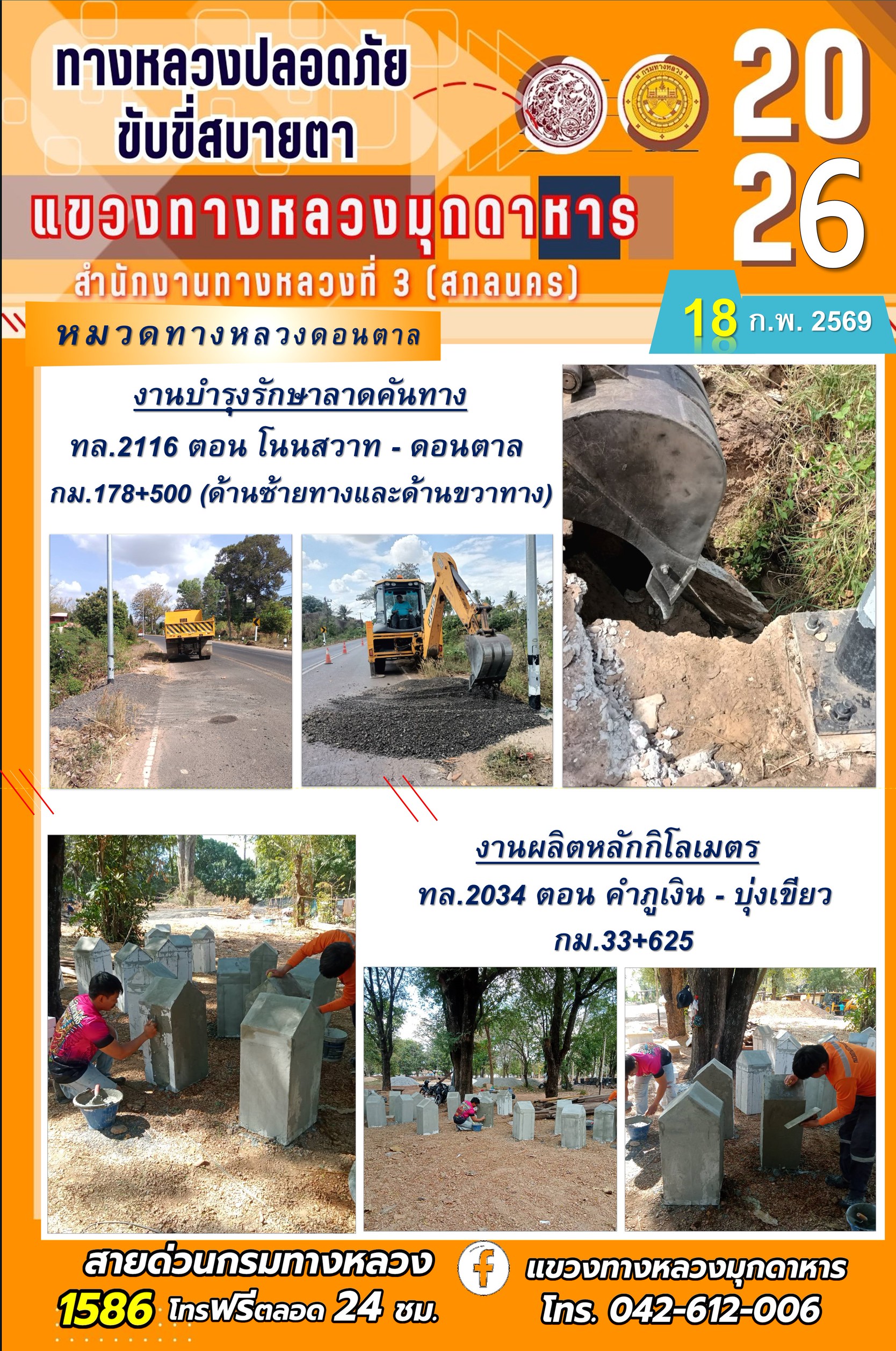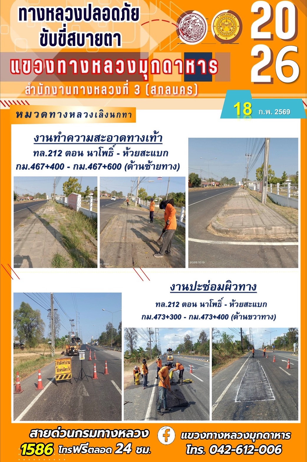 ประจำวันที่ 18 กุมภาพันธ์ 2569 โครงการทางหลวงปลอดภัย ขับขี่สบายตา หน่วยงานในสังกัดแขวงทางหลวง