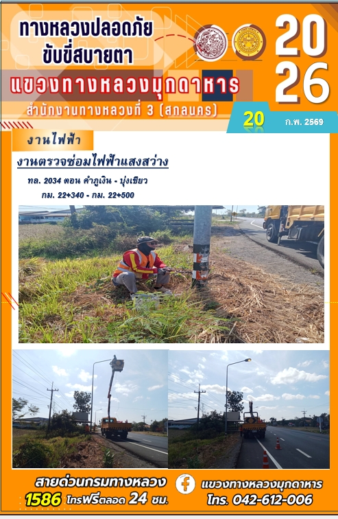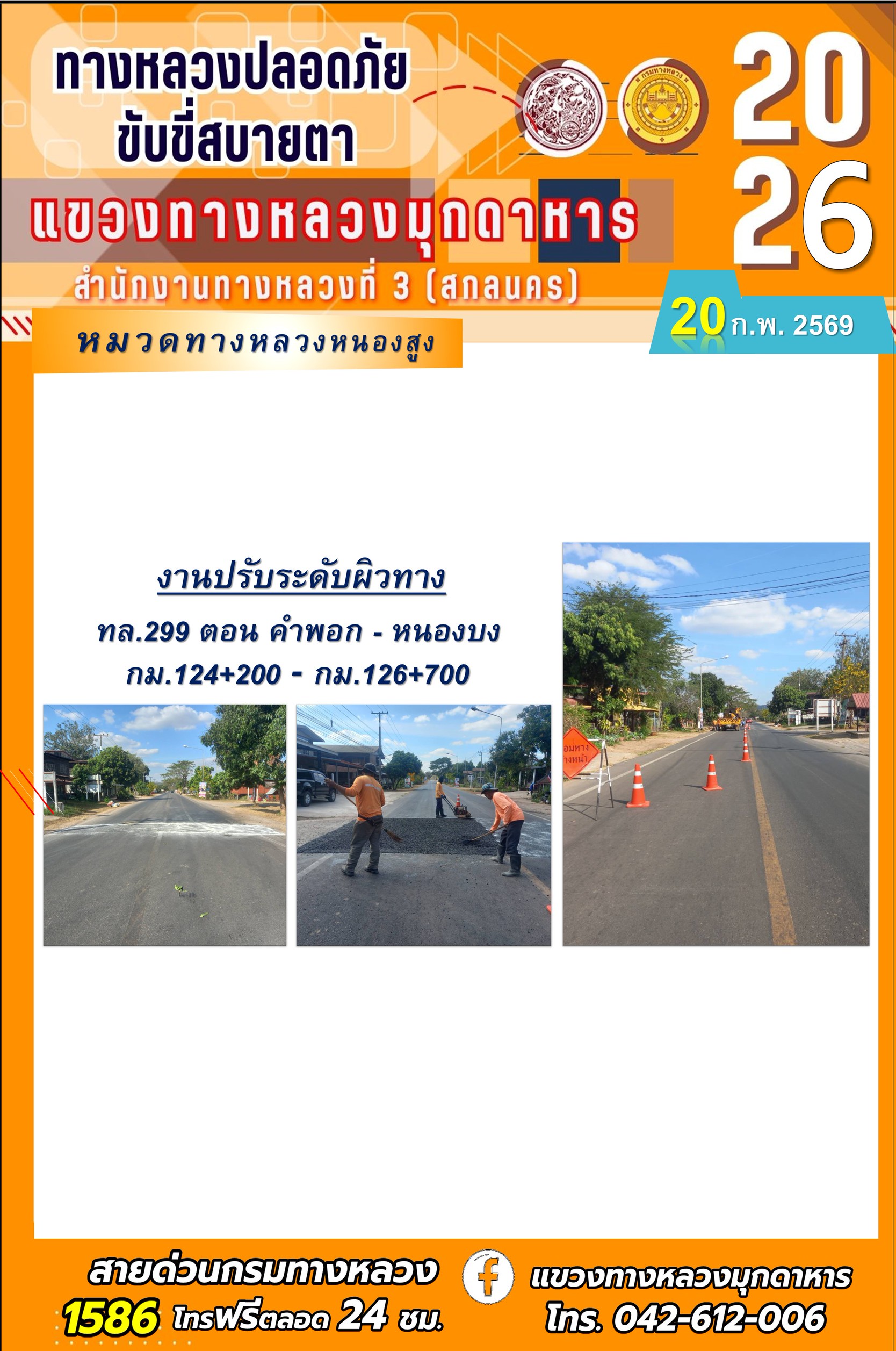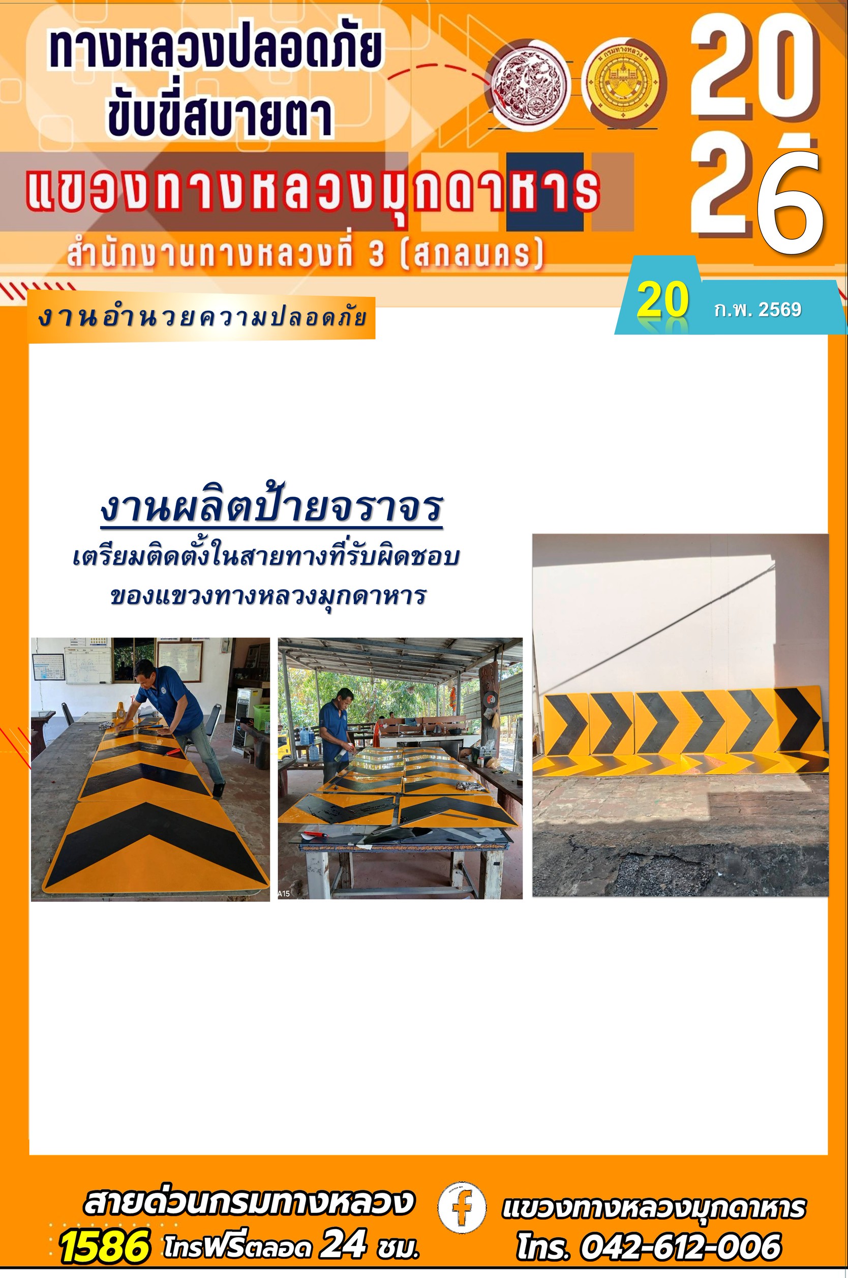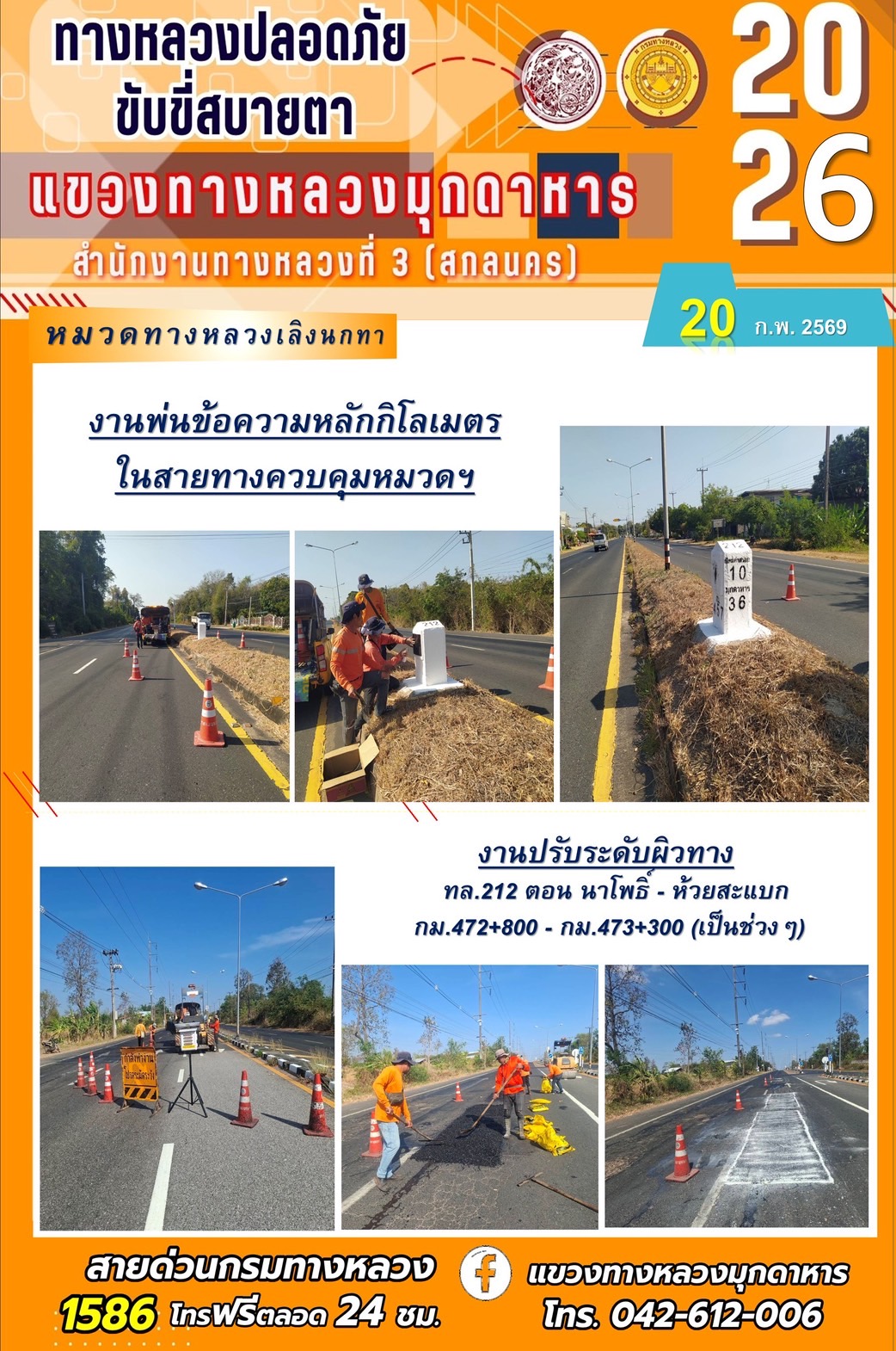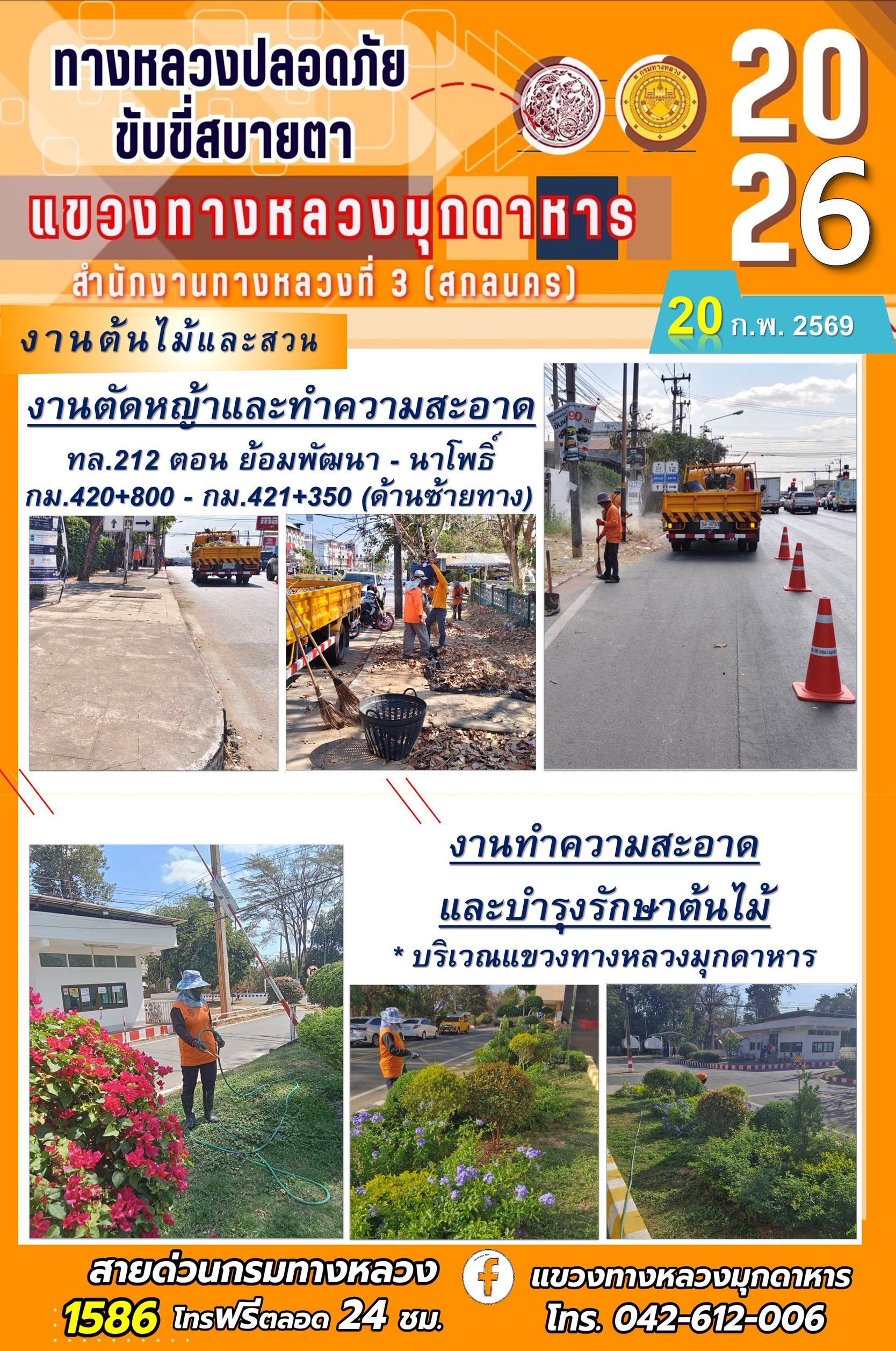ประจำวันที่ 20 กุมภาพันธ์ 2569 โครงการทางหลวงปลอดภัย ขับขี่สบายตา หน่วยงานในสังกัดแขวงทางหลวง