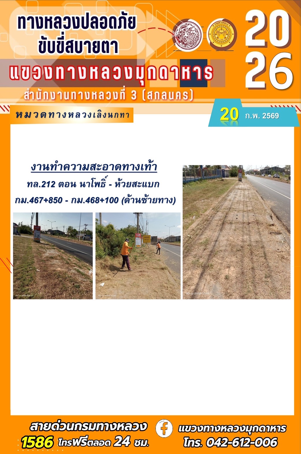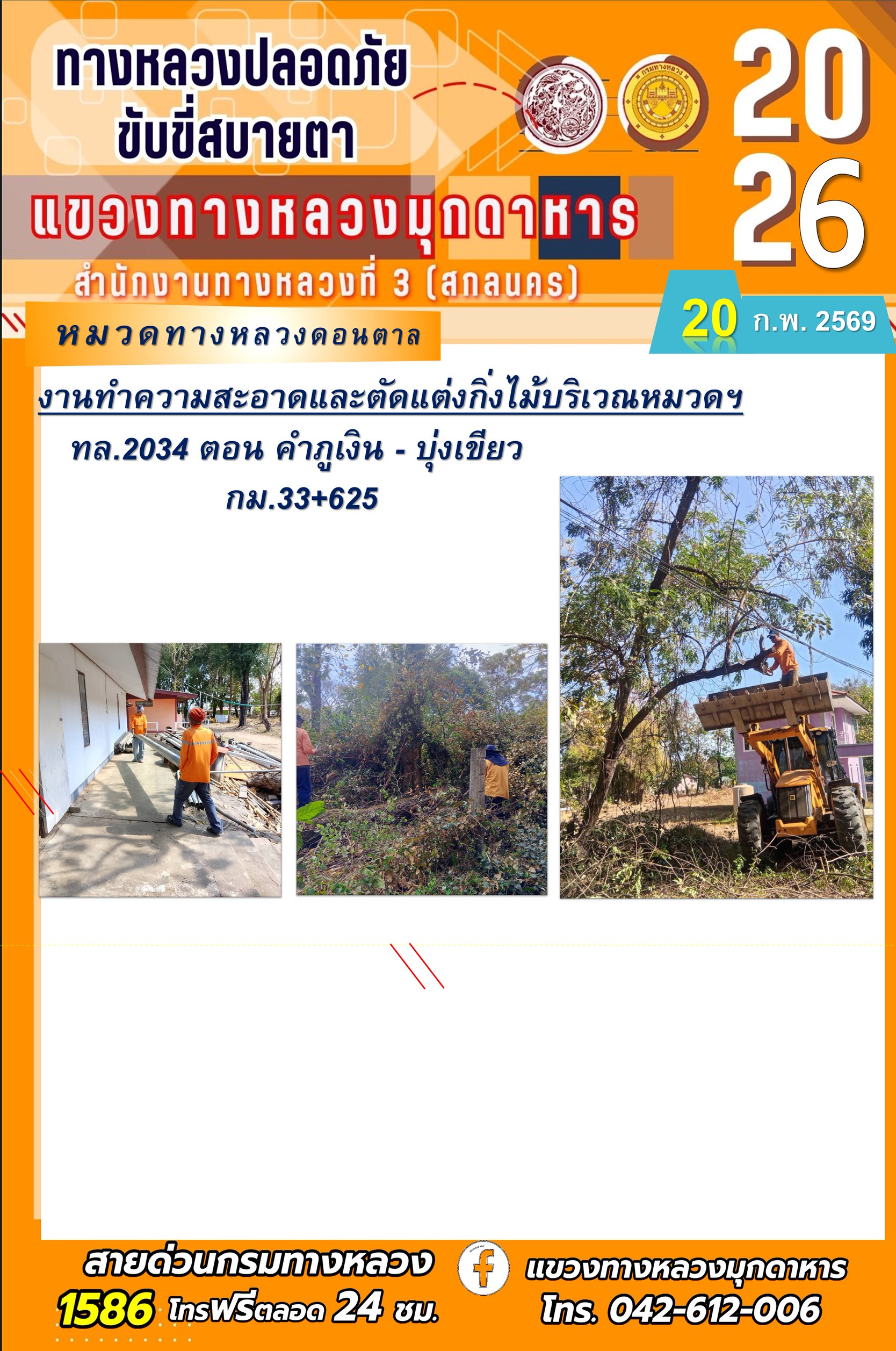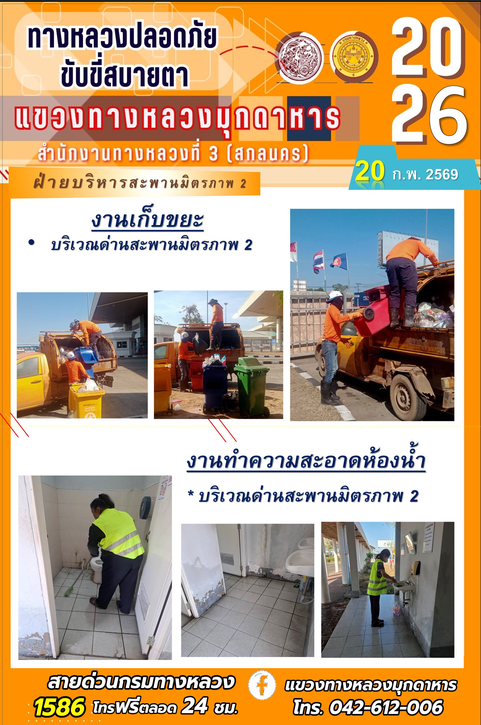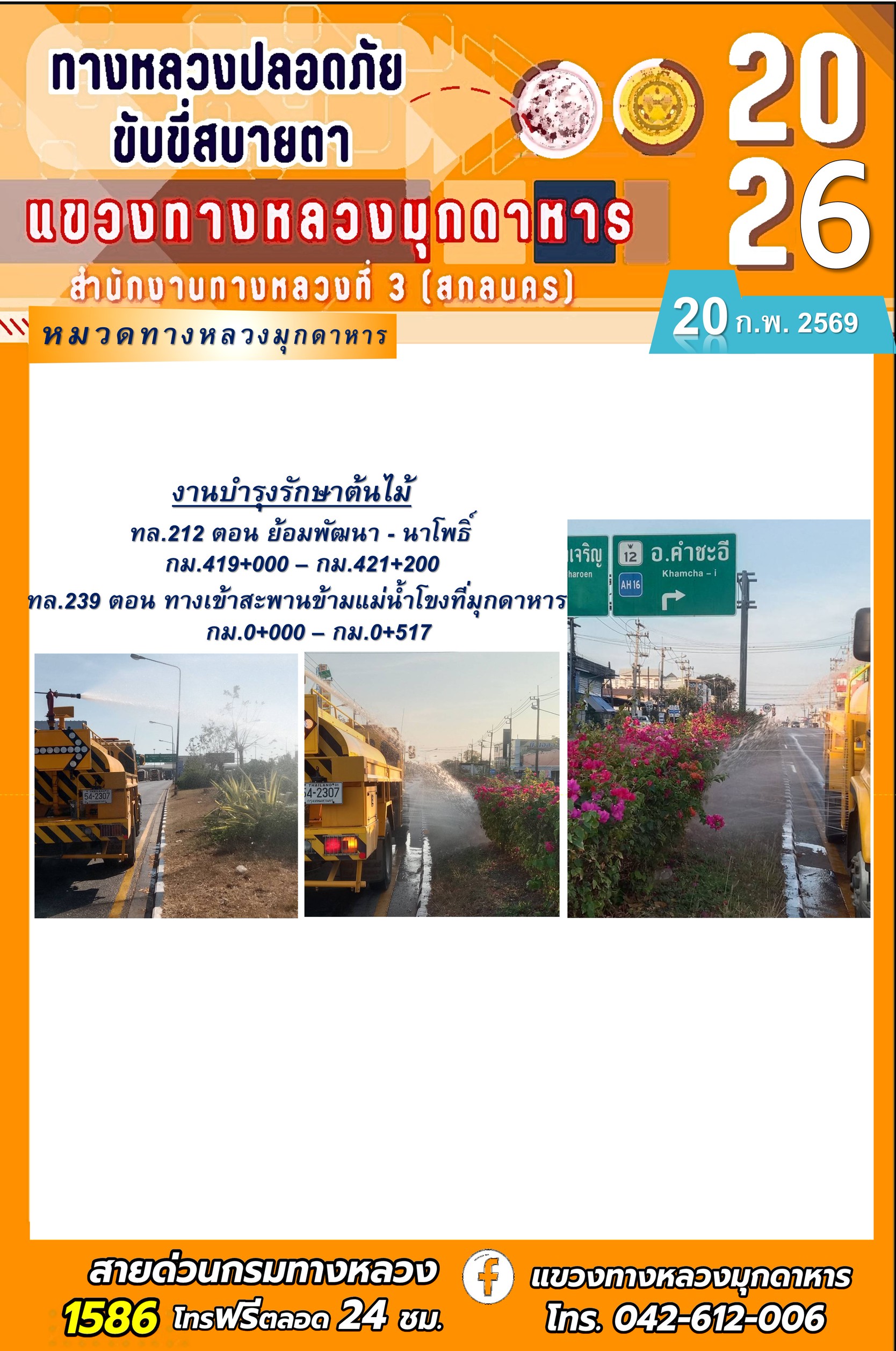 ประจำวันที่ 20 กุมภาพันธ์ 2569 โครงการทางหลวงปลอดภัย ขับขี่สบายตา หน่วยงานในสังกัดแขวงทางหลวง