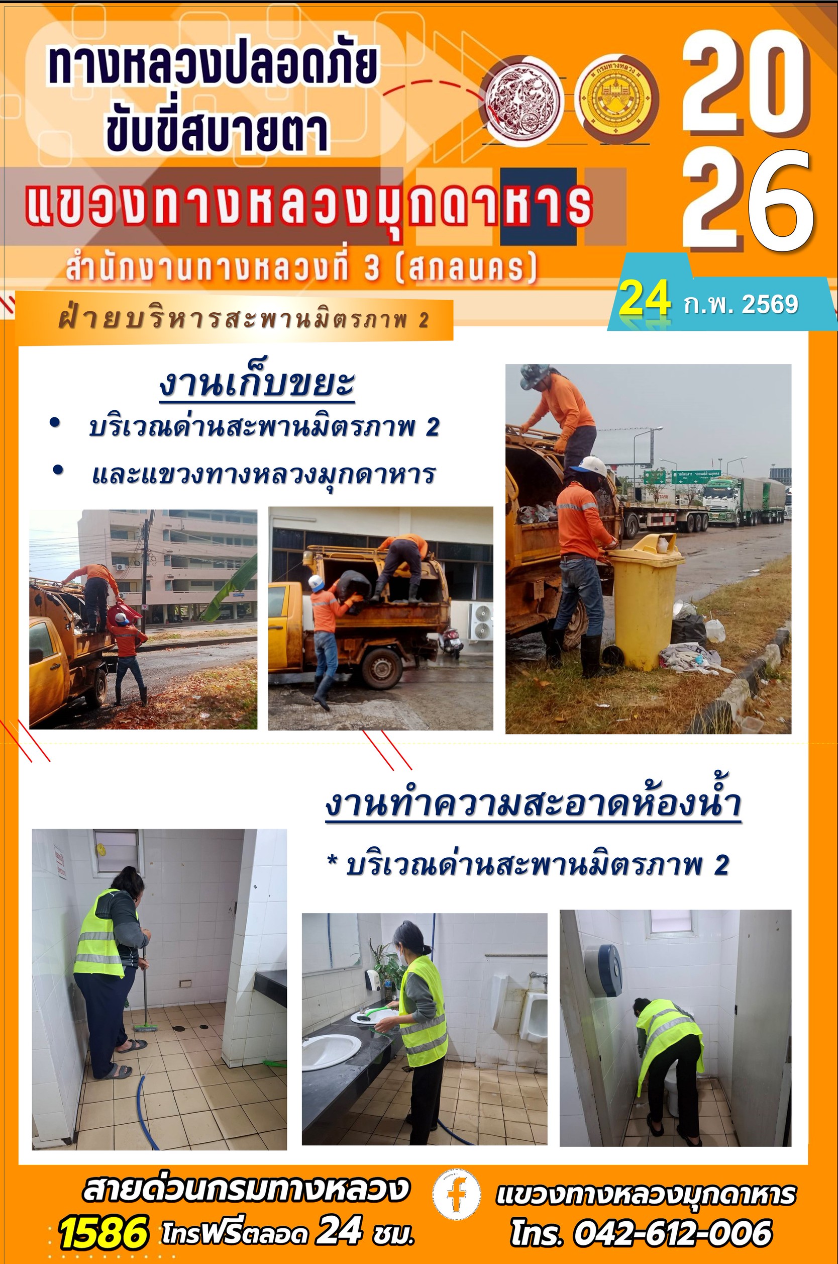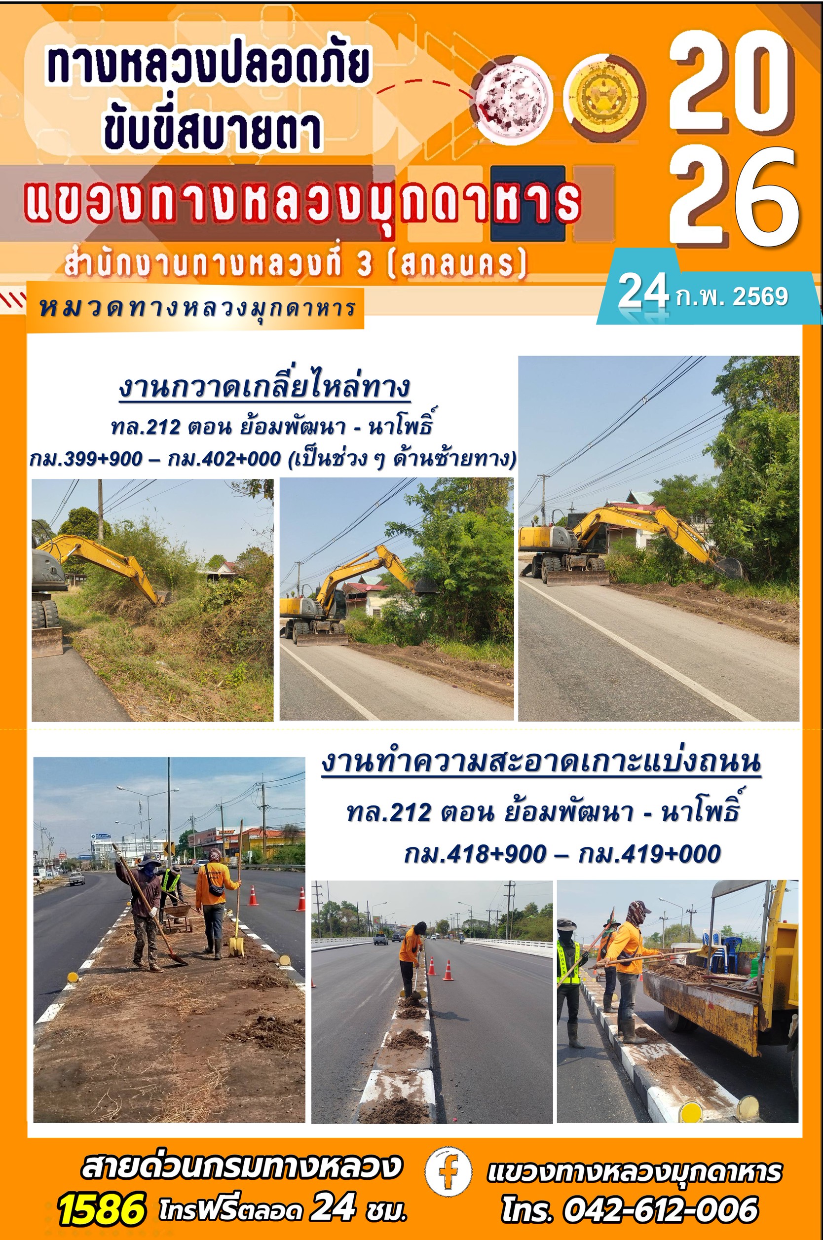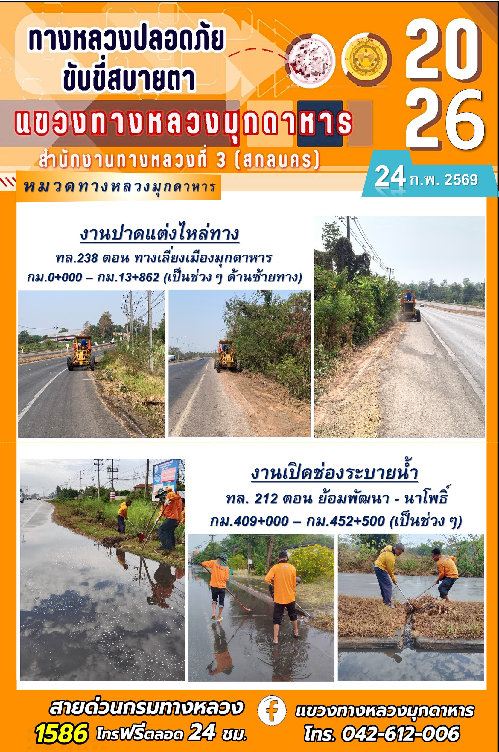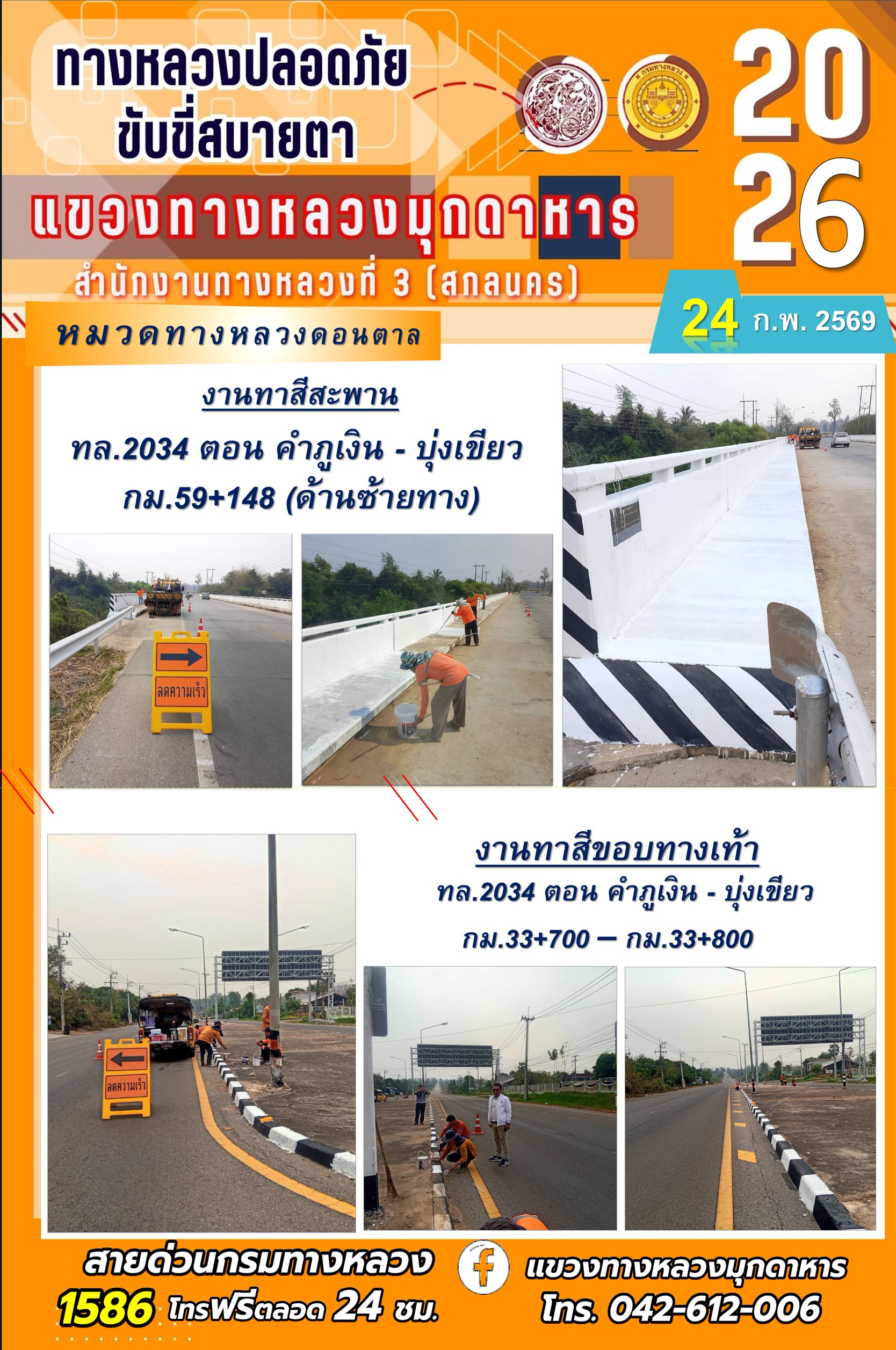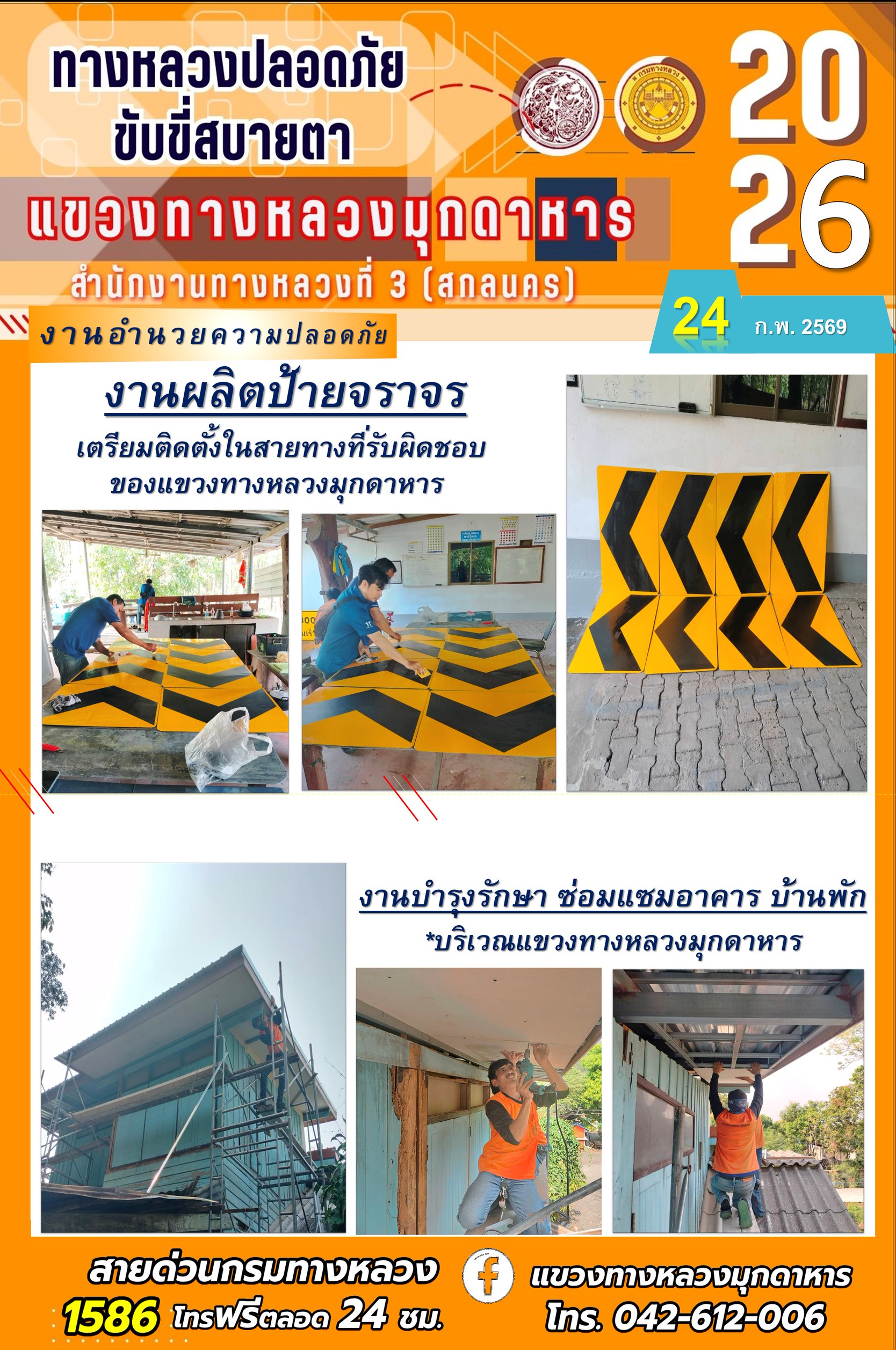 ประจำวันที่ 24 กุมภาพันธ์ 2569 โครงการทางหลวงปลอดภัย ขับขี่สบายตา หน่วยงานในสังกัดแขวงทางหลวง
