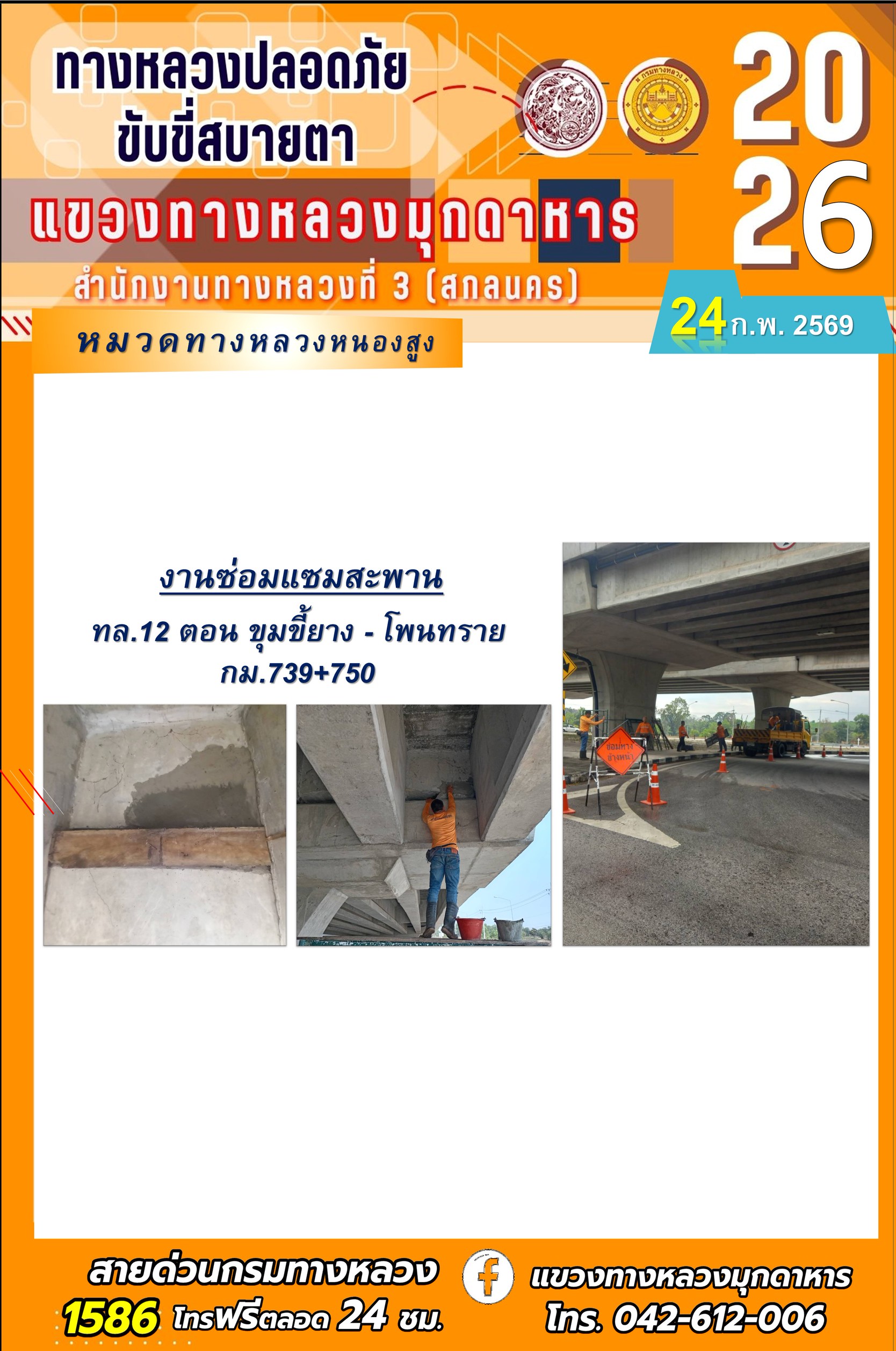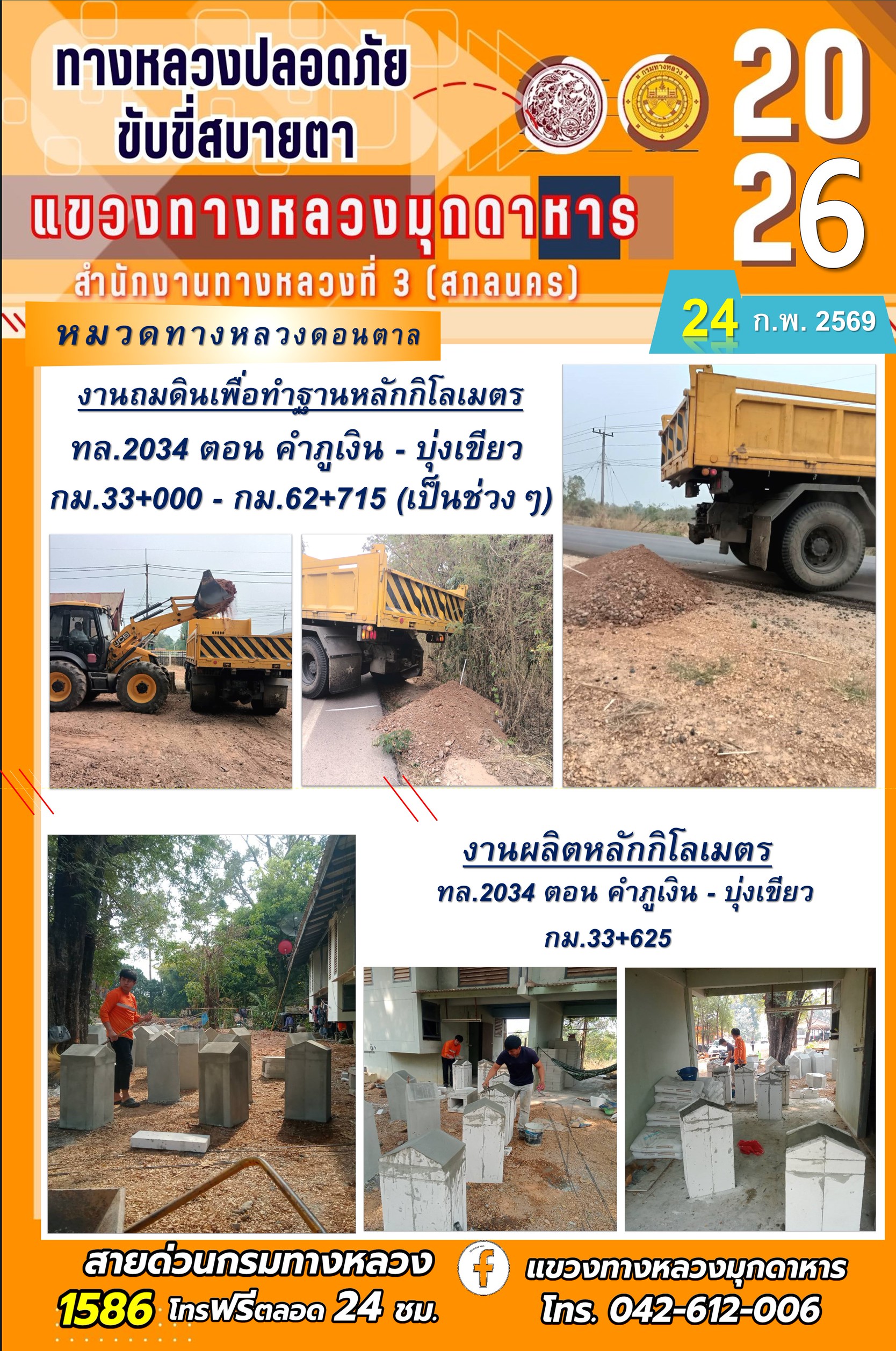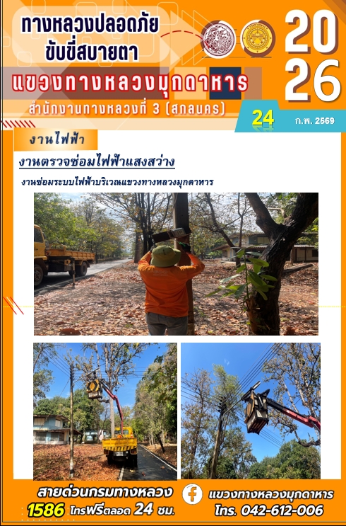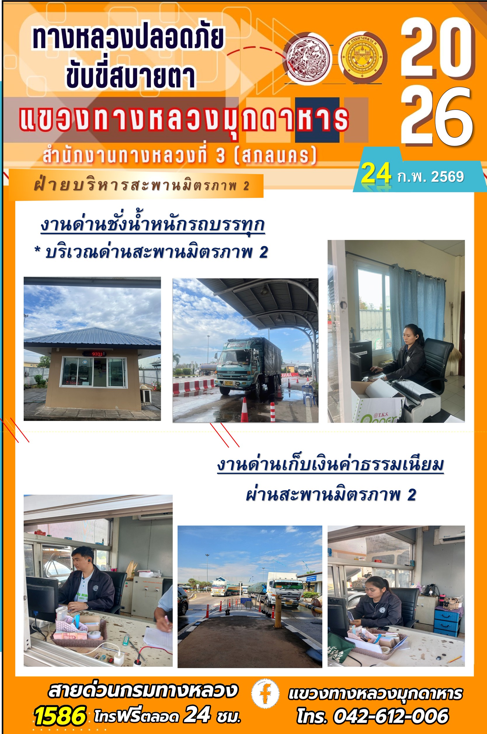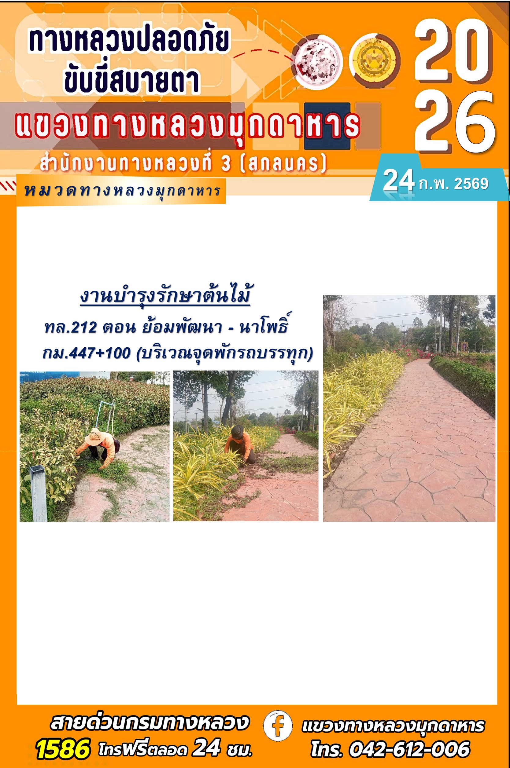 ประจำวันที่ 24 กุมภาพันธ์ 2569 โครงการทางหลวงปลอดภัย ขับขี่สบายตา หน่วยงานในสังกัดแขวงทางหลวง
