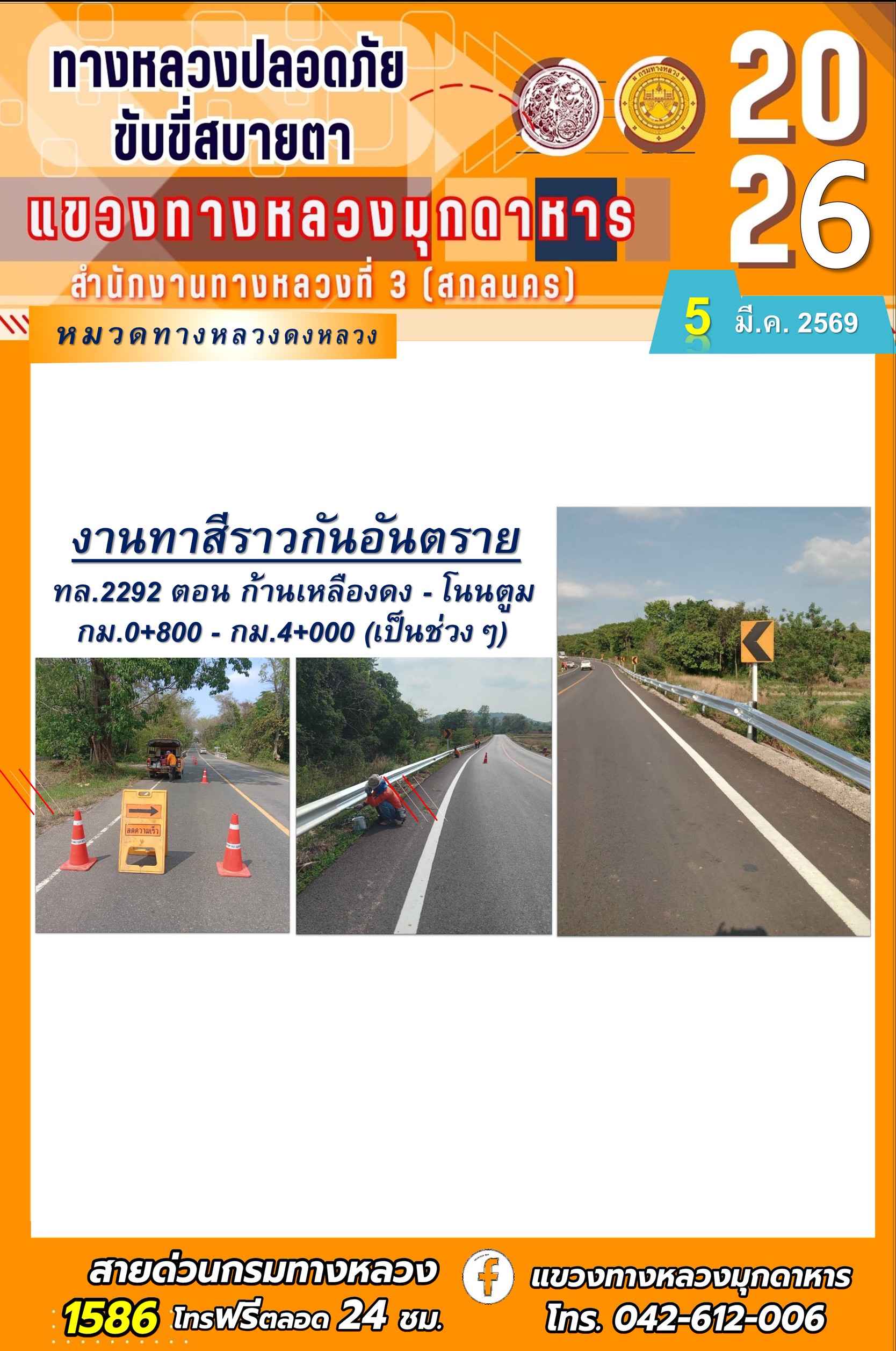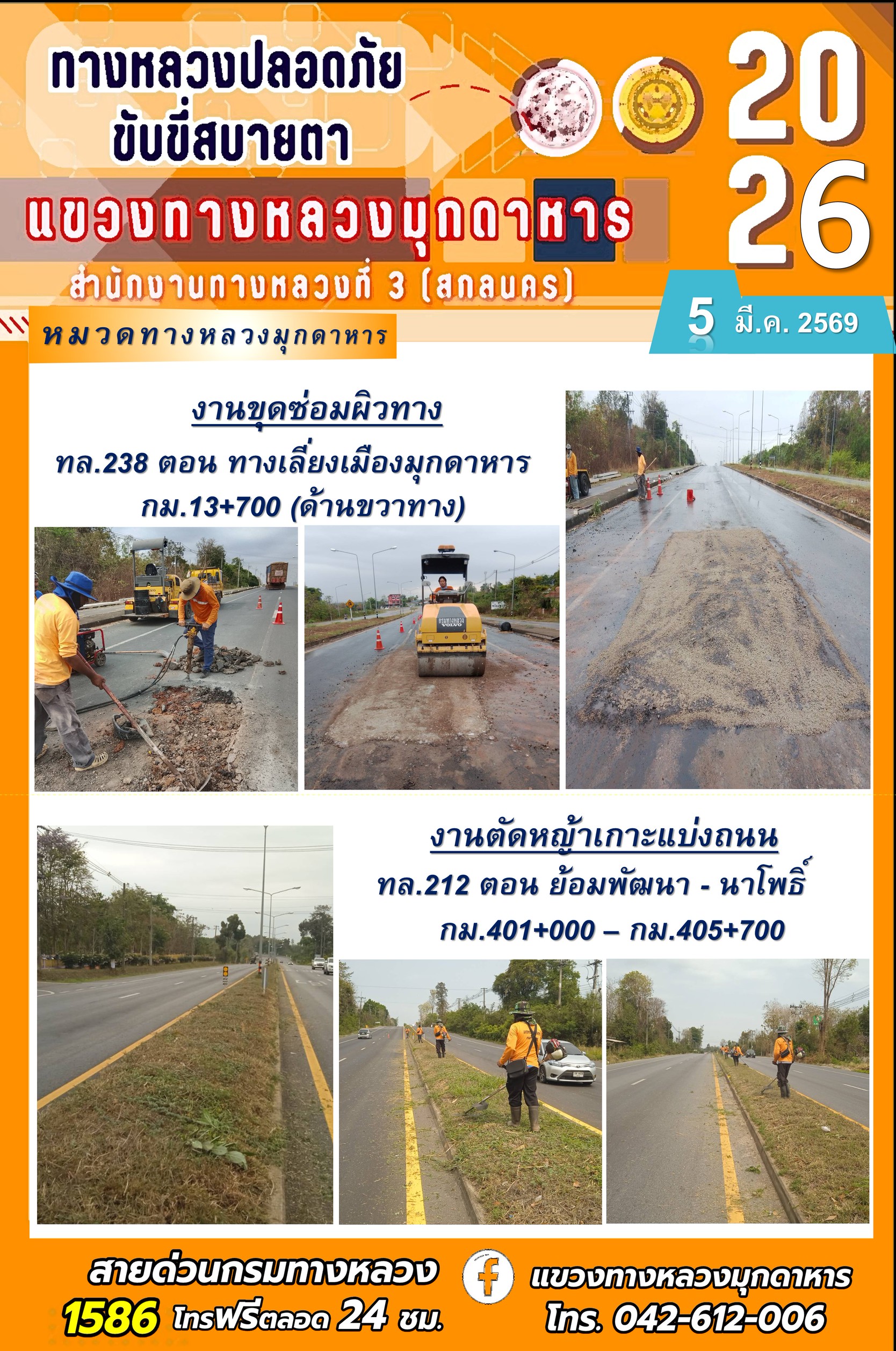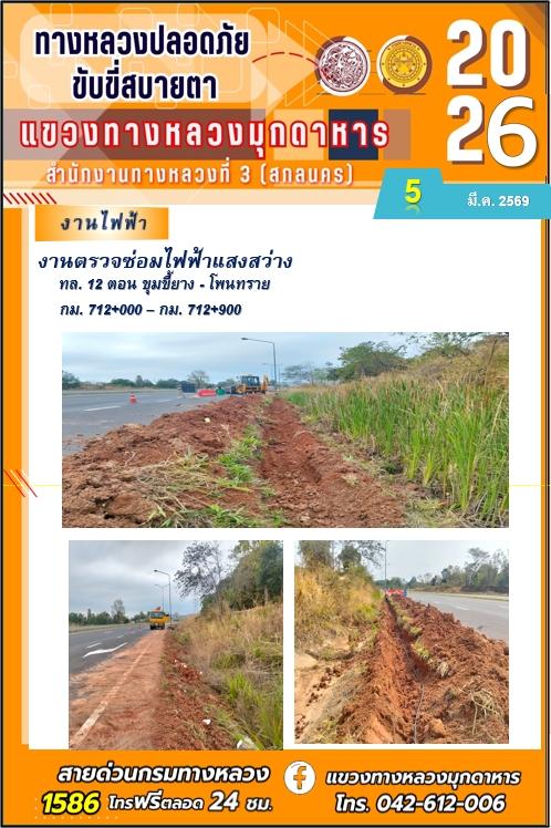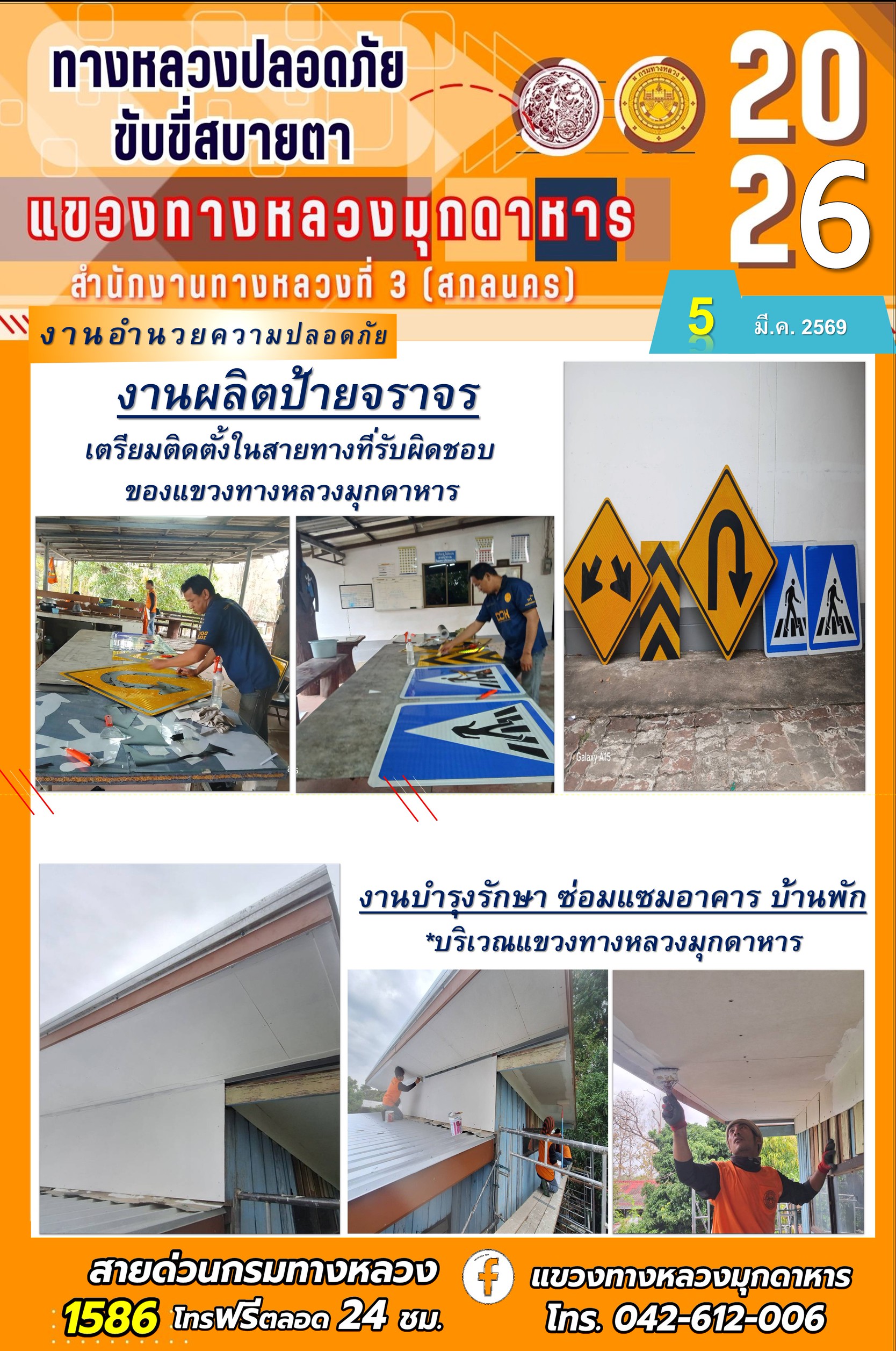 ประจำวันที่ 5 มีนาคม 2569 โครงการทางหลวงปลอดภัย ขับขี่สบายตา หน่วยงานในสังกัดแขวงทางหลวง